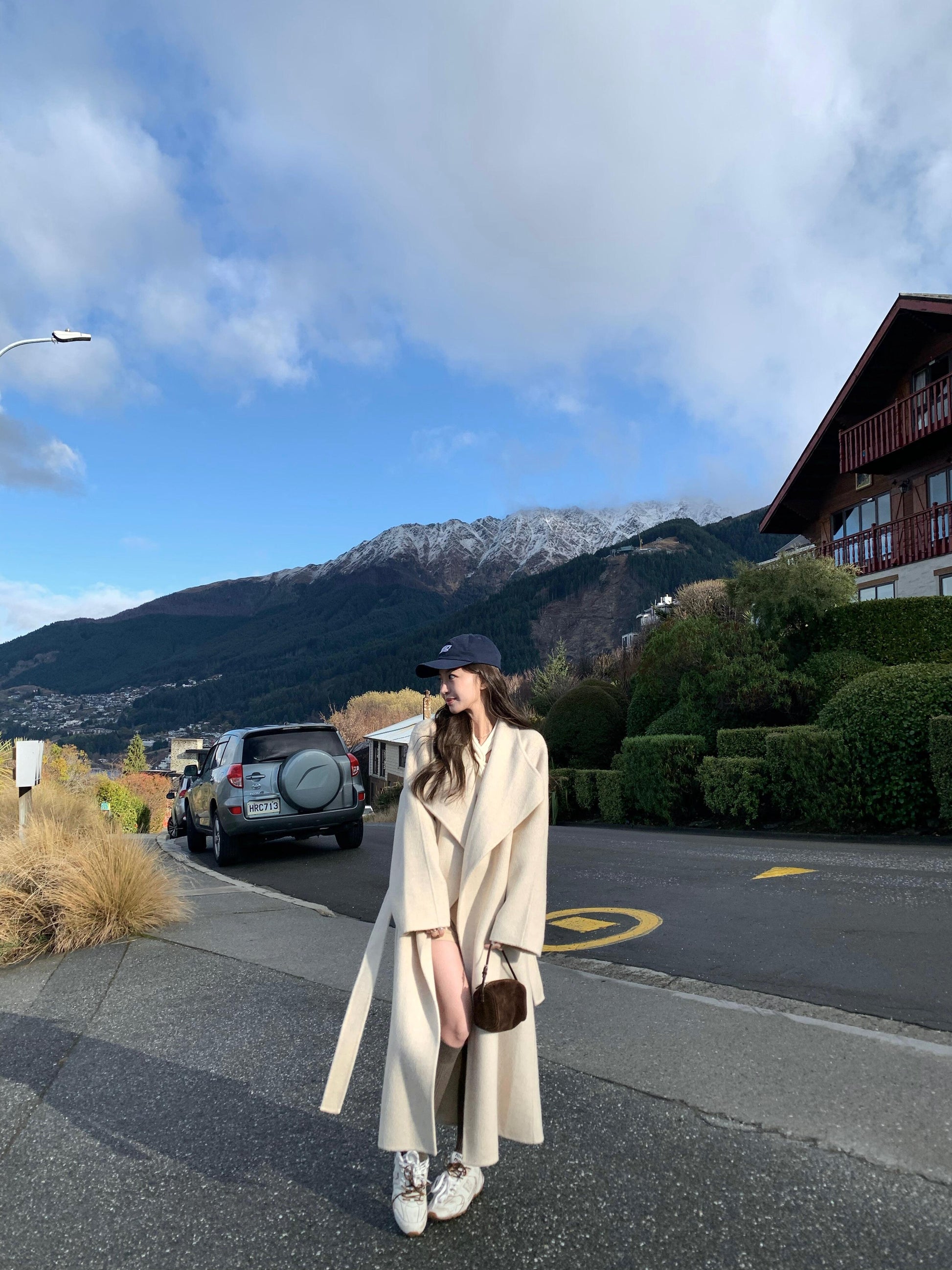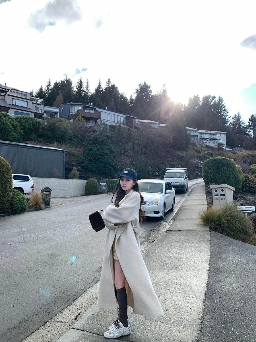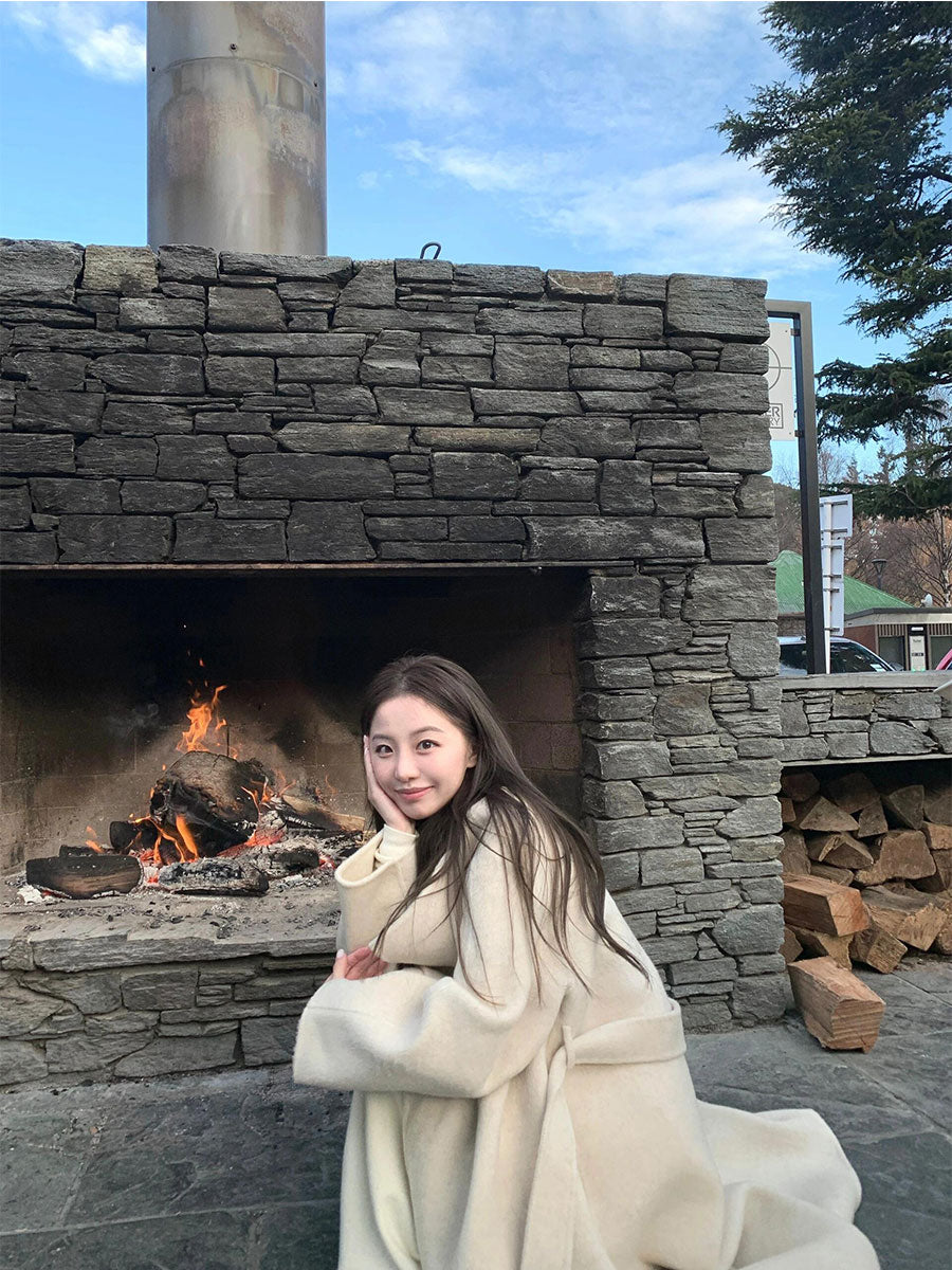 White Wool Coat – Hepburn-Style Mid-Length Large Lapel Jacket