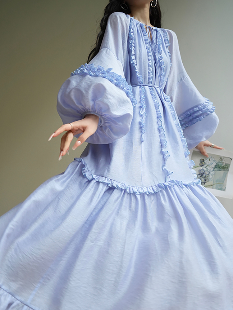 Linen Holiday Maxi Dress – Ruffled Edge Romantic Look
