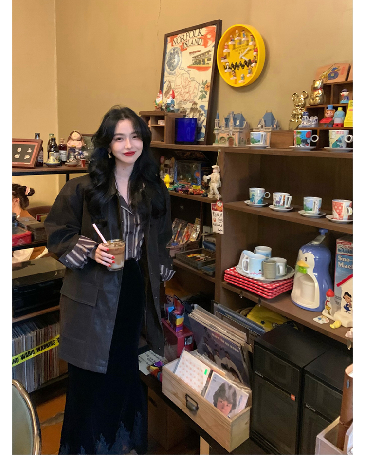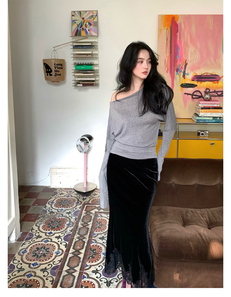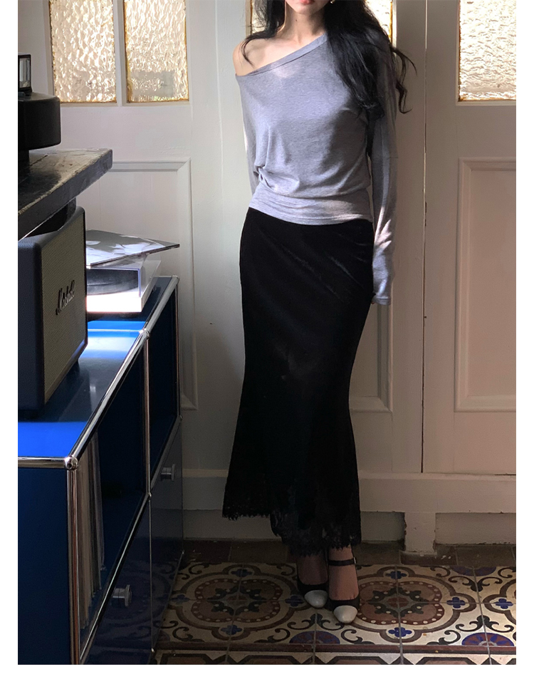 Lace-Trim Velvet Skirt