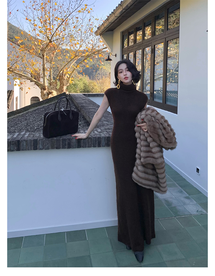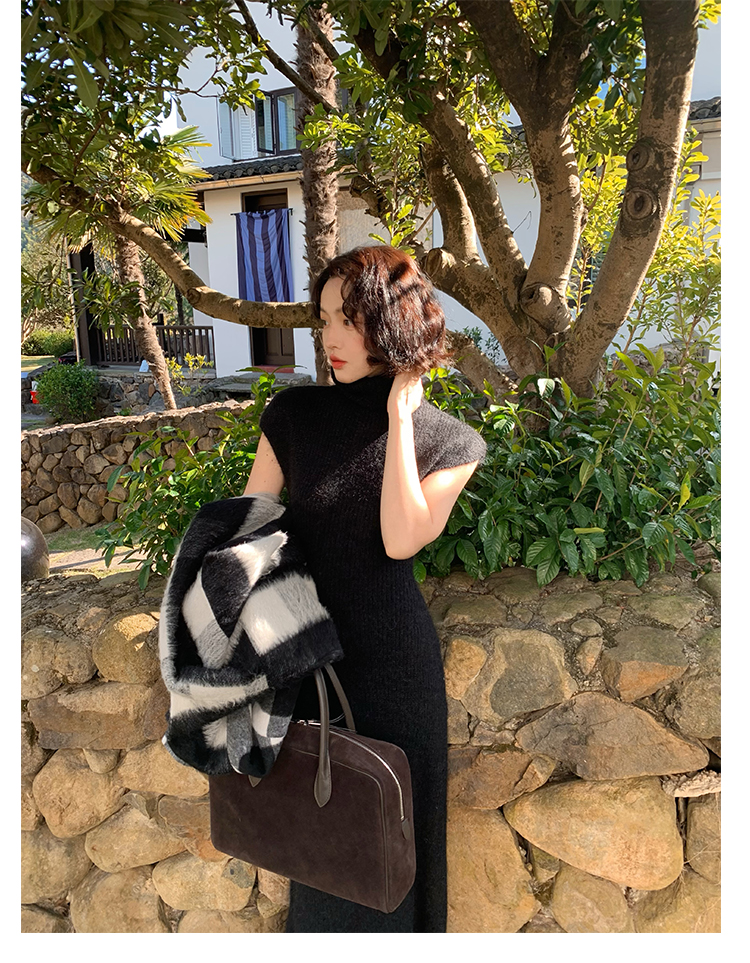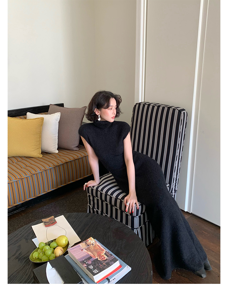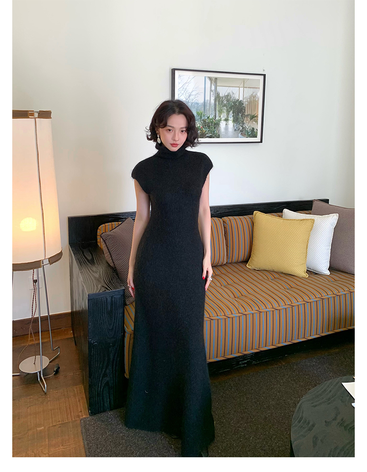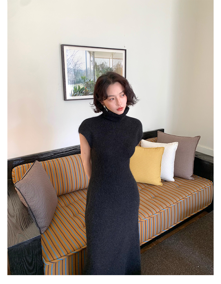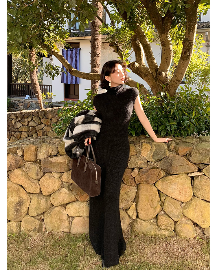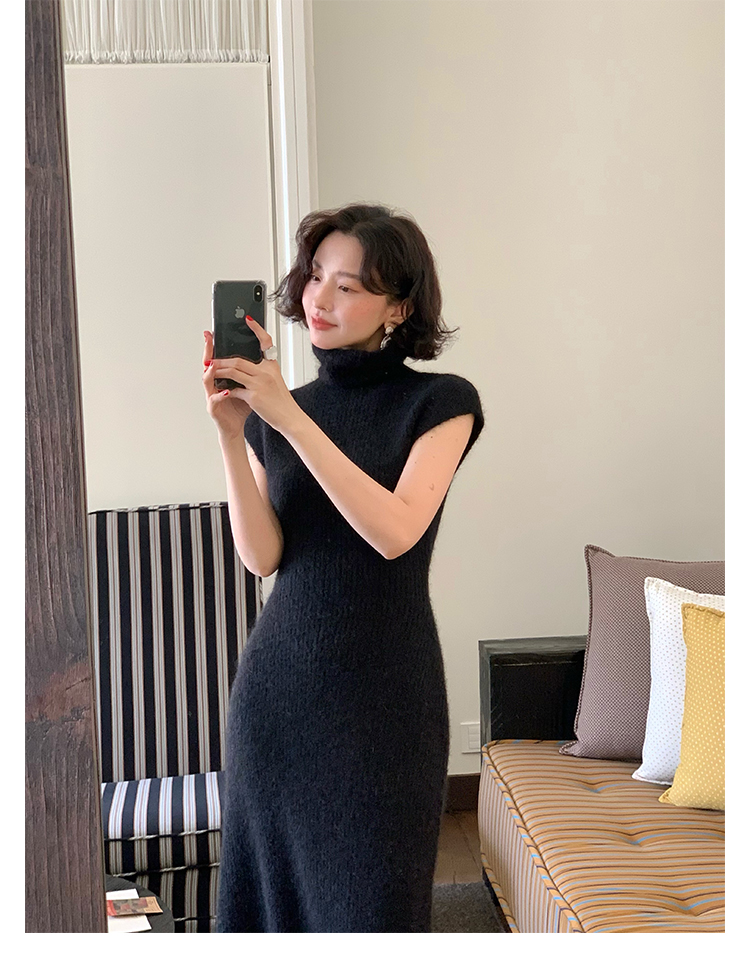 Warm Mohair Knit Sleeveless Base Dress – Hepburn High-Neck Style