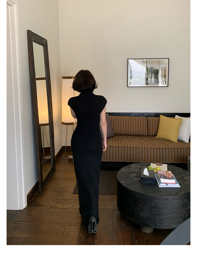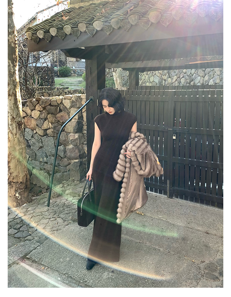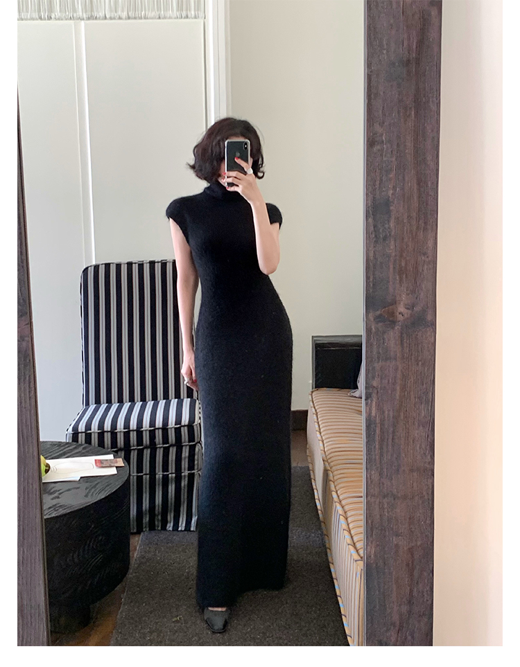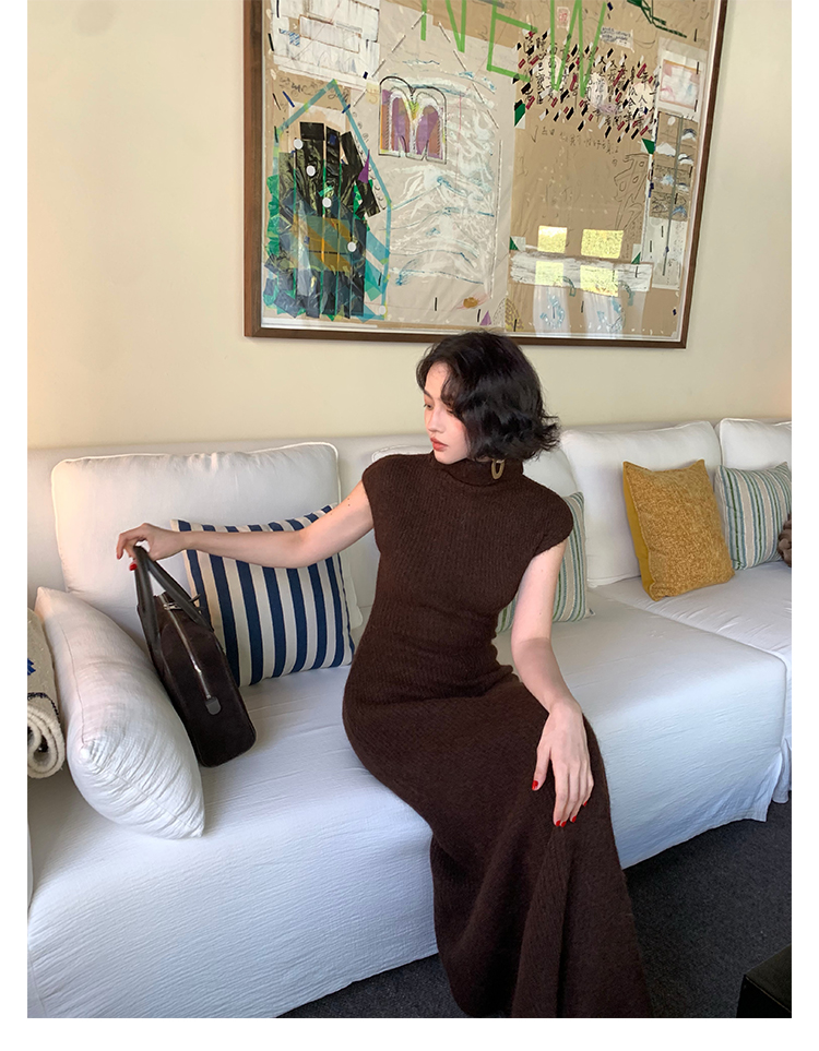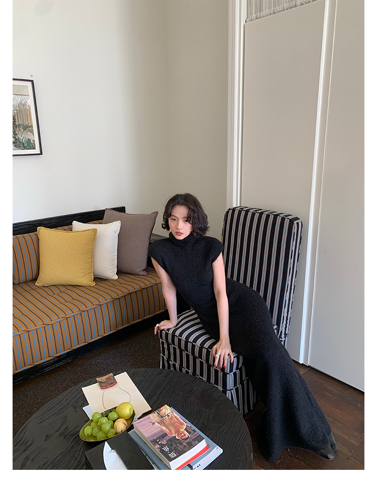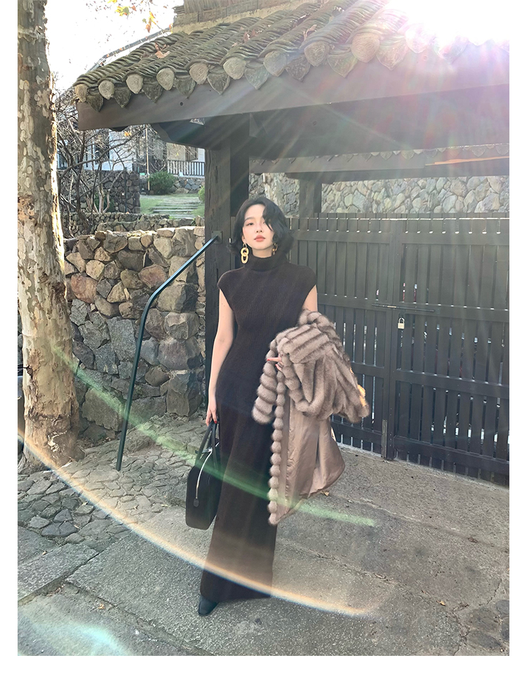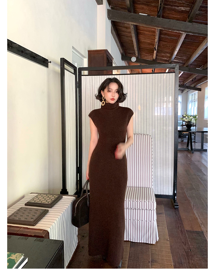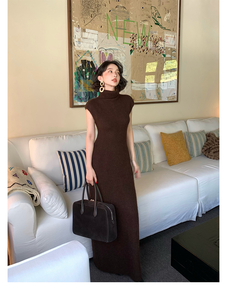Warm Mohair Knit Sleeveless Base Dress – Hepburn High-Neck Style