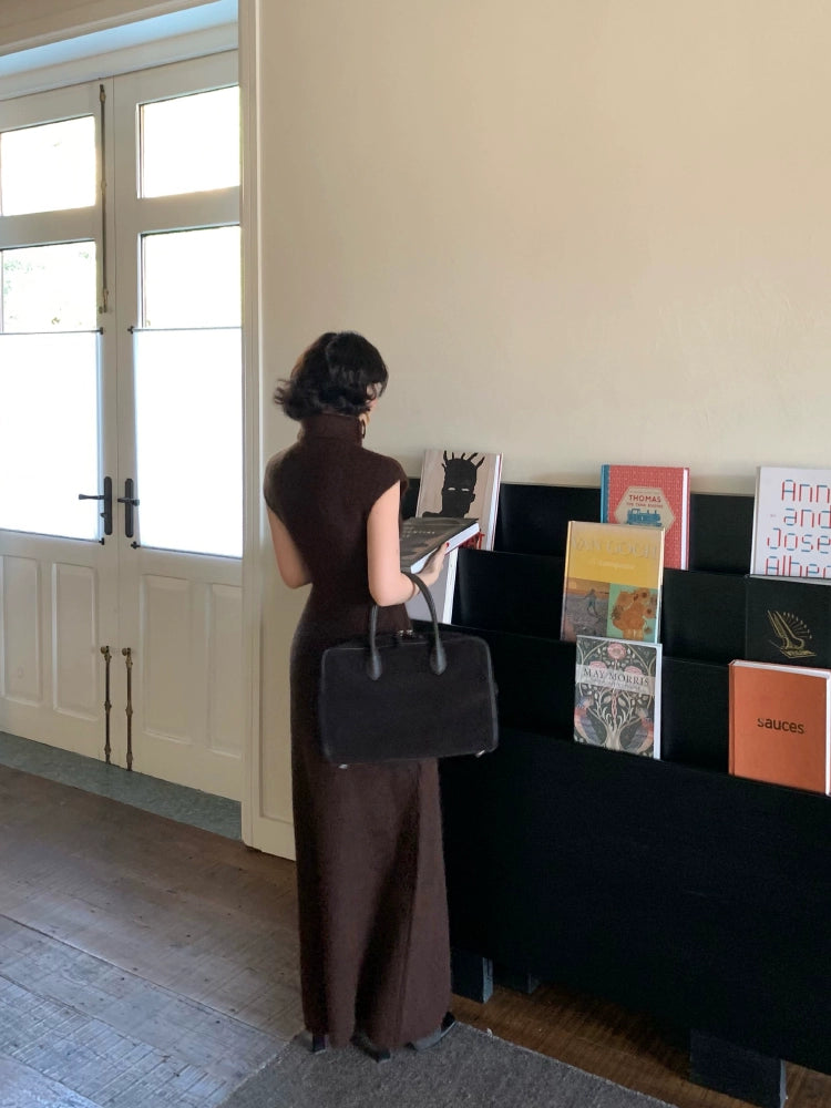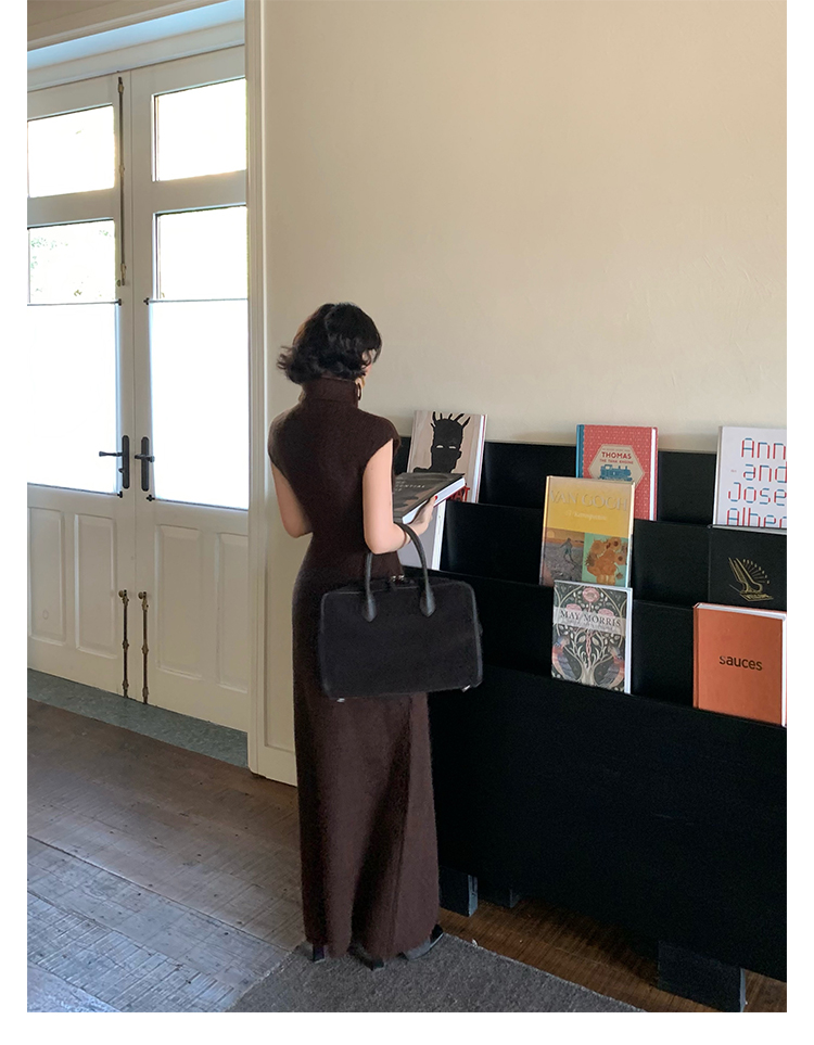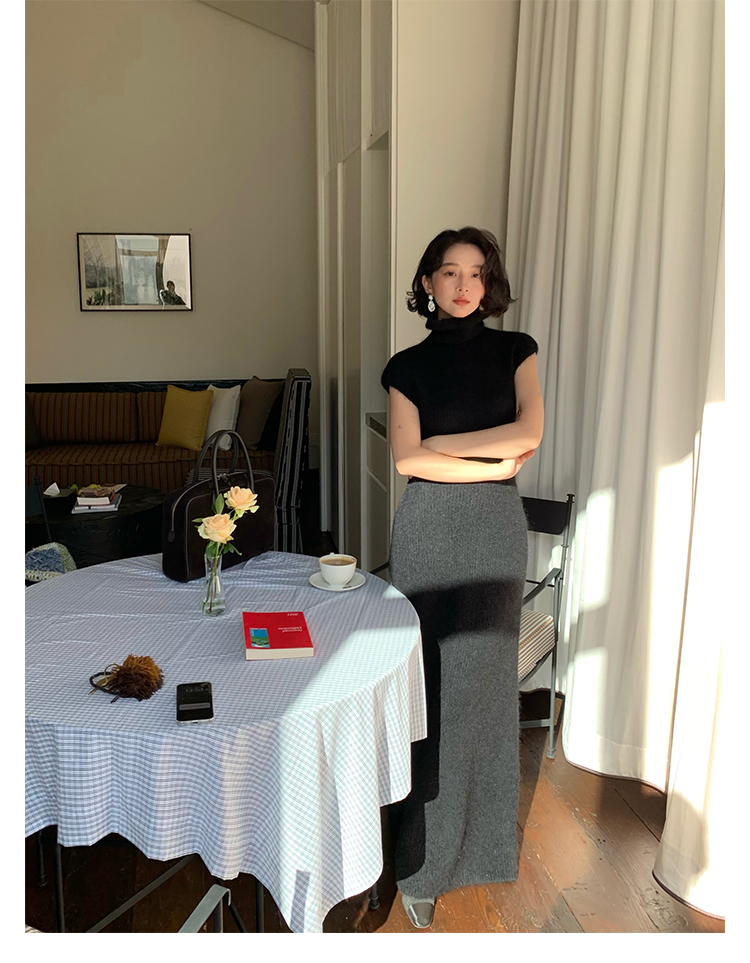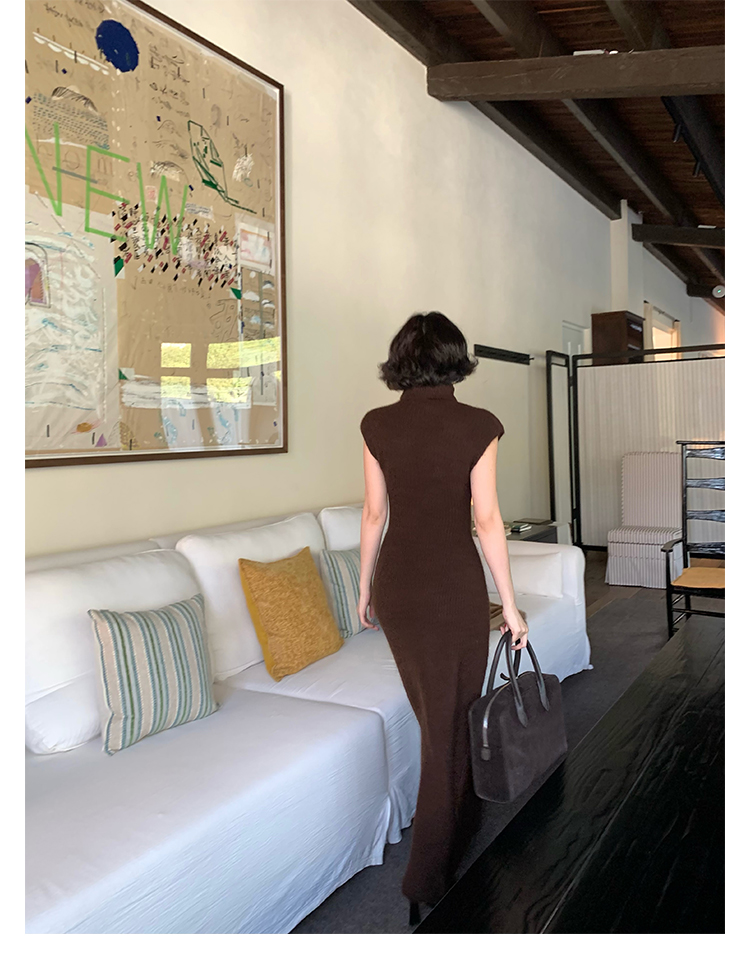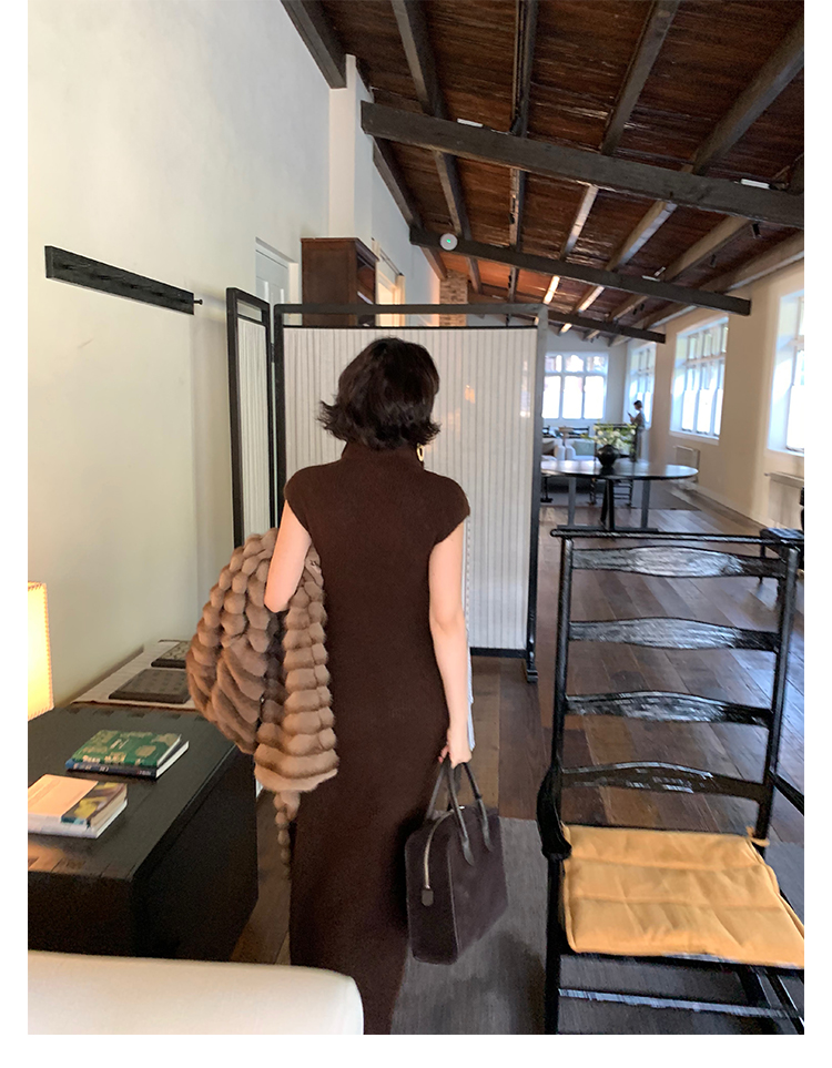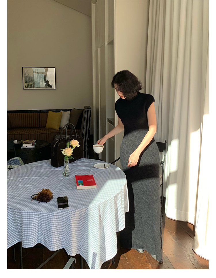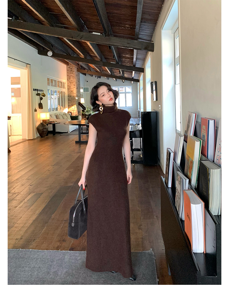 Warm Mohair Knit Sleeveless Base Dress – Hepburn High-Neck Style
