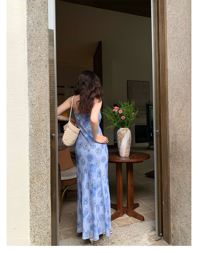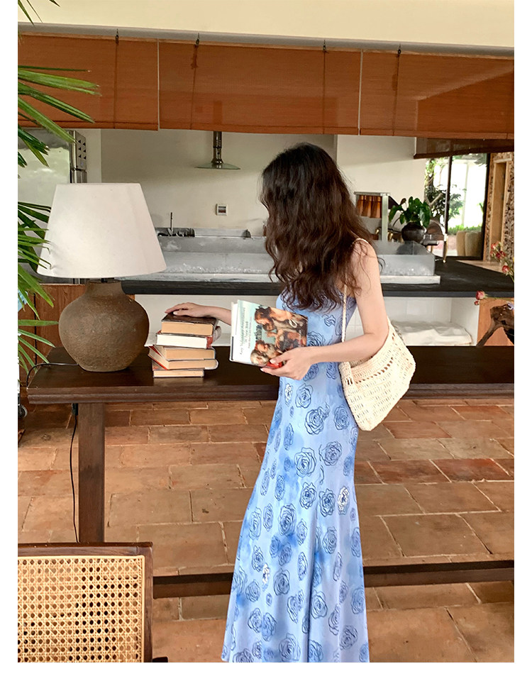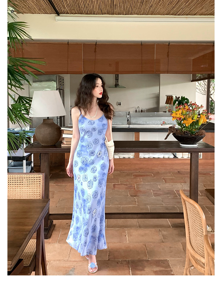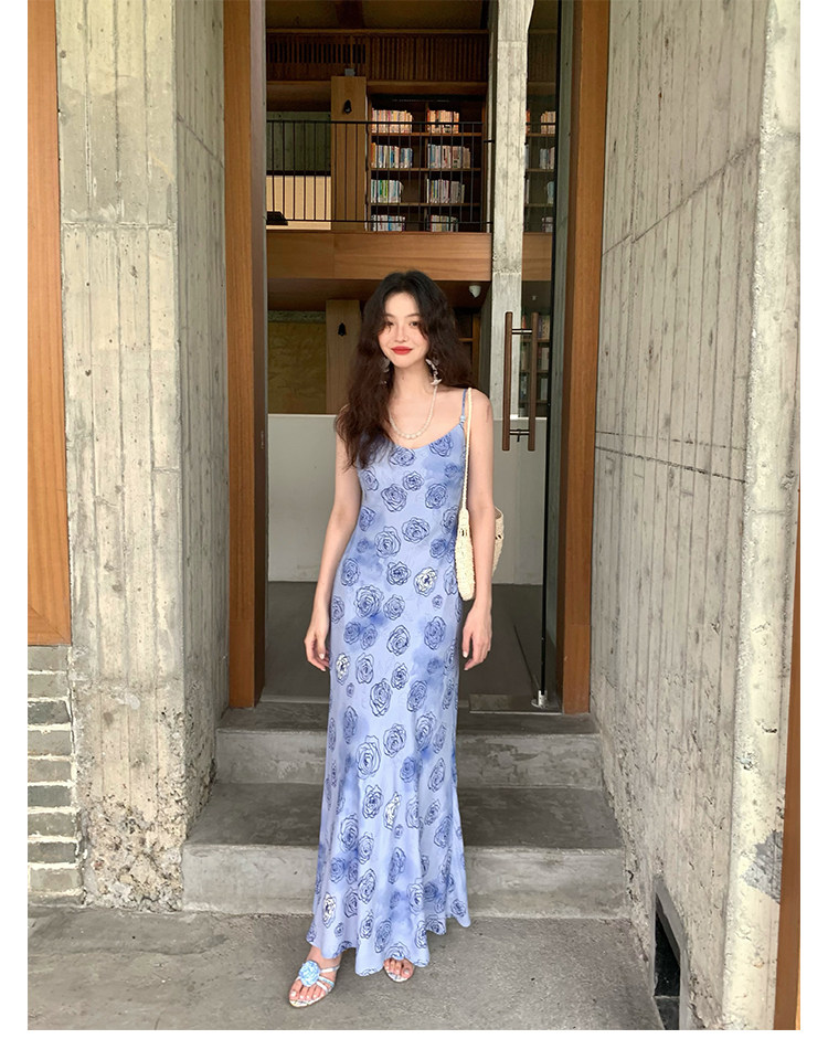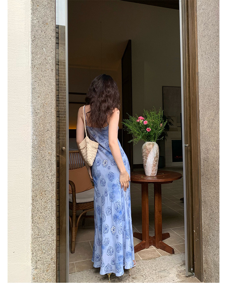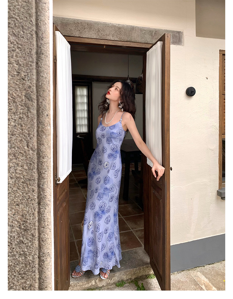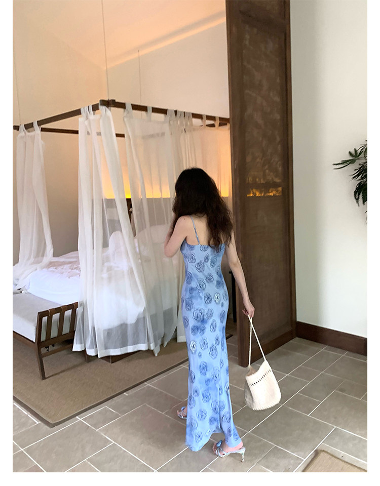 Rose Print Mermaid Slip Dress