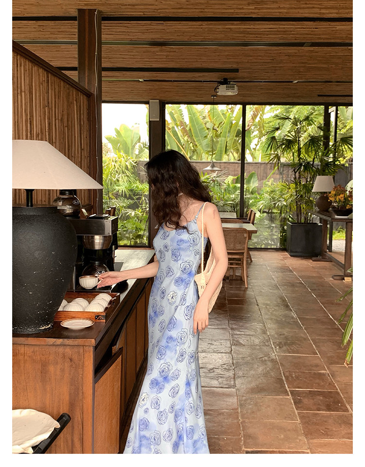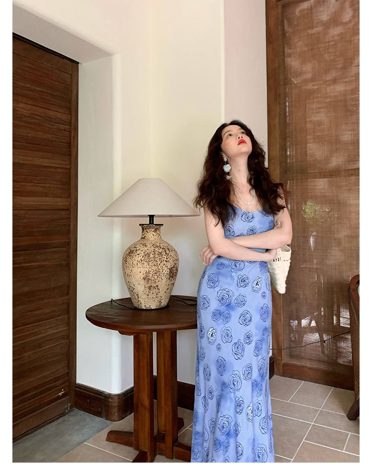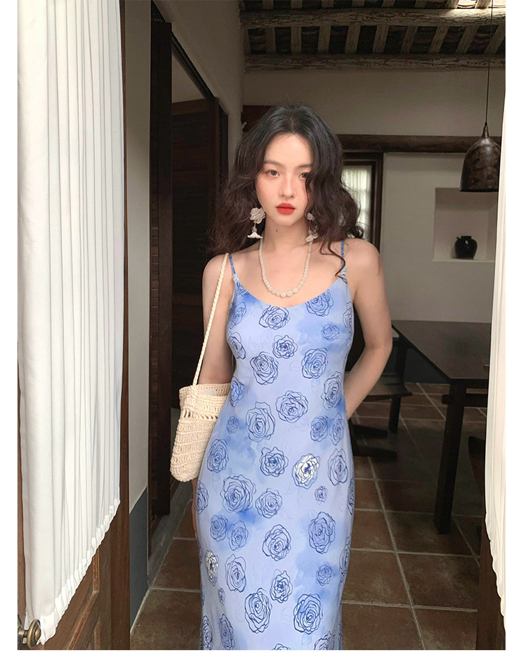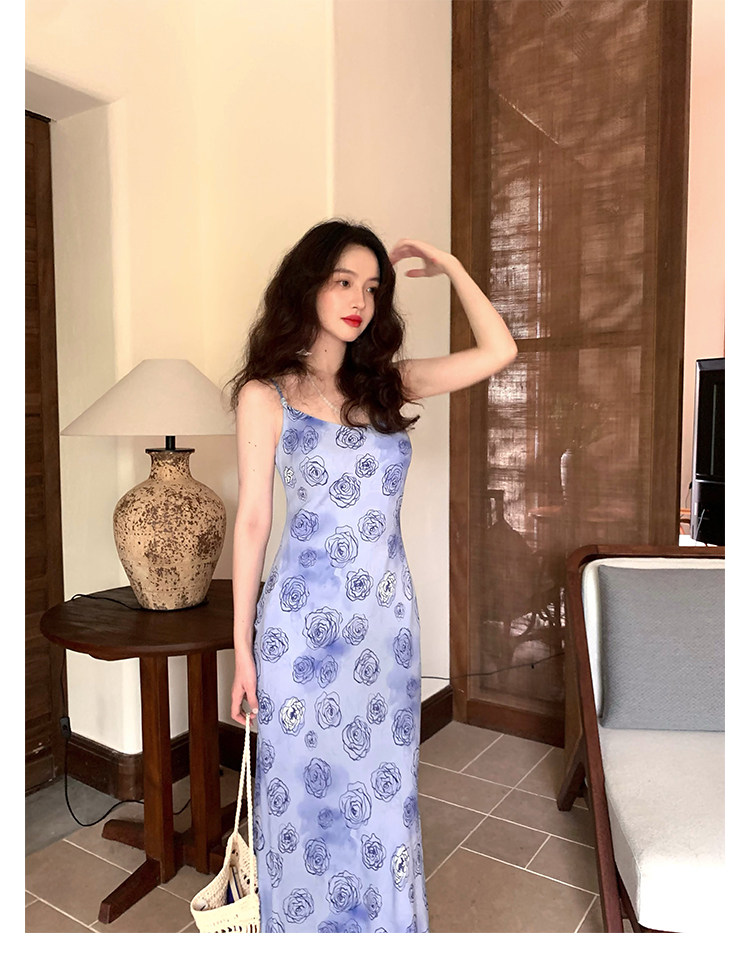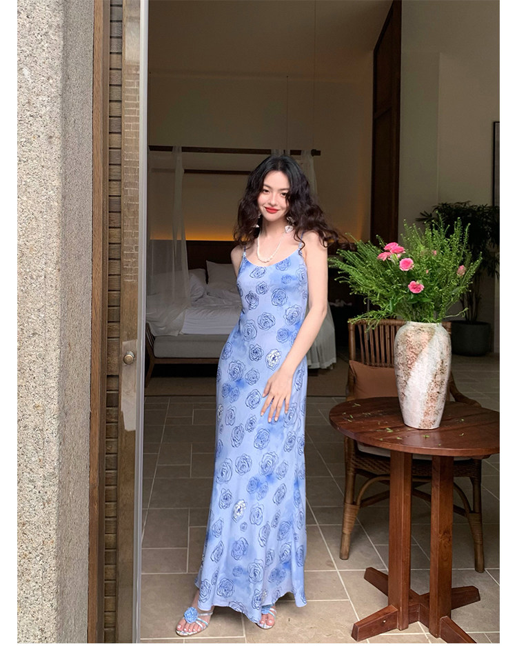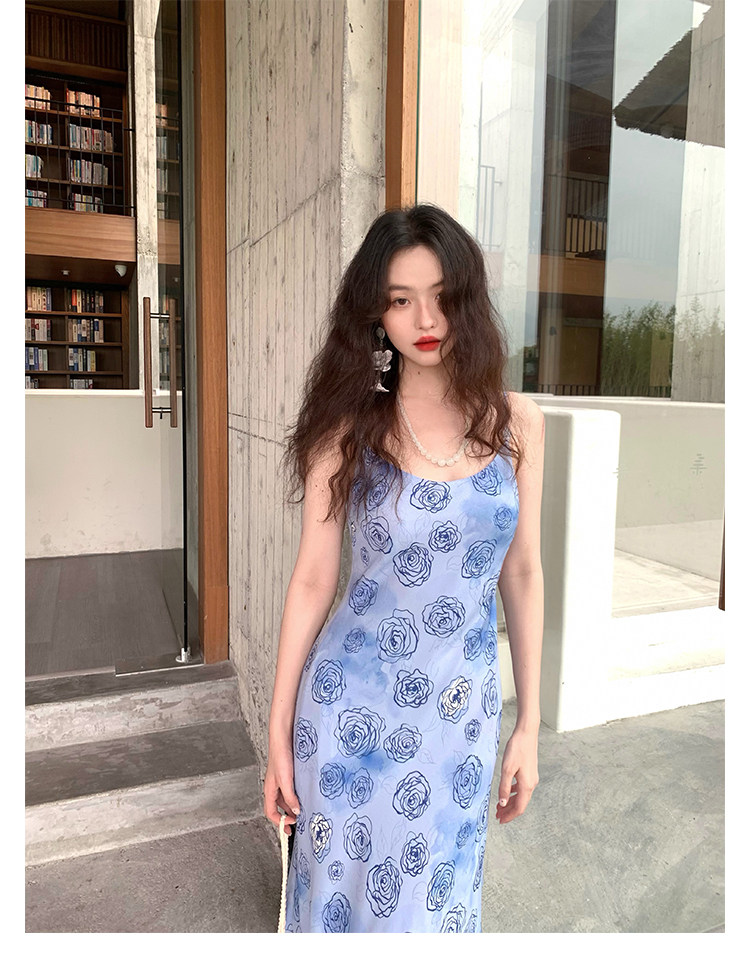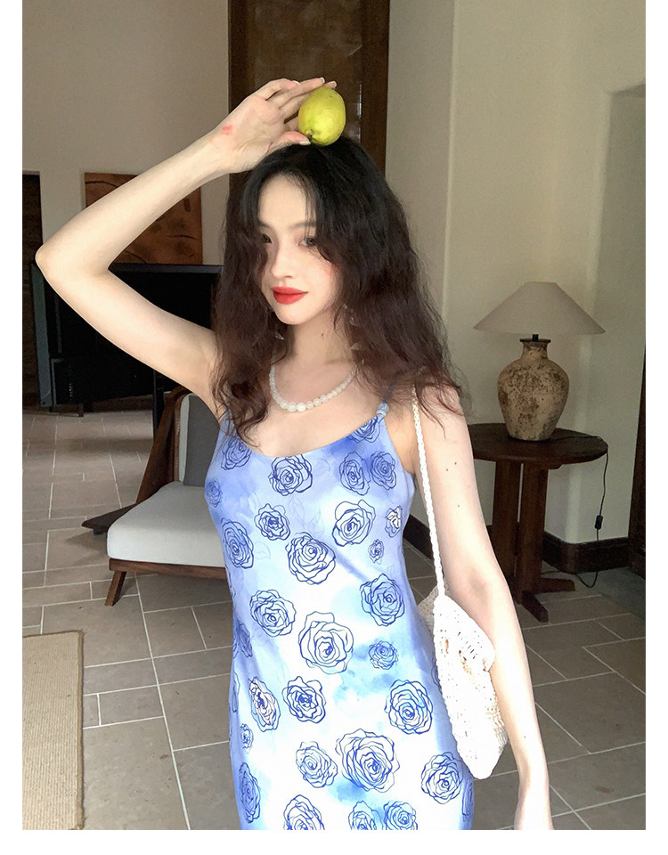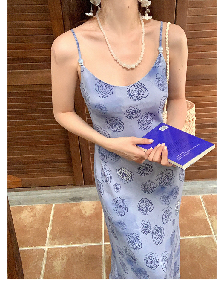 Rose Print Mermaid Slip Dress