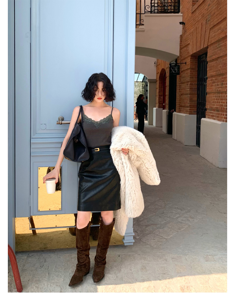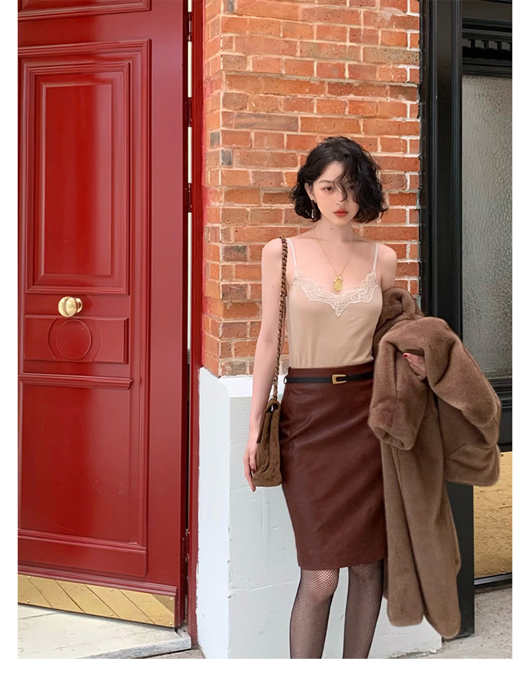 PU Leather Belted Mini Skirt – Caramel Cocoa Tones