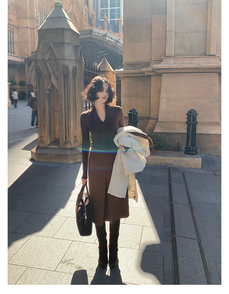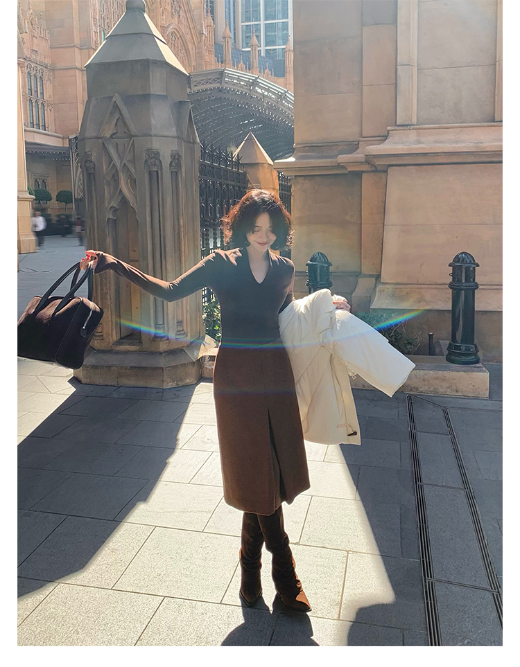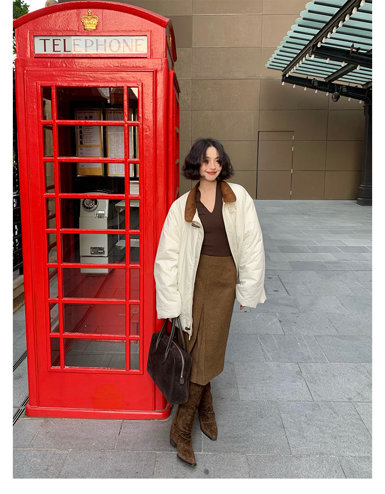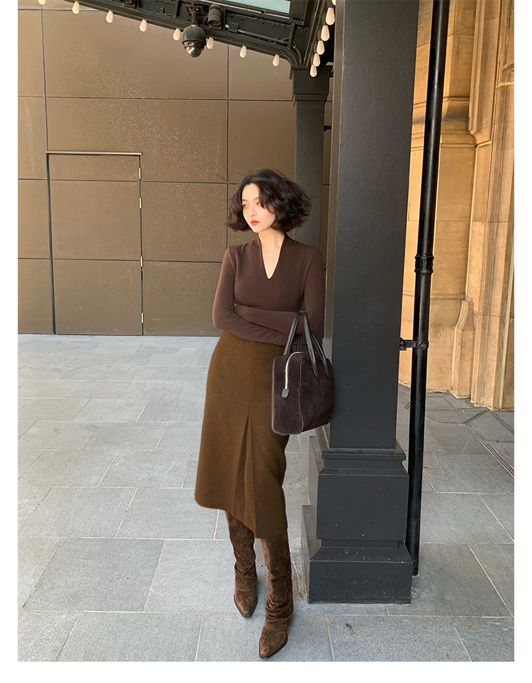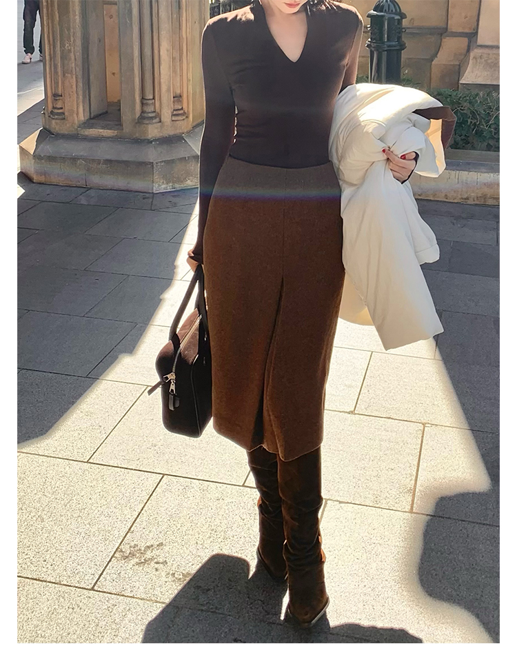 High-Waist Front Slit Wool Tweed Haute Skirt (Winter Jane)