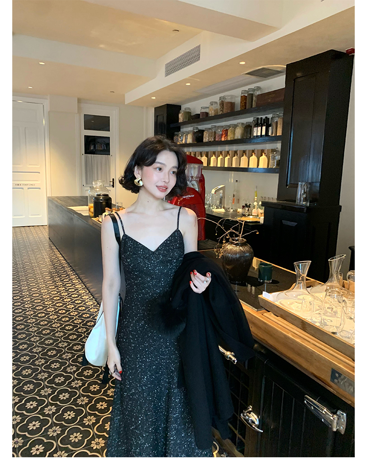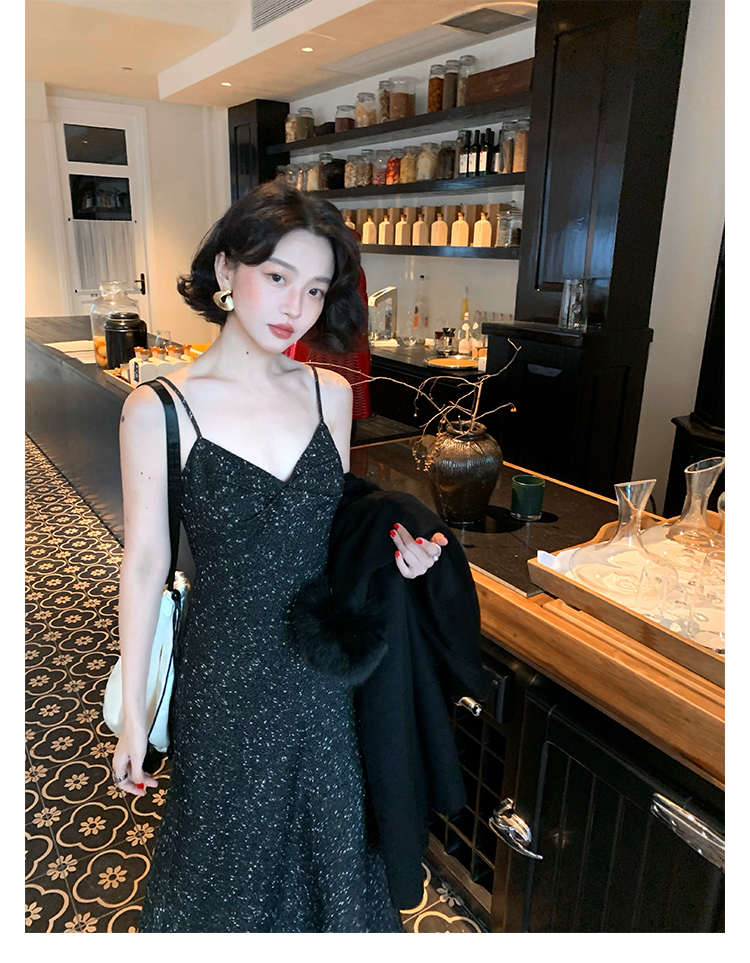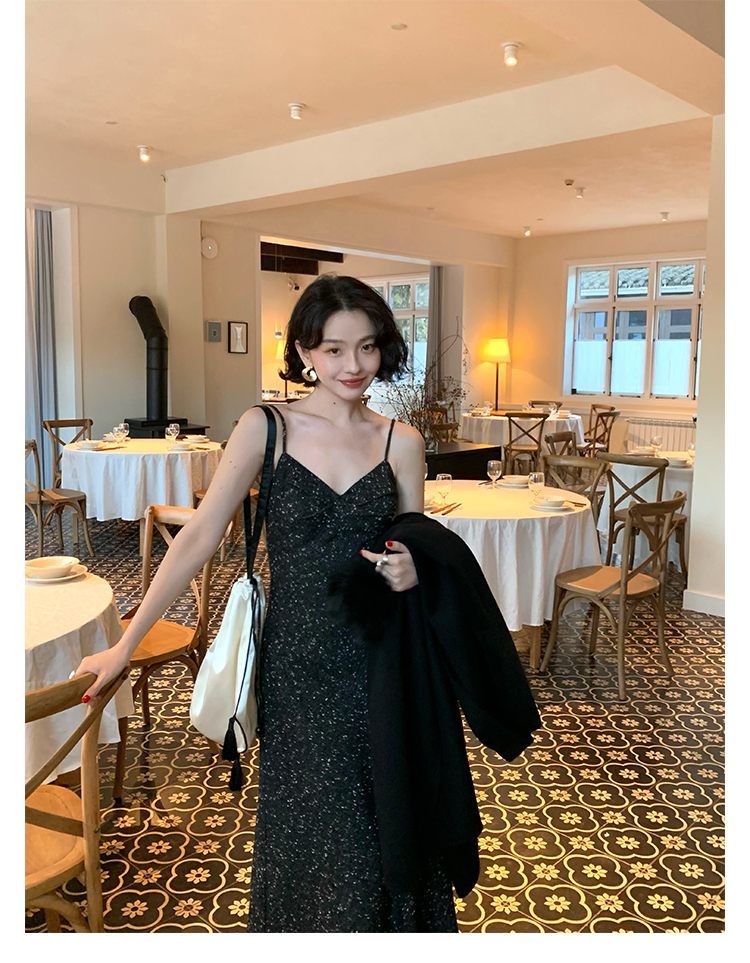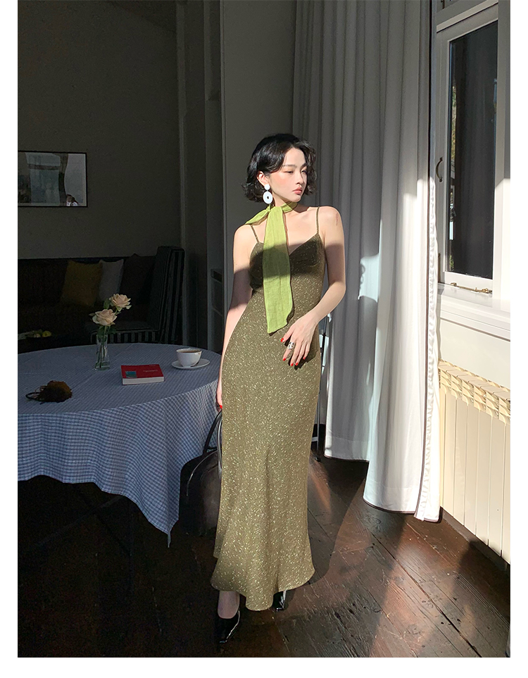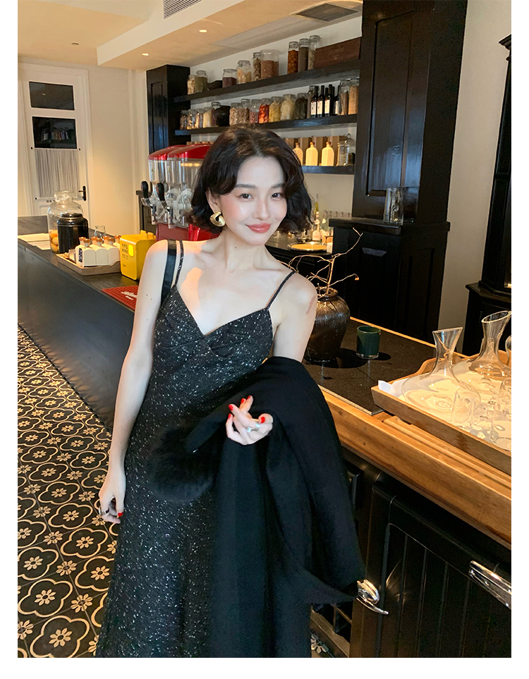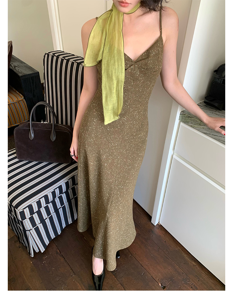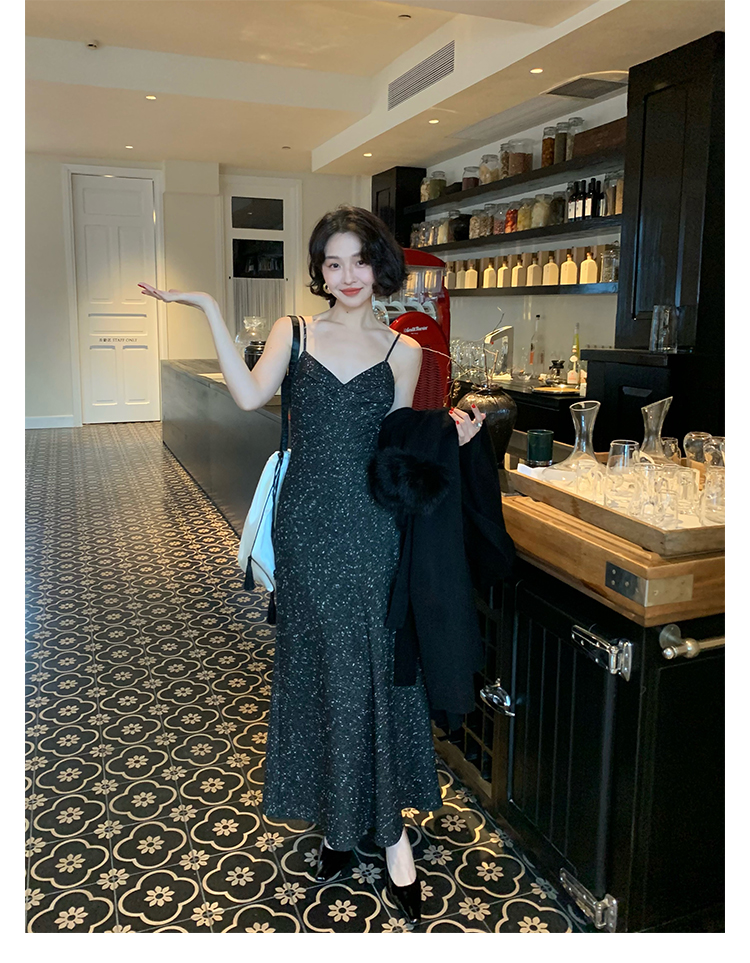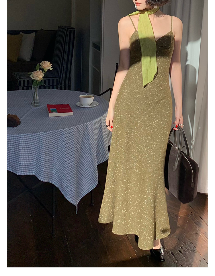 Dinner Streamer V-Neck Fishtail Suspender Dress – Sophisticated Flair