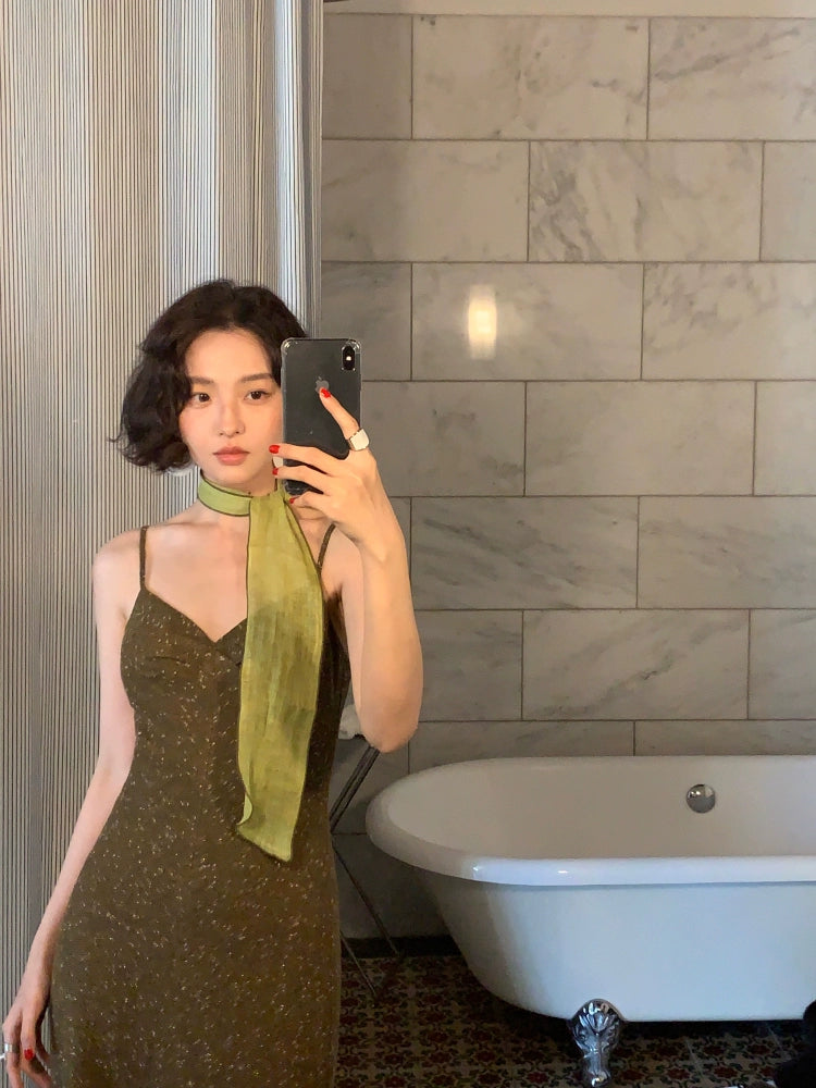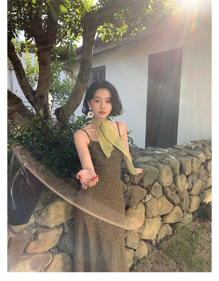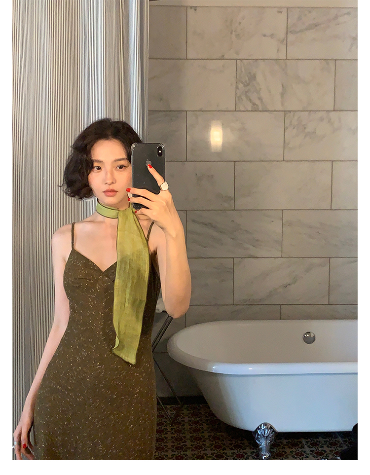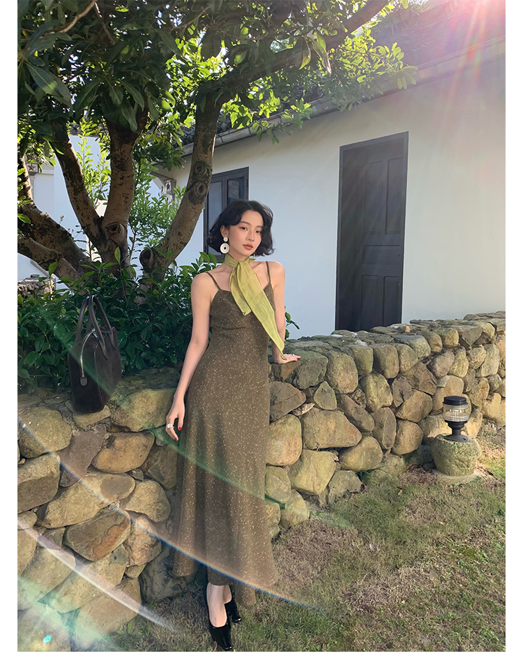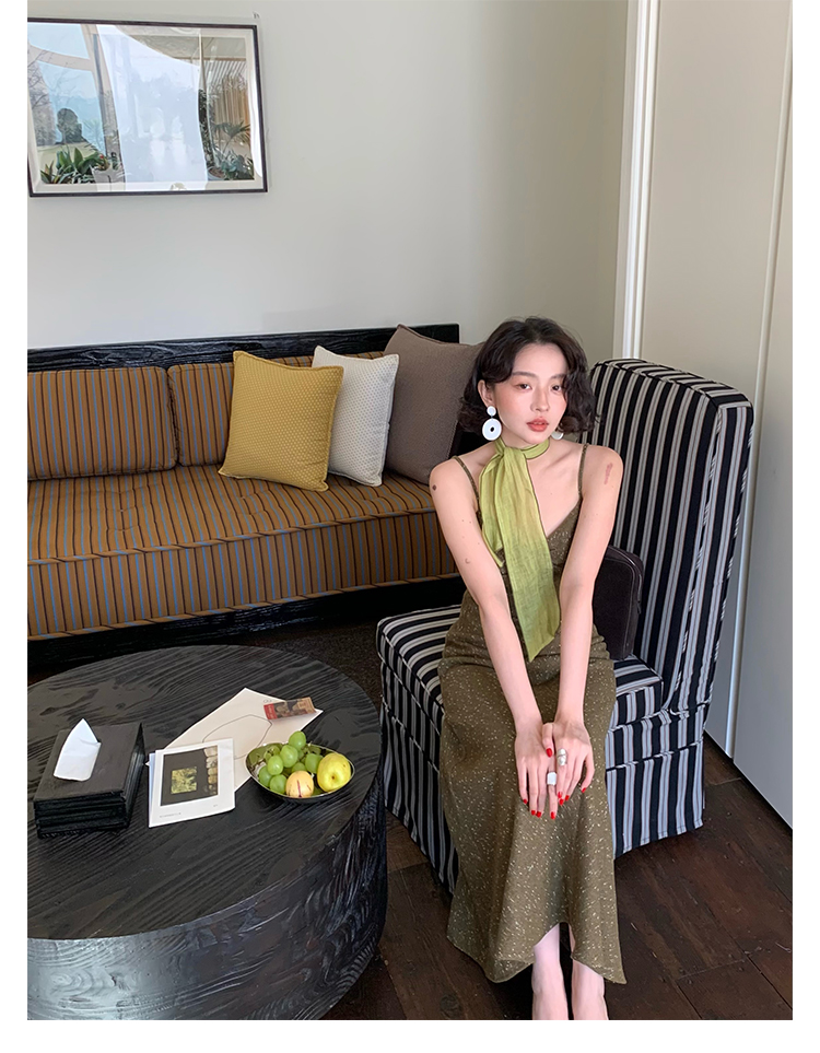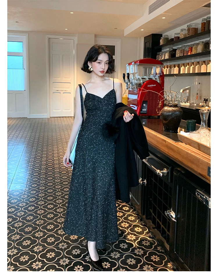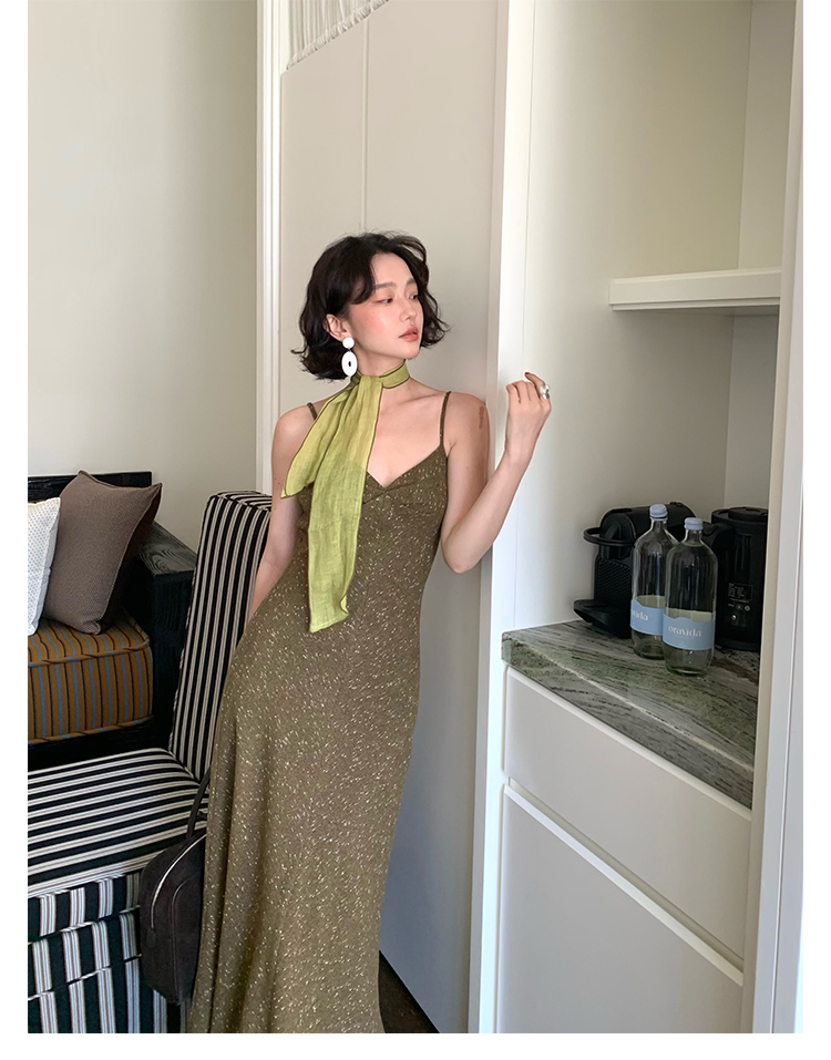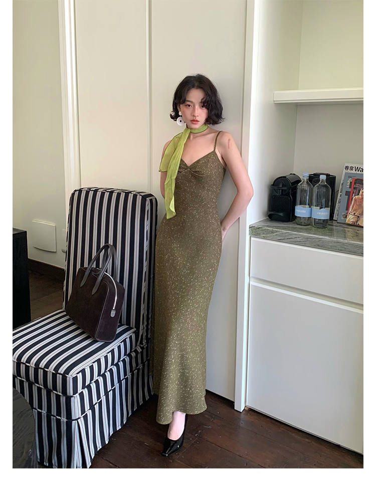 Dinner Streamer V-Neck Fishtail Suspender Dress – Sophisticated Flair