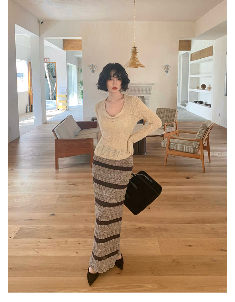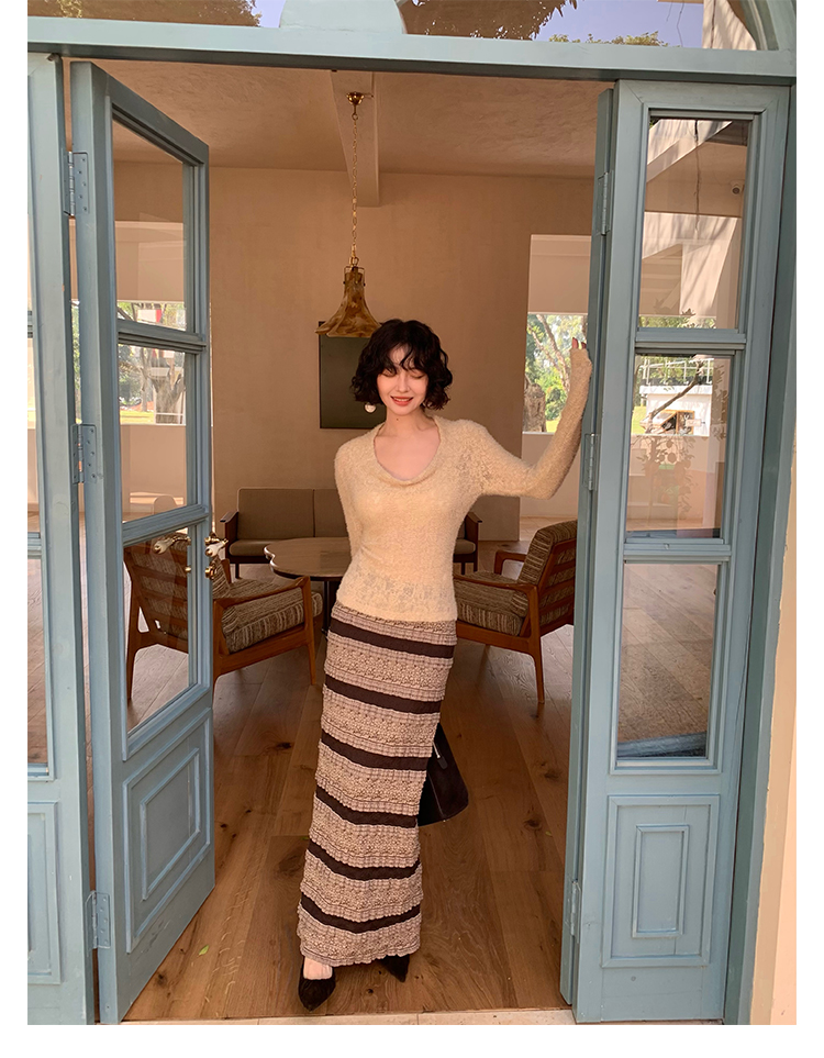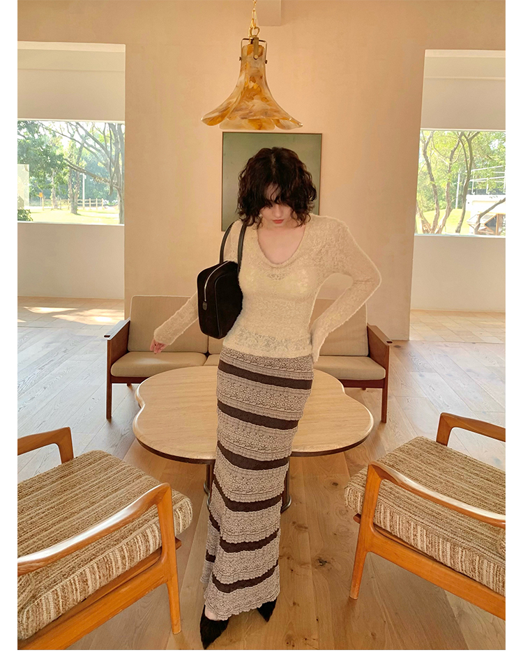 Striped Lace High-Waisted Skirt – Retro Party Style