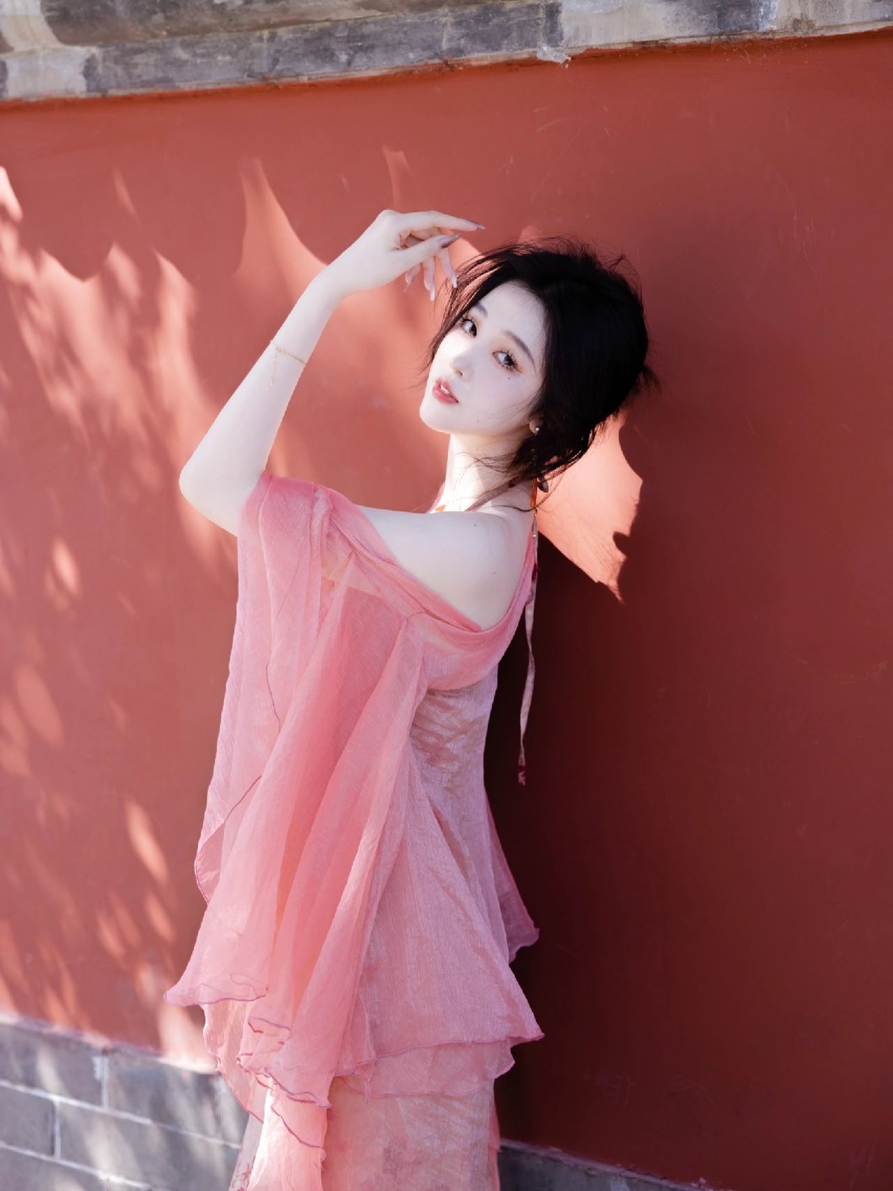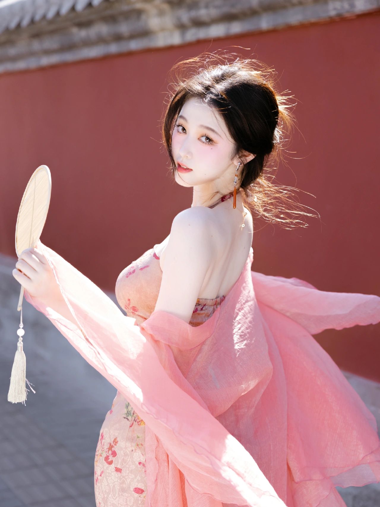 Pink Halterneck Cheongsam Dress – Elegant Hanfu-Inspired Bridal Gown