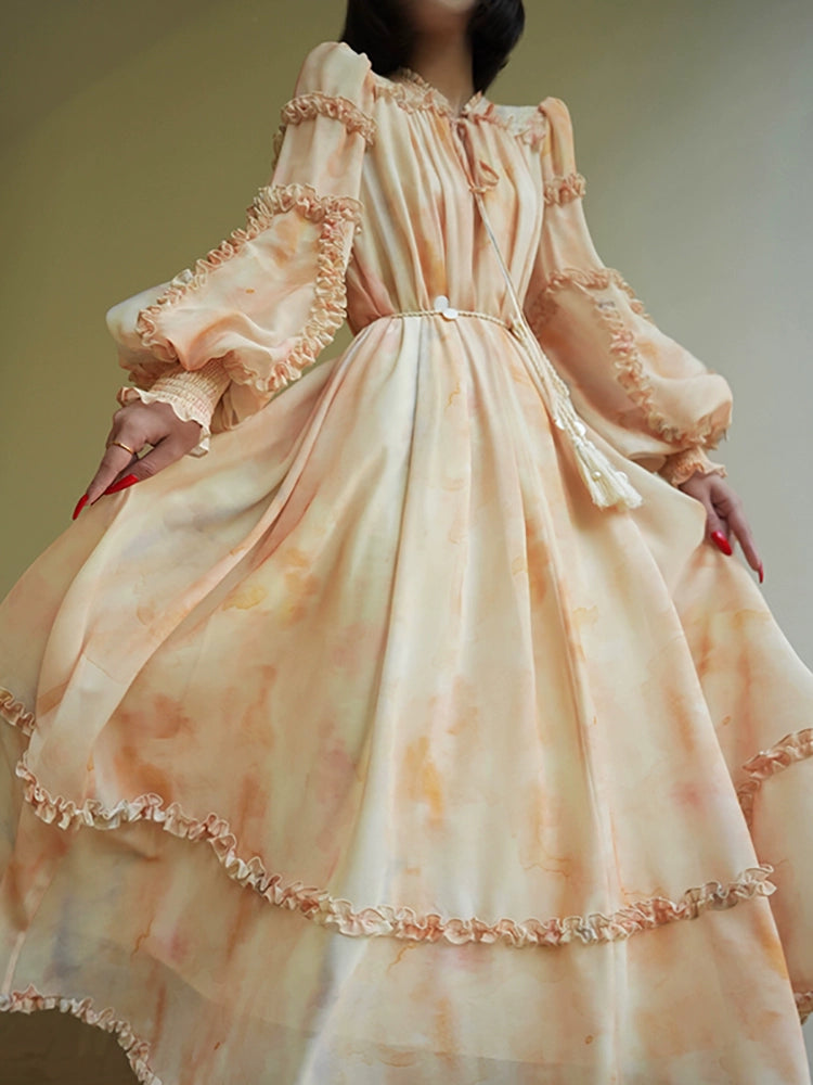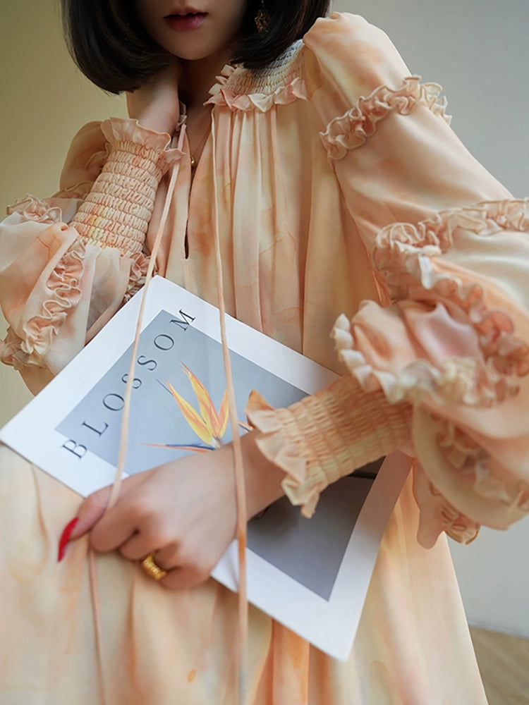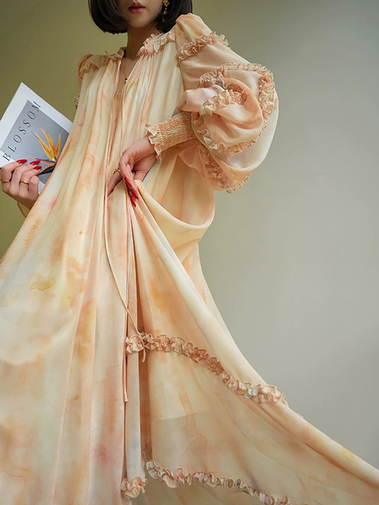 French Smudge Print Resort Dress – Loose Swing Silhouette