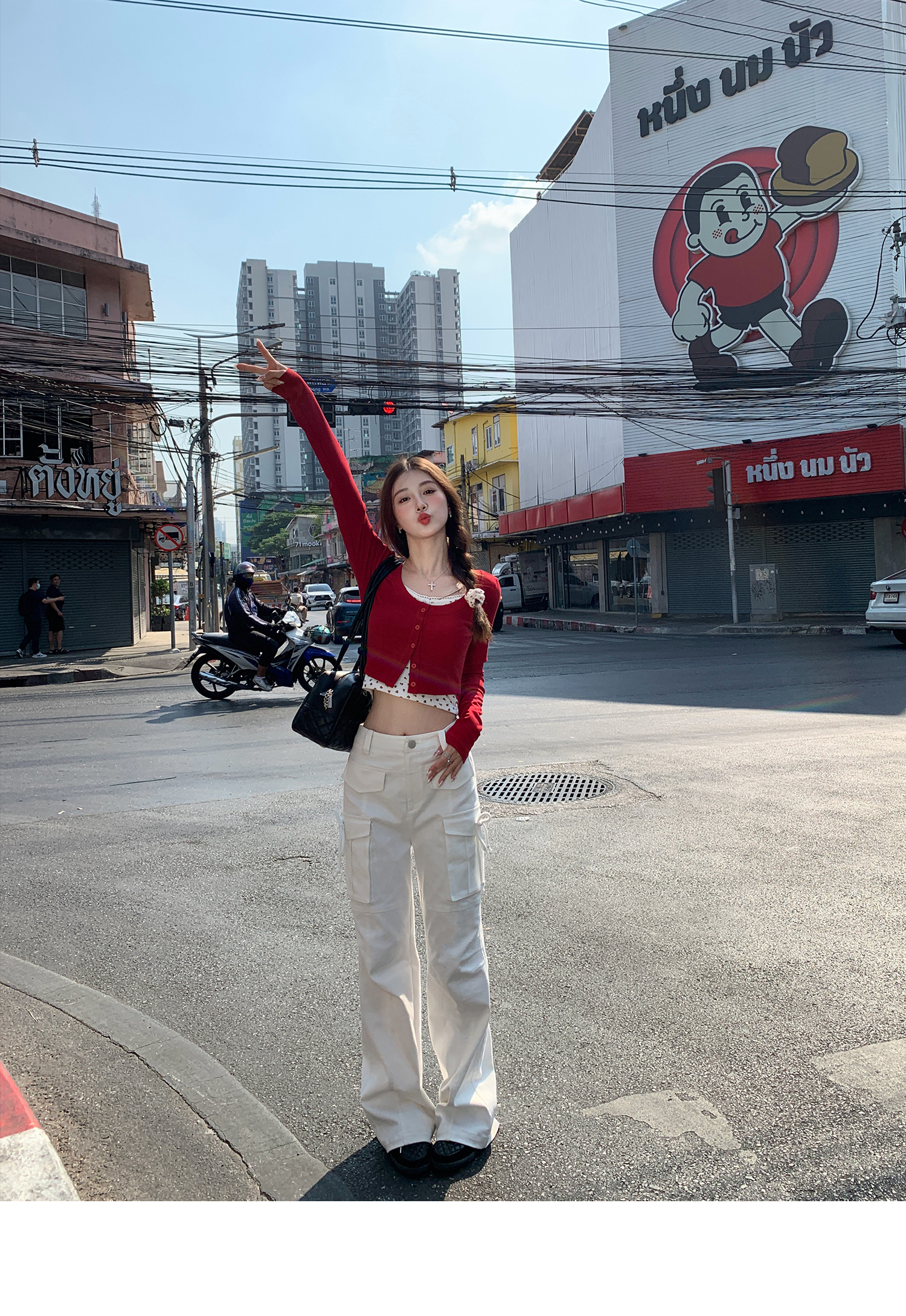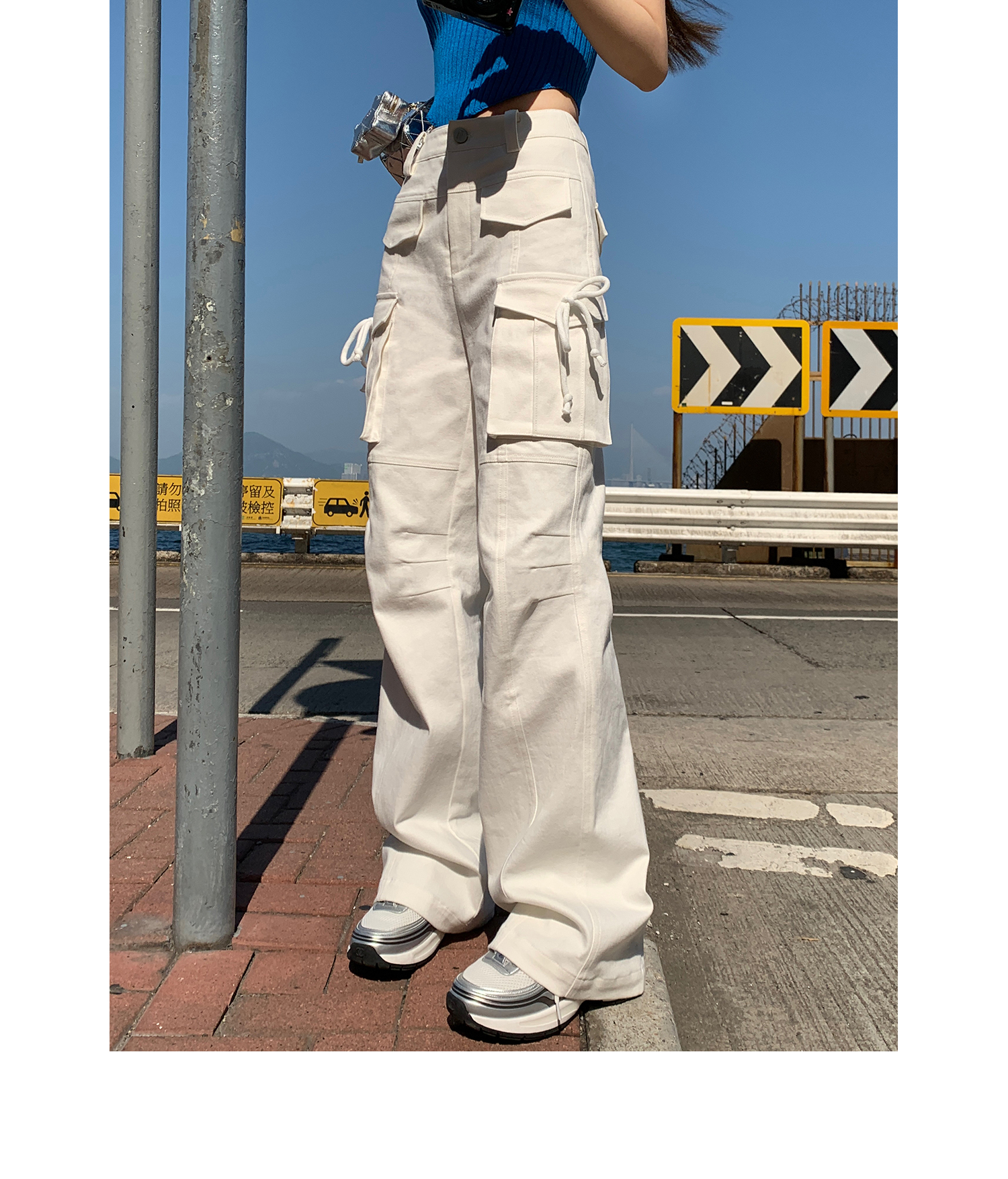 [Yuppie White Pants 2.0] Retro Mid-Waist Straight-Leg Wide-Leg Pants - Women's Work Style