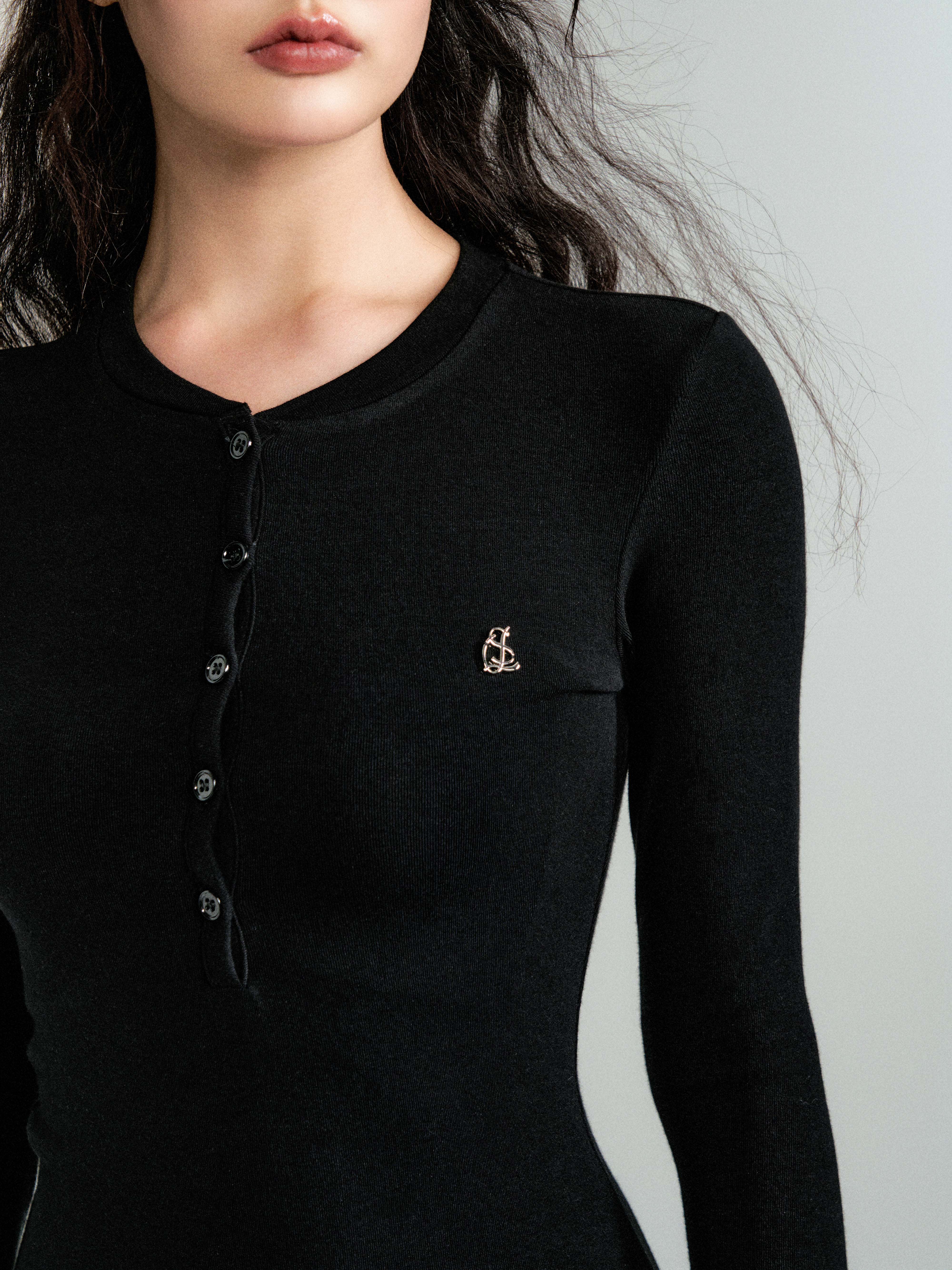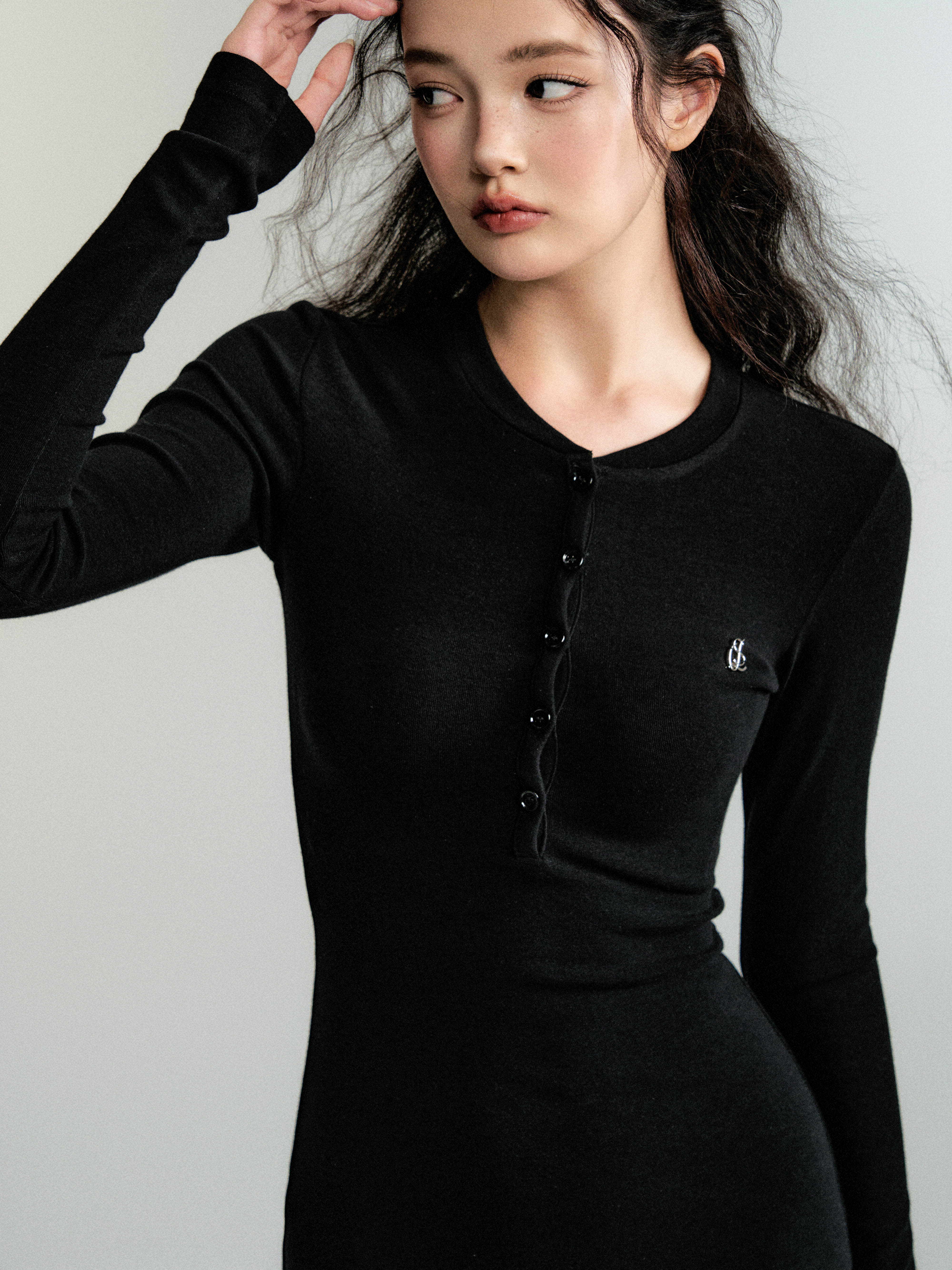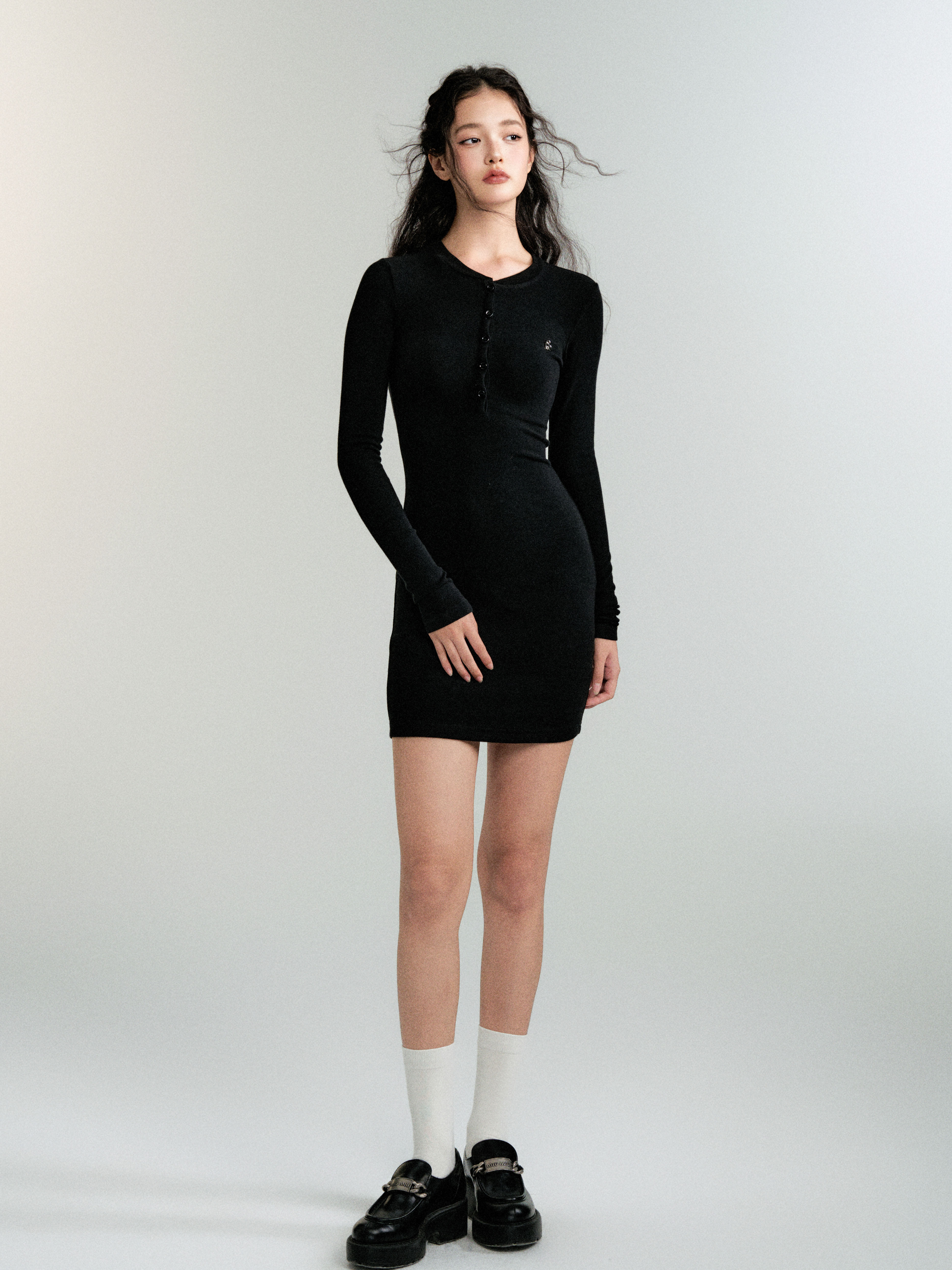 Henley Collar Long Sleeve Knit Hip Dress (Pre-Fall Edition)