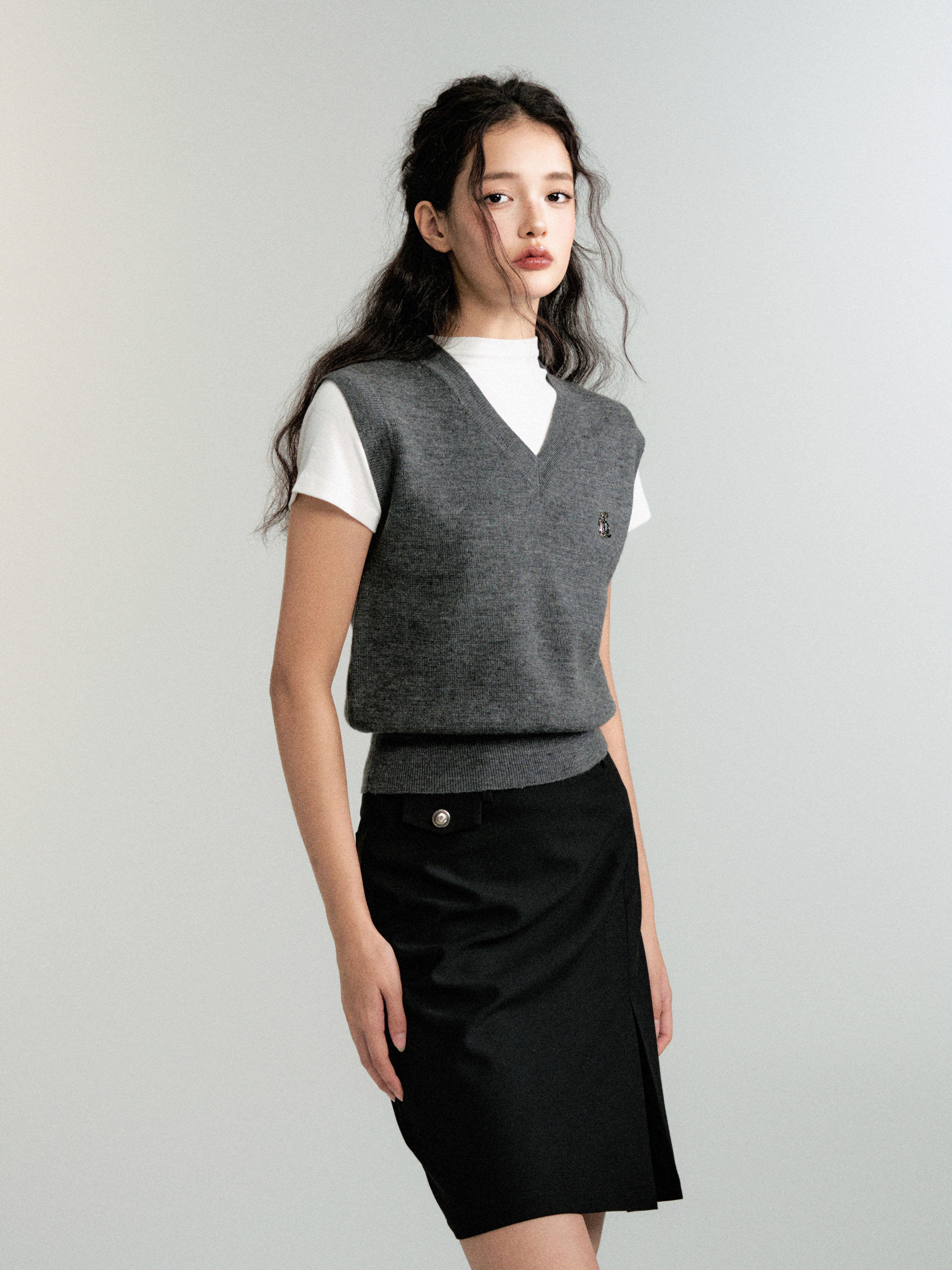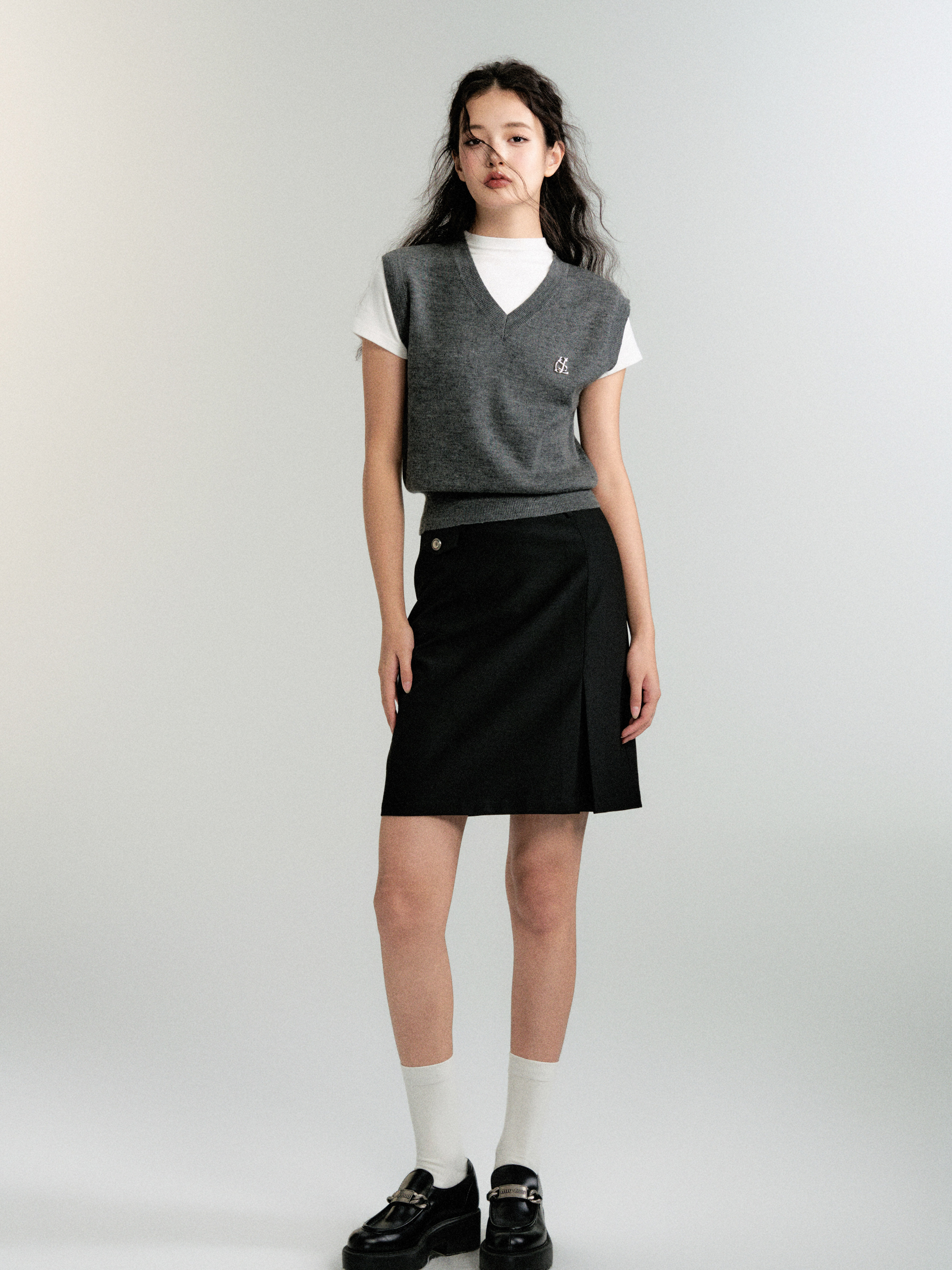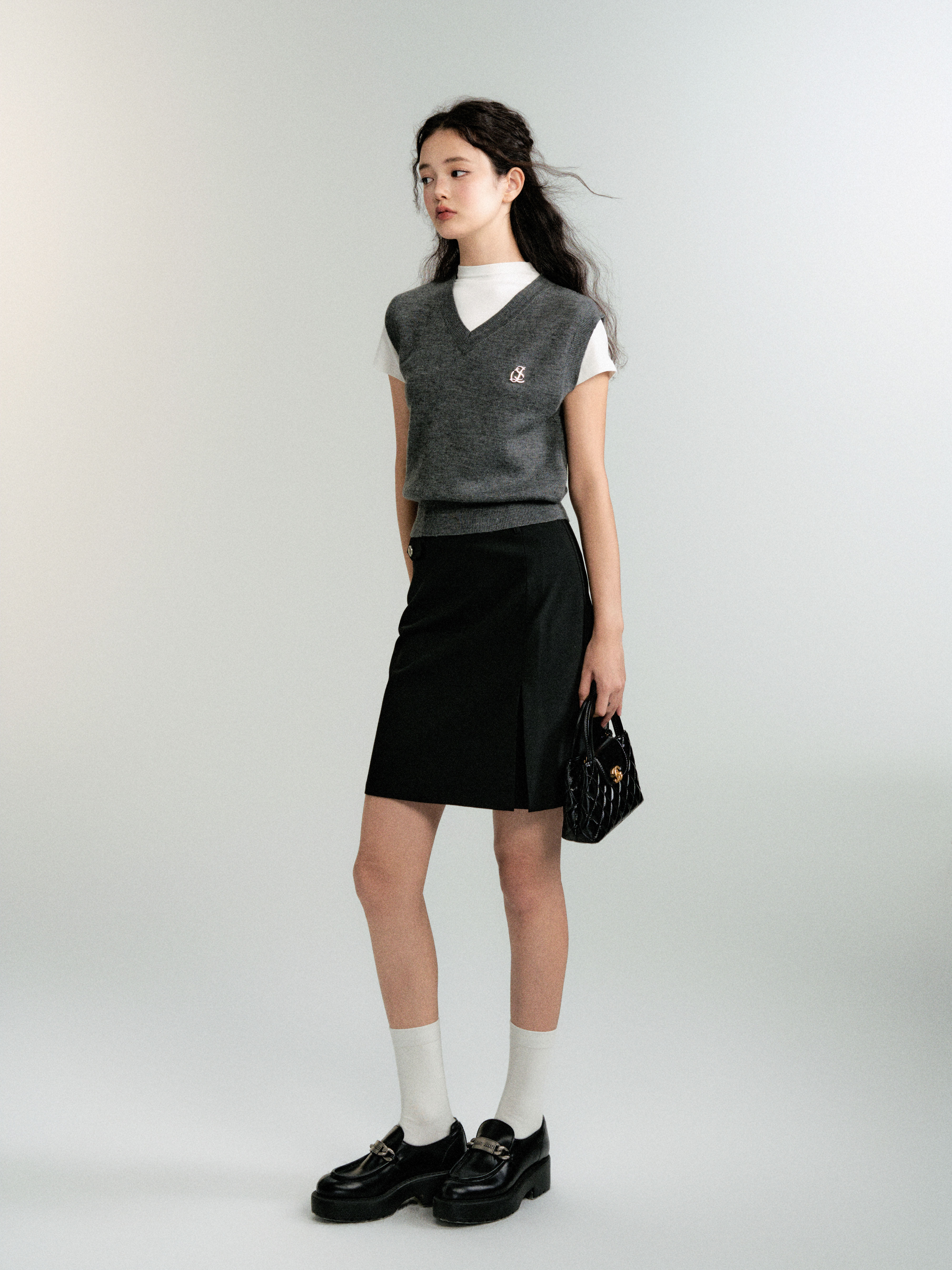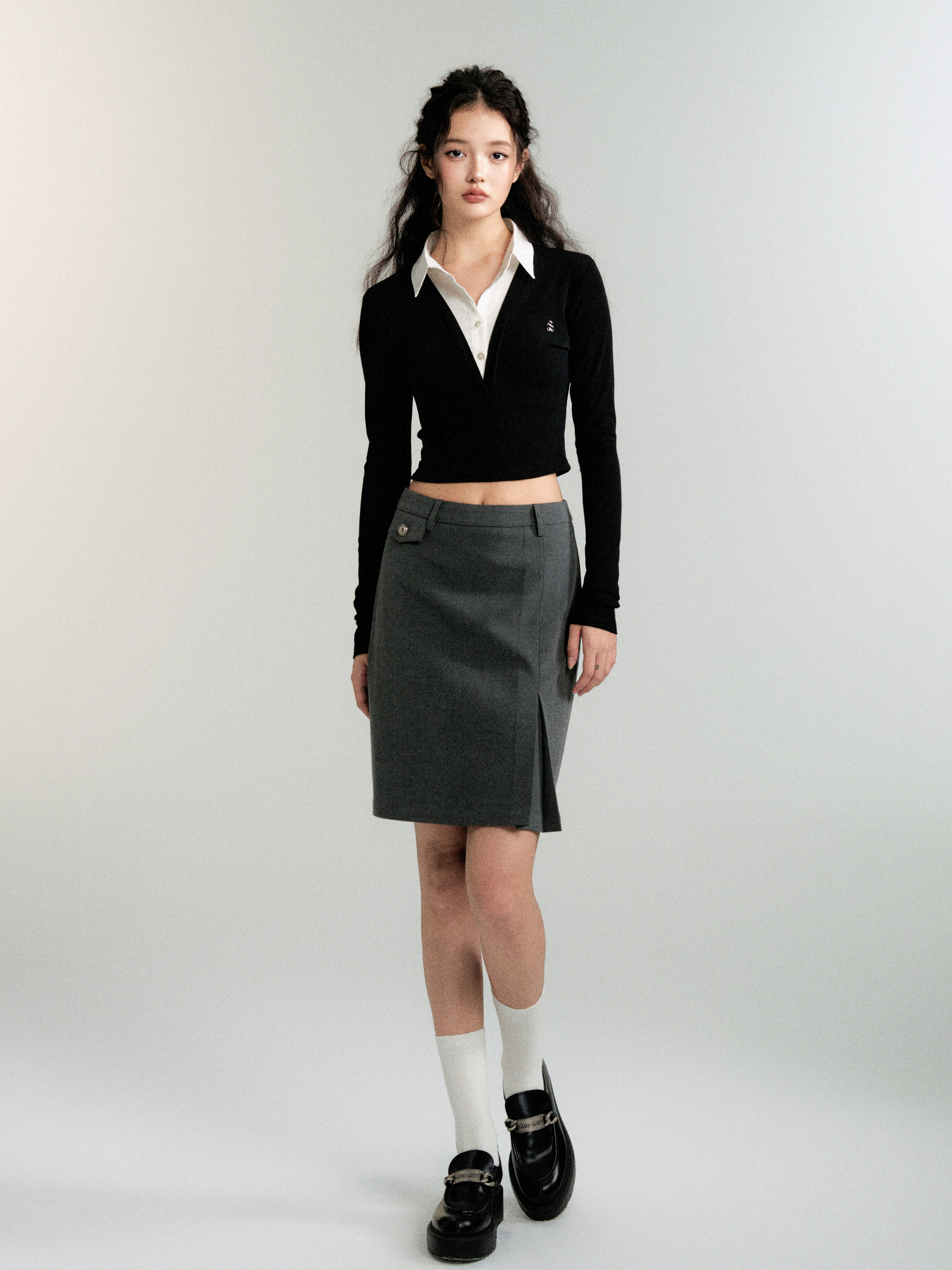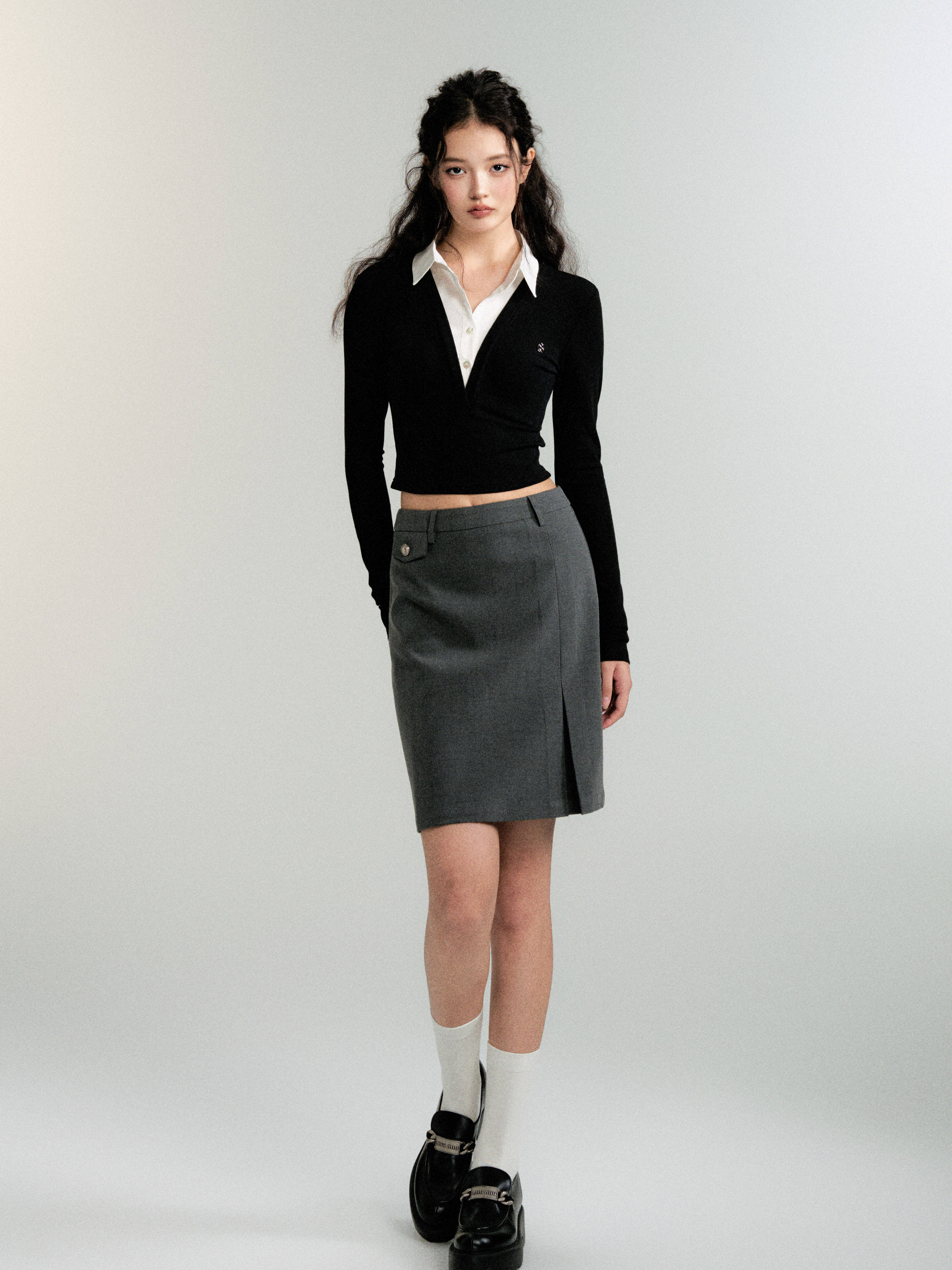 Old Money Straight-Leg Slit Suit Skirt (Versatile Slim Fit)