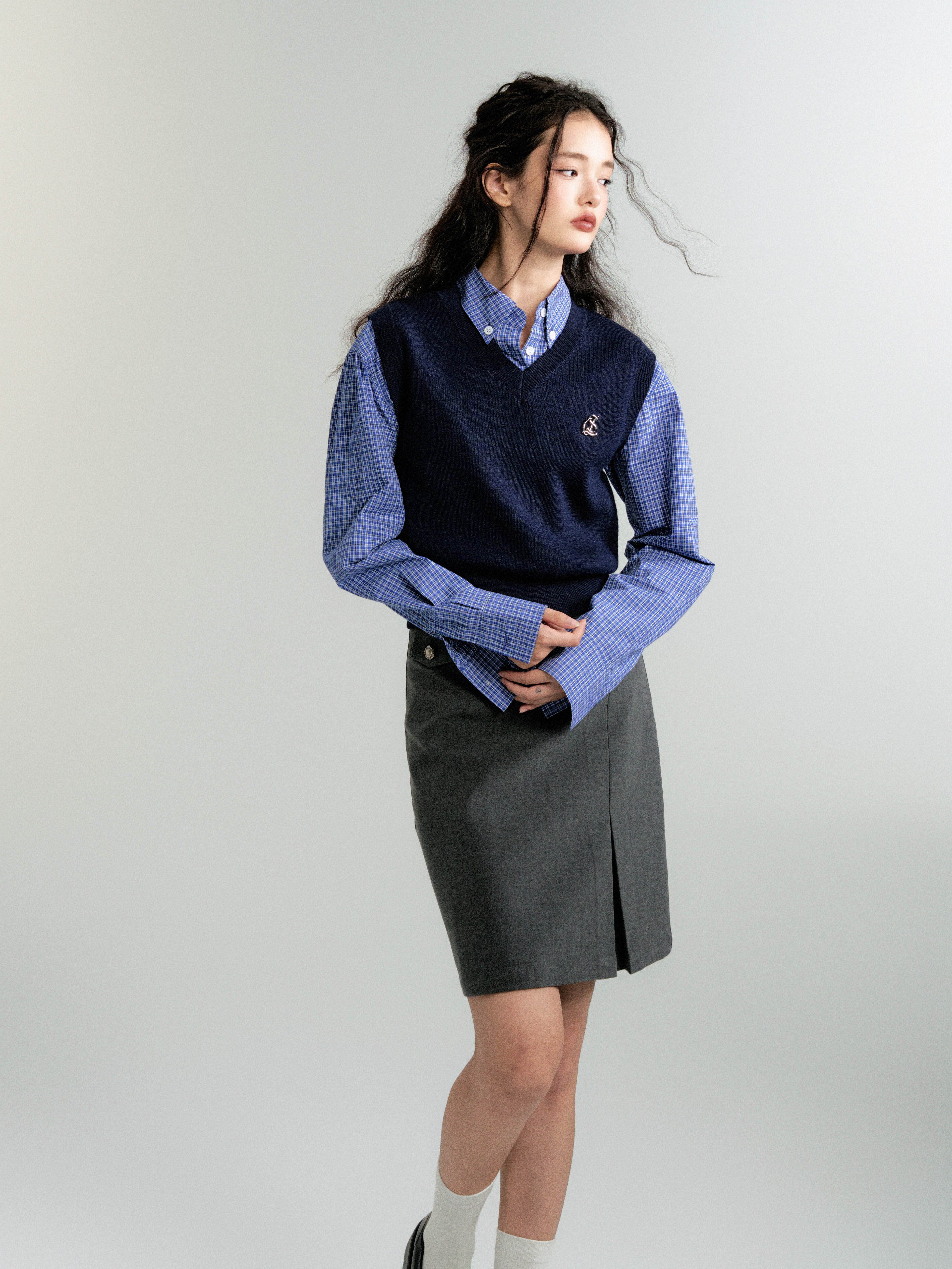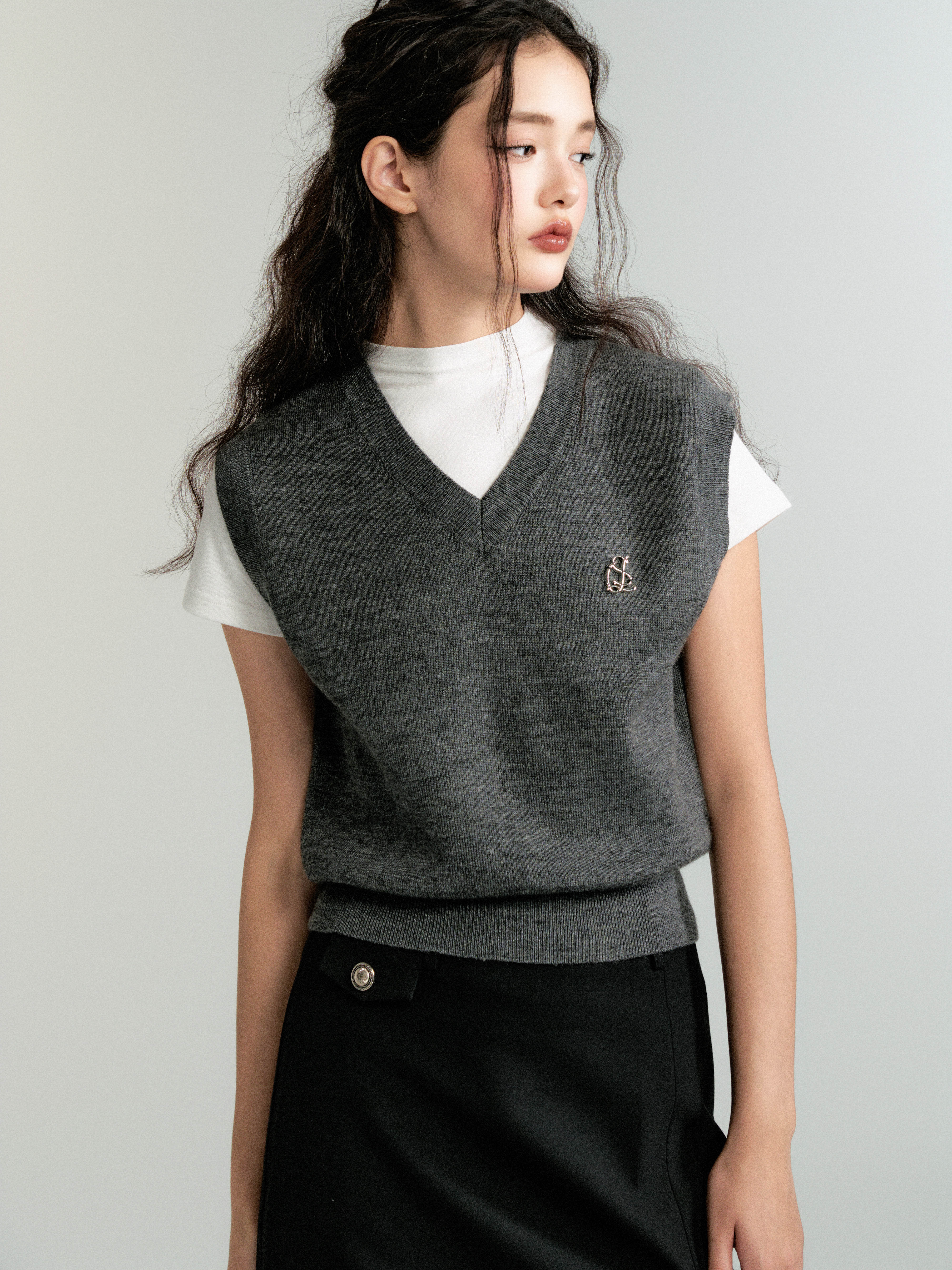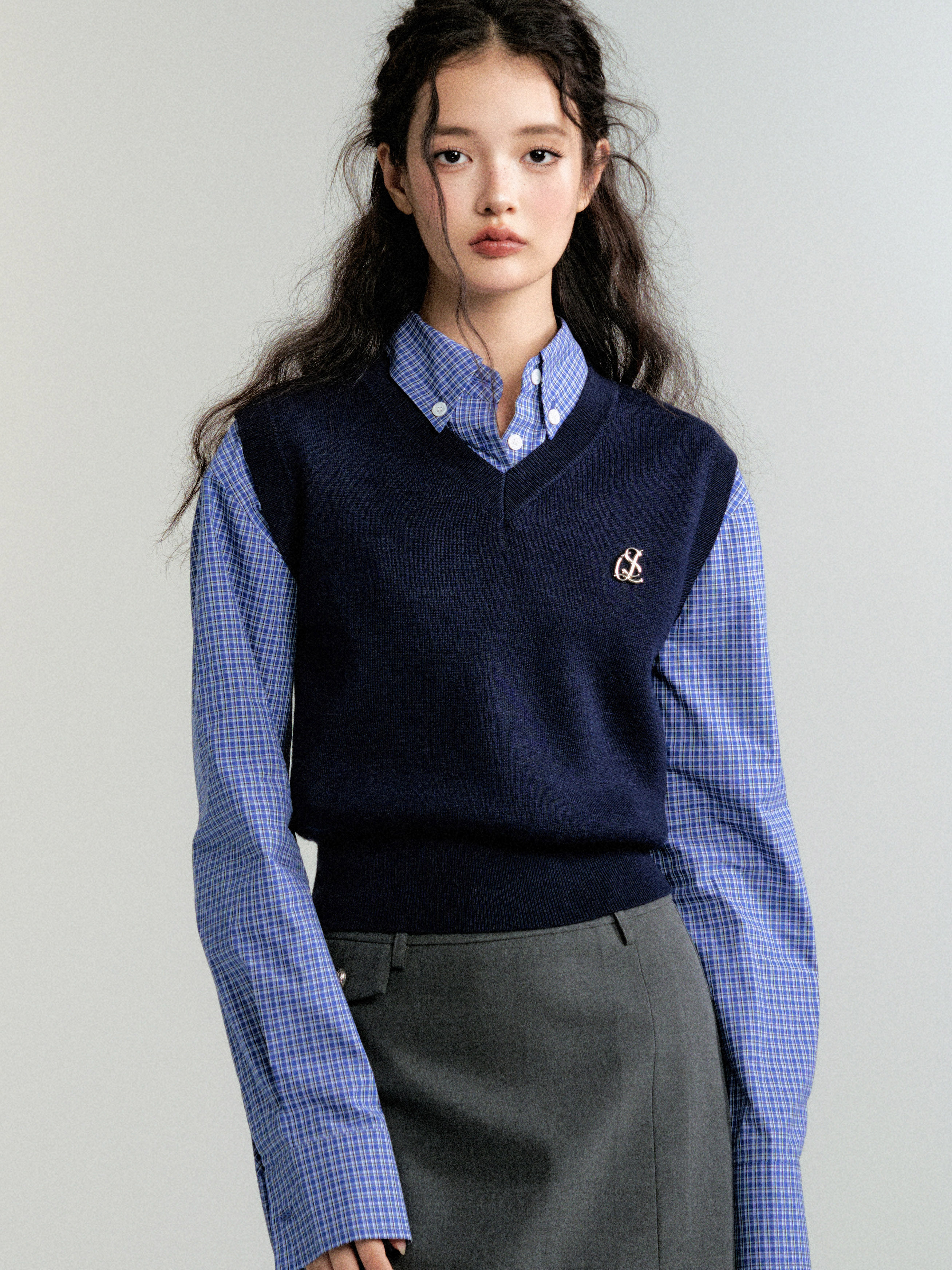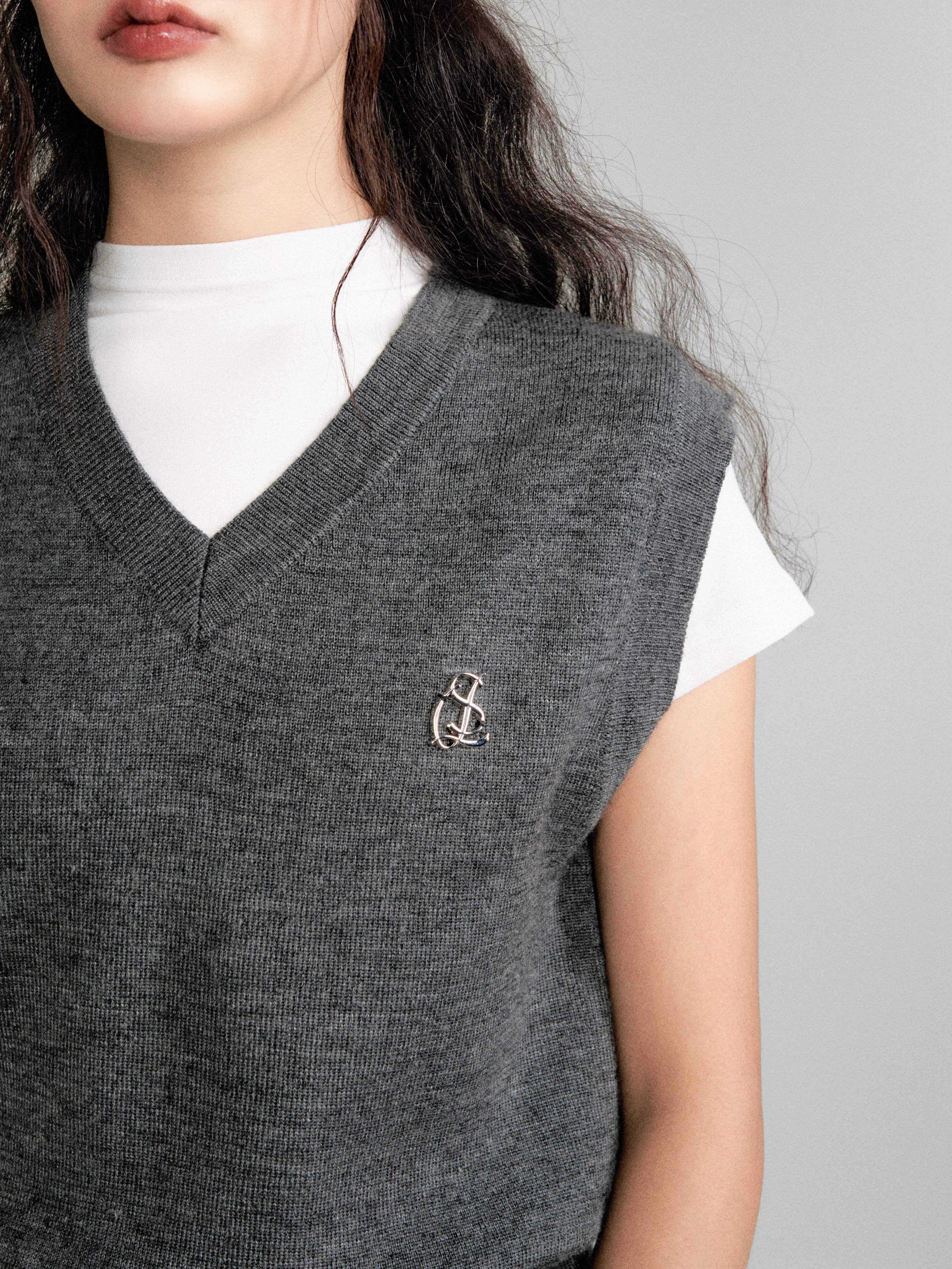 Vintage Preppy V-Neck Wool Knit Vest for Layered Looks