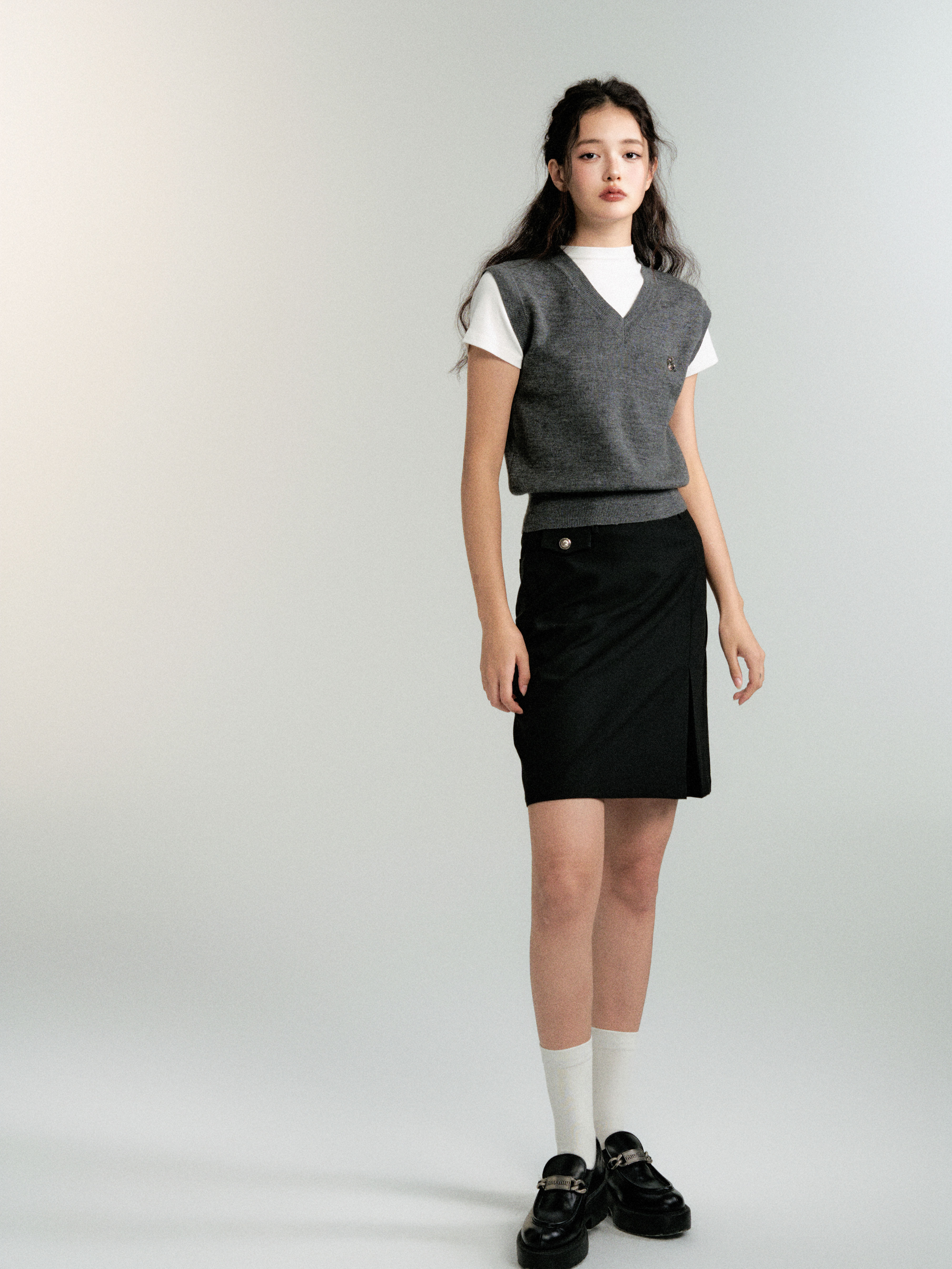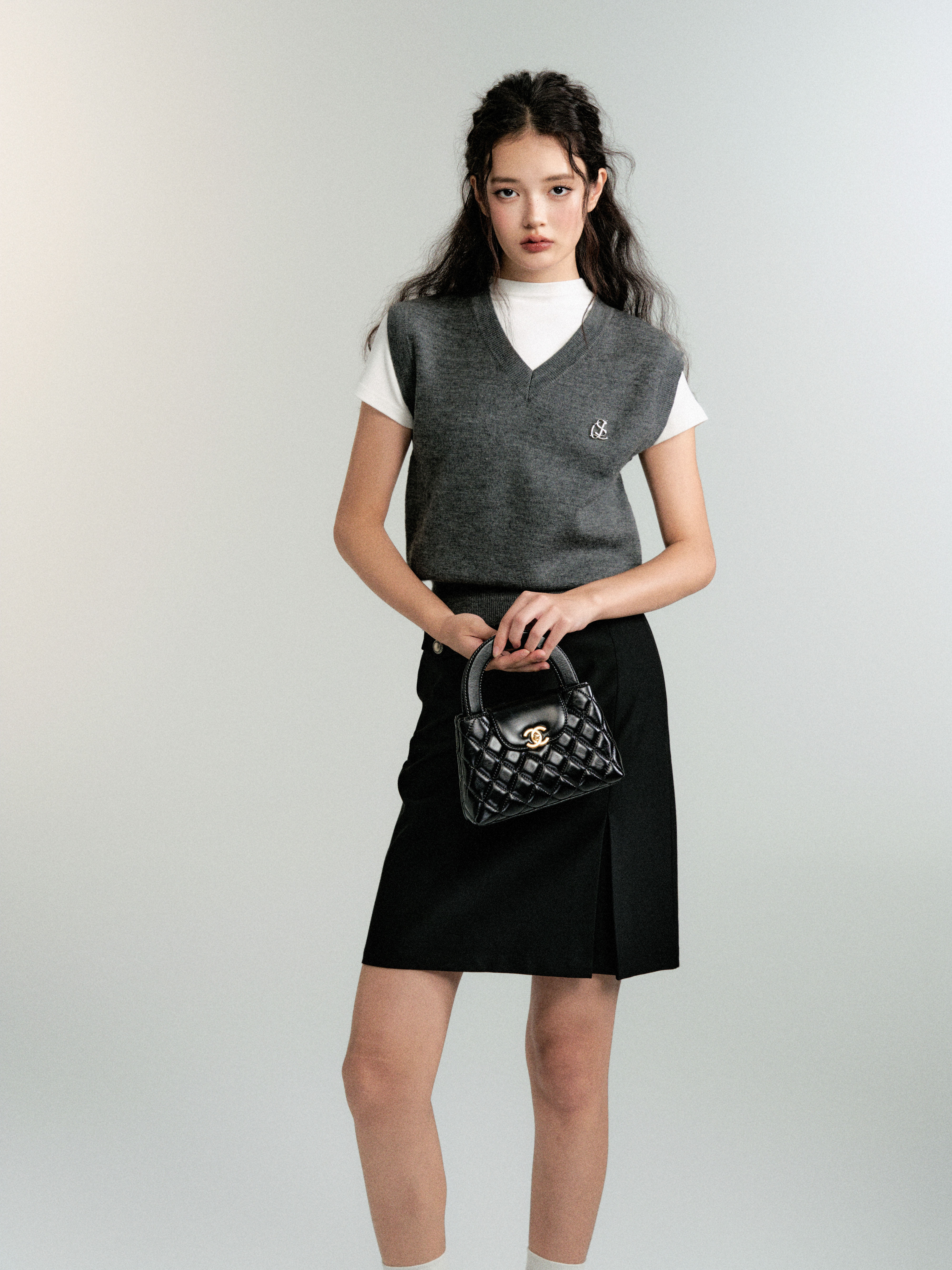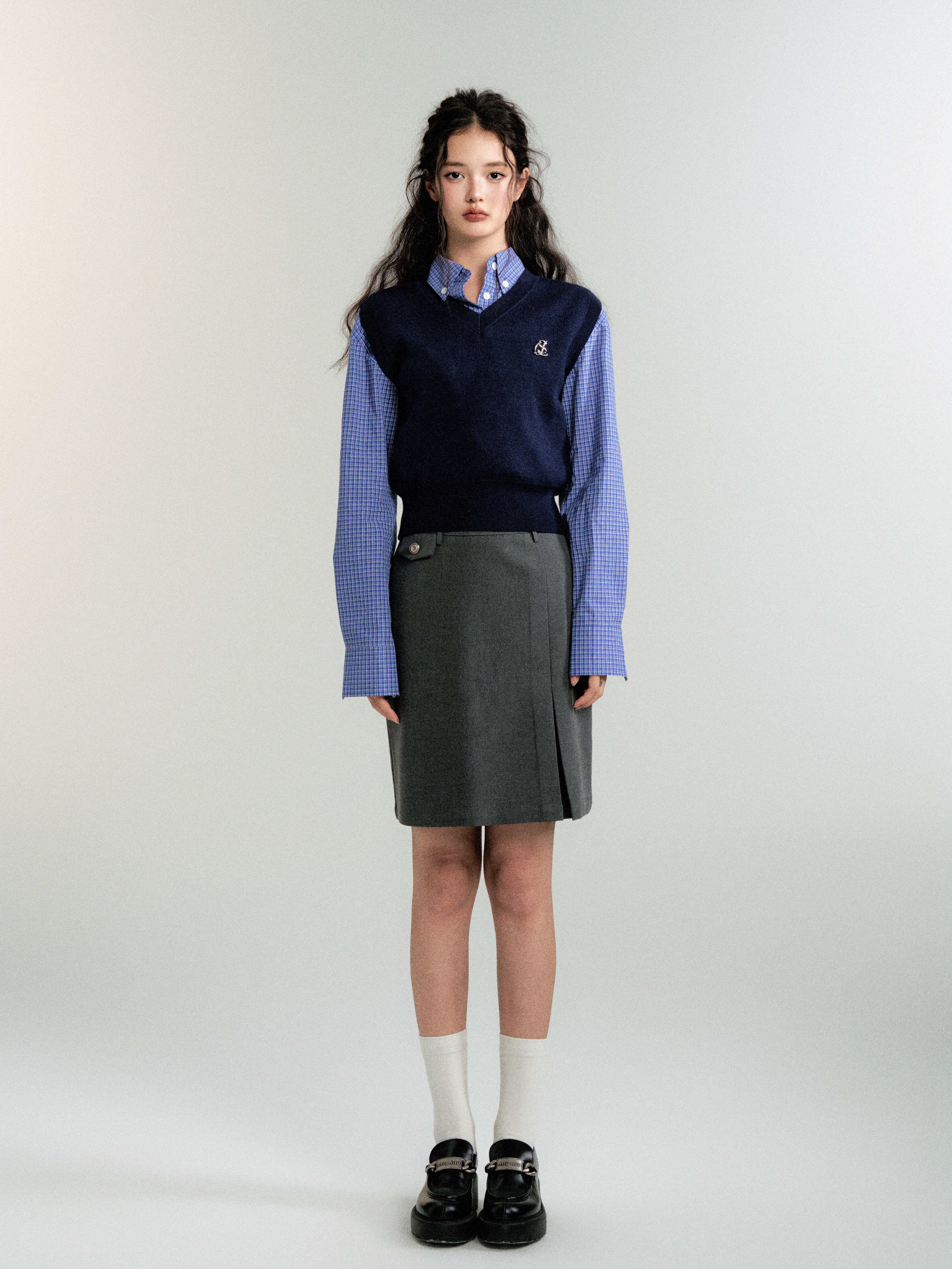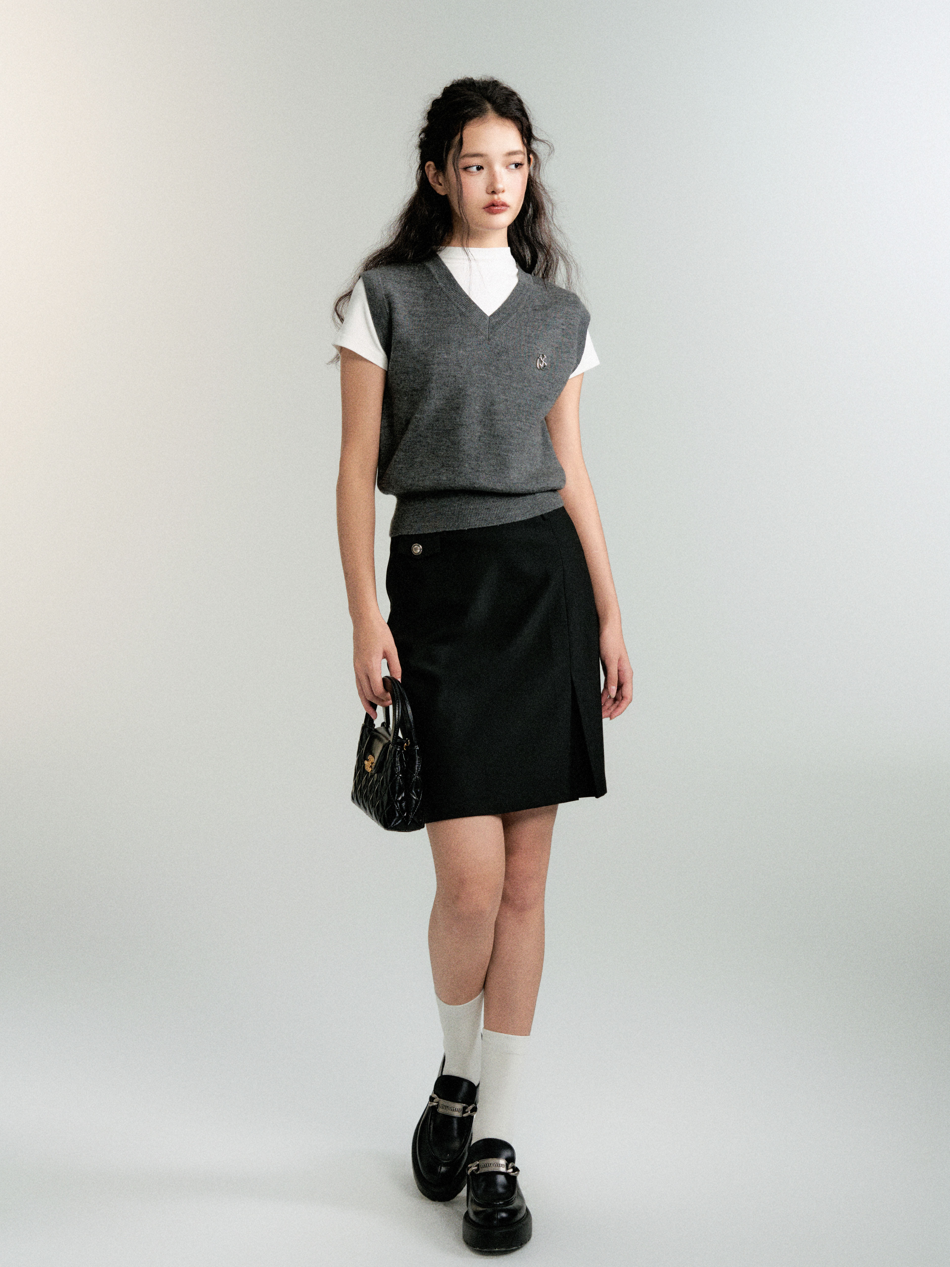 Vintage Preppy V-Neck Wool Knit Vest for Layered Looks