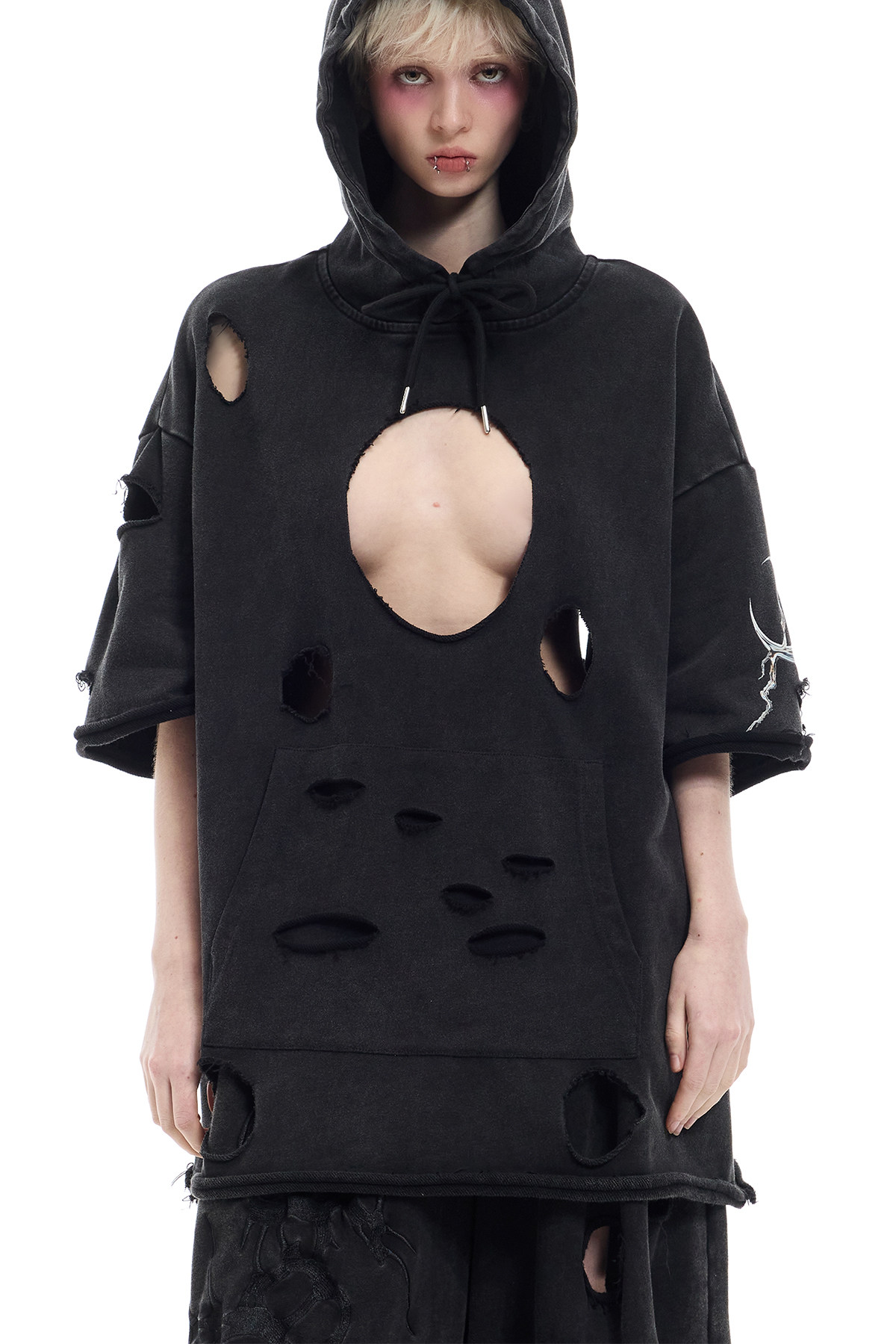 3D-Cut Ripped Hollow Y2K Unisex Electric Moon Sweatshirt