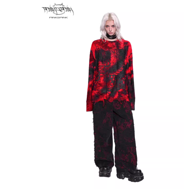 Due to the Mummy-Inspired Y2K Hooded Base Shirt – Slim Punk Rock Style only being available in size small, we will ship the Dark Destructive Misaligned Print Red and Black Tie-Dye Rock Punk Print Long T-Shirt in size medium instead.
