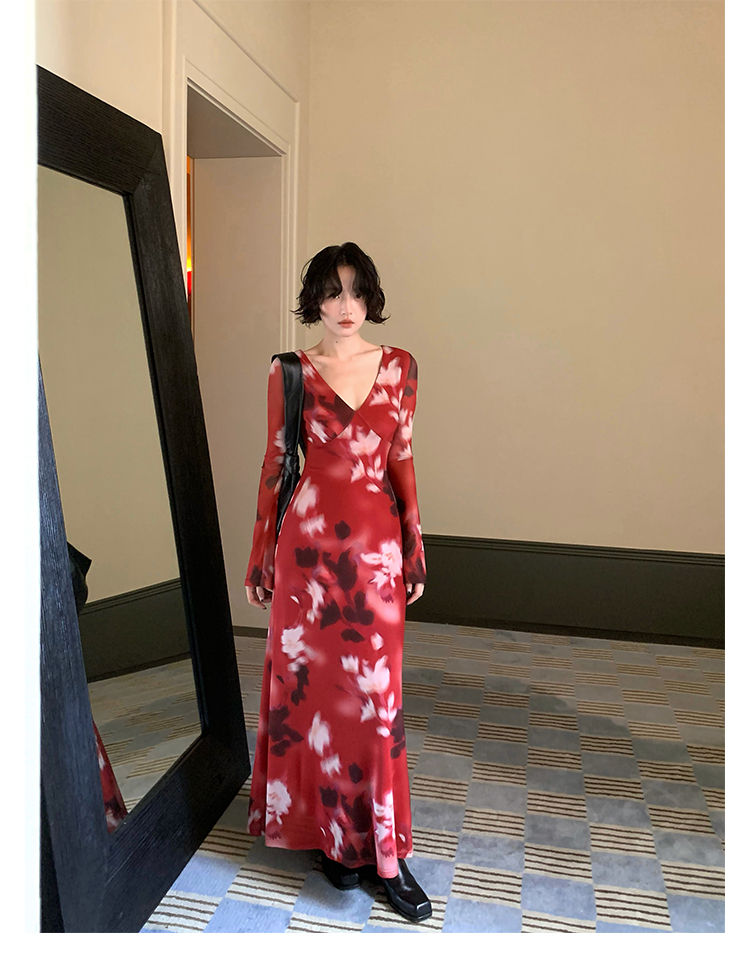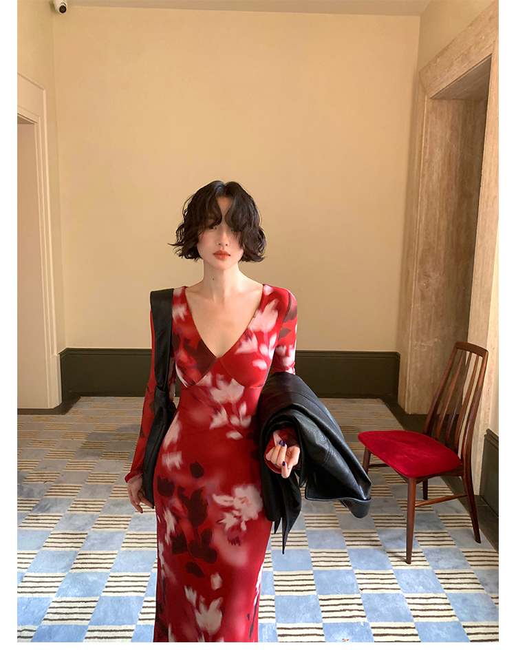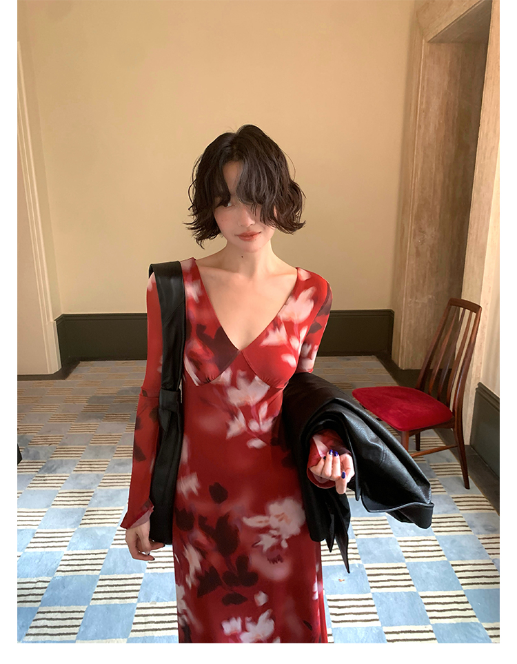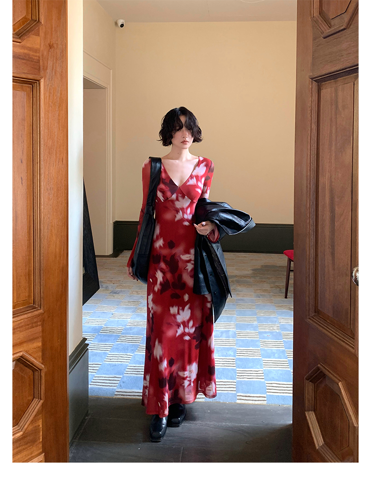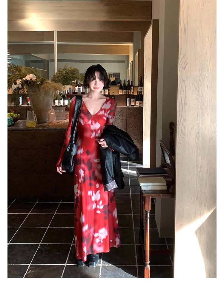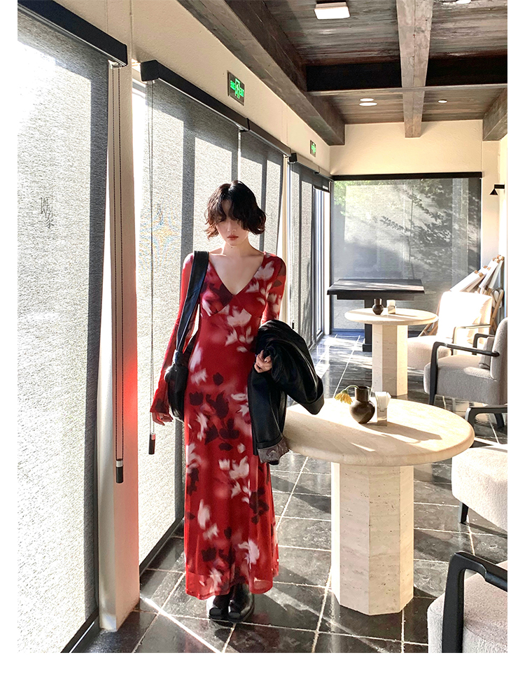 Autumn Brew Printed V-Neck Tea Dress – Hong Kong Retro Fall Edition