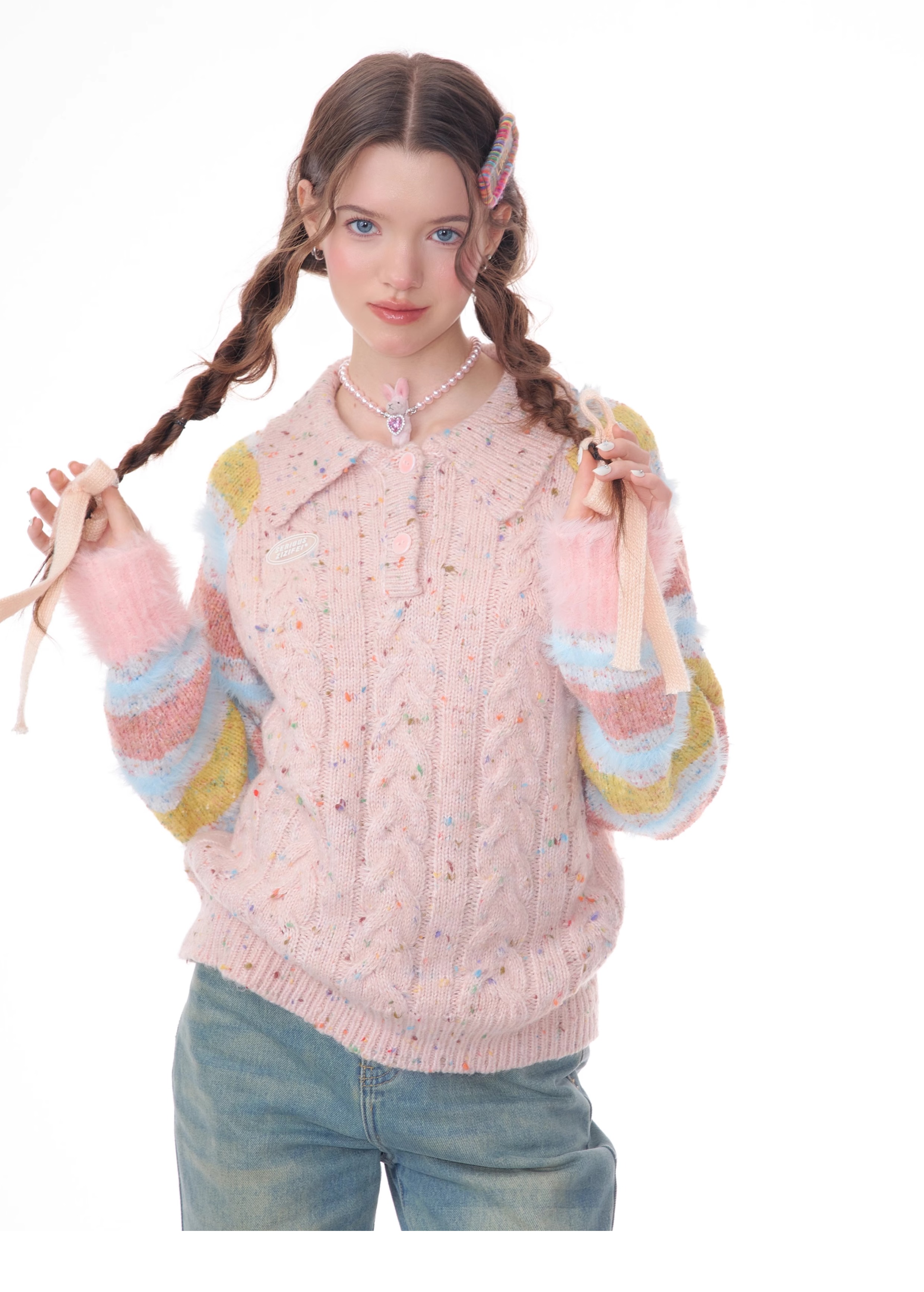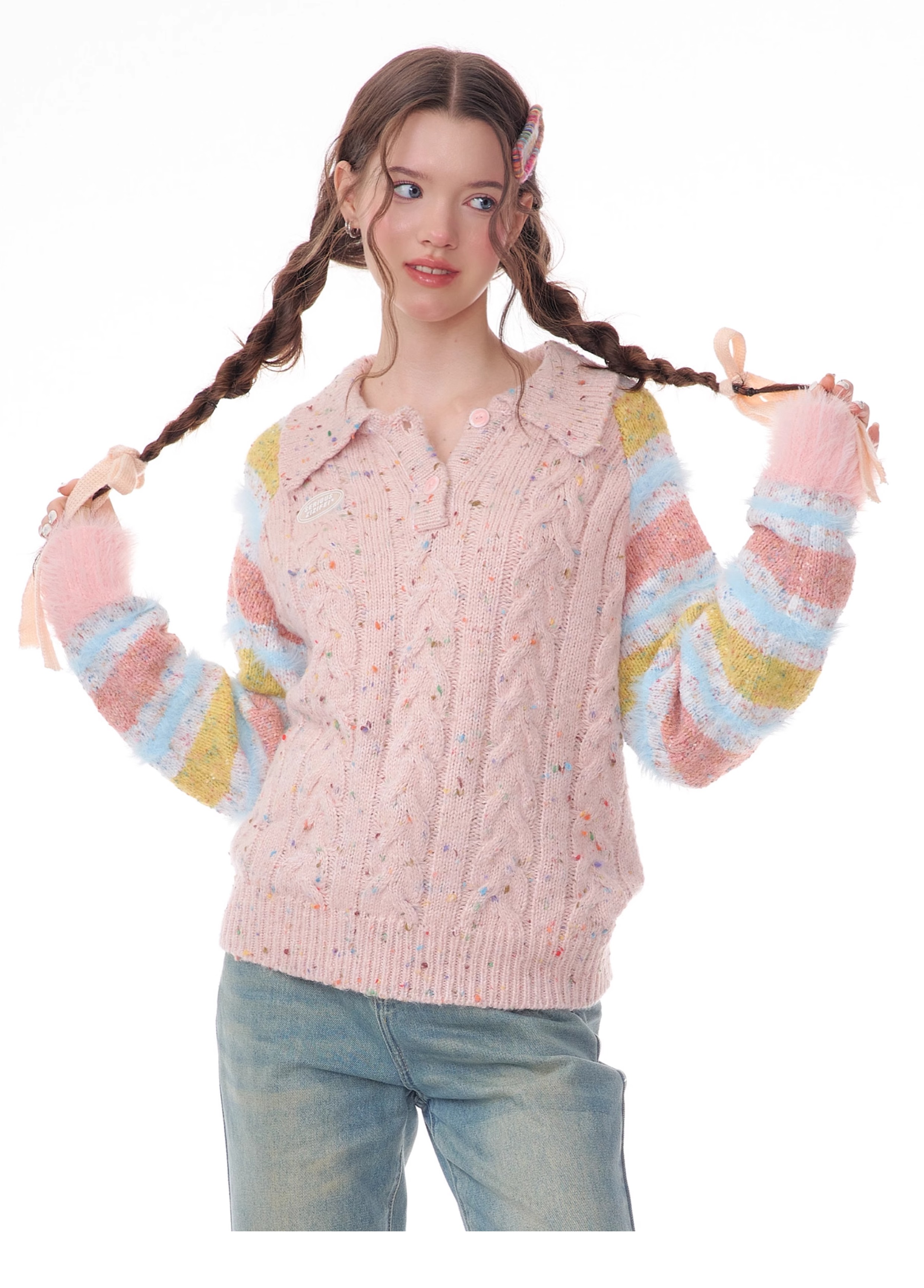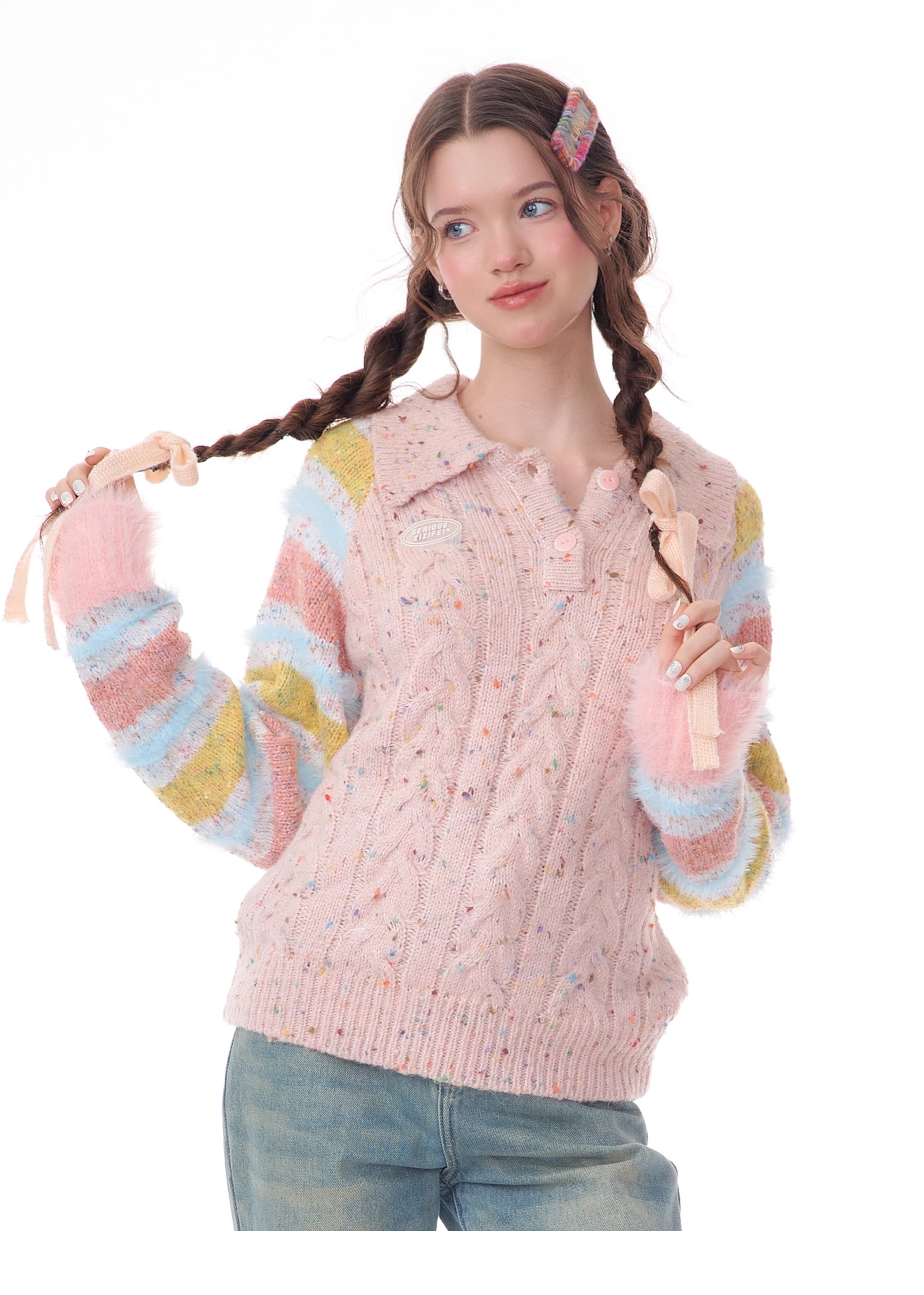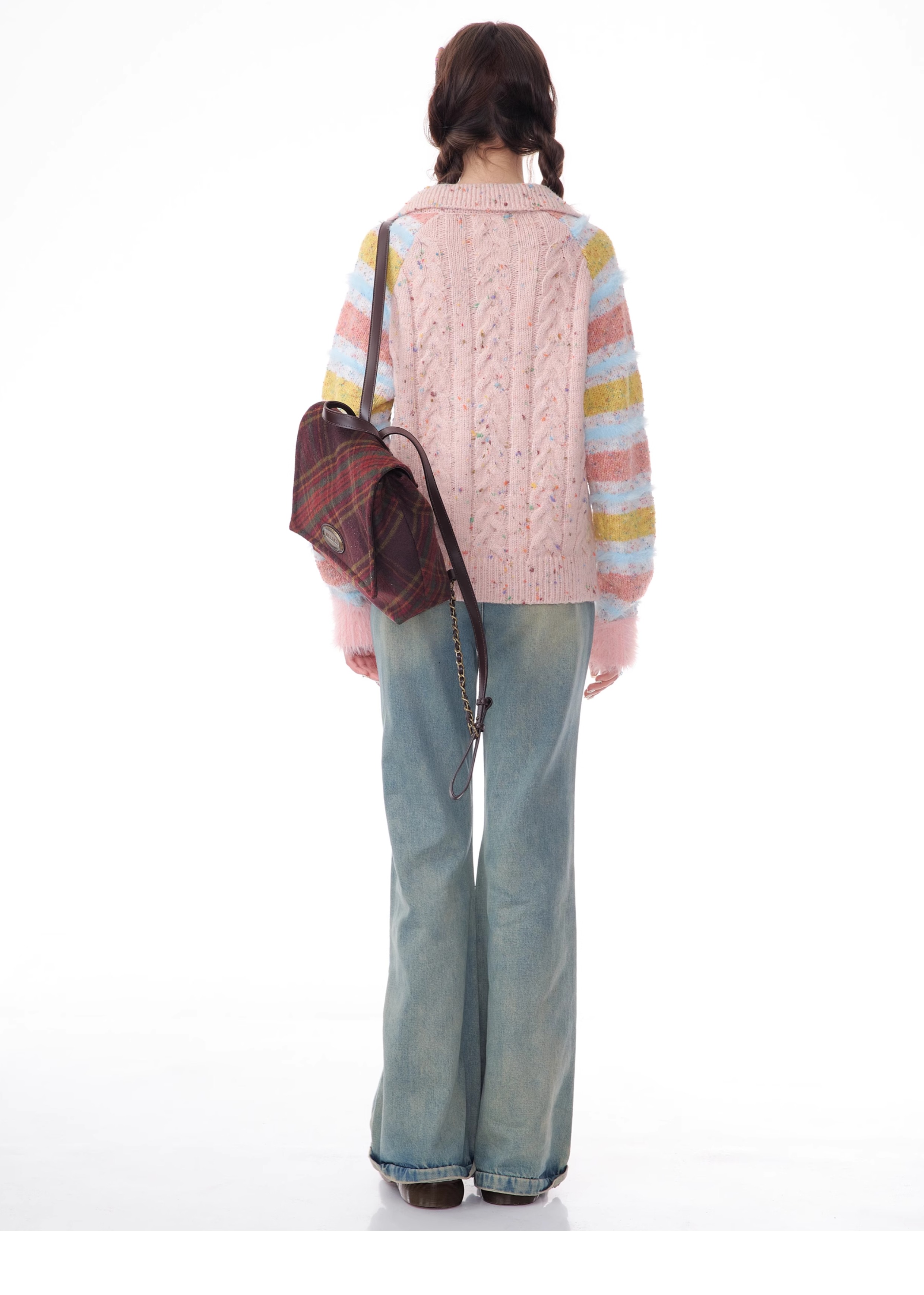 Suéter tipo polo con empalme trenzado, diseño retro de cera suave y cálida para otoño/invierno