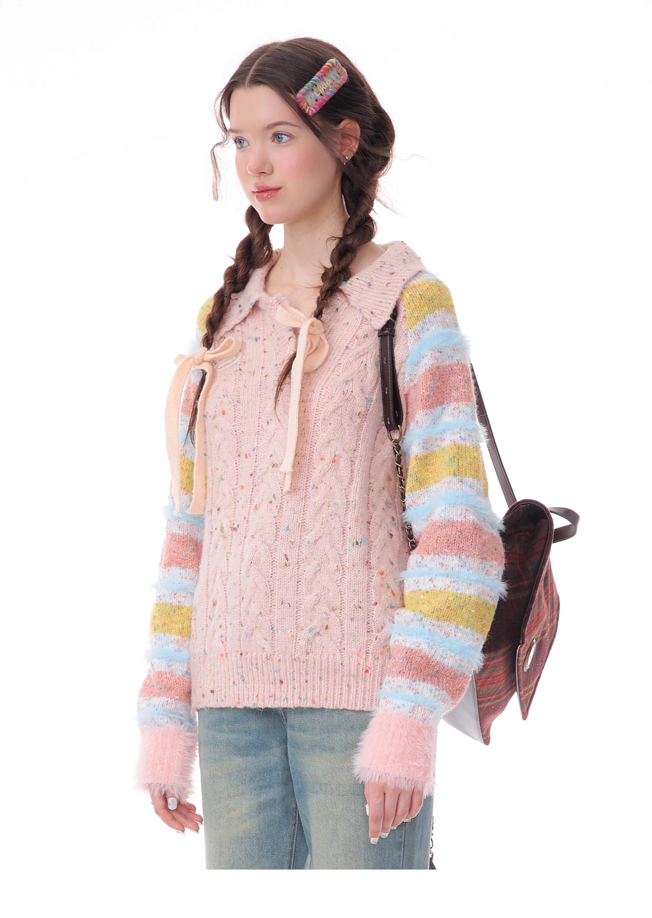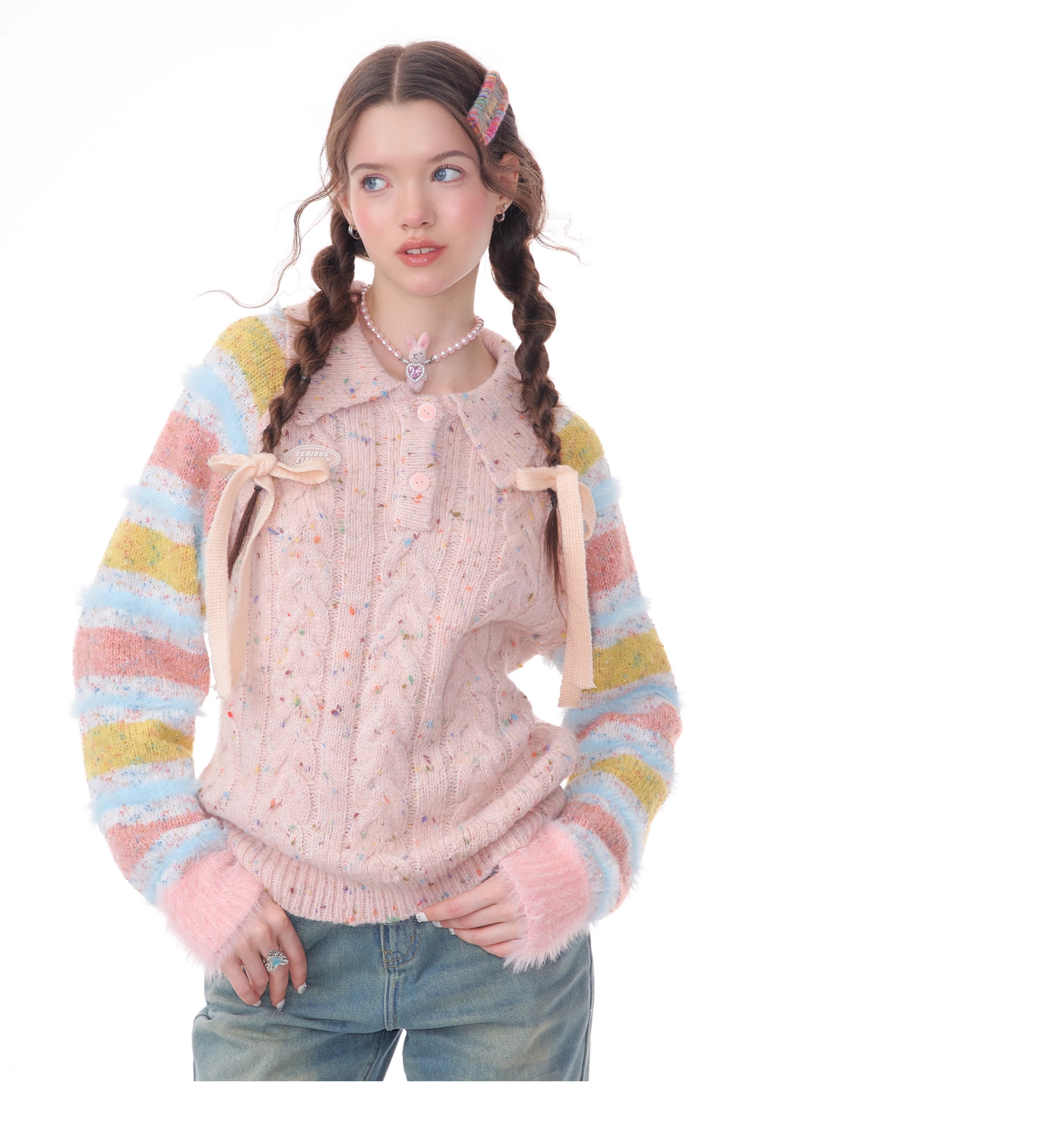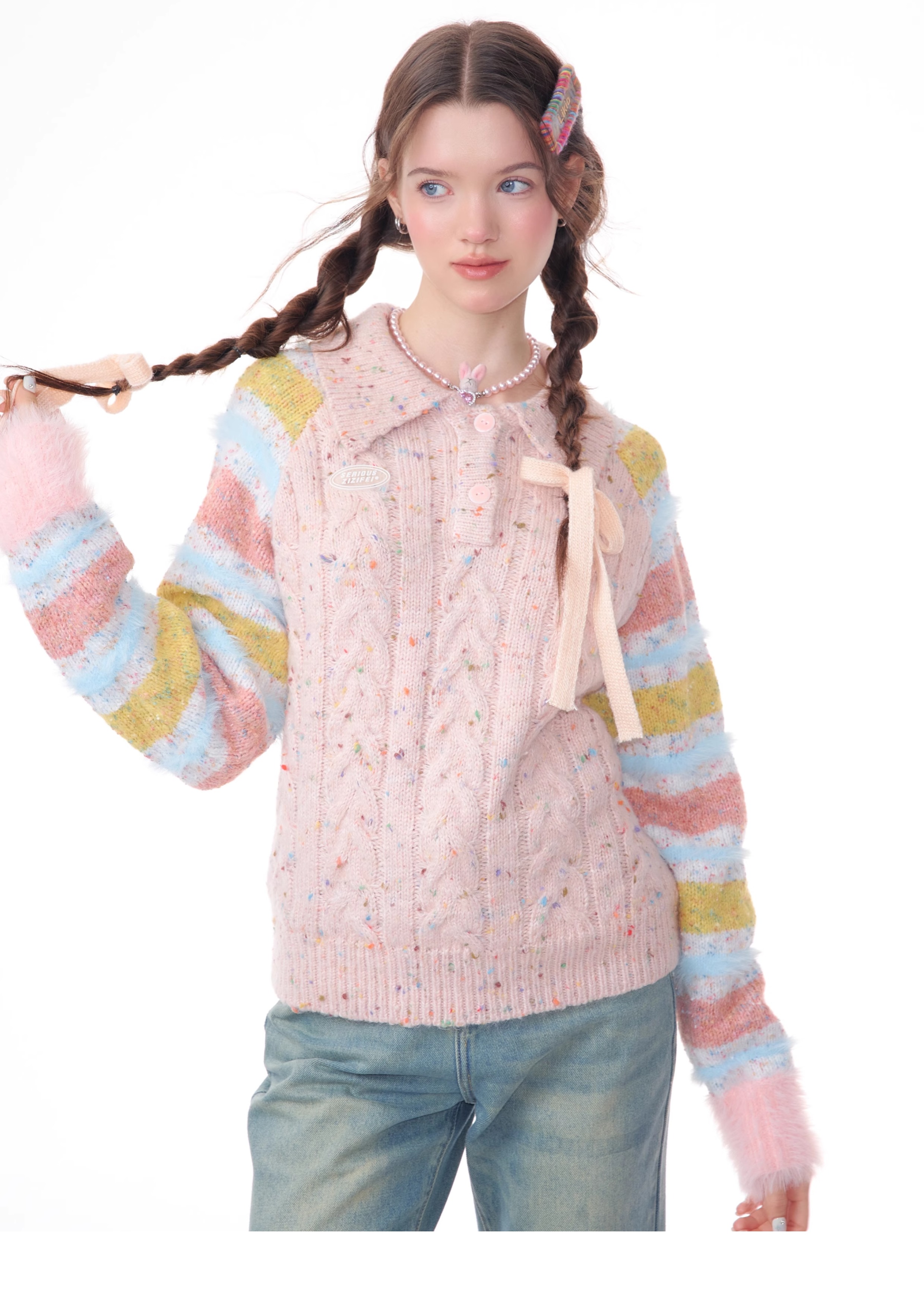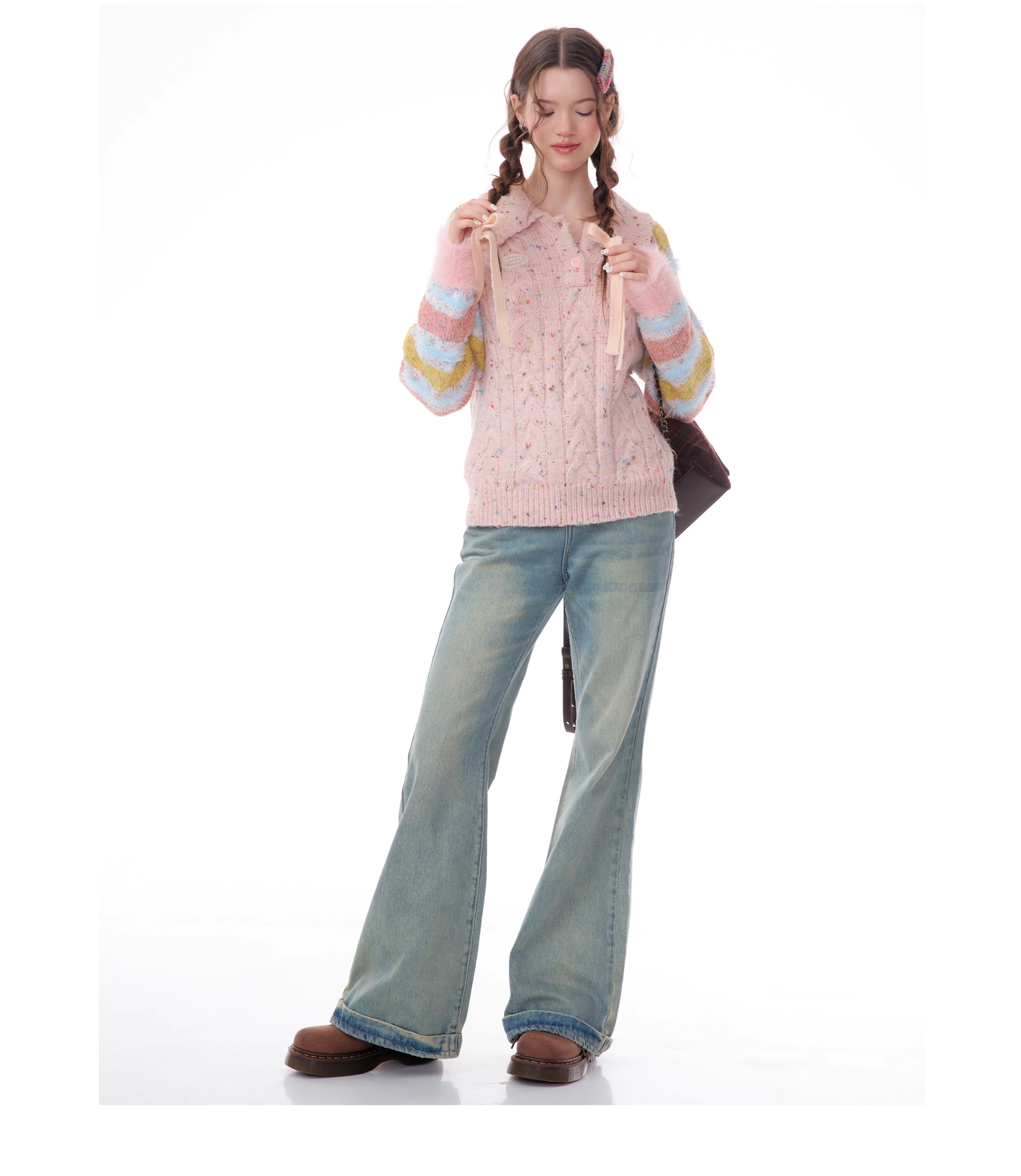 Suéter tipo polo con empalme trenzado, diseño retro de cera suave y cálida para otoño/invierno