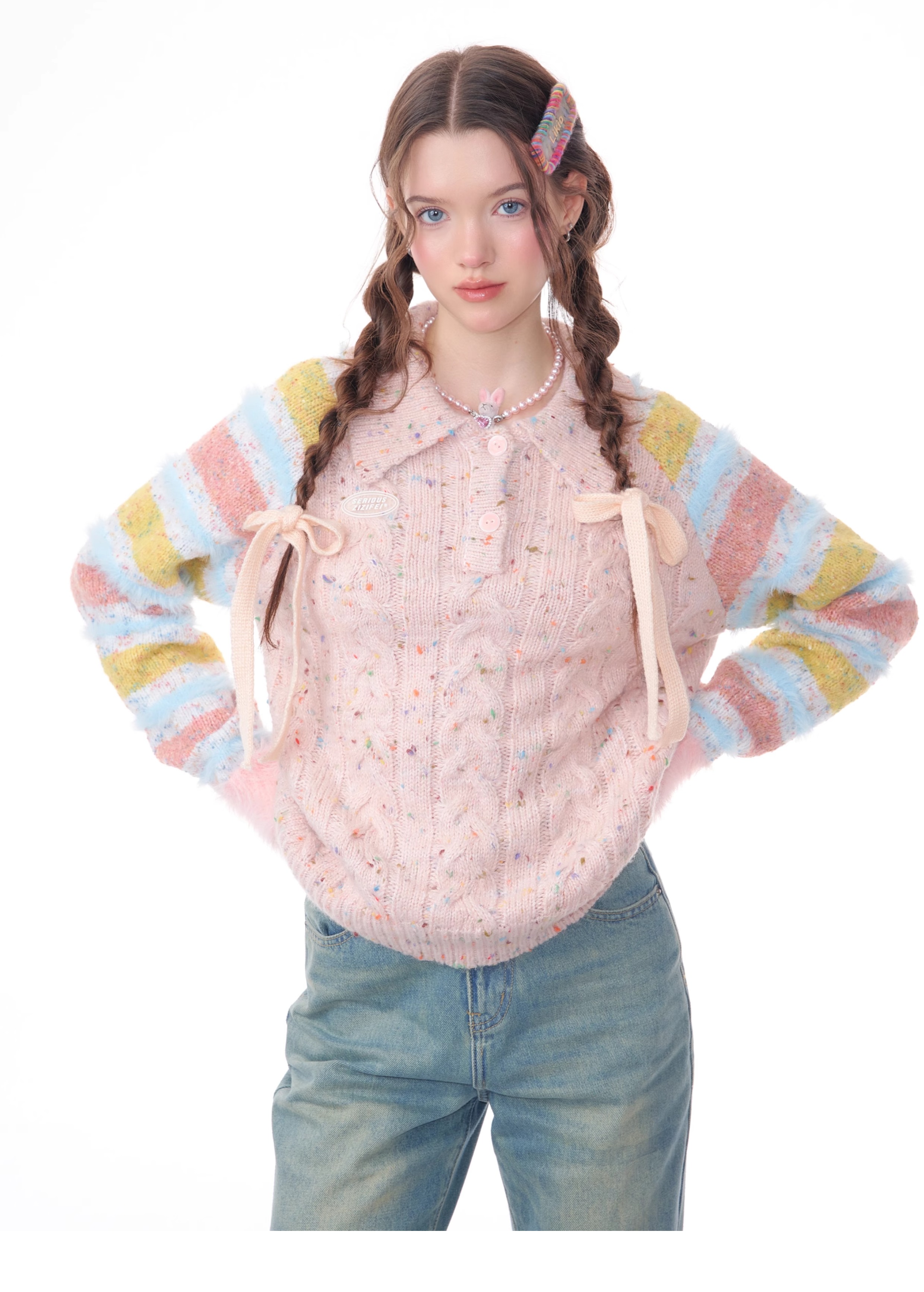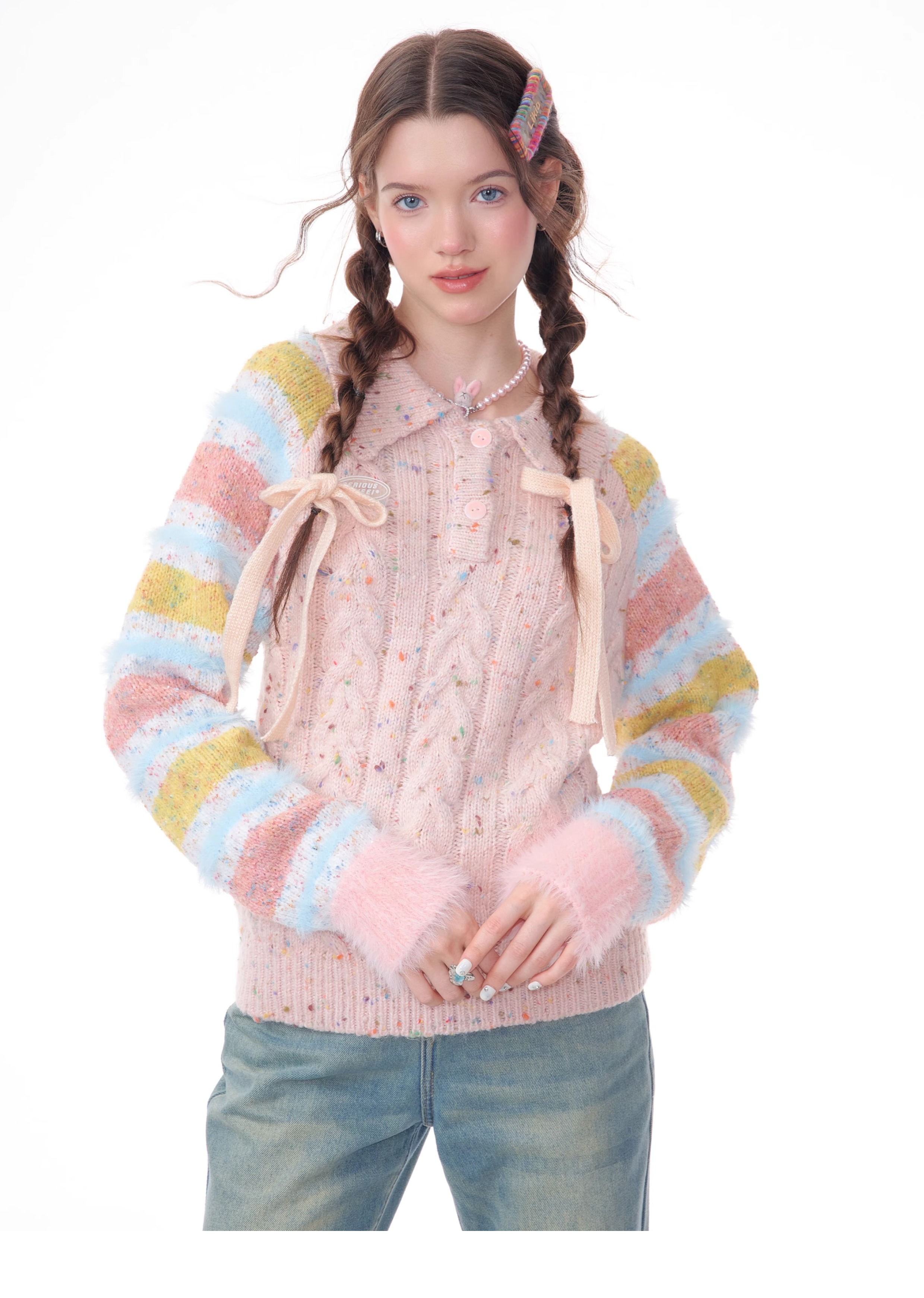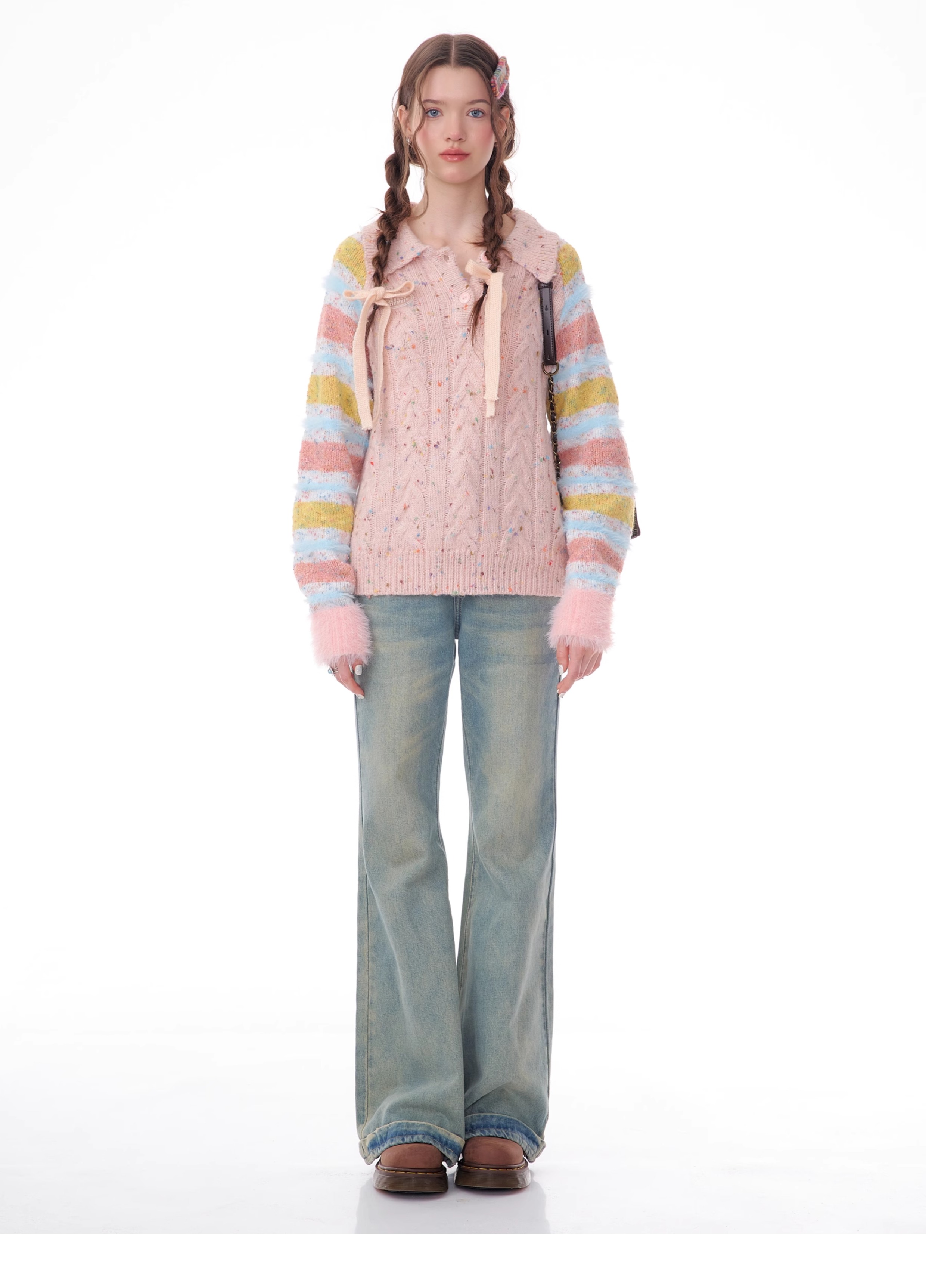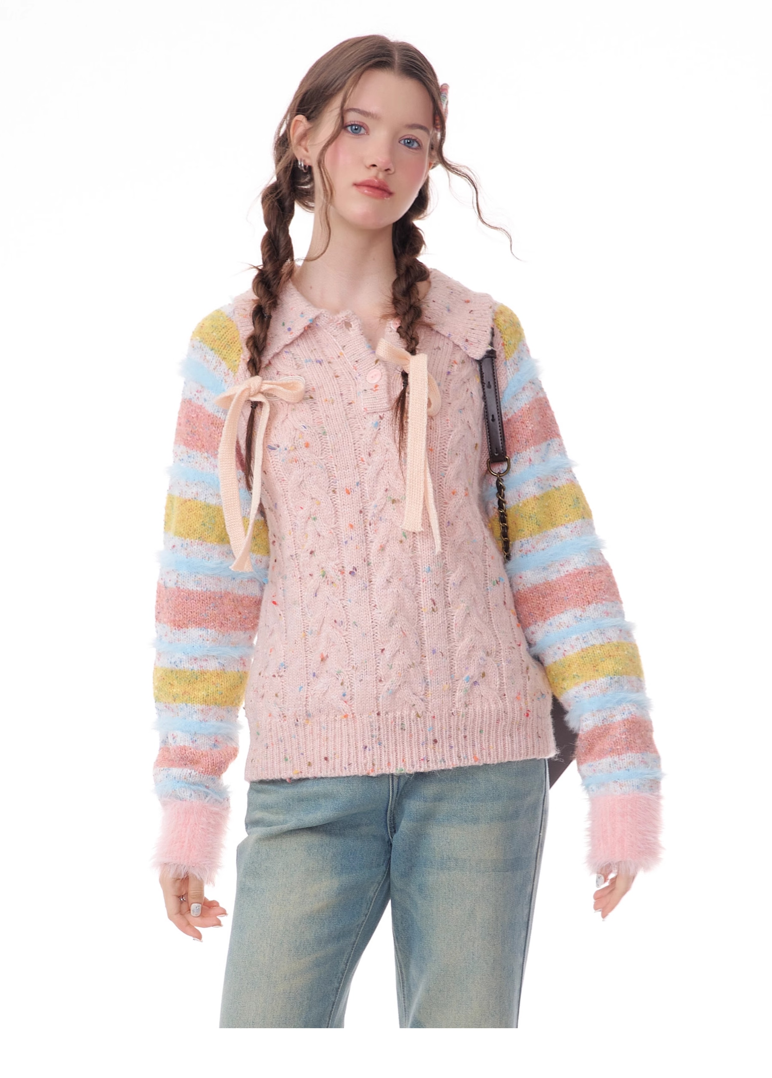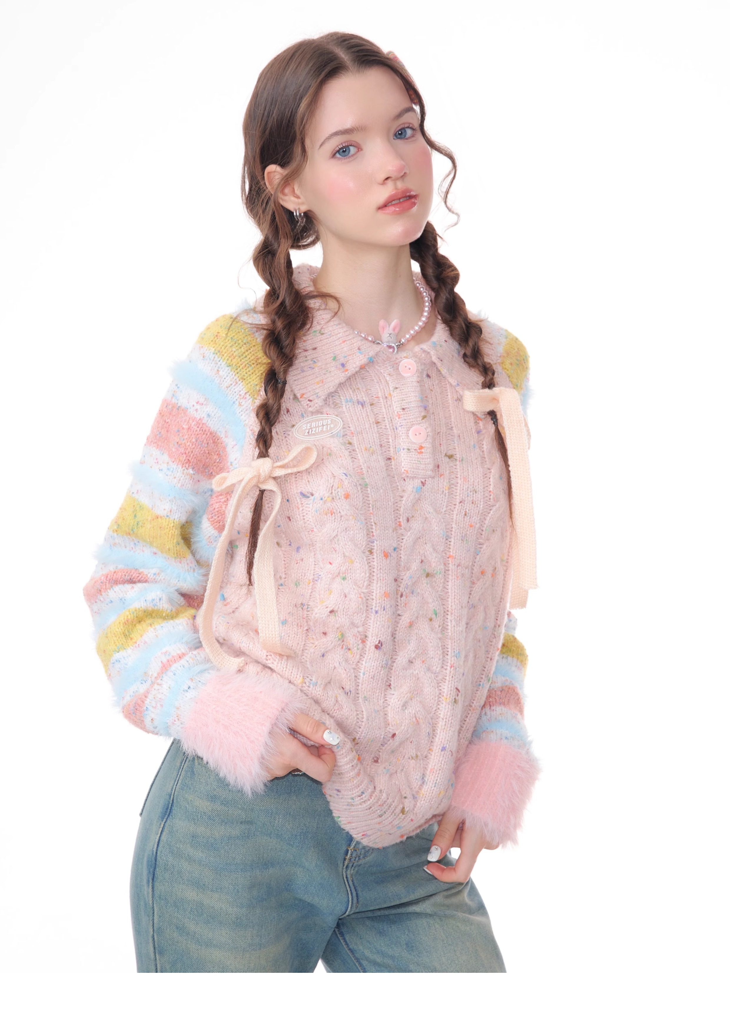 Suéter tipo polo con empalme trenzado, diseño retro de cera suave y cálida para otoño/invierno