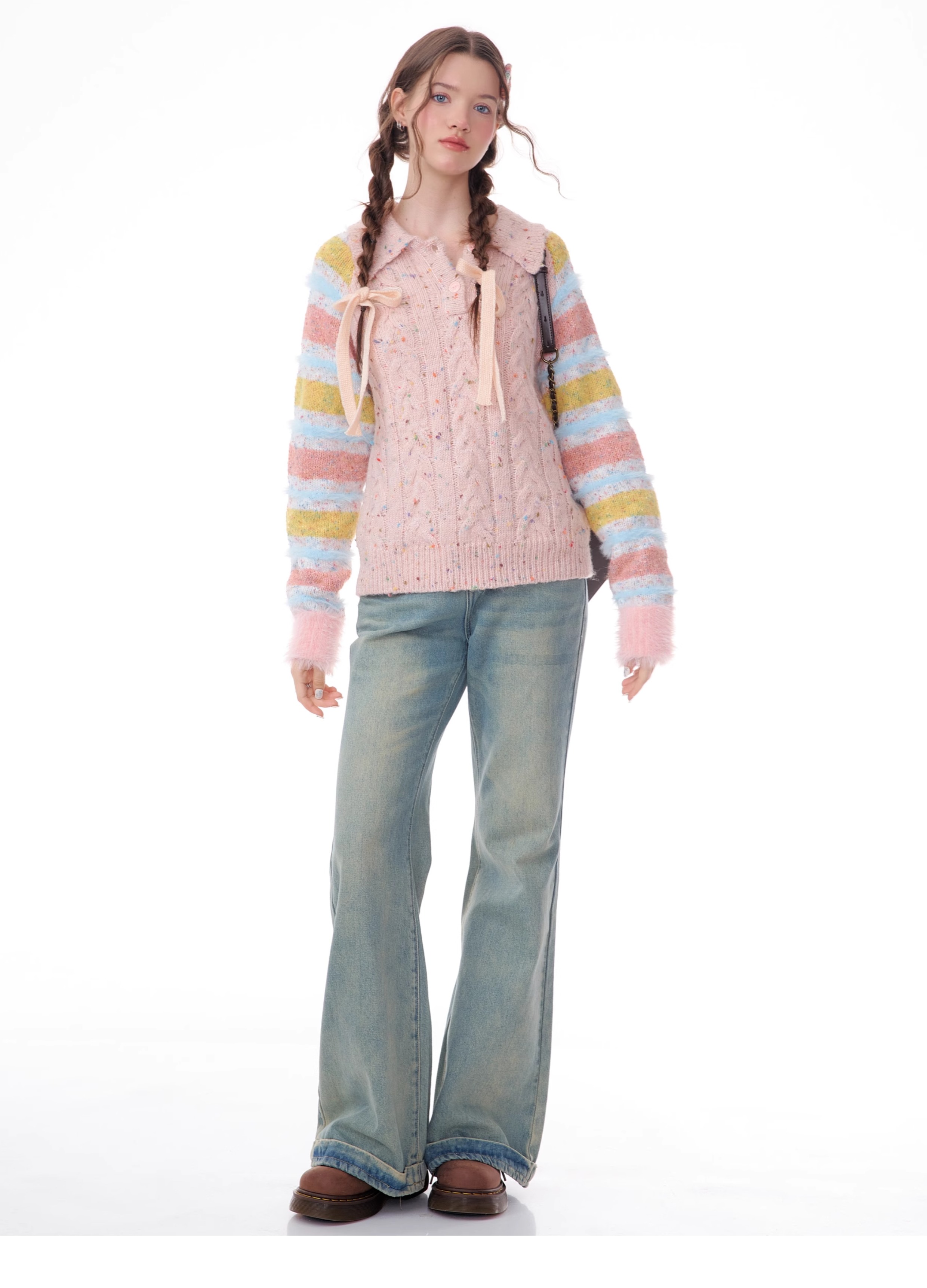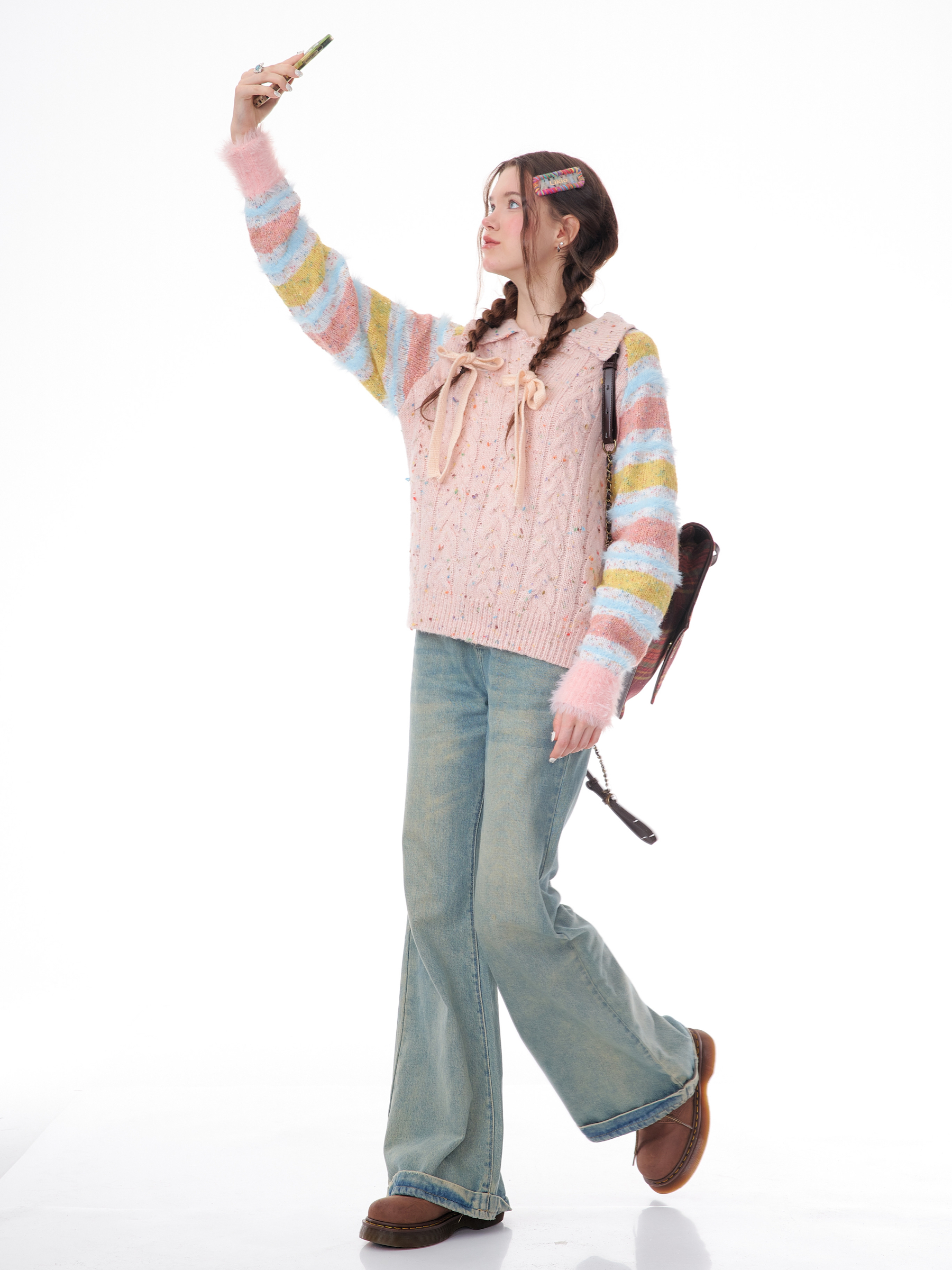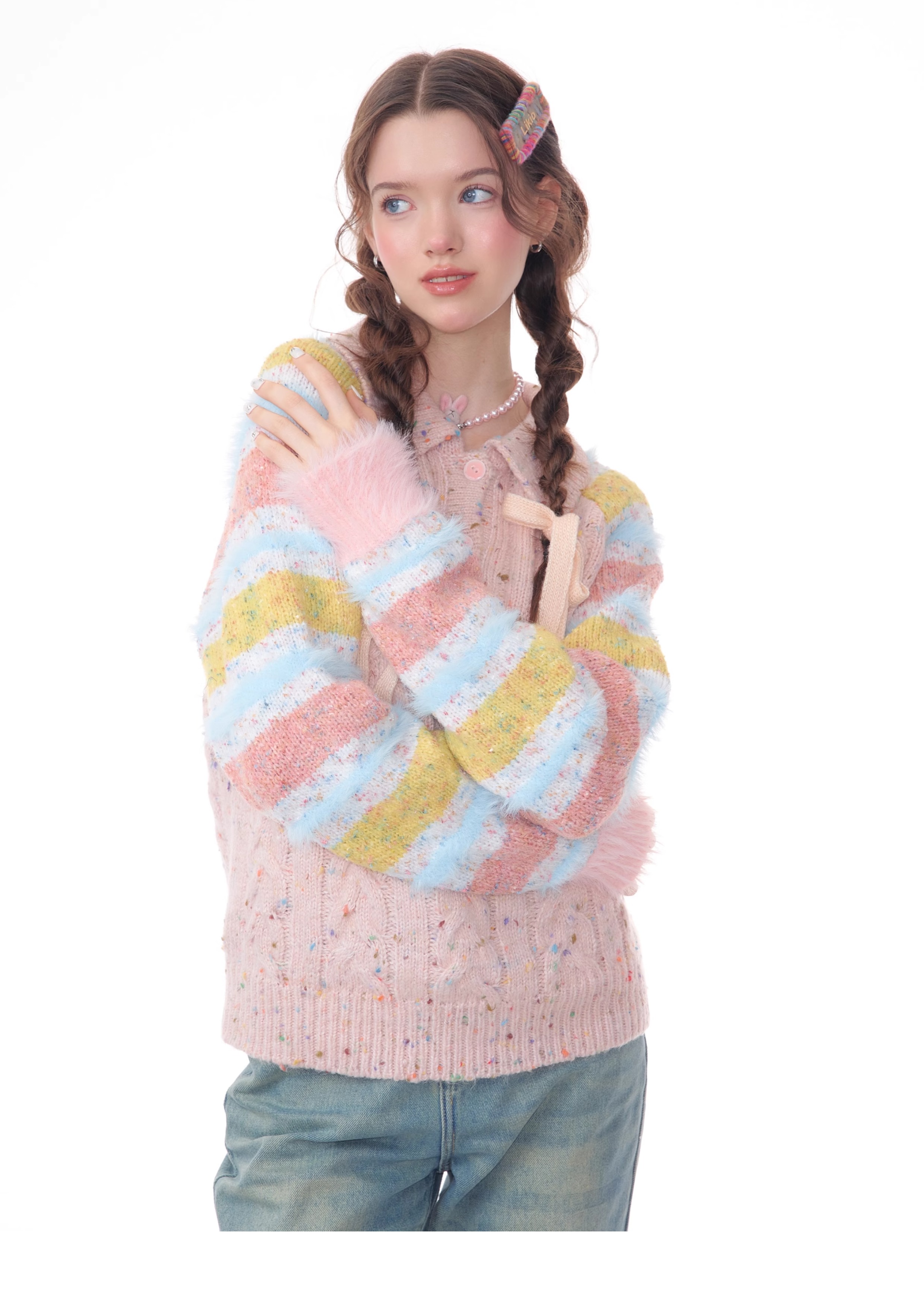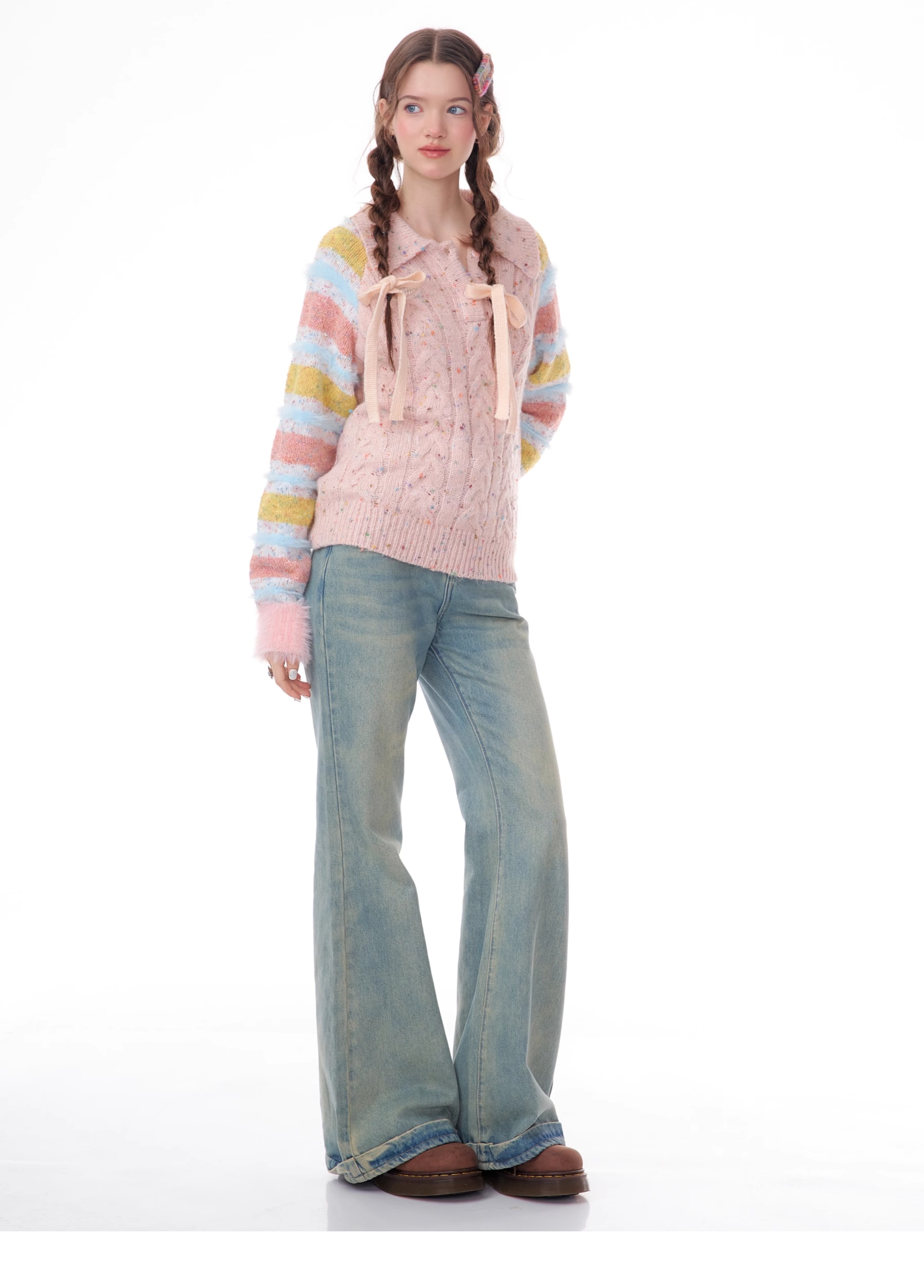 Suéter tipo polo con empalme trenzado, diseño retro de cera suave y cálida para otoño/invierno