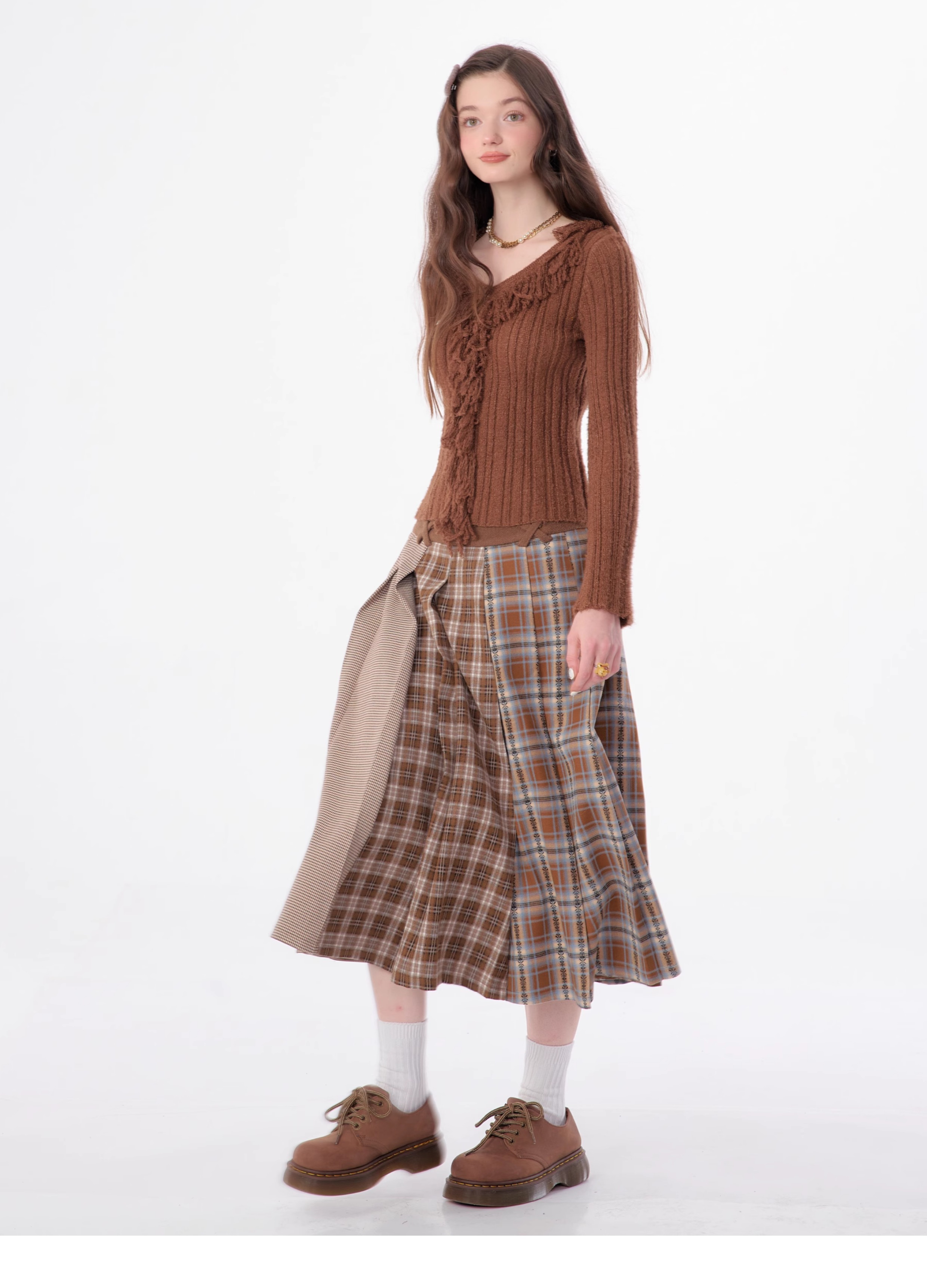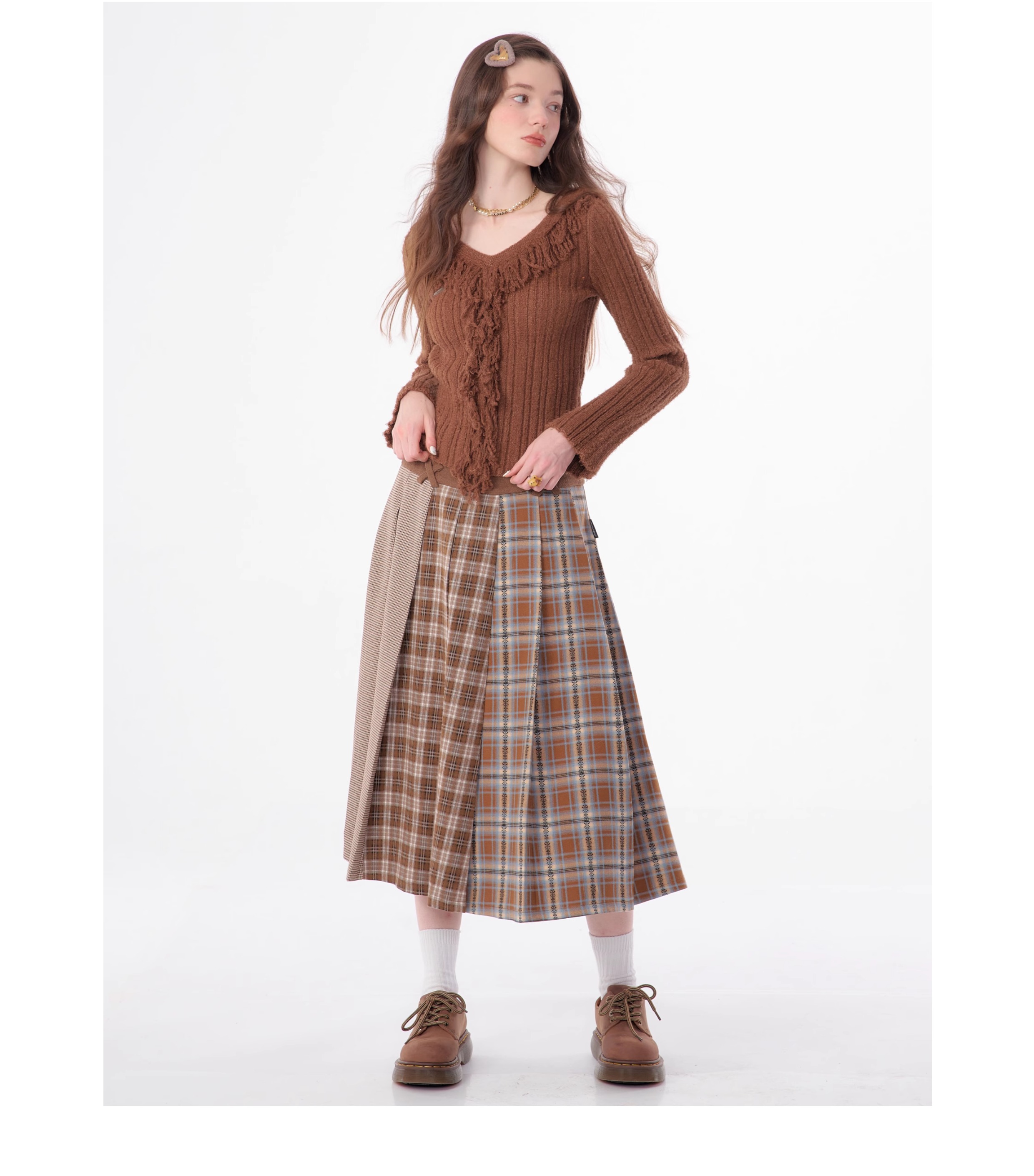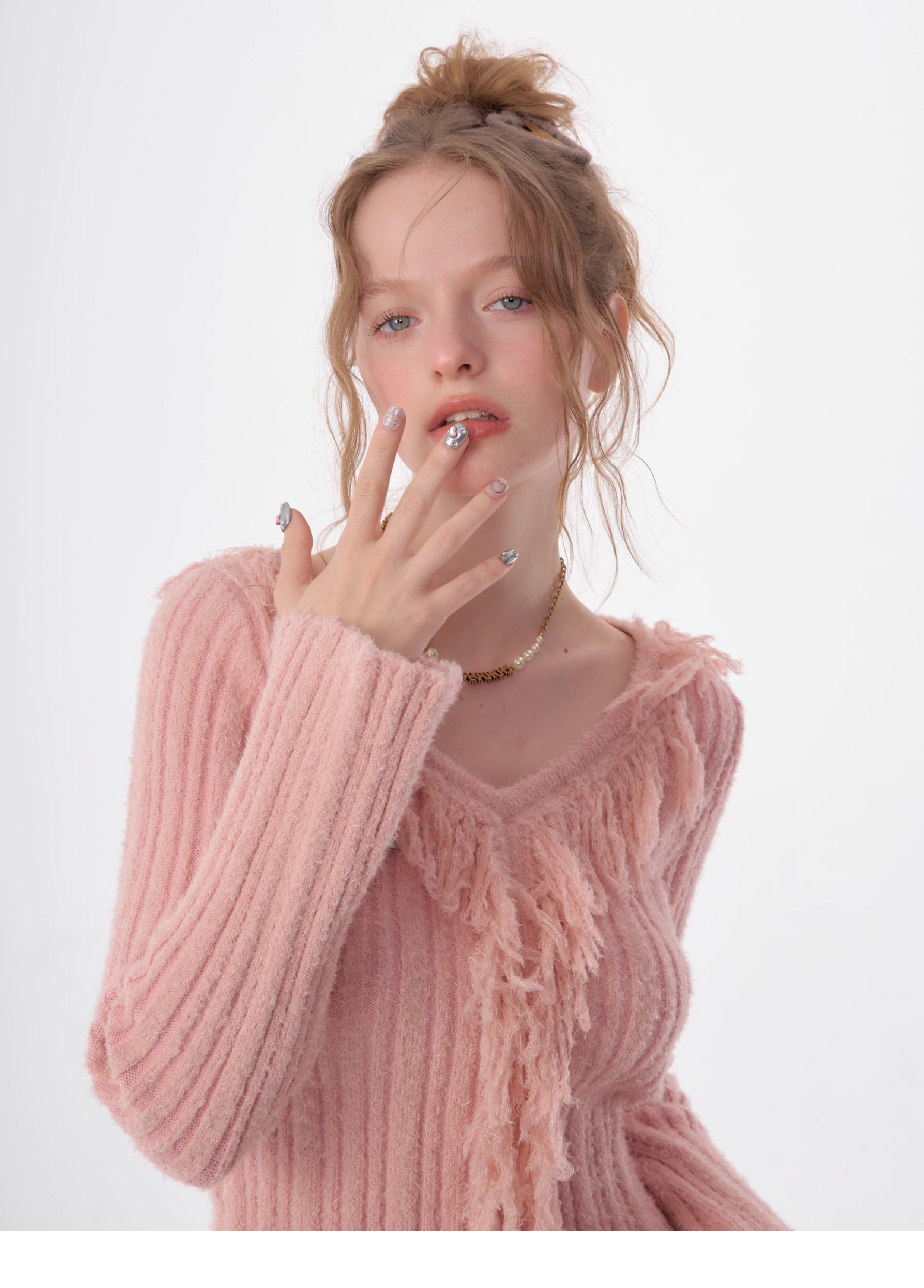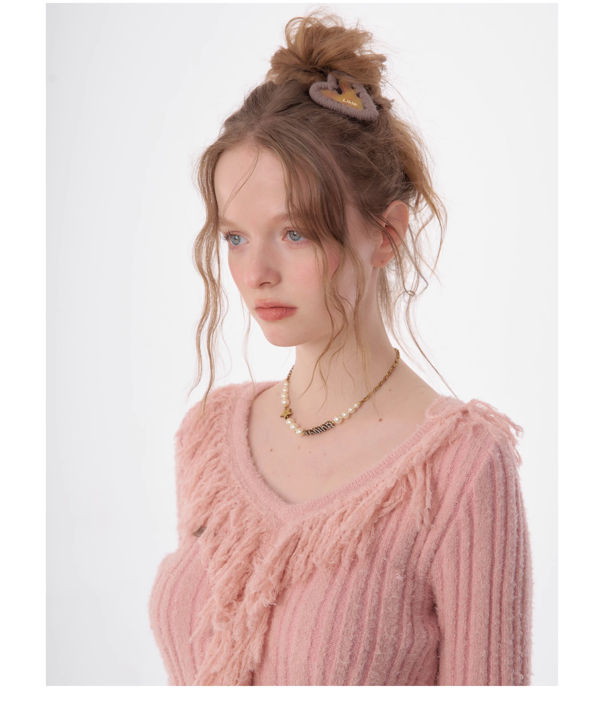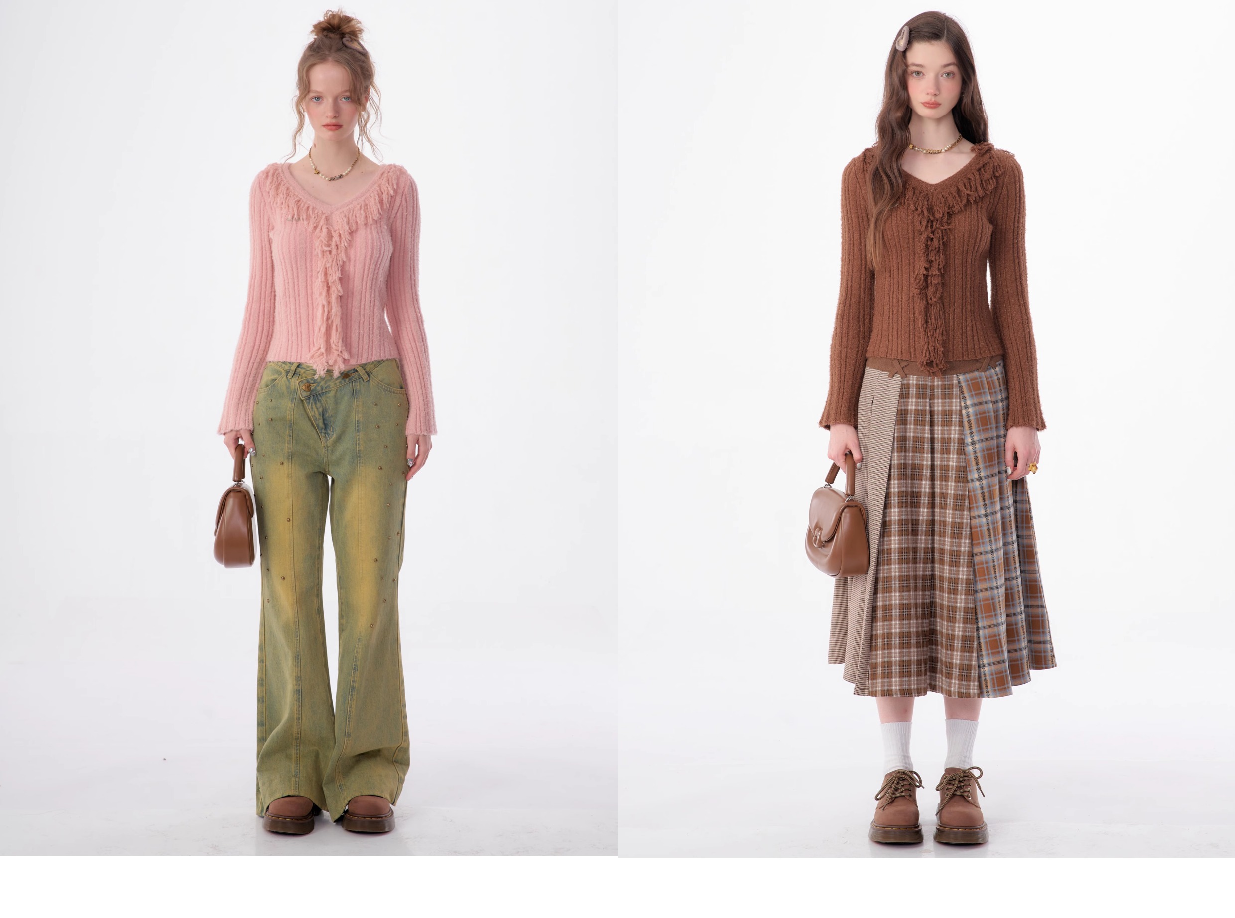 suéter con cuello en V y borlas, diseño retro entallado y cálido y suave para otoño/invierno