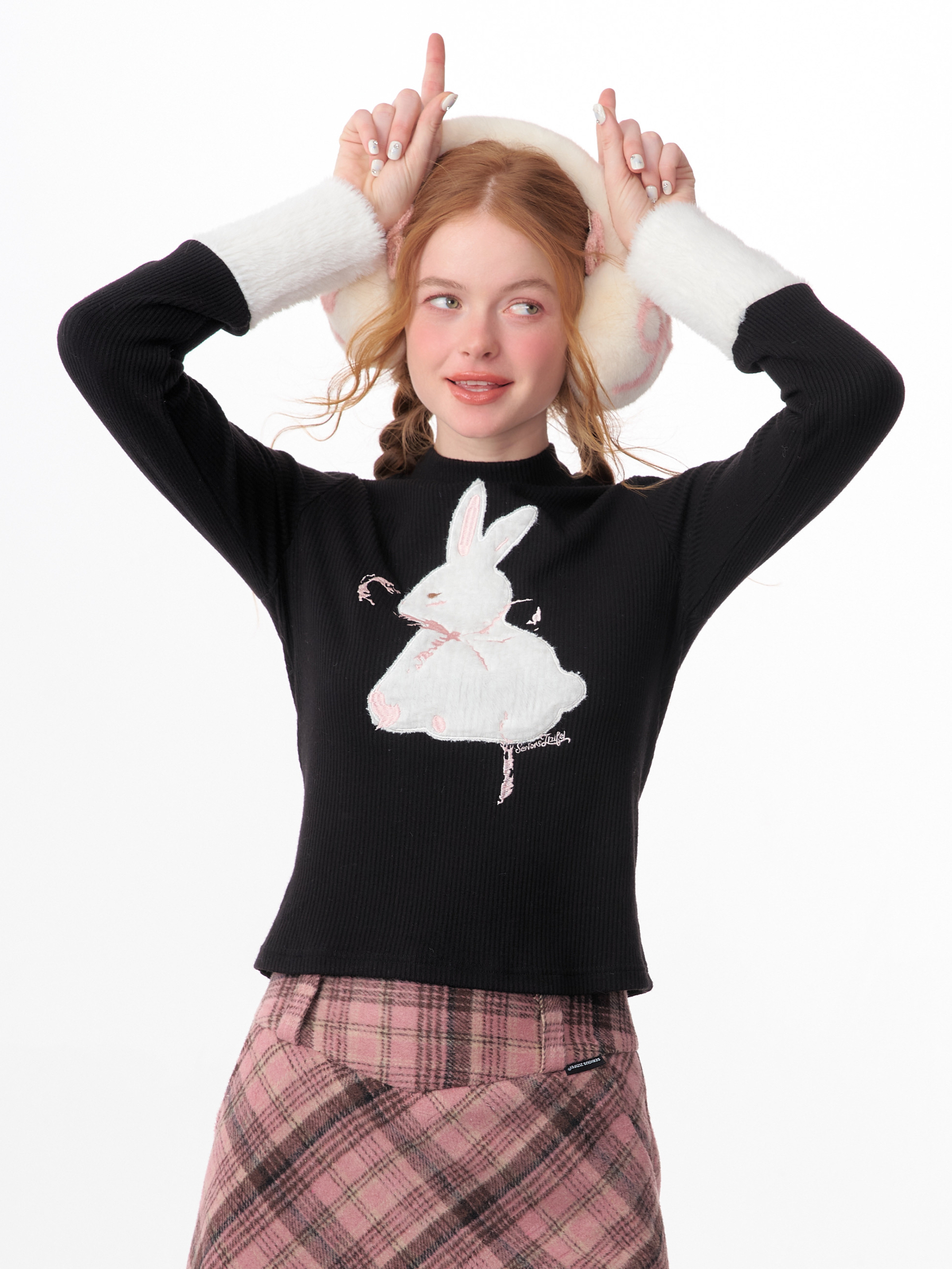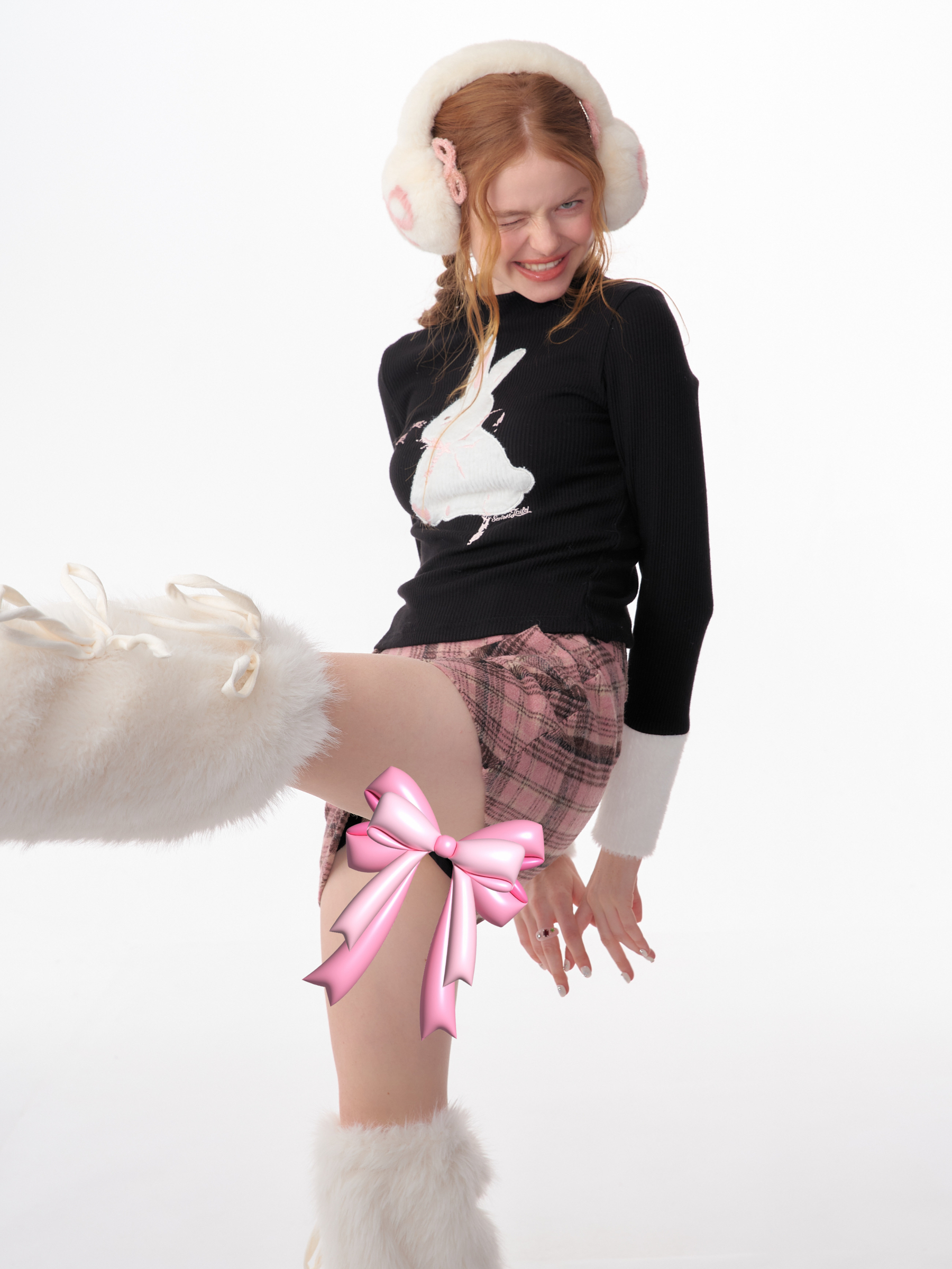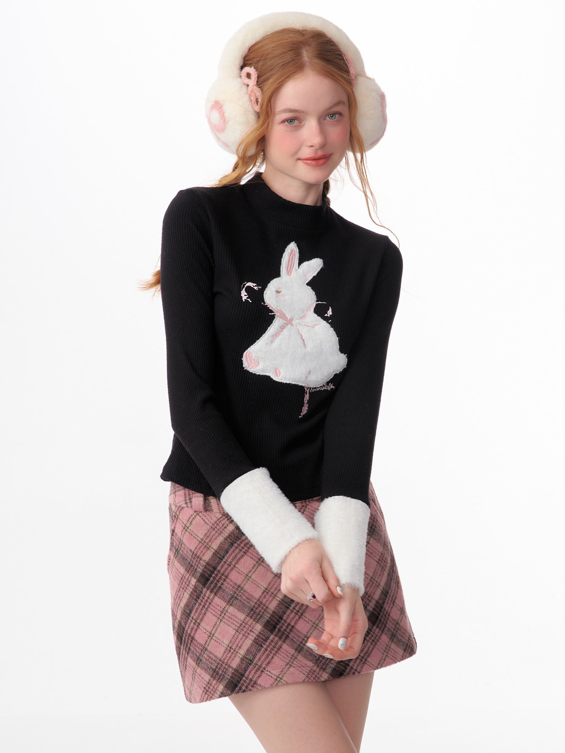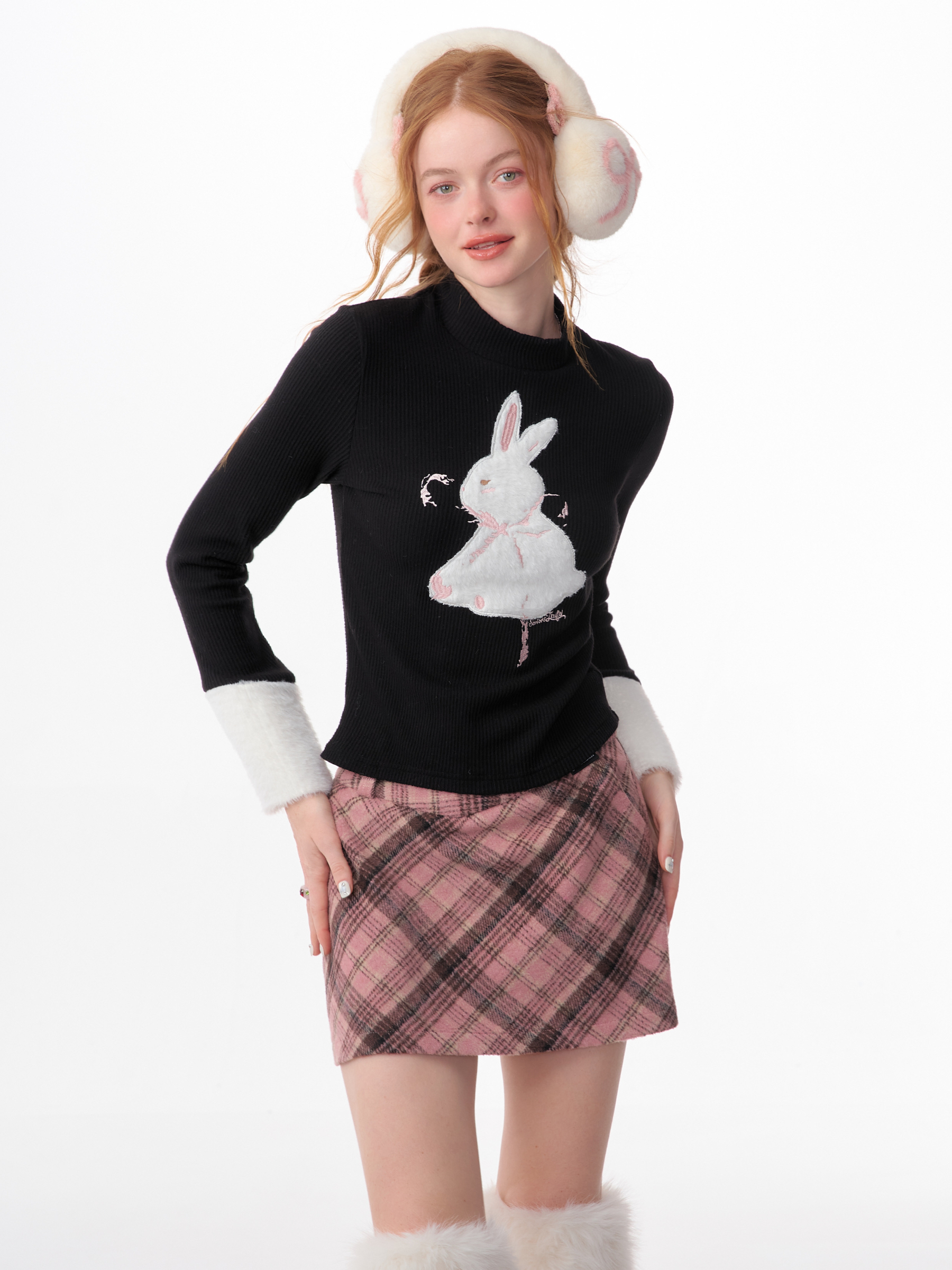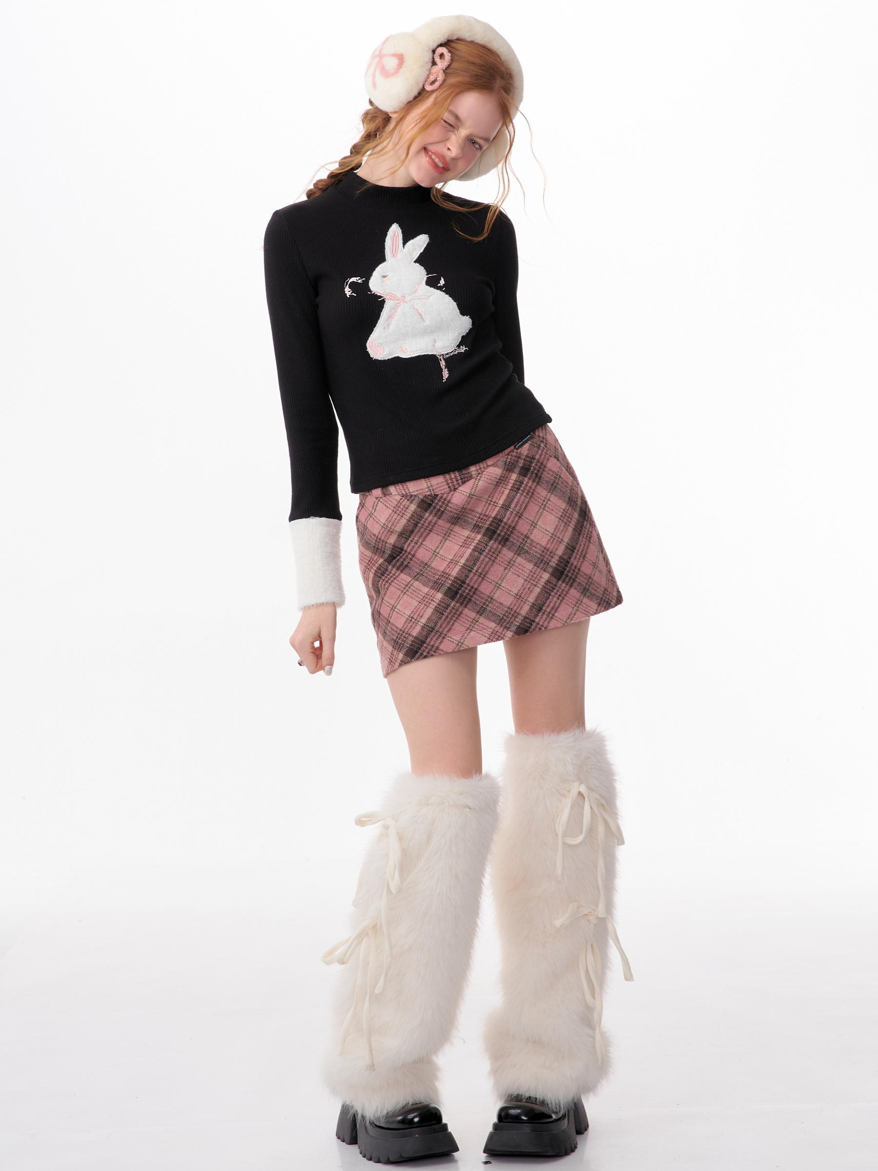 Suéter navideño de conejo de peluche | Capa base retro roja de Año Nuevo para otoño/invierno