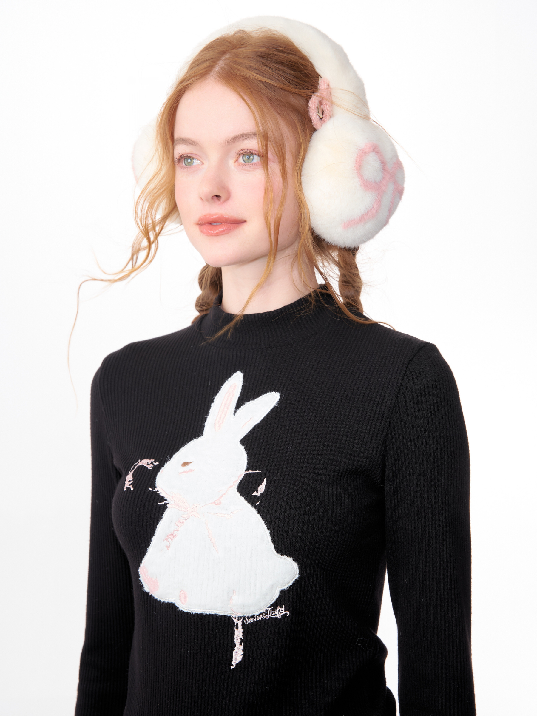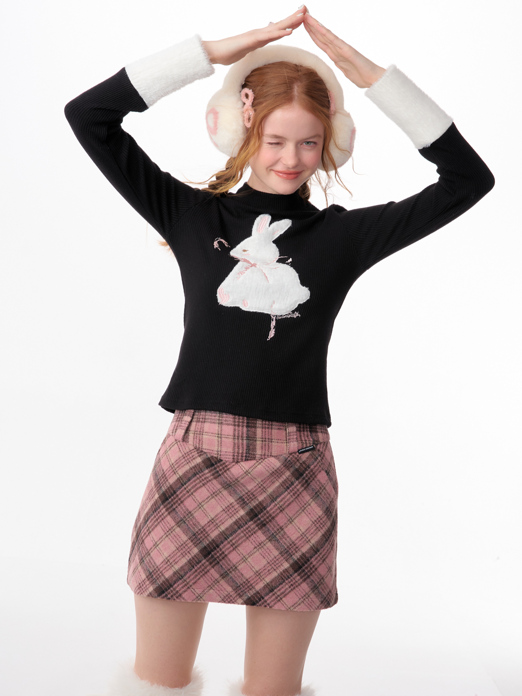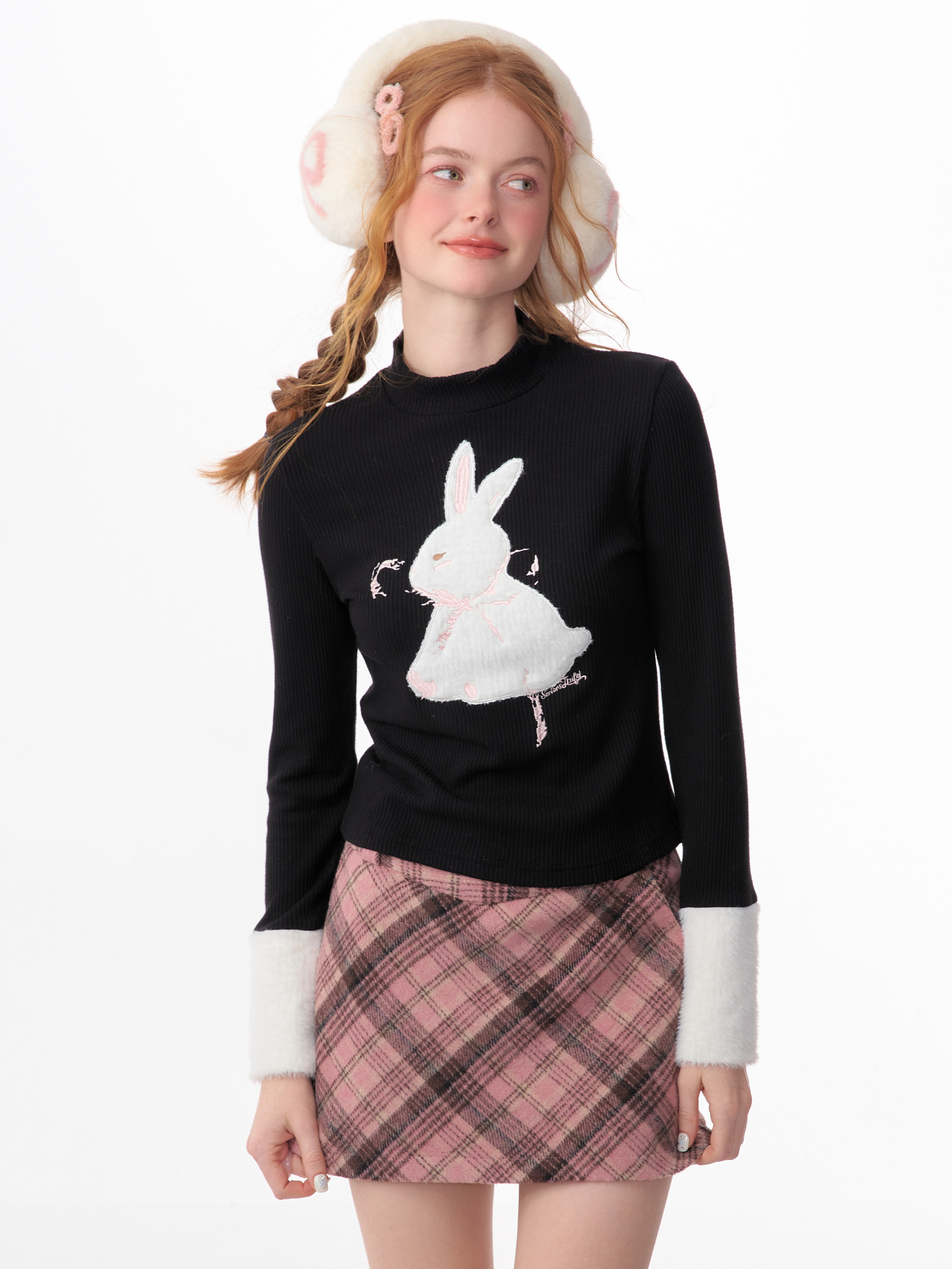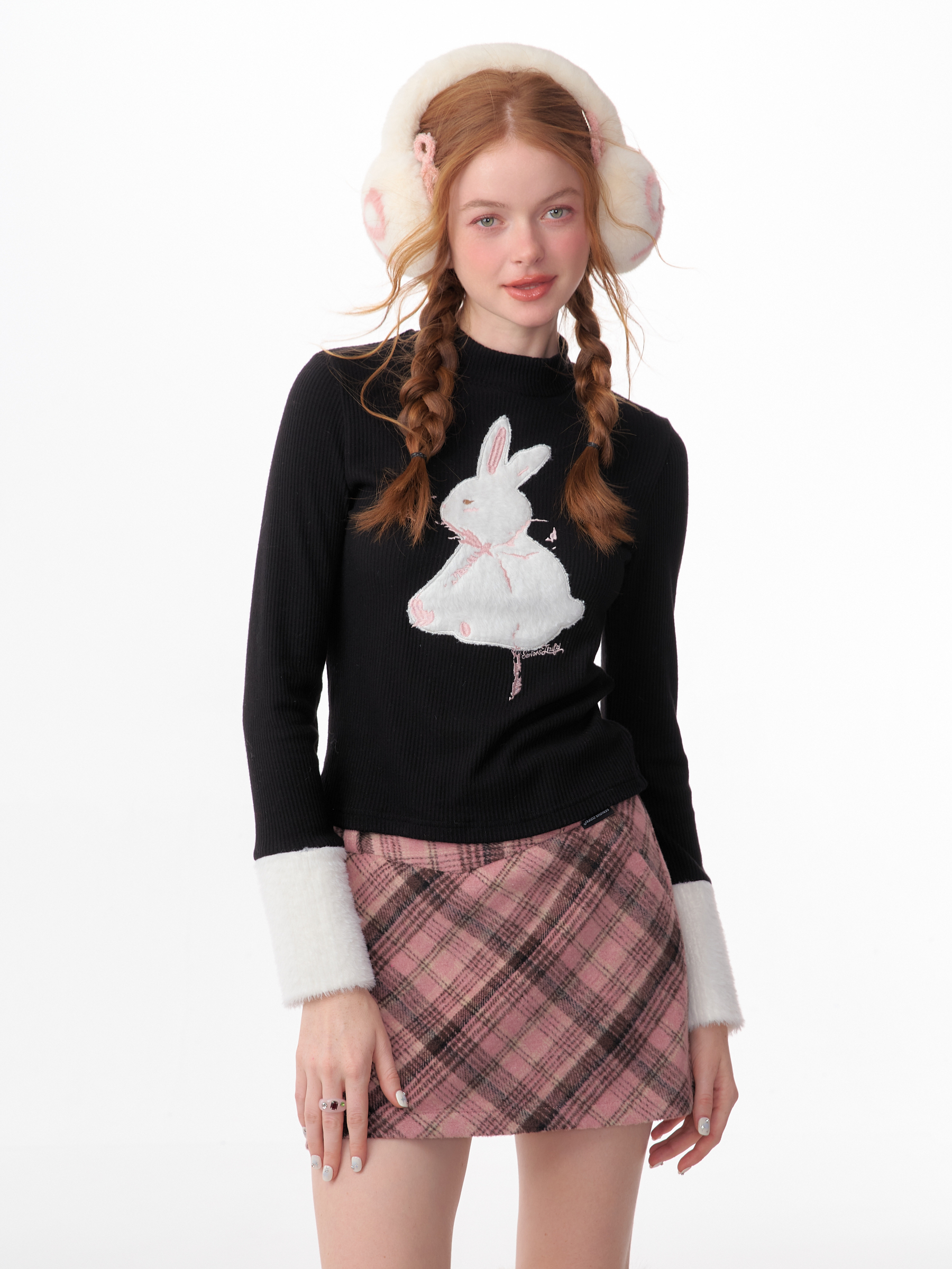 Suéter navideño de conejo de peluche | Capa base retro roja de Año Nuevo para otoño/invierno