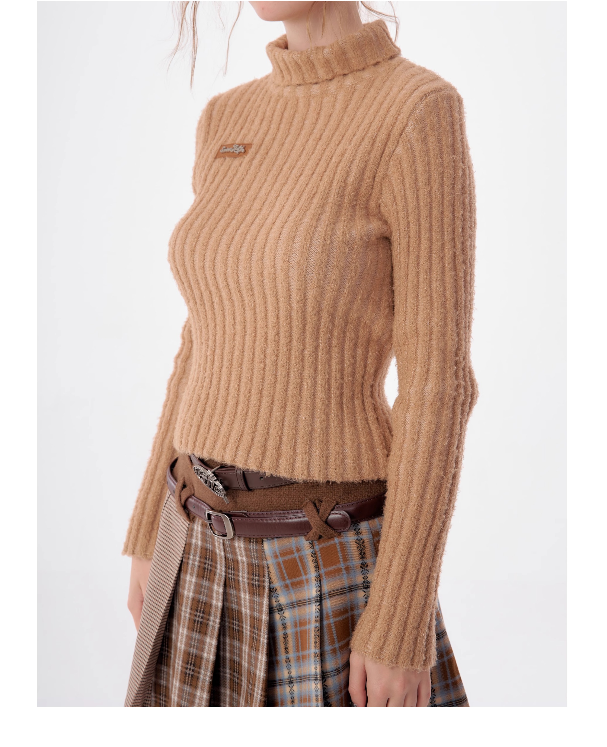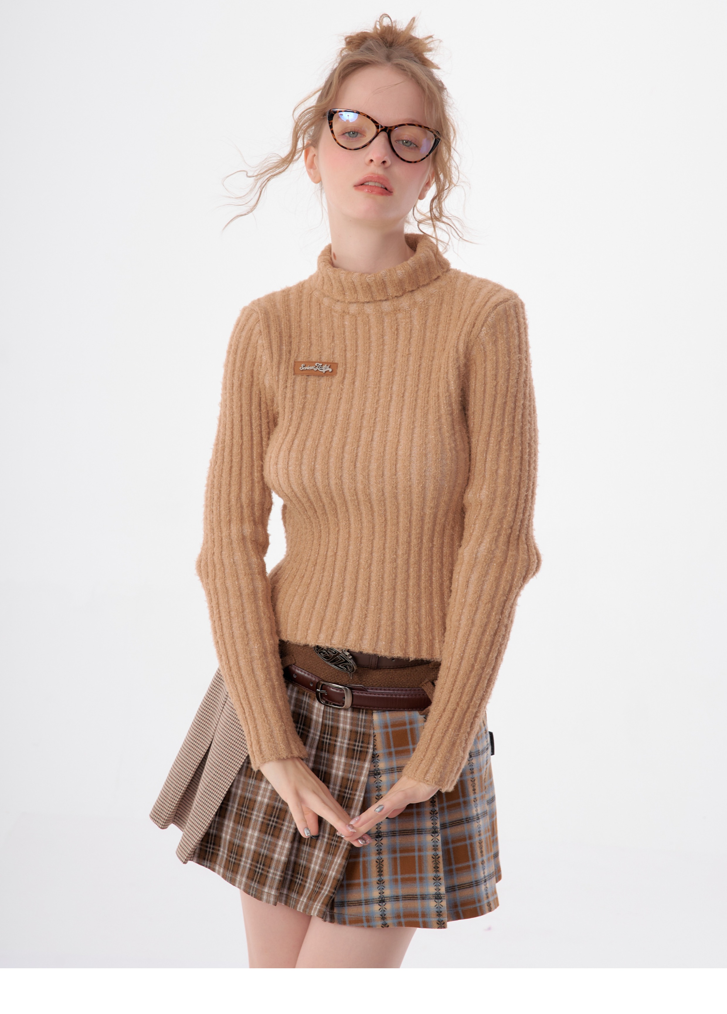 Suéter delgado con patrón de hoyo Diseño retro de cuello alto grueso para otoño/invierno