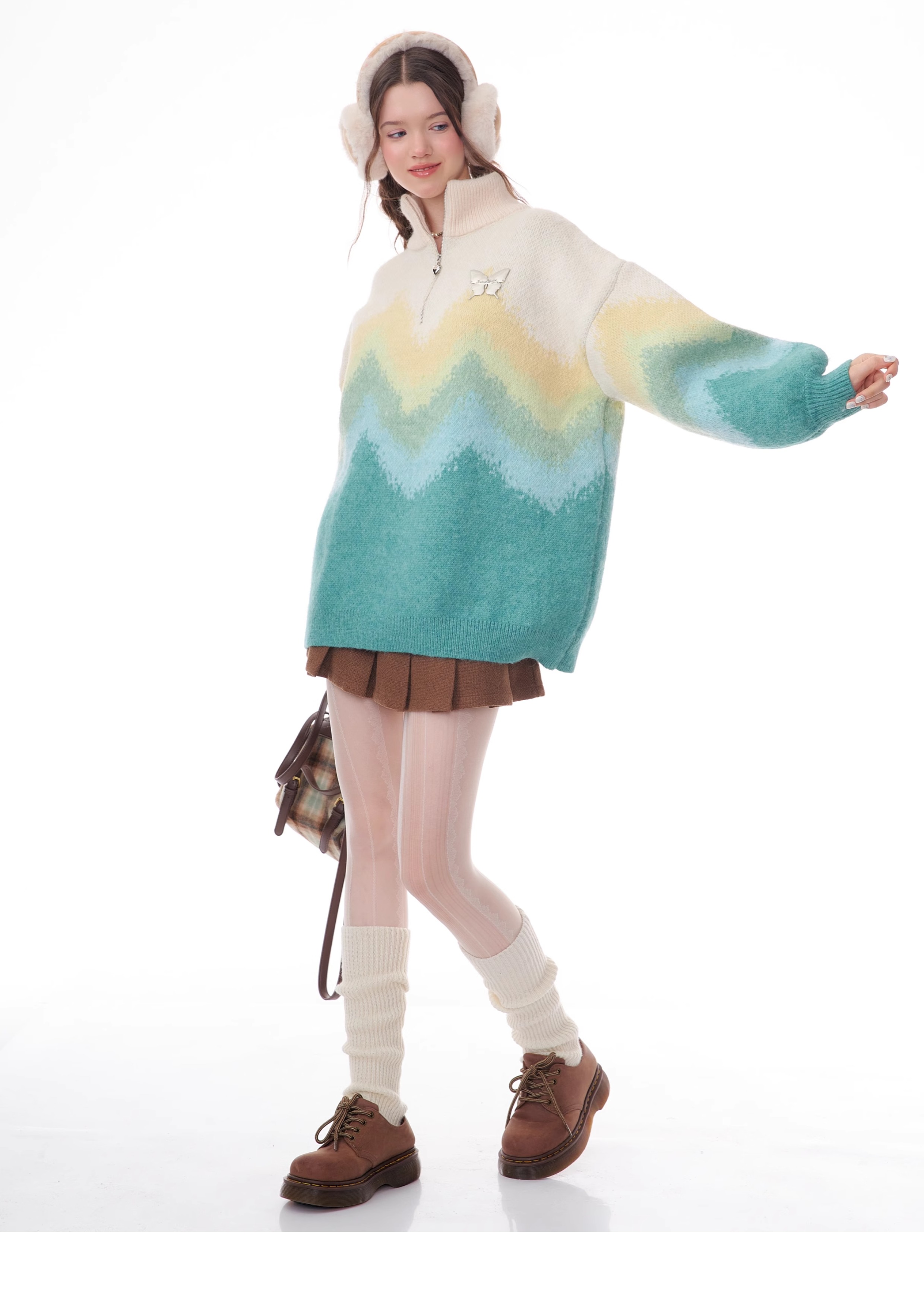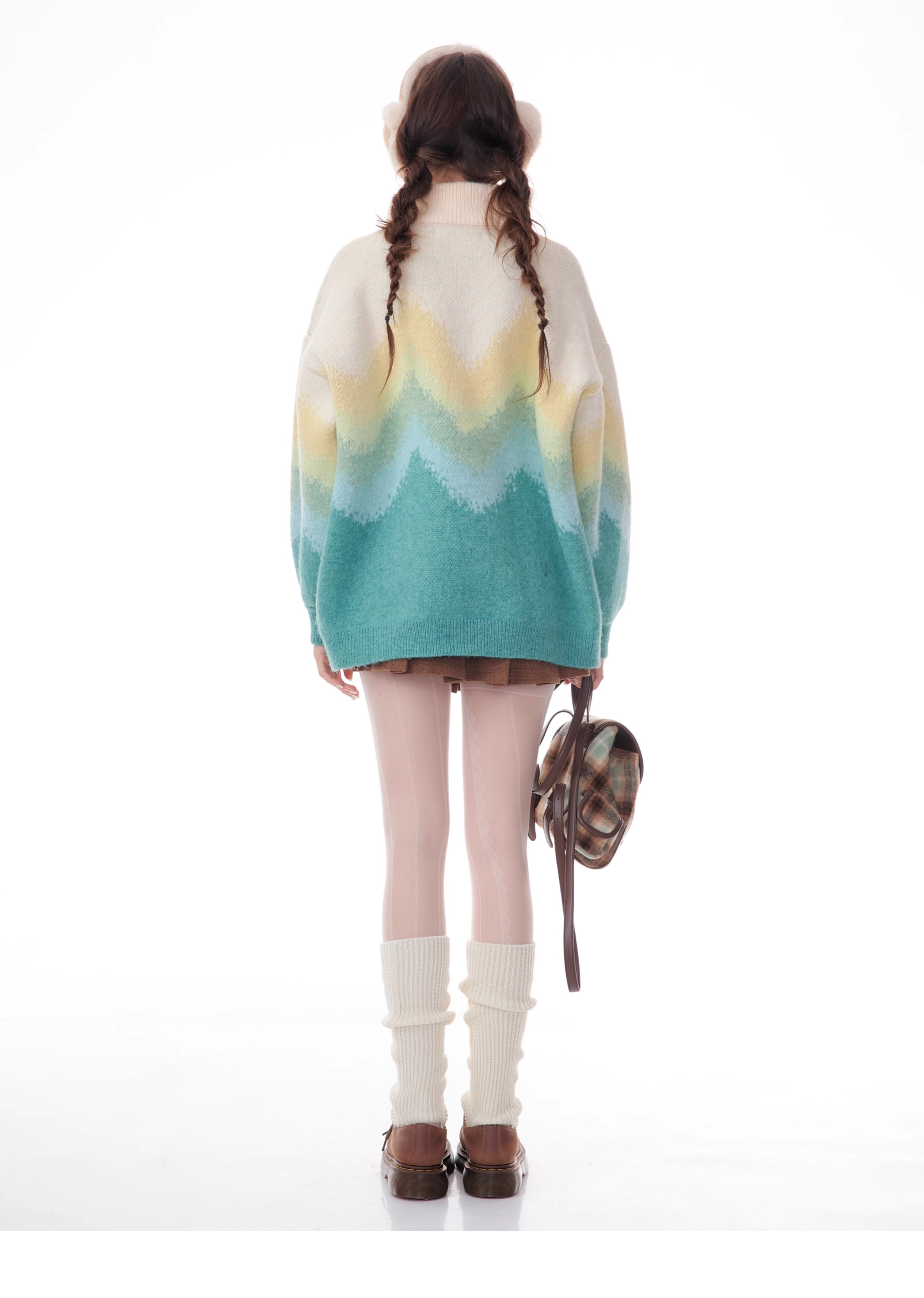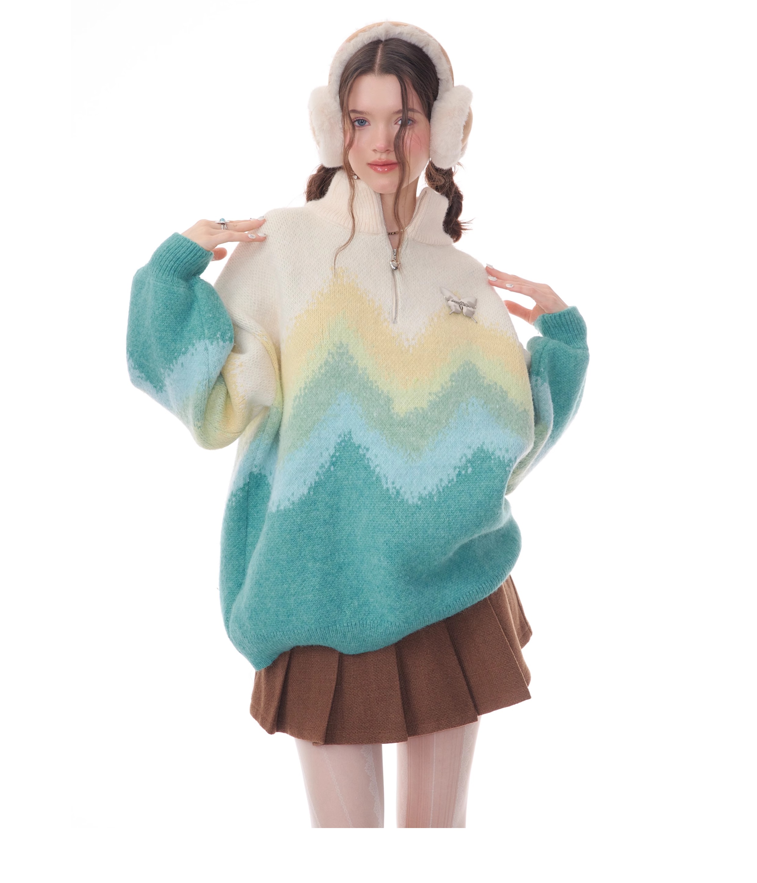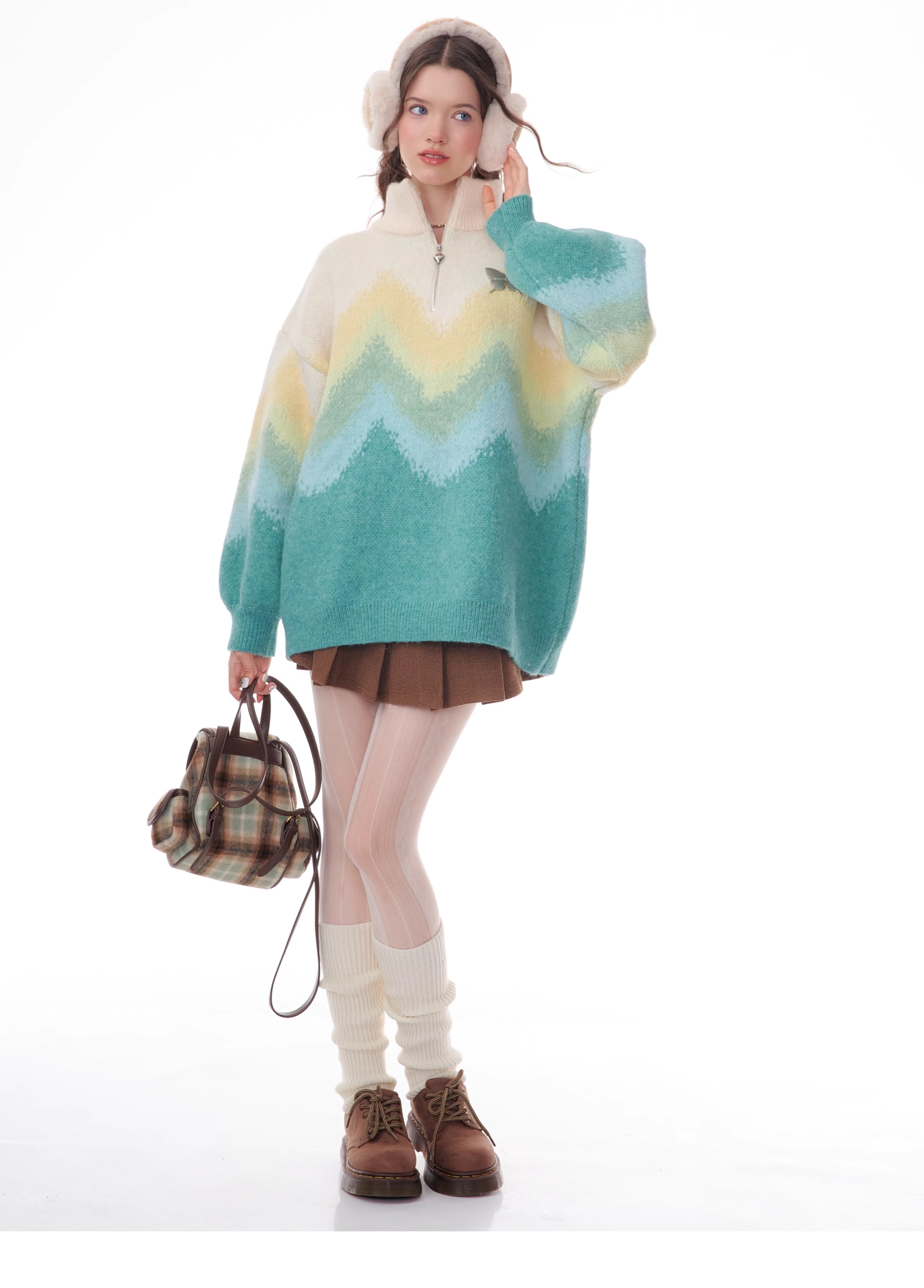 suéter de cera suave con patrón de ondas, diseño retro suelto de cuello medio alto para otoño/invierno