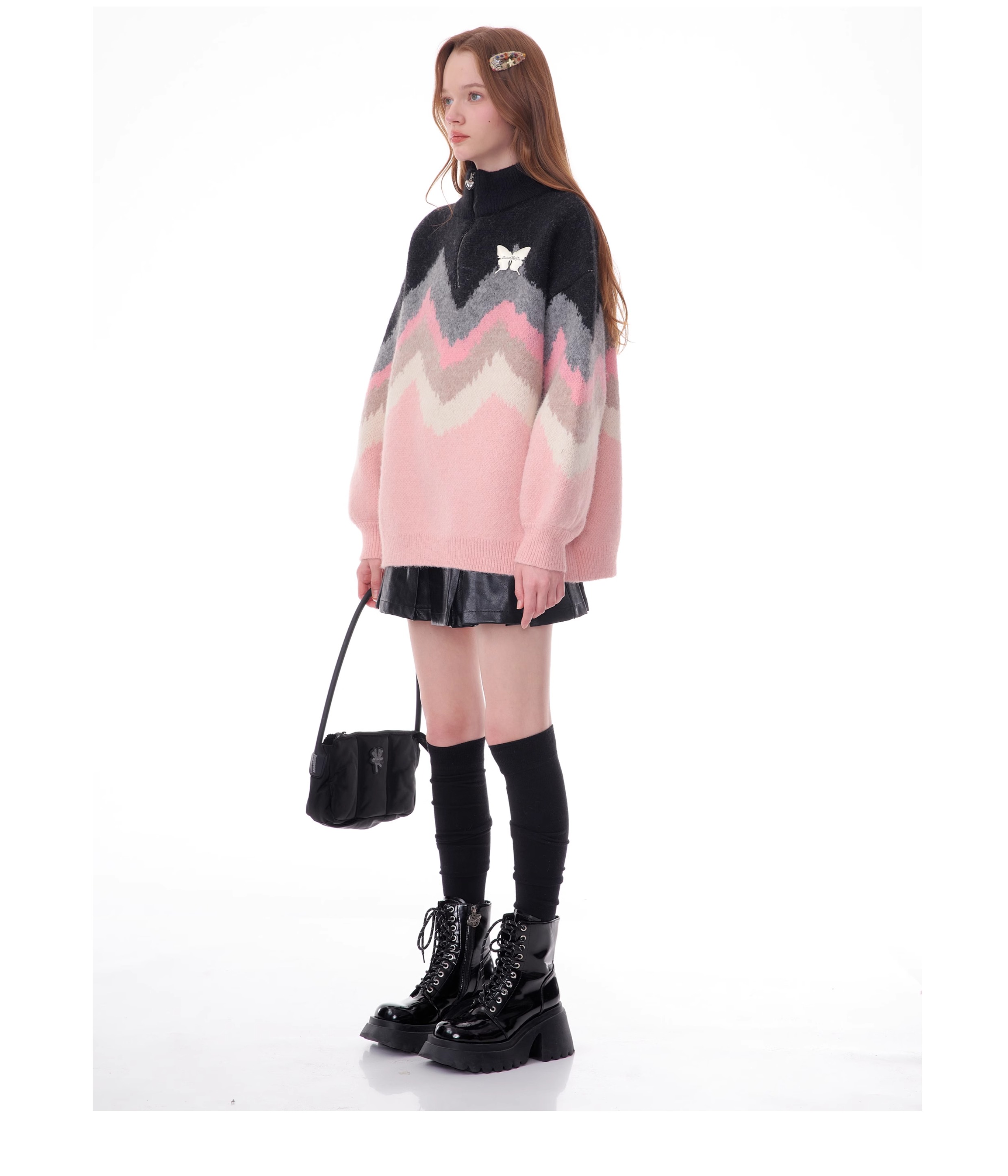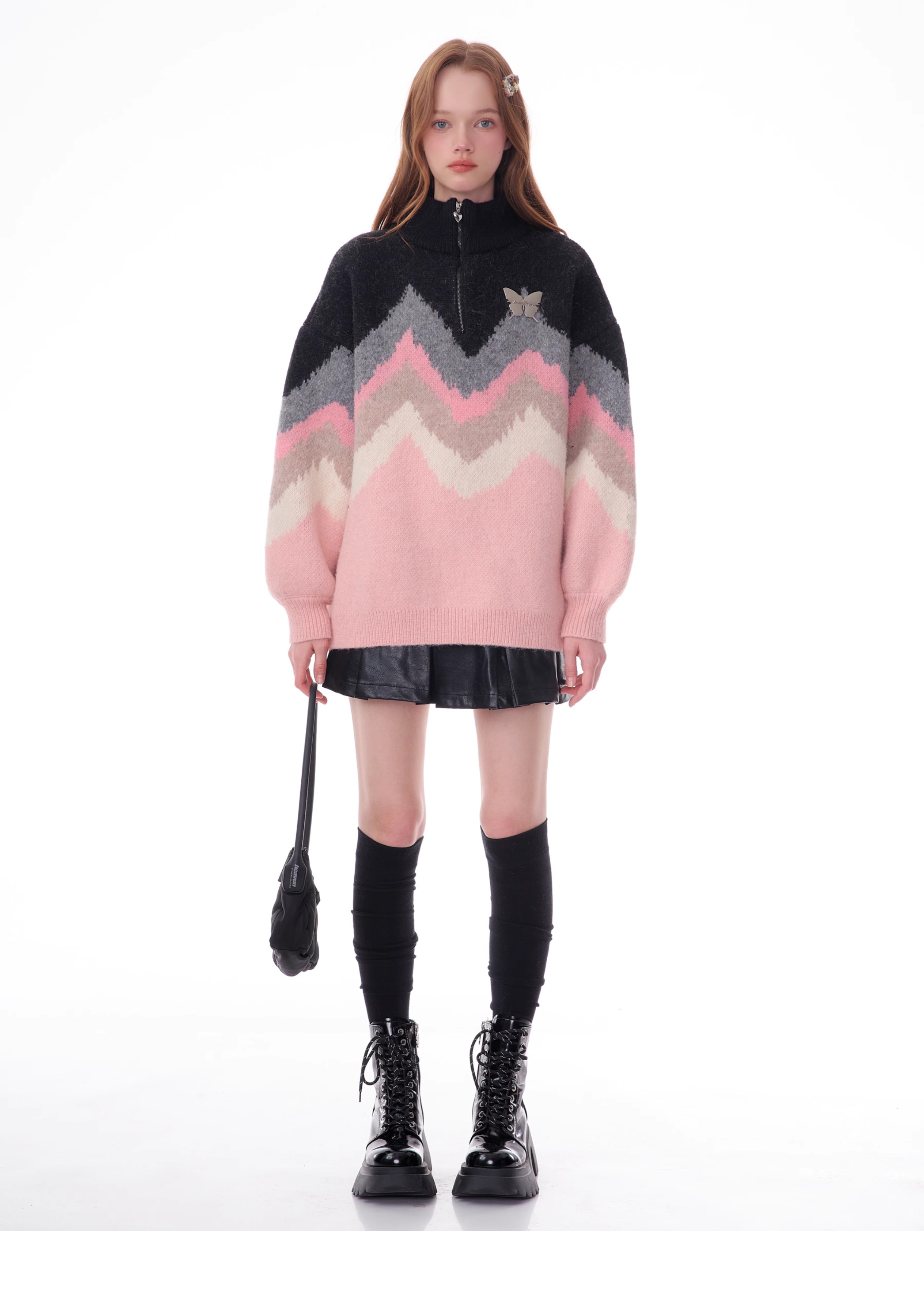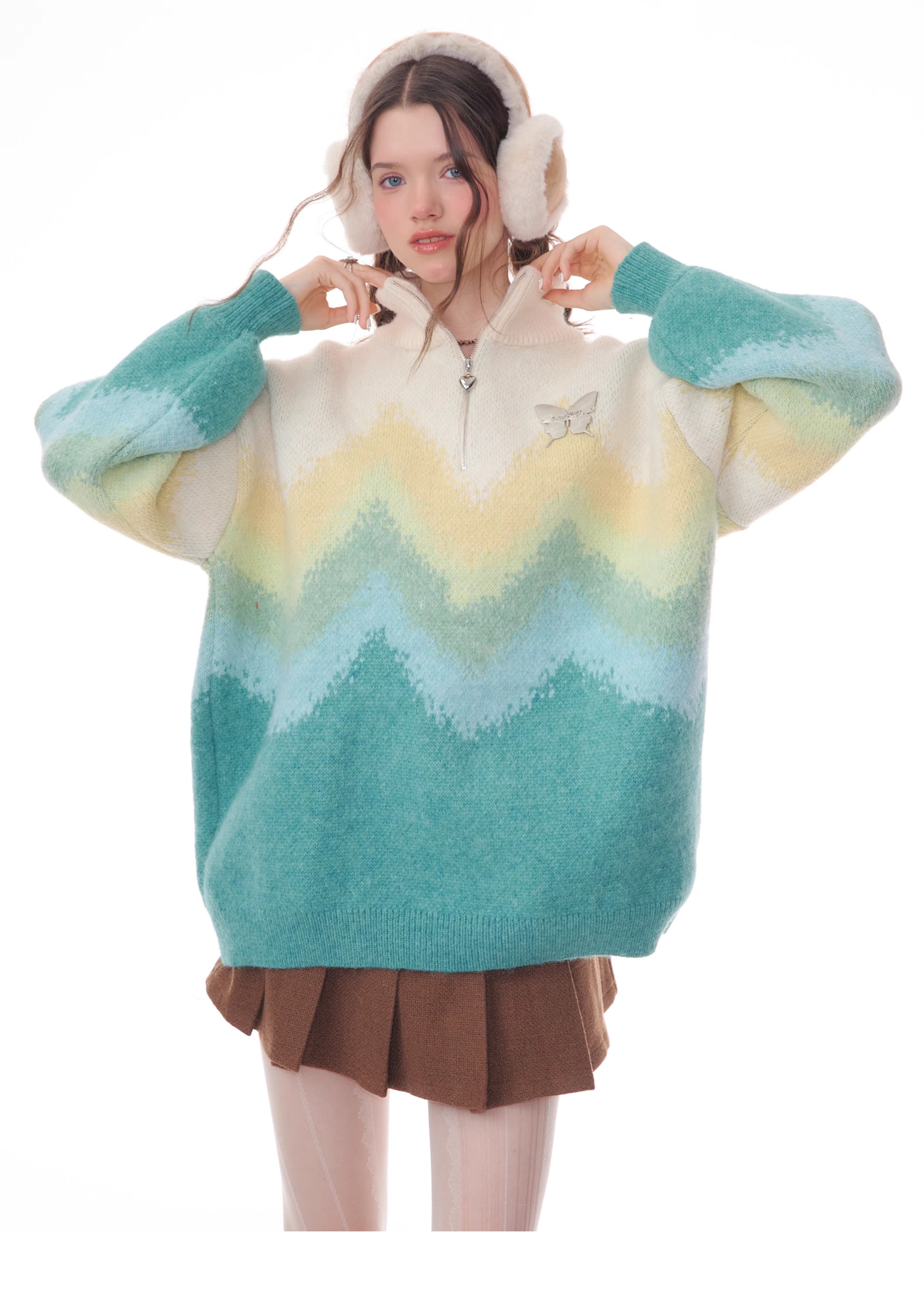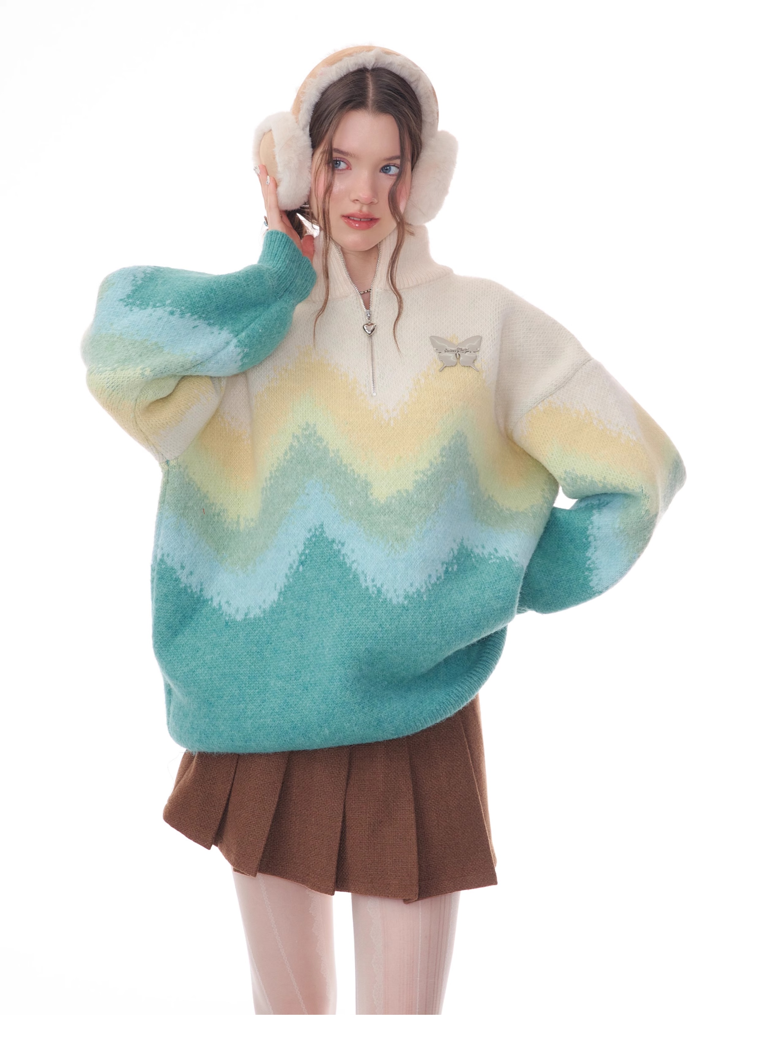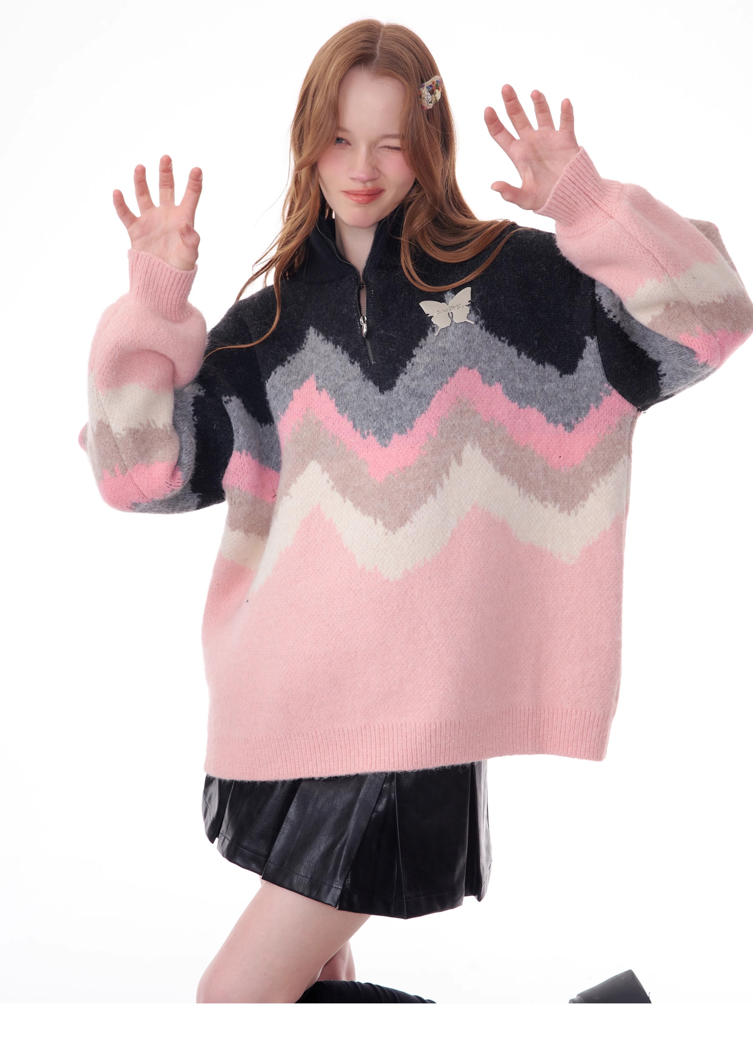 suéter de cera suave con patrón de ondas, diseño retro suelto de cuello medio alto para otoño/invierno