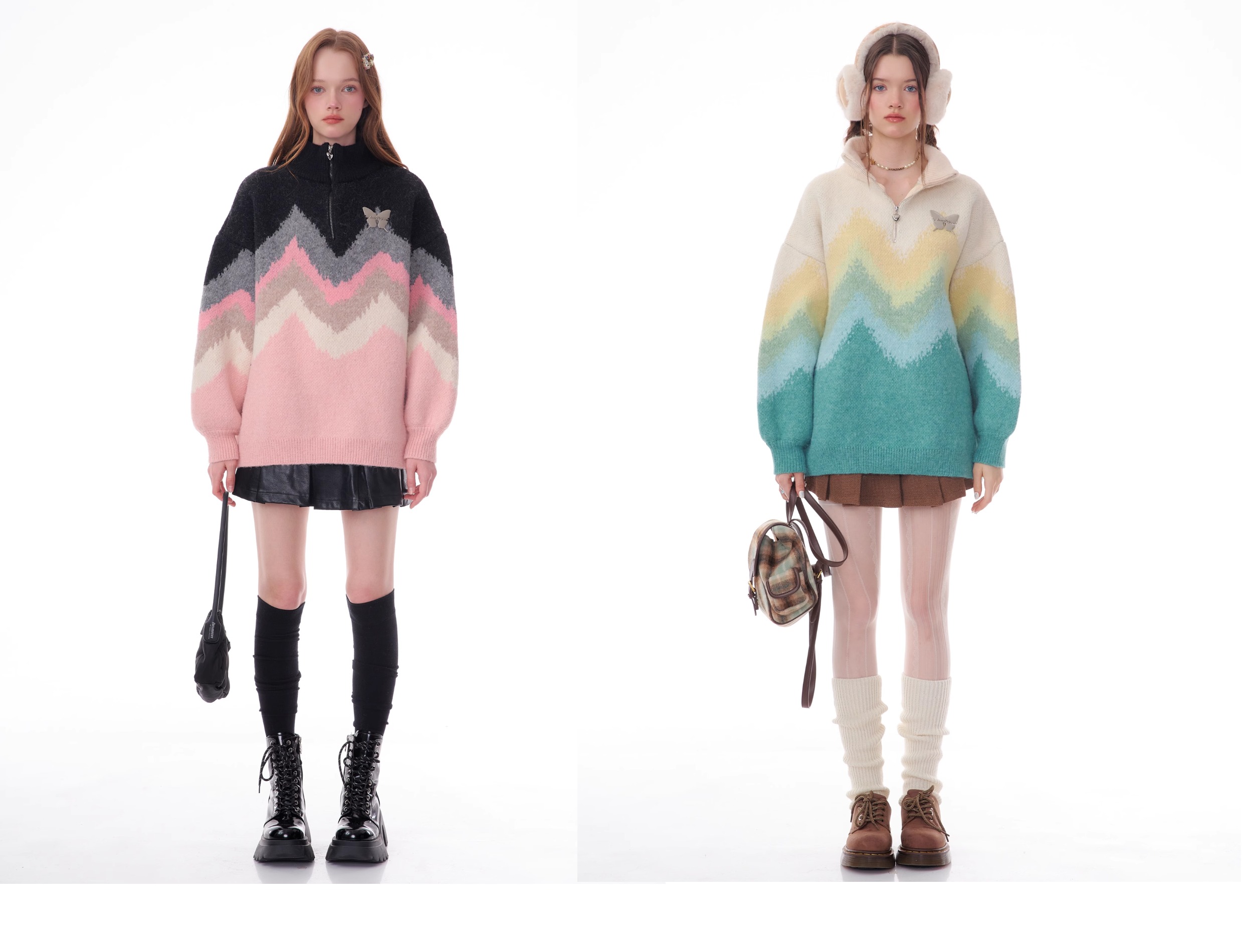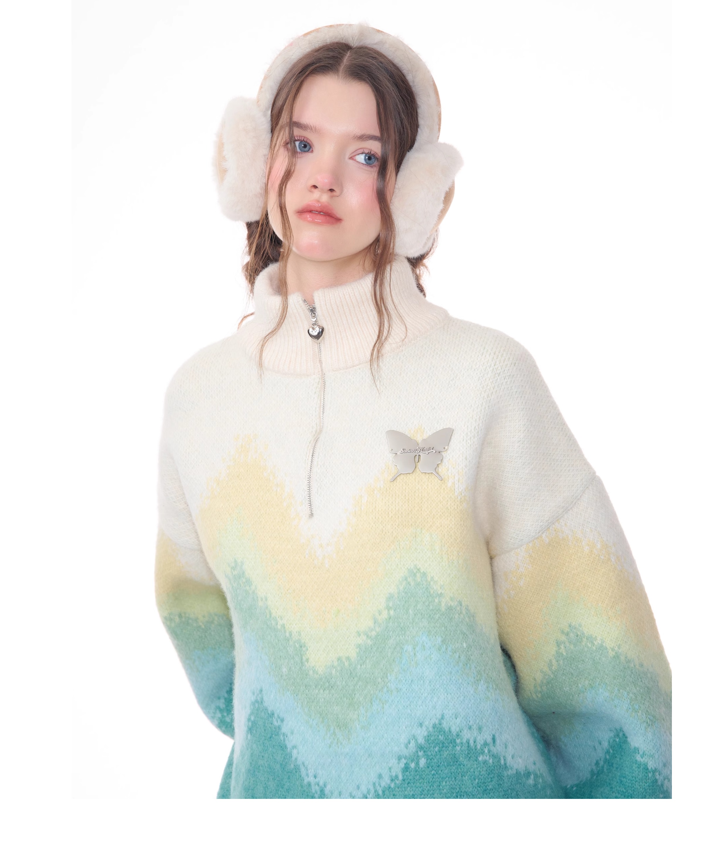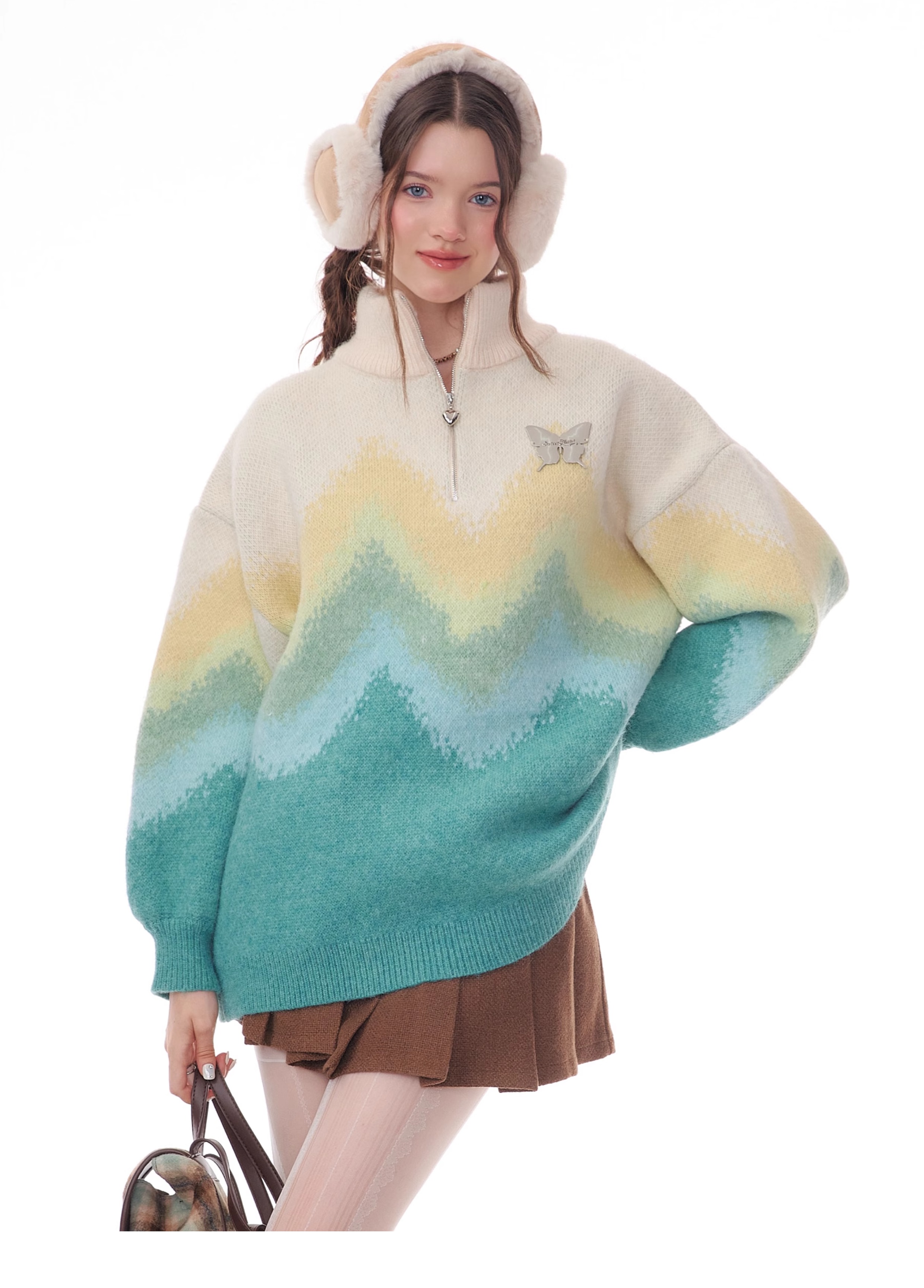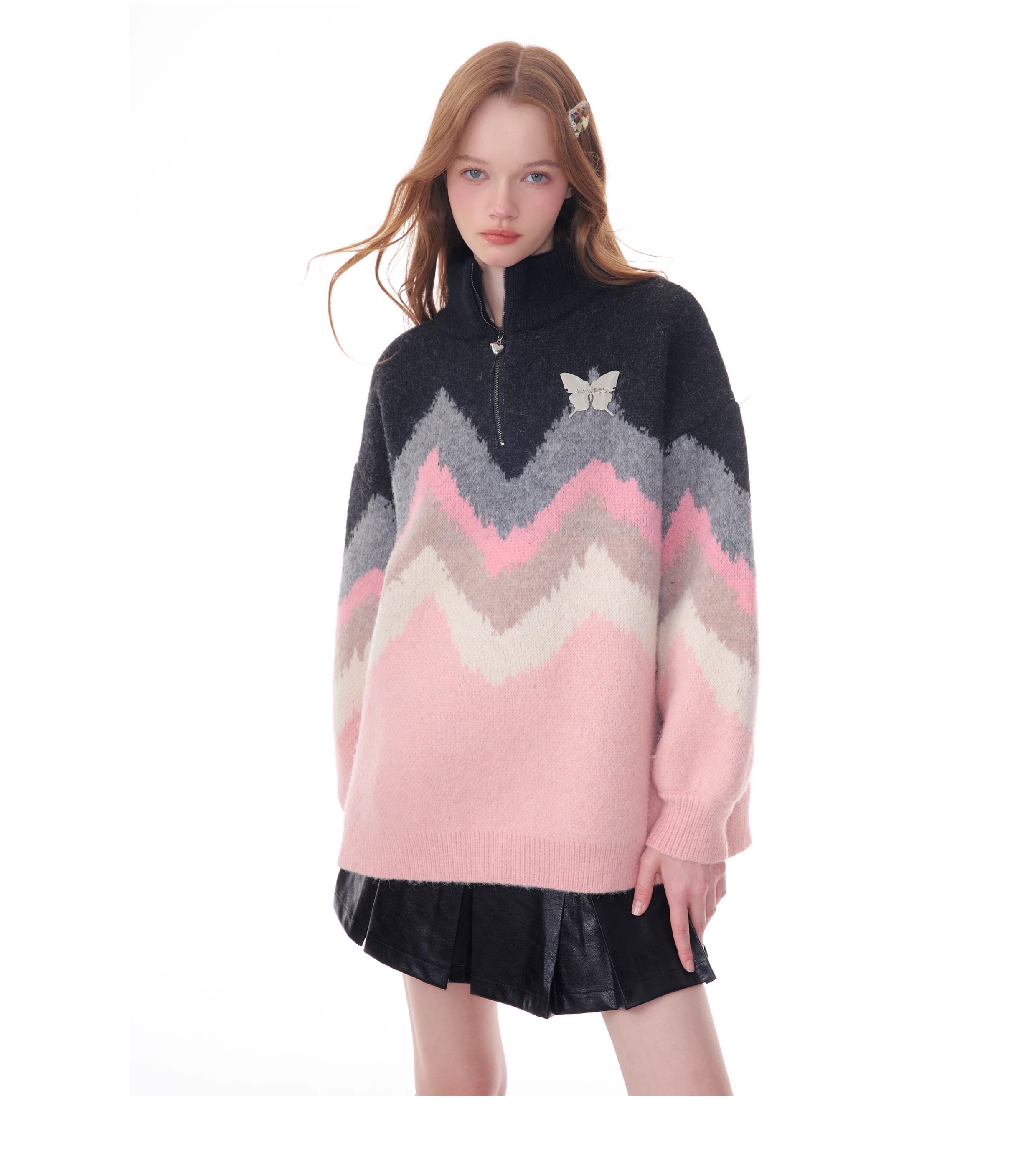 suéter de cera suave con patrón de ondas, diseño retro suelto de cuello medio alto para otoño/invierno