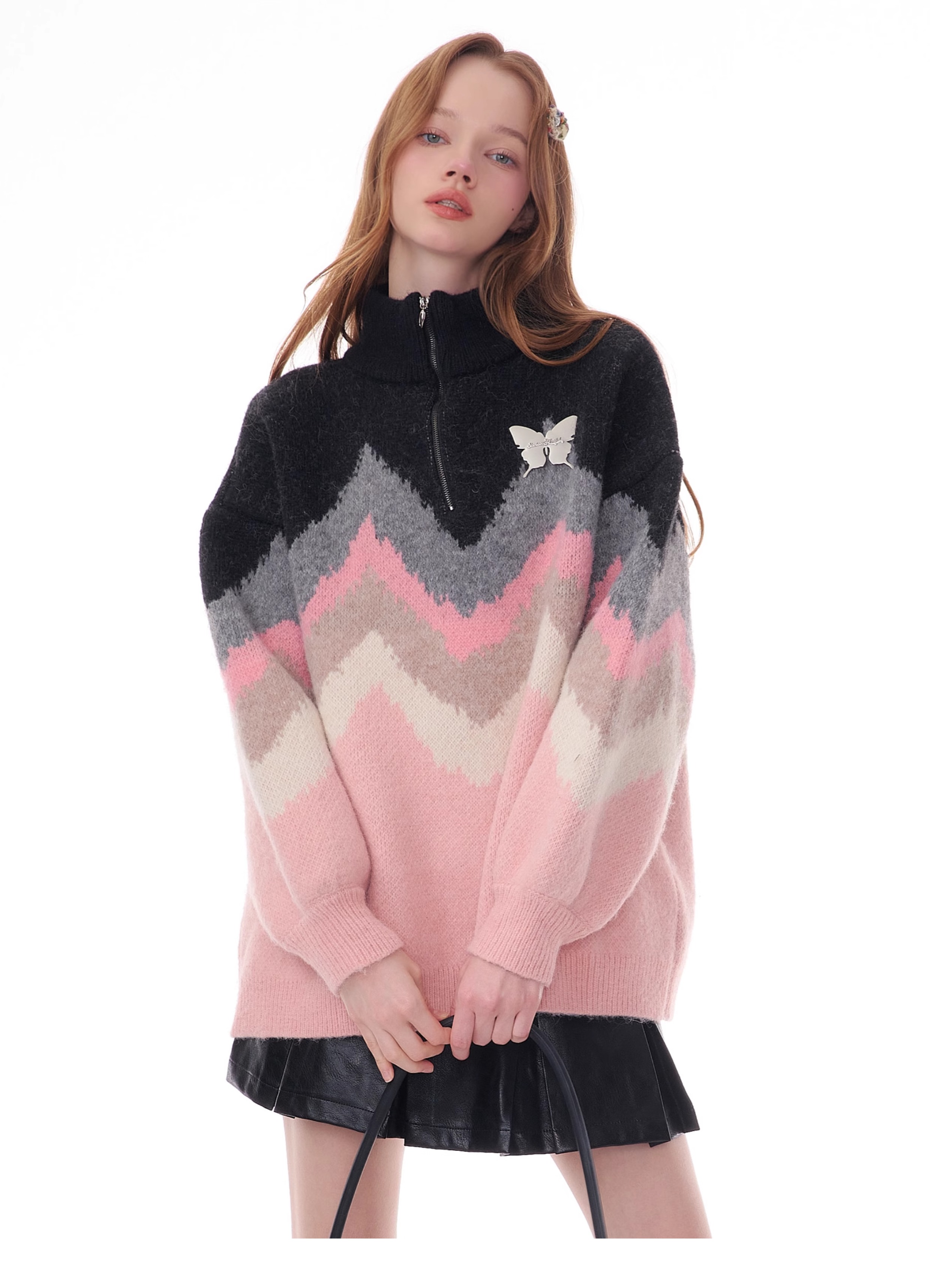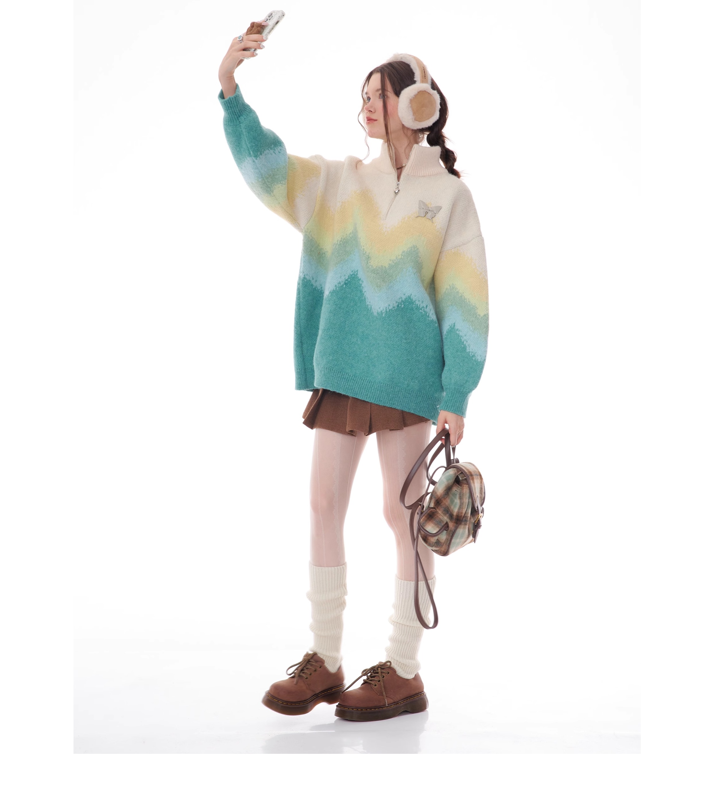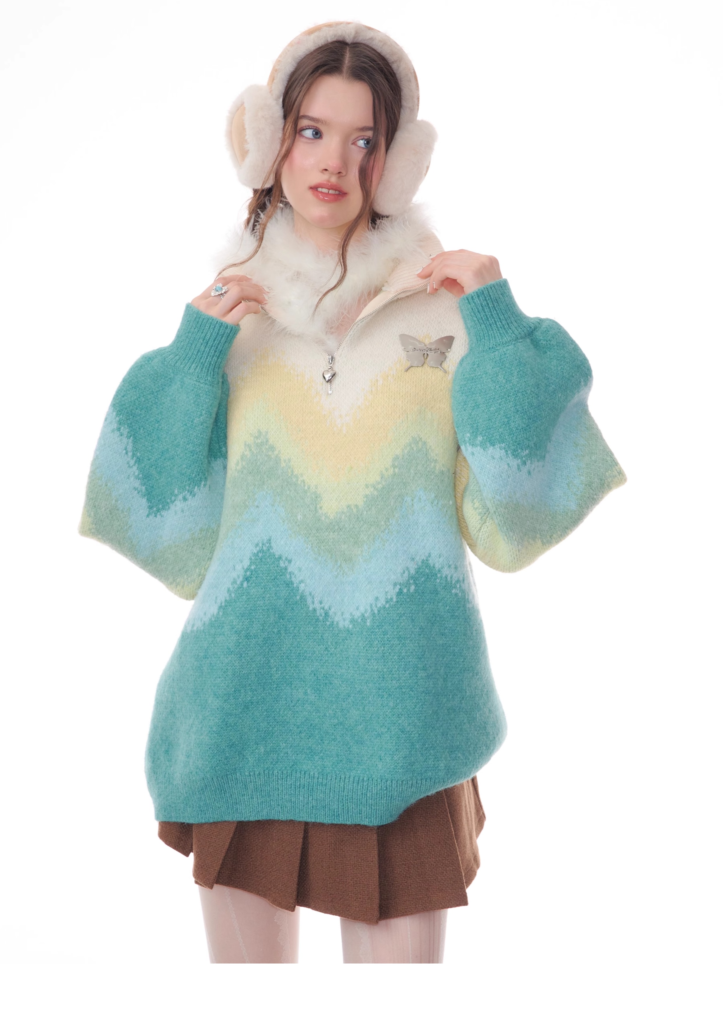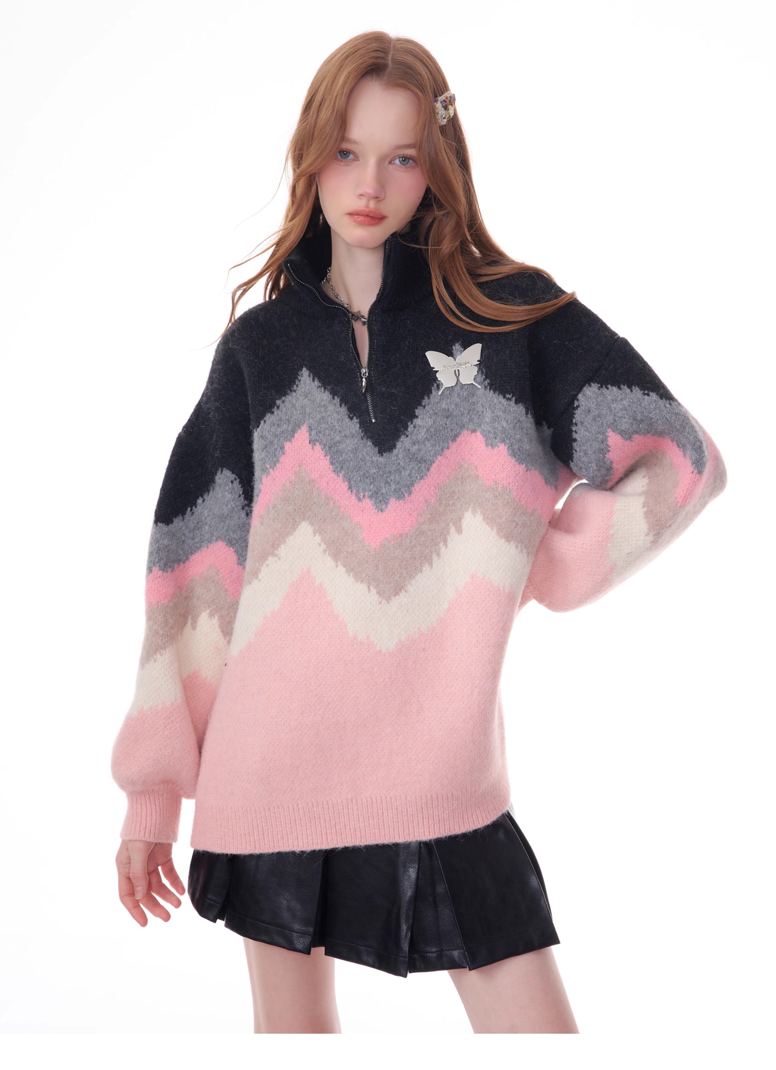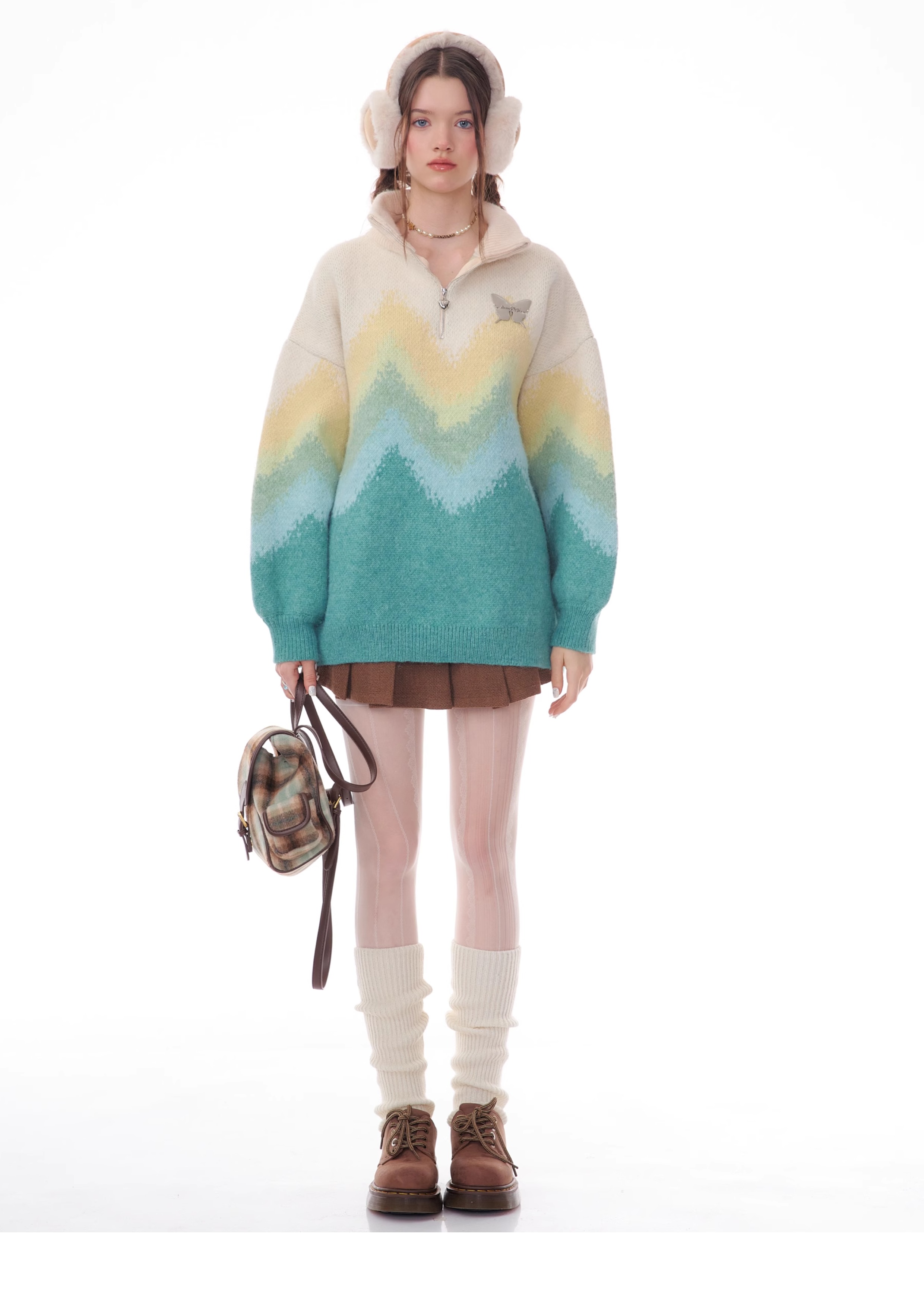 suéter de cera suave con patrón de ondas, diseño retro suelto de cuello medio alto para otoño/invierno