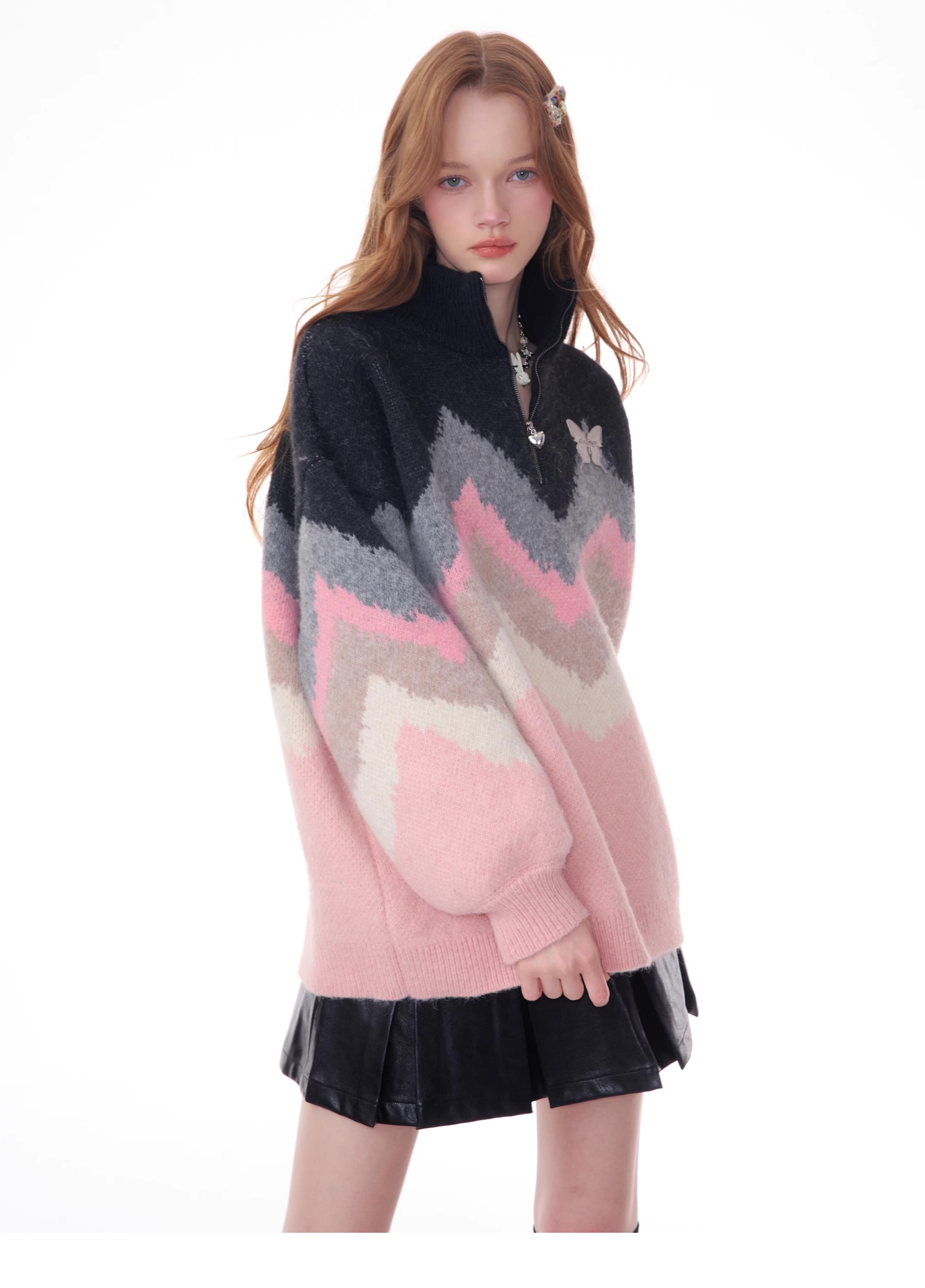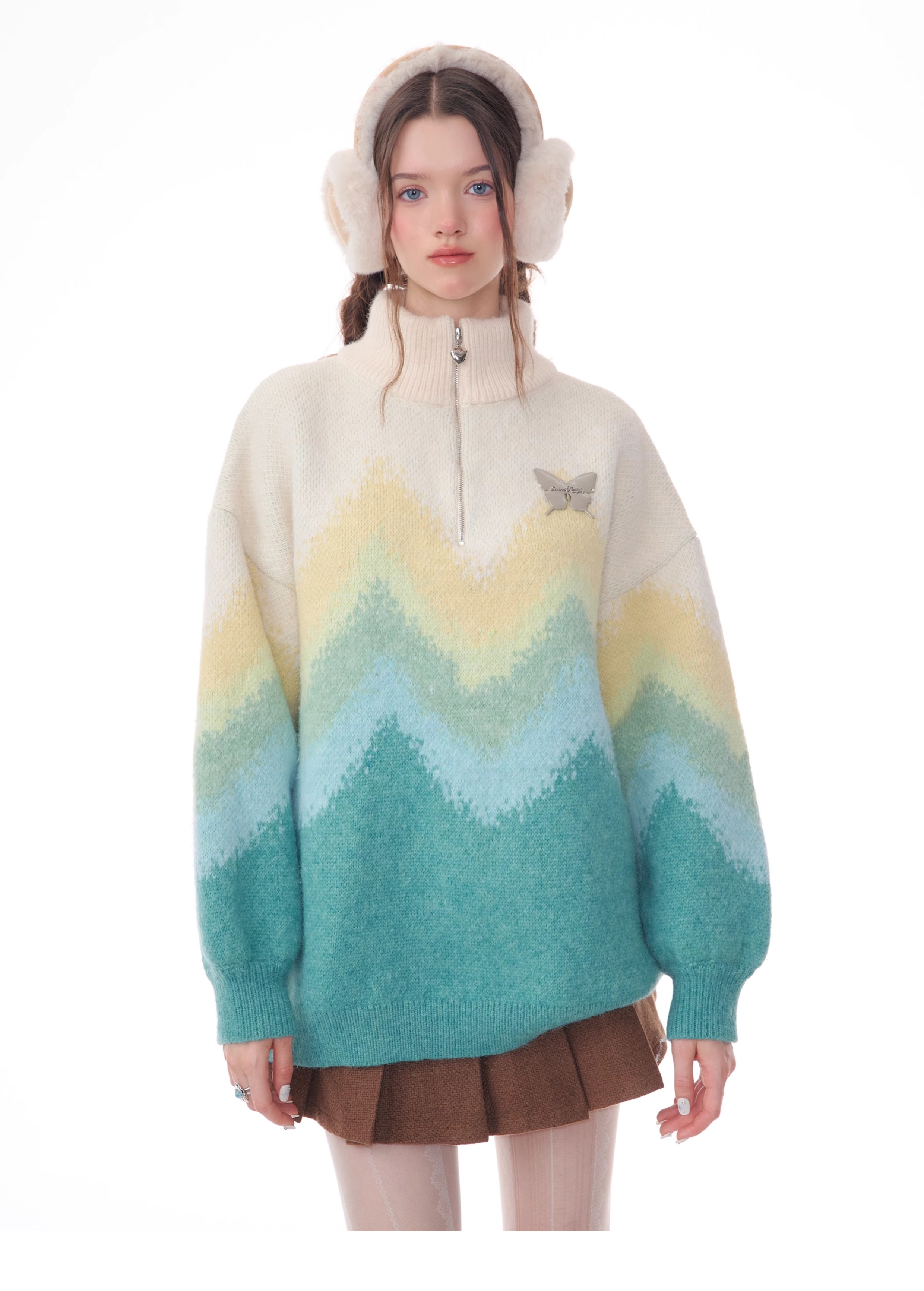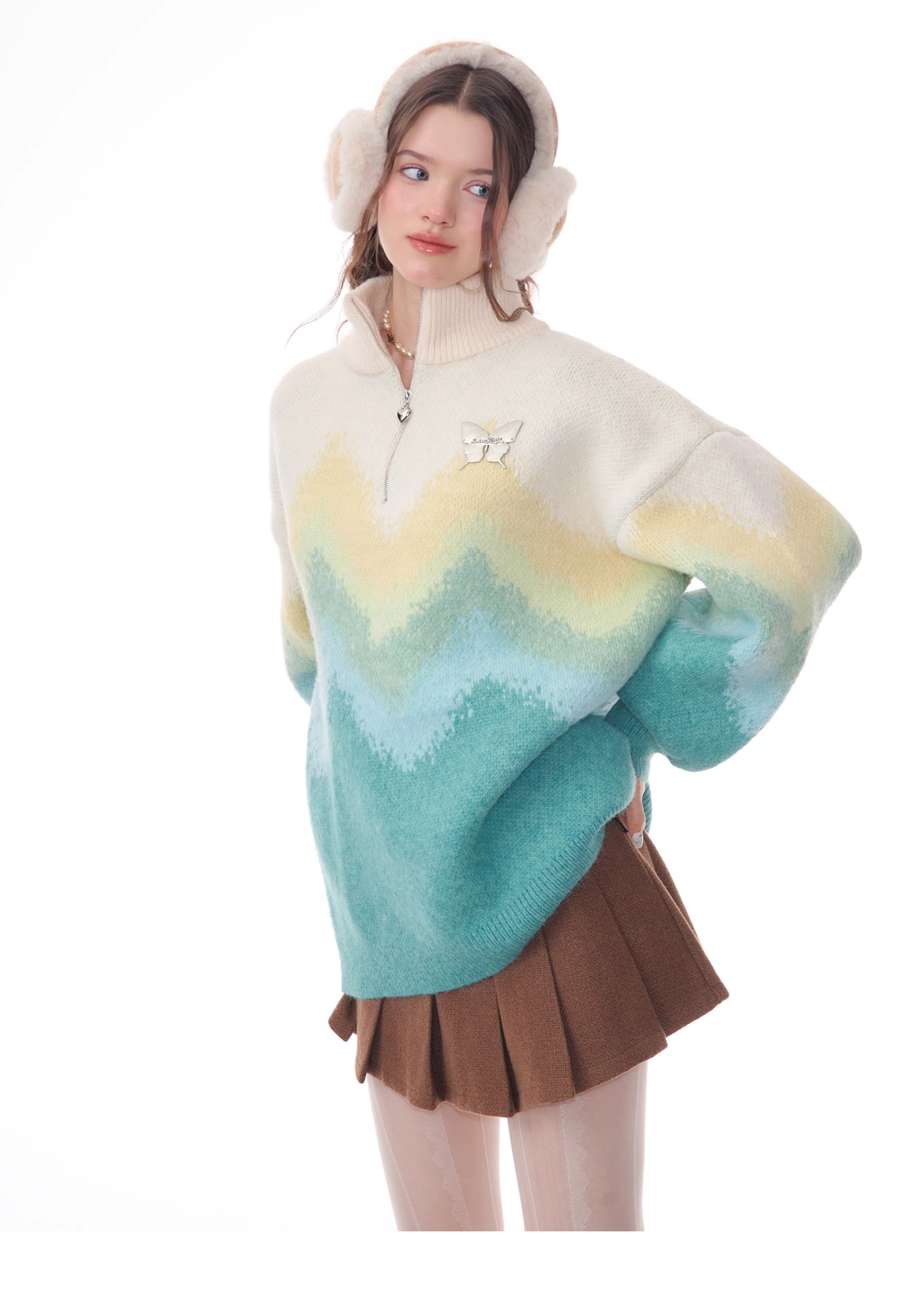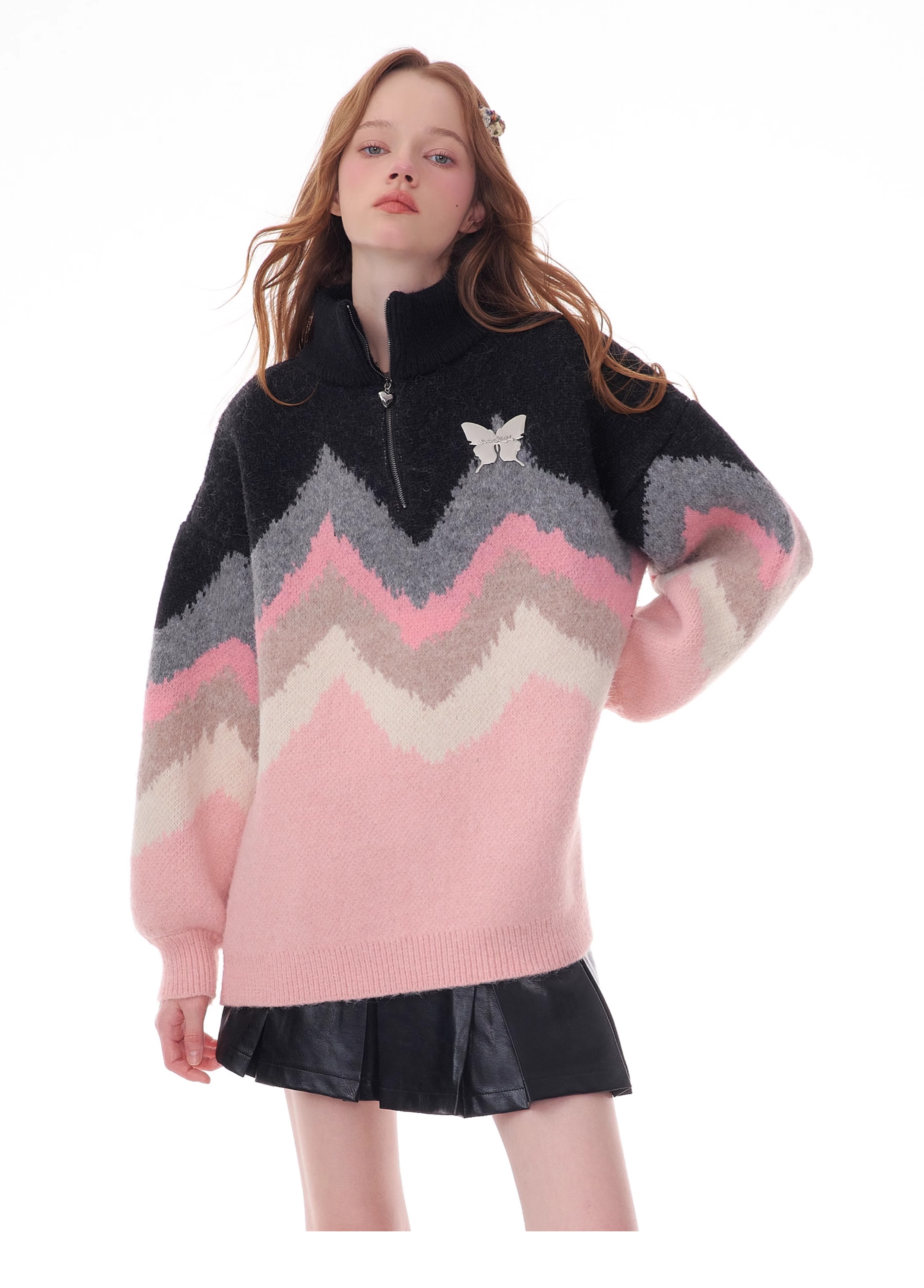 suéter de cera suave con patrón de ondas, diseño retro suelto de cuello medio alto para otoño/invierno