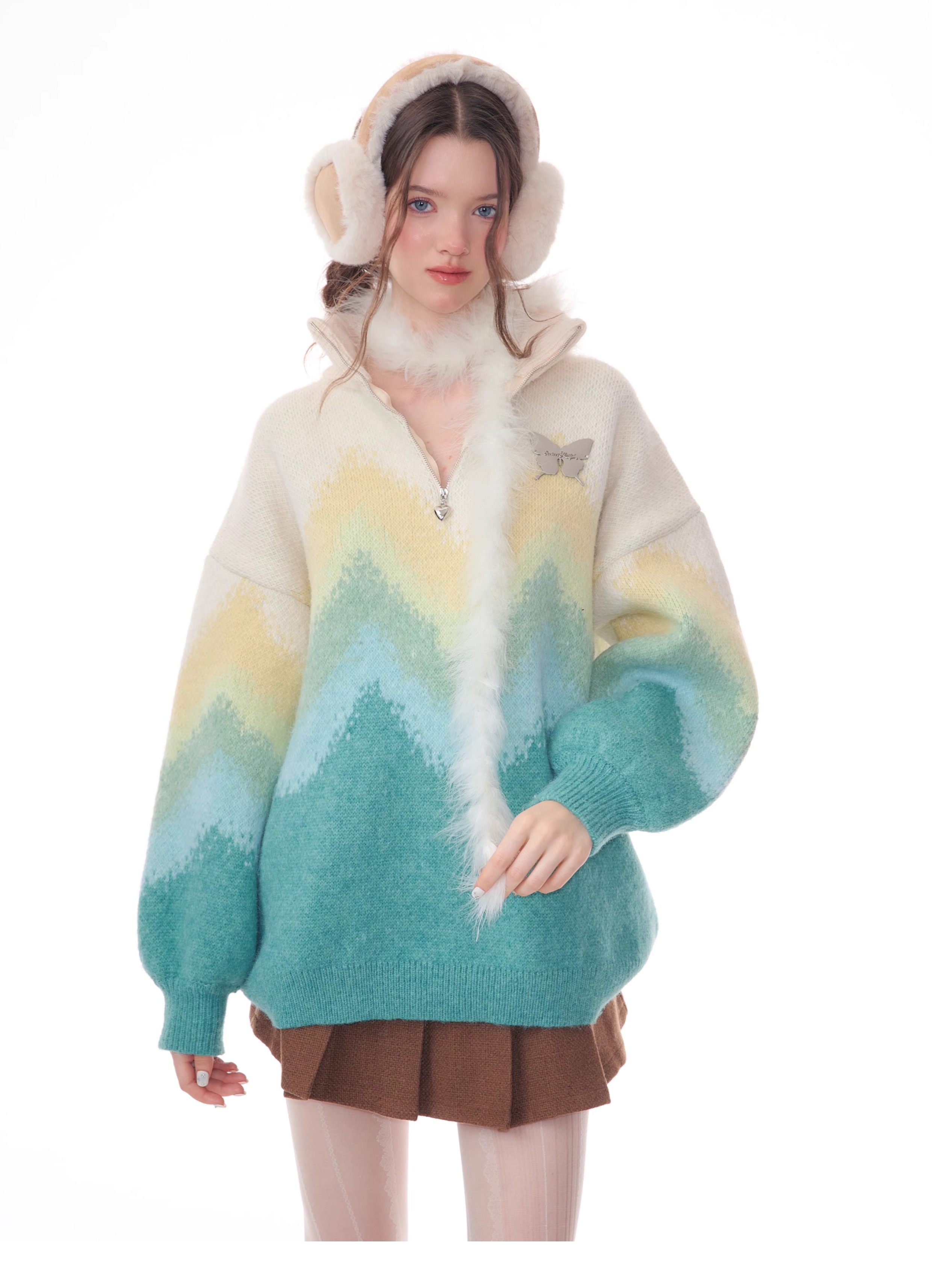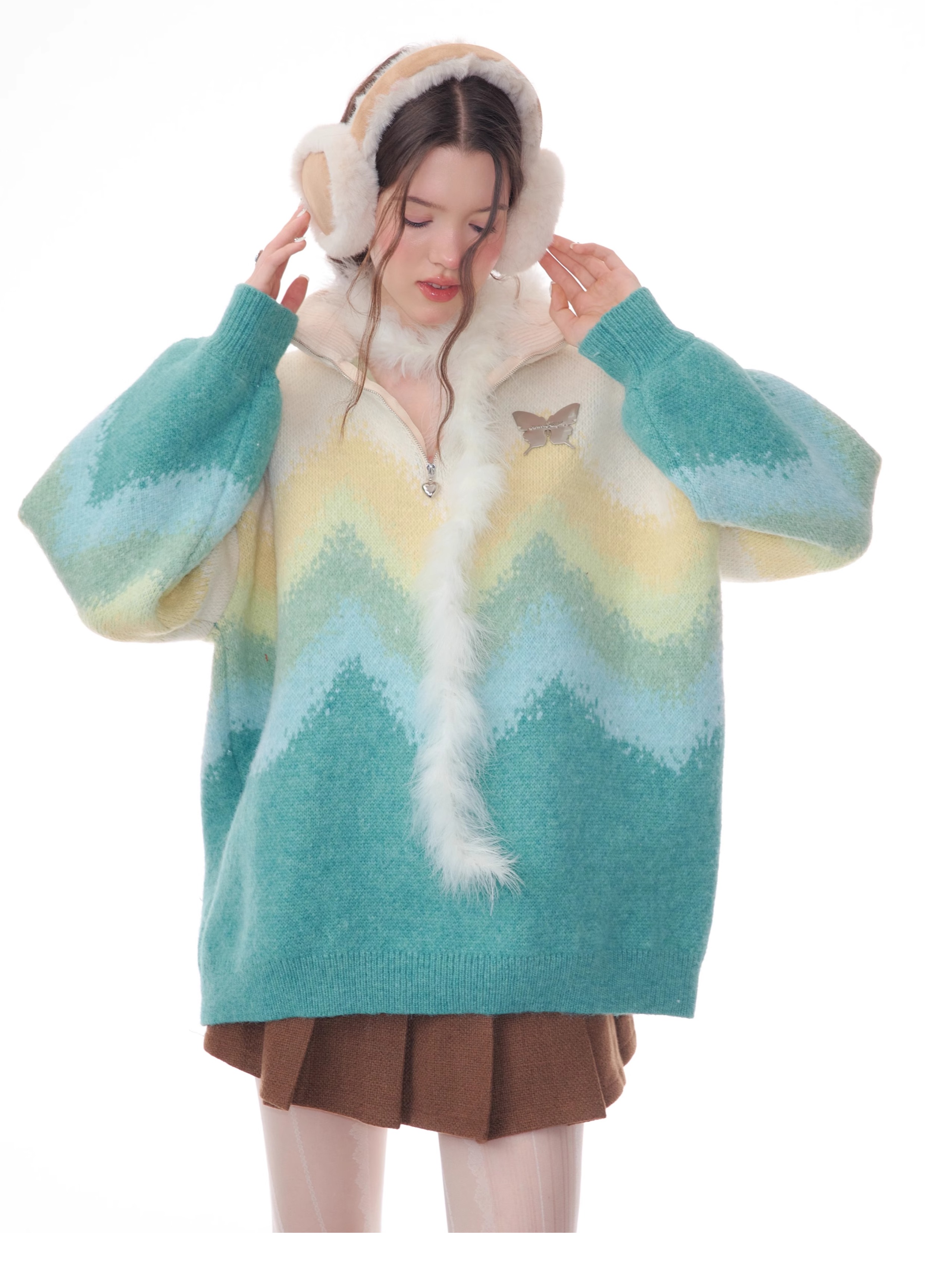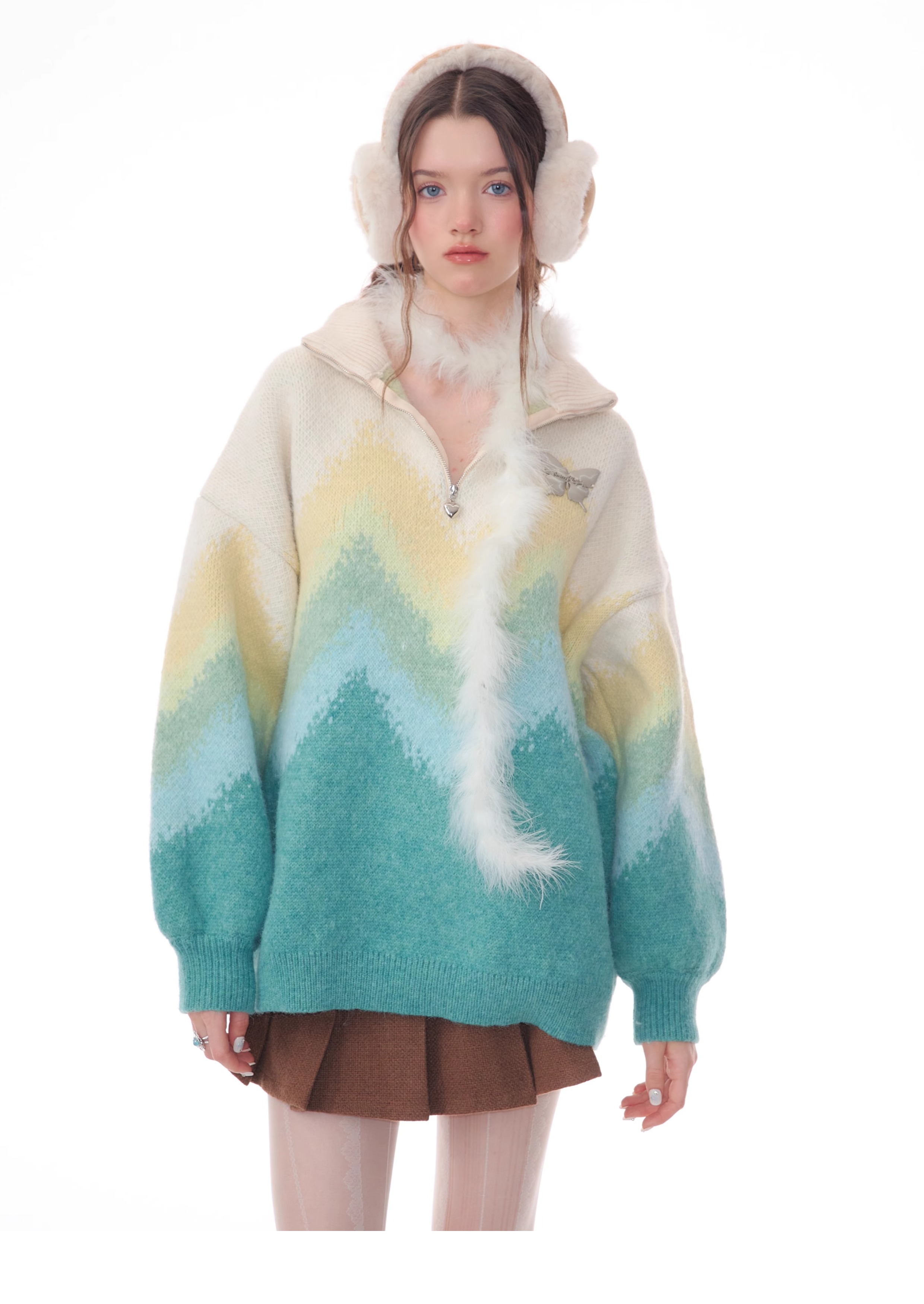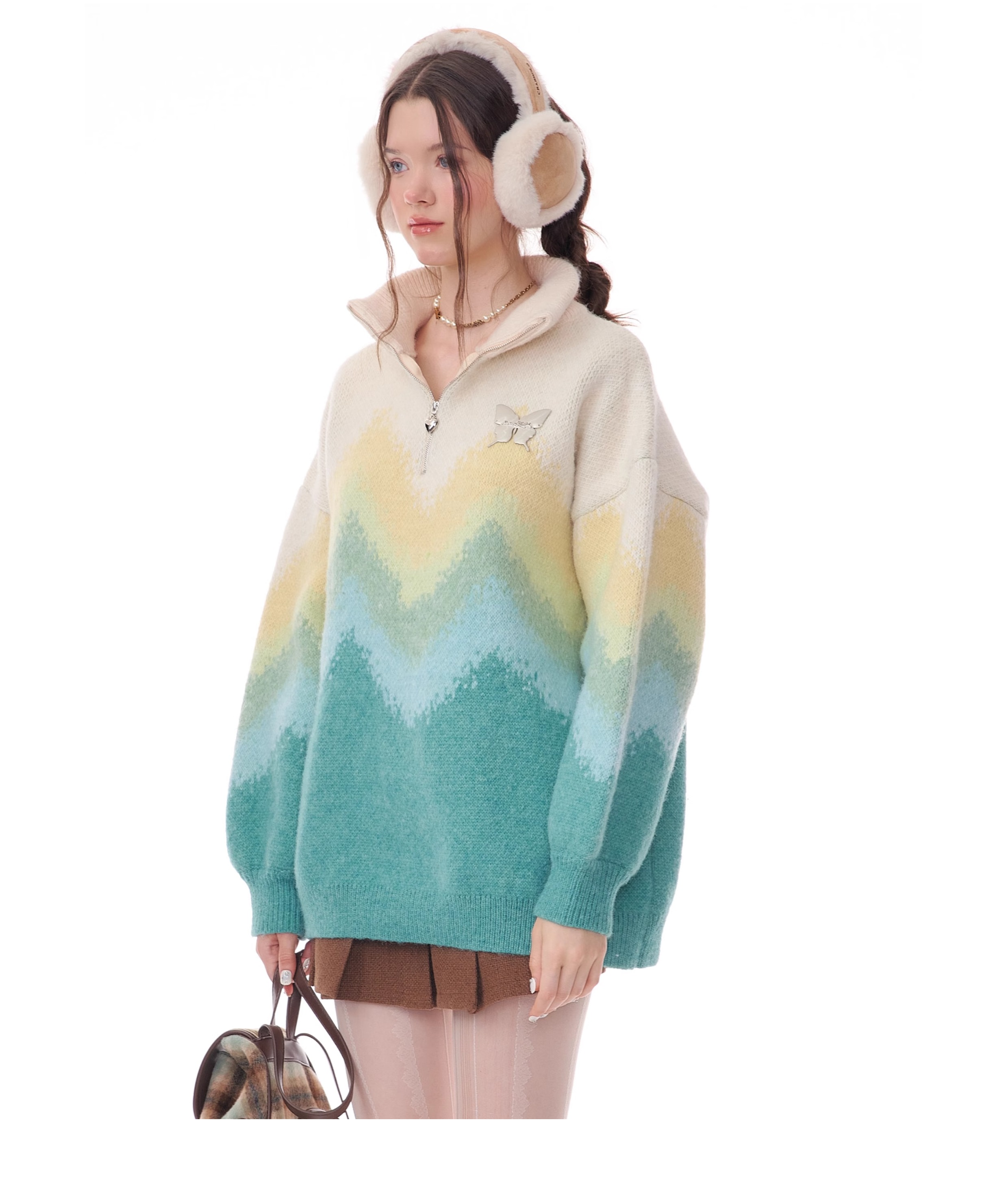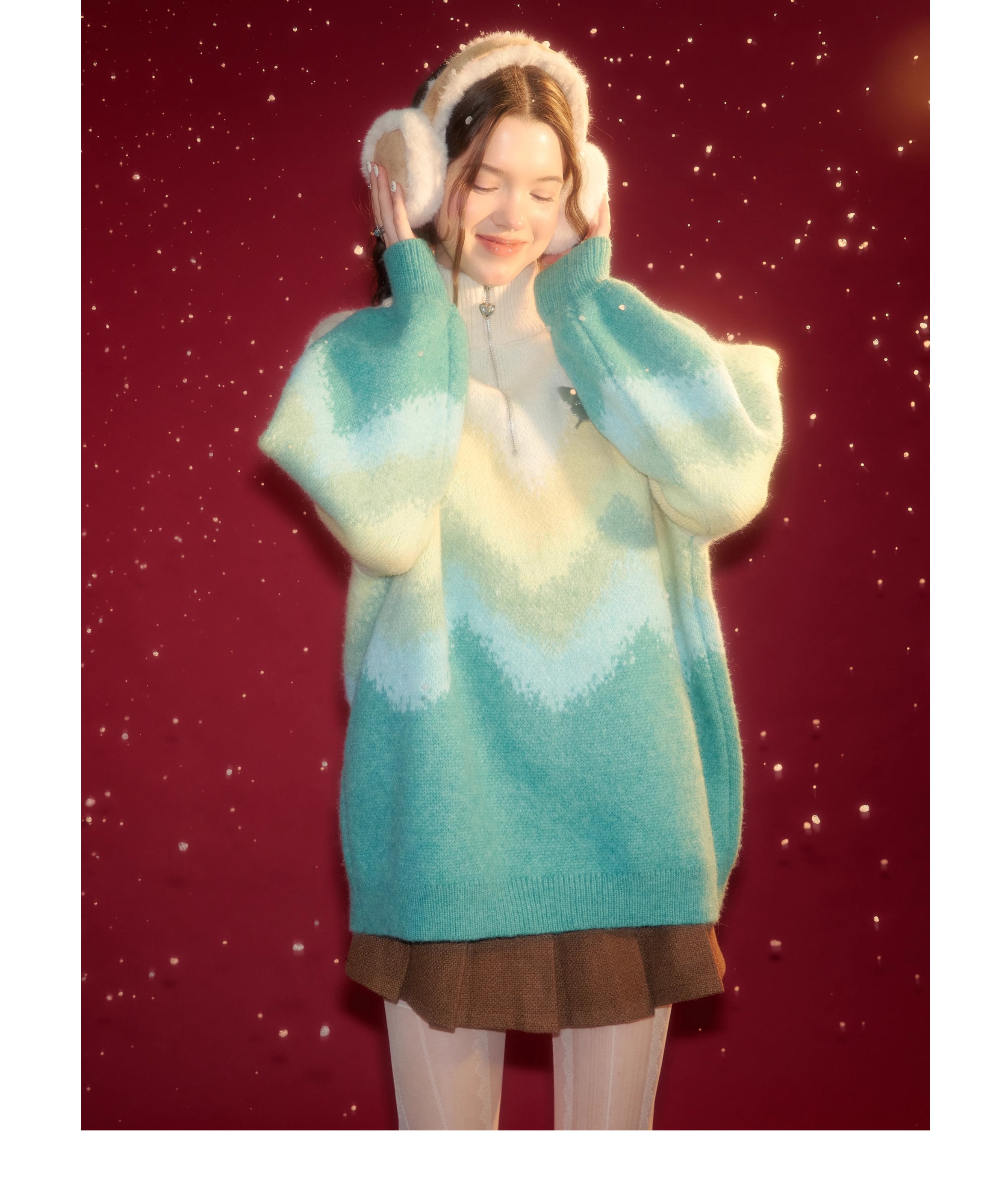 suéter de cera suave con patrón de ondas, diseño retro suelto de cuello medio alto para otoño/invierno