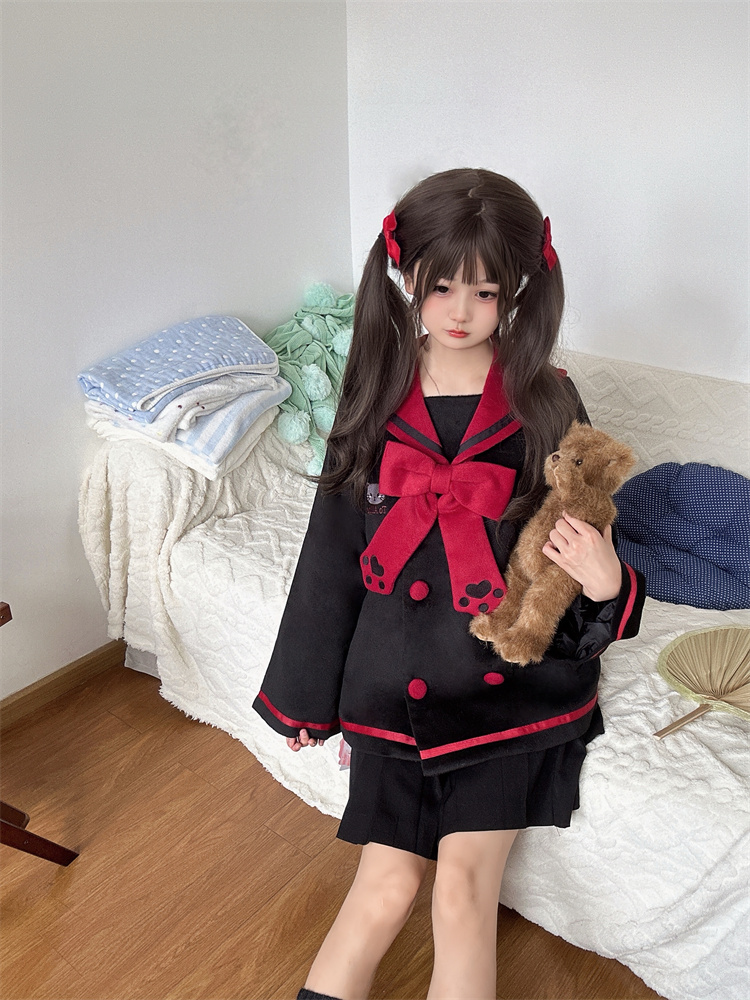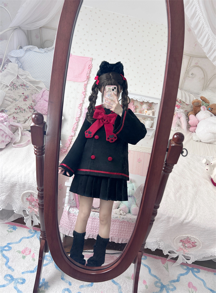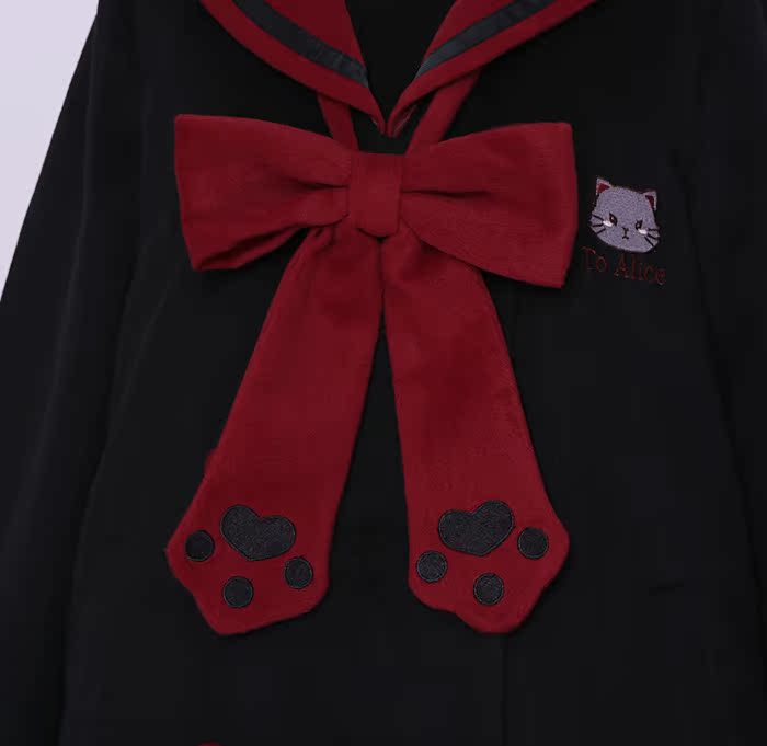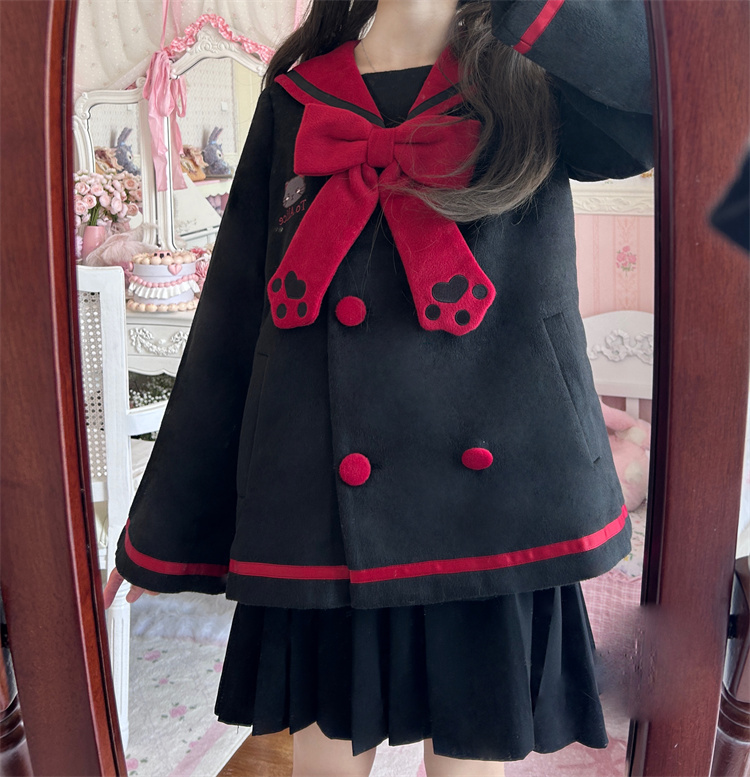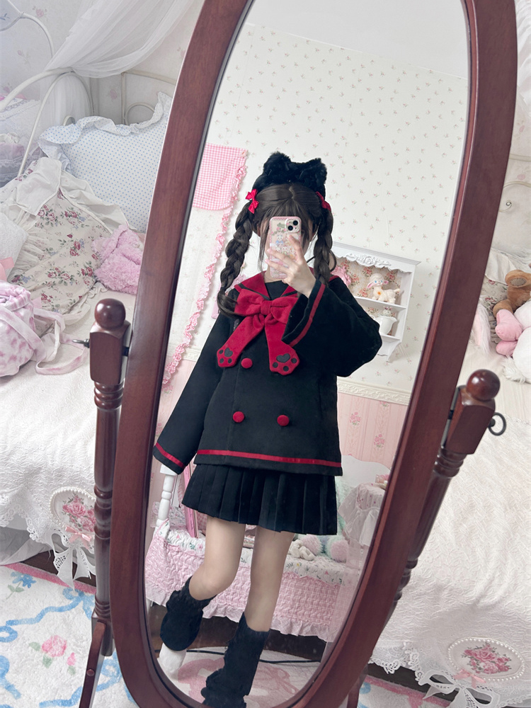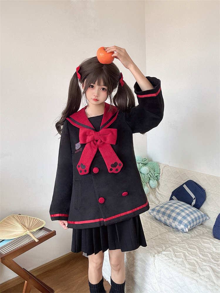 Black Cat Kindergarten 3D Cat Paw Halloween Sailor Tweed Jacket