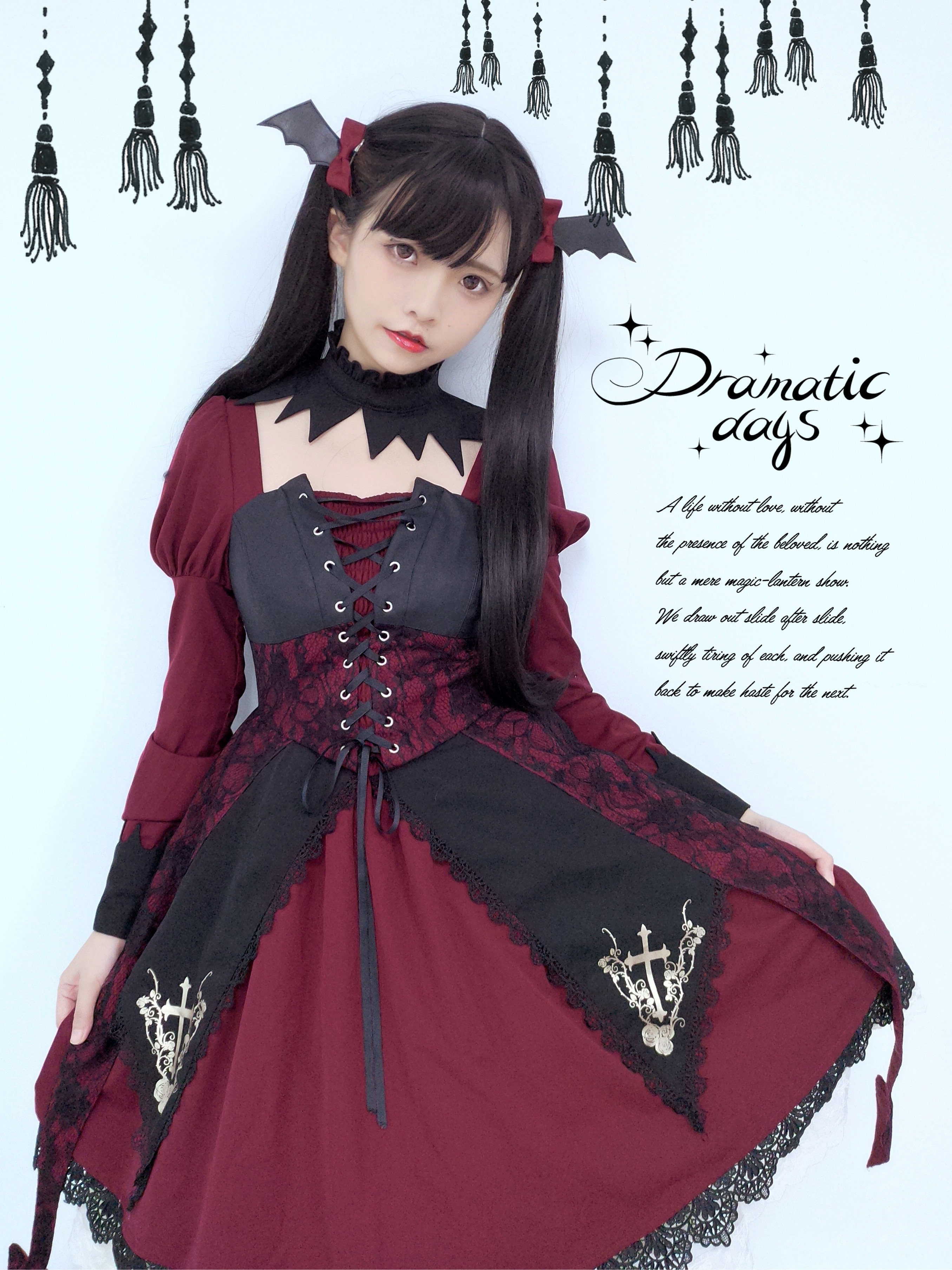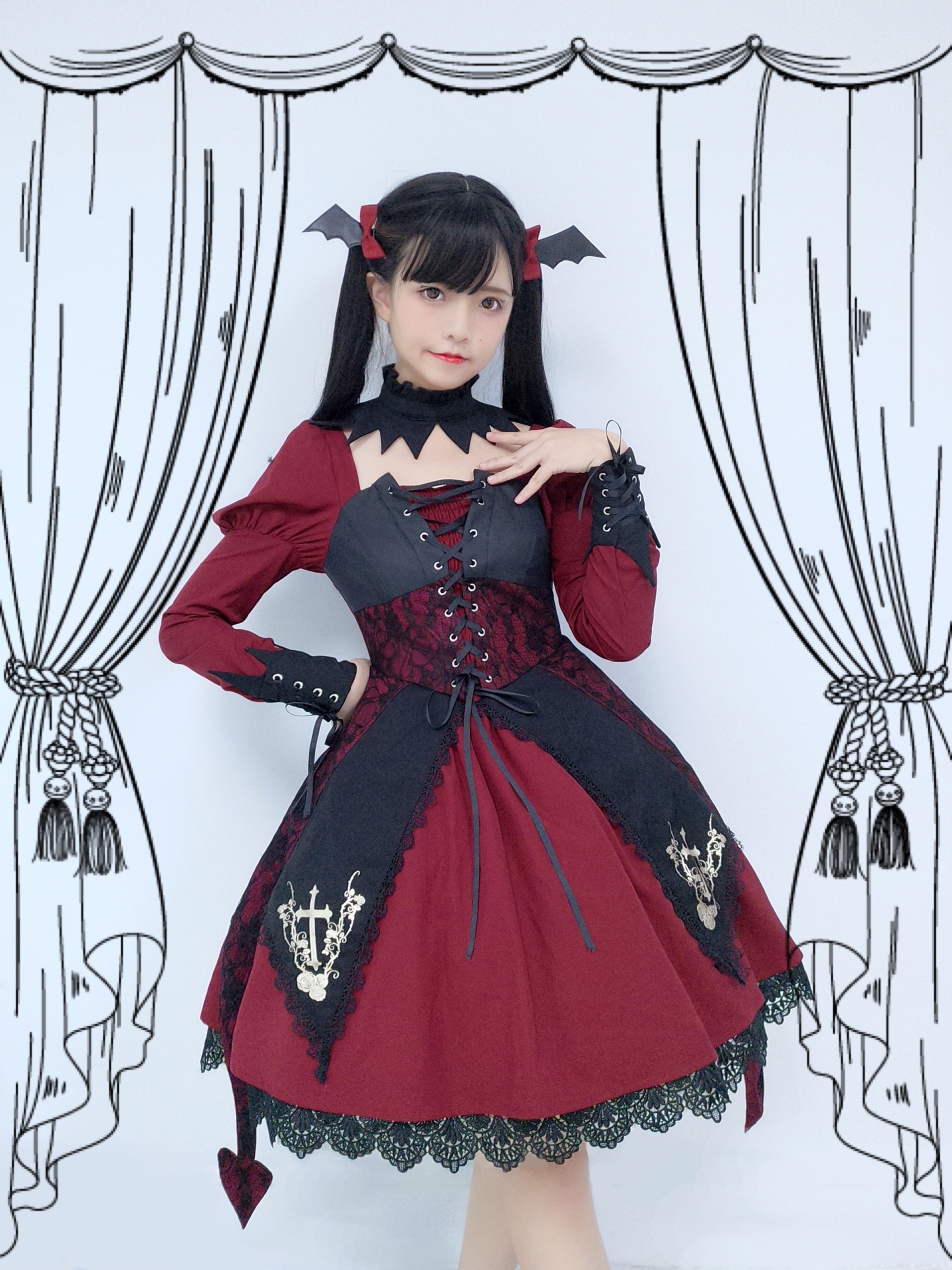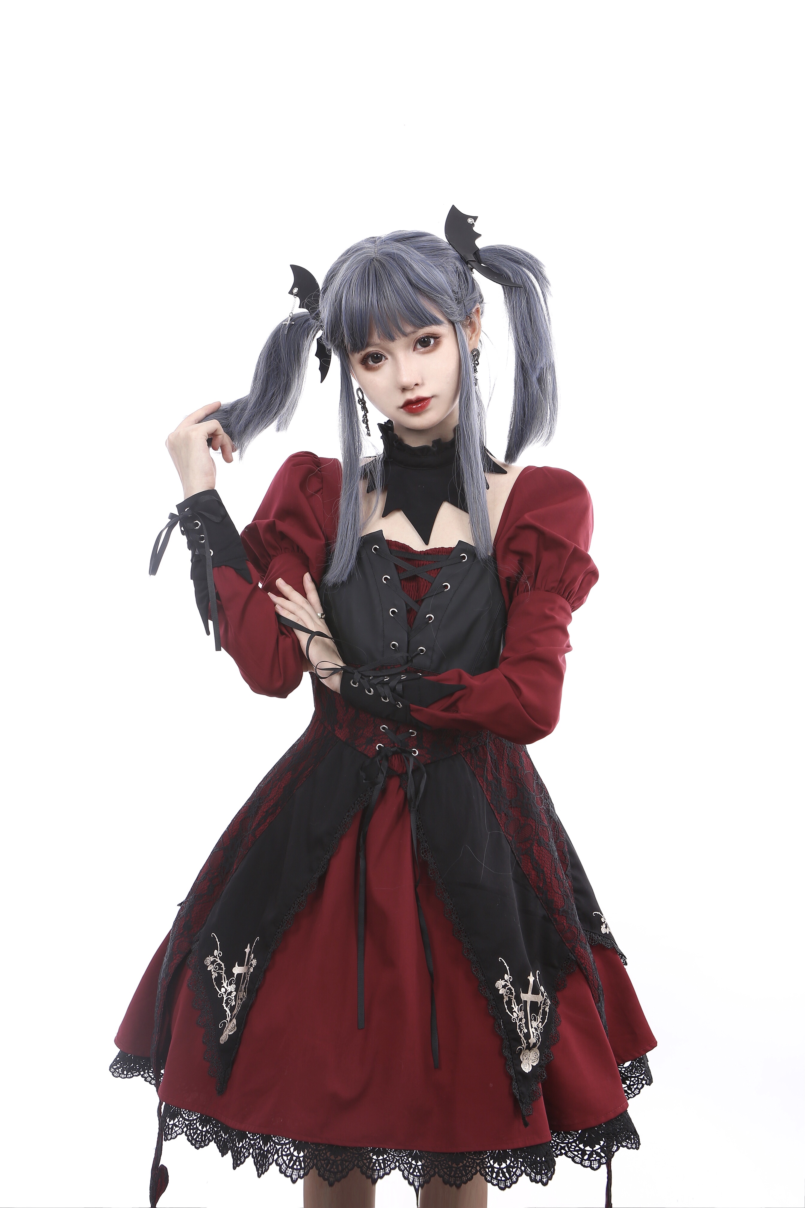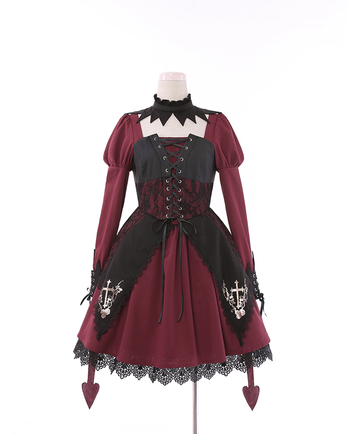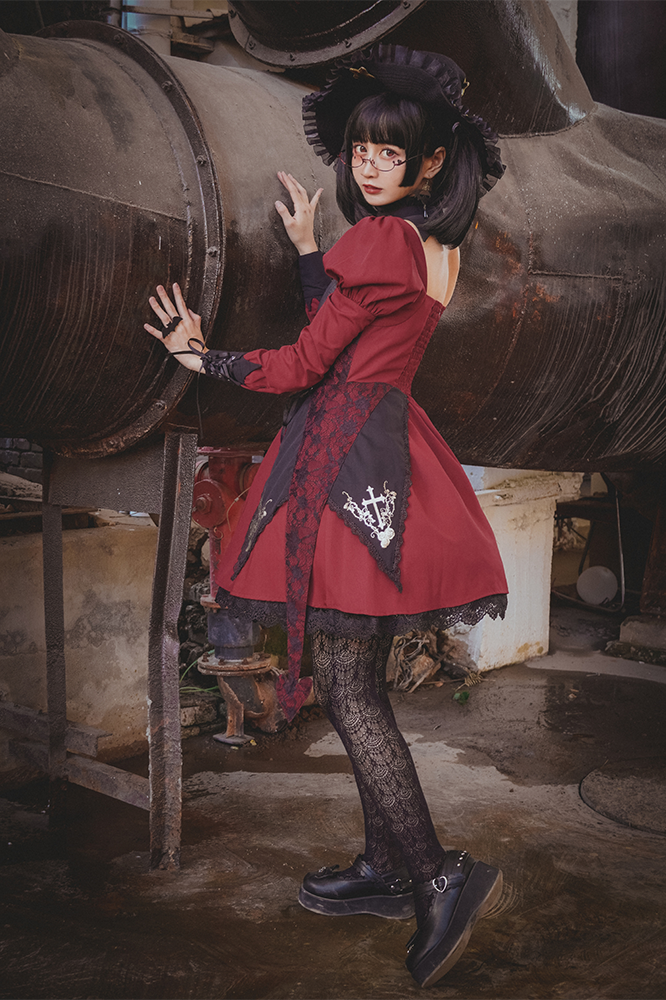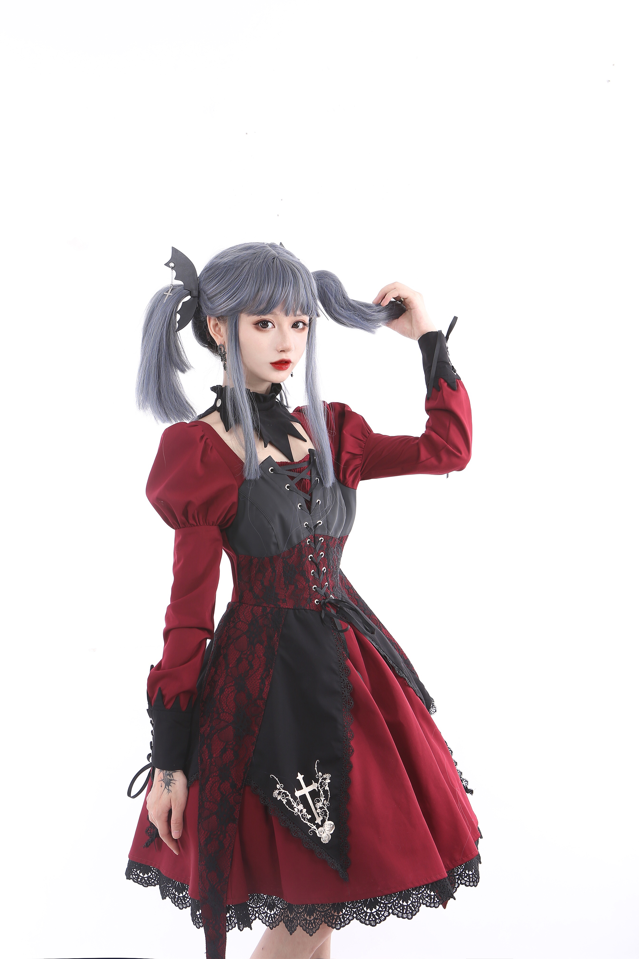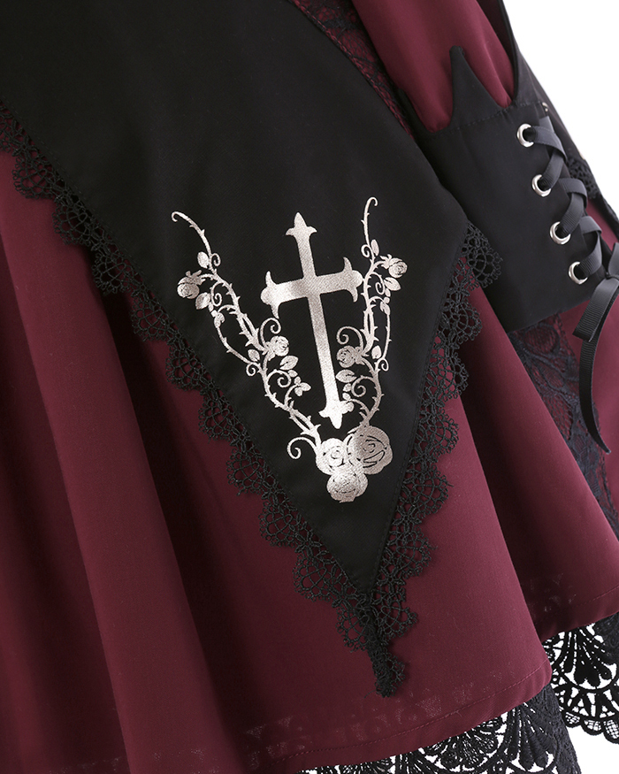Lolita Rose Cross Gothic Retro Stitching OP Dress
