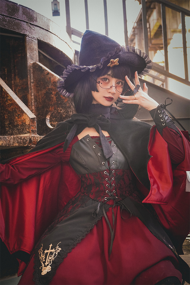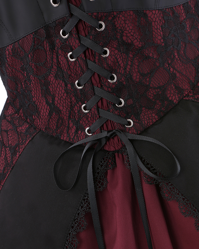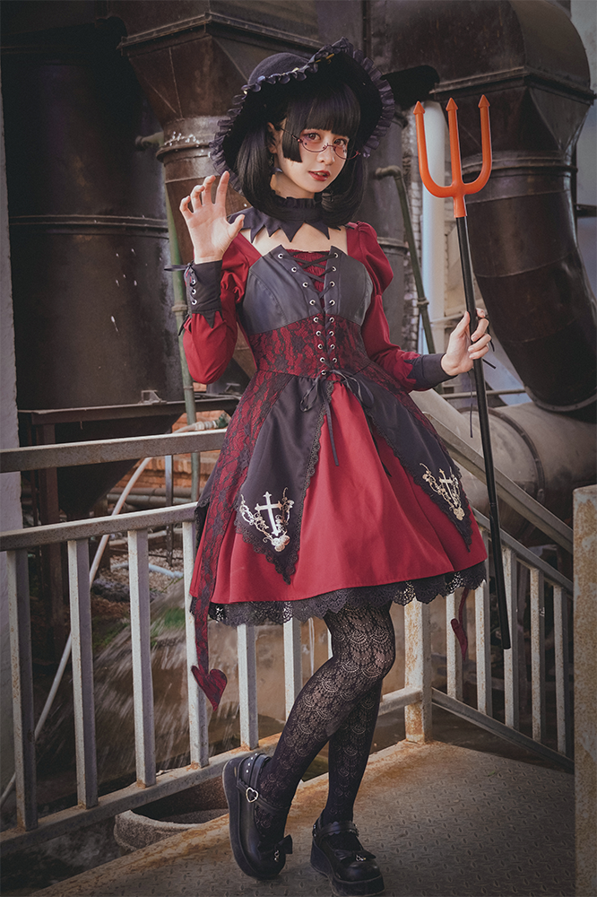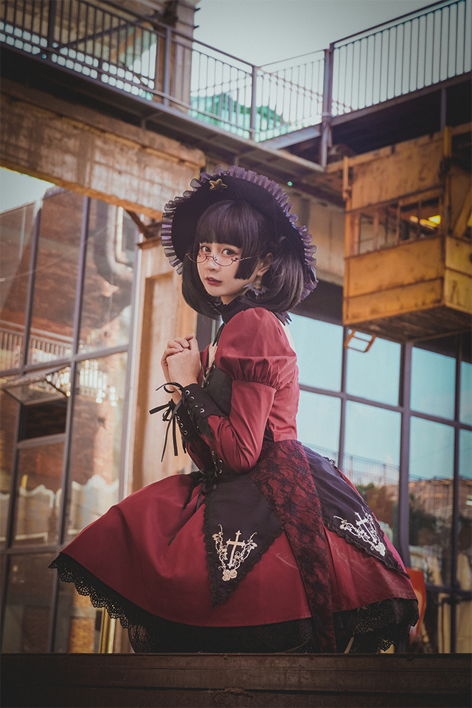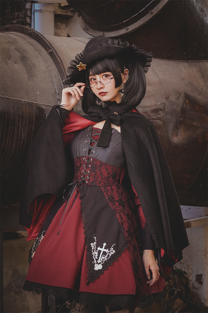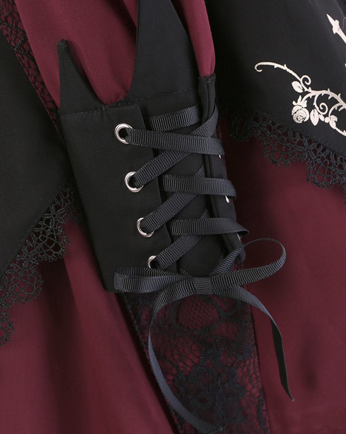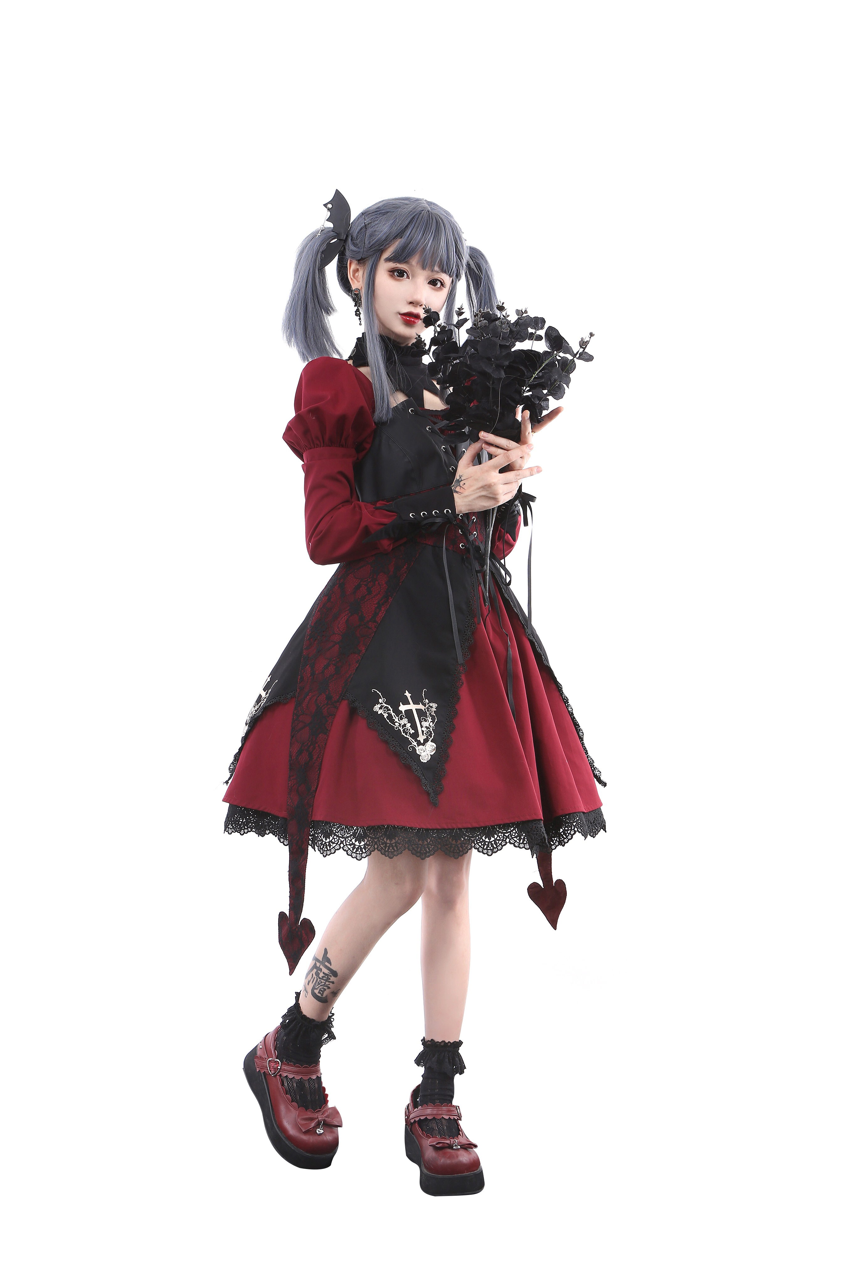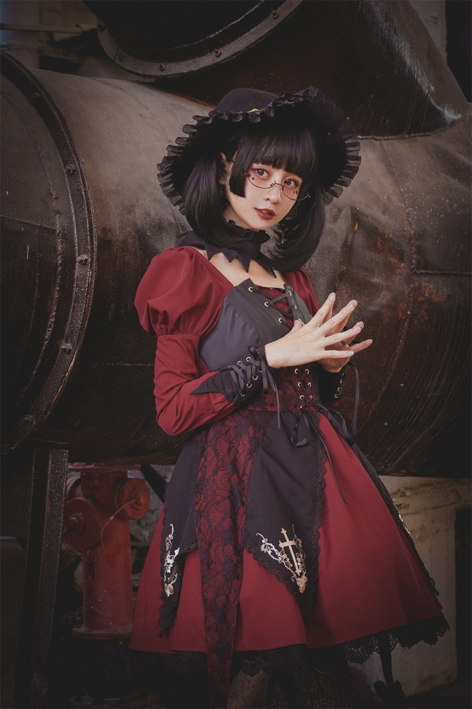 Lolita Rose Cross Gothic Retro Stitching OP Dress