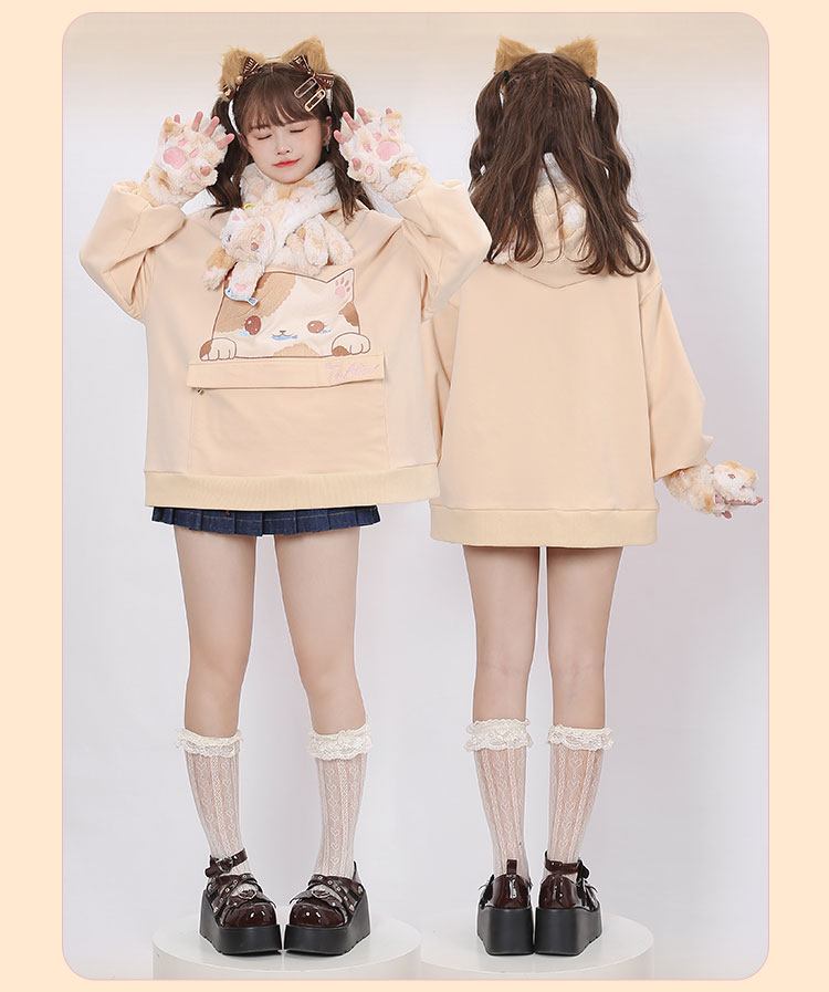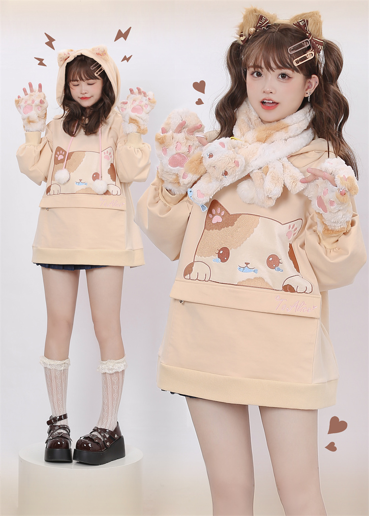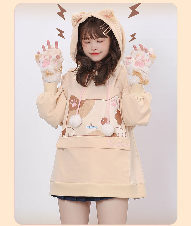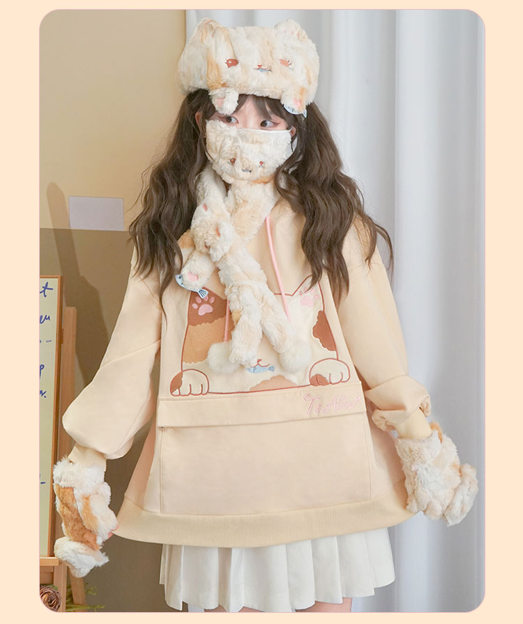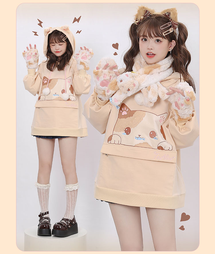 Three-Flower Cat Gift Bag Hoodie with Large Pocket