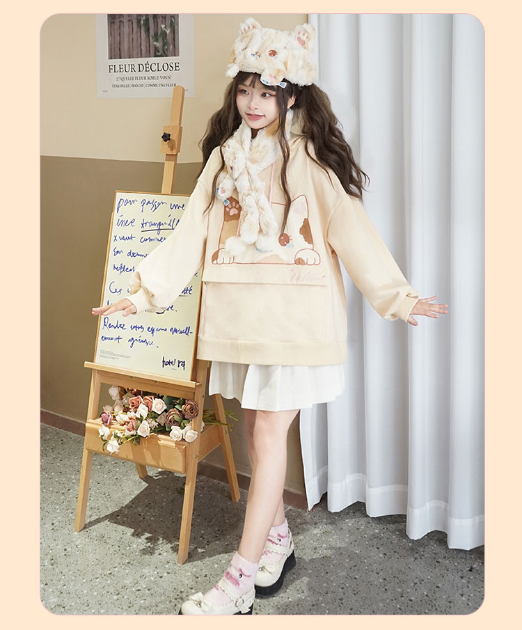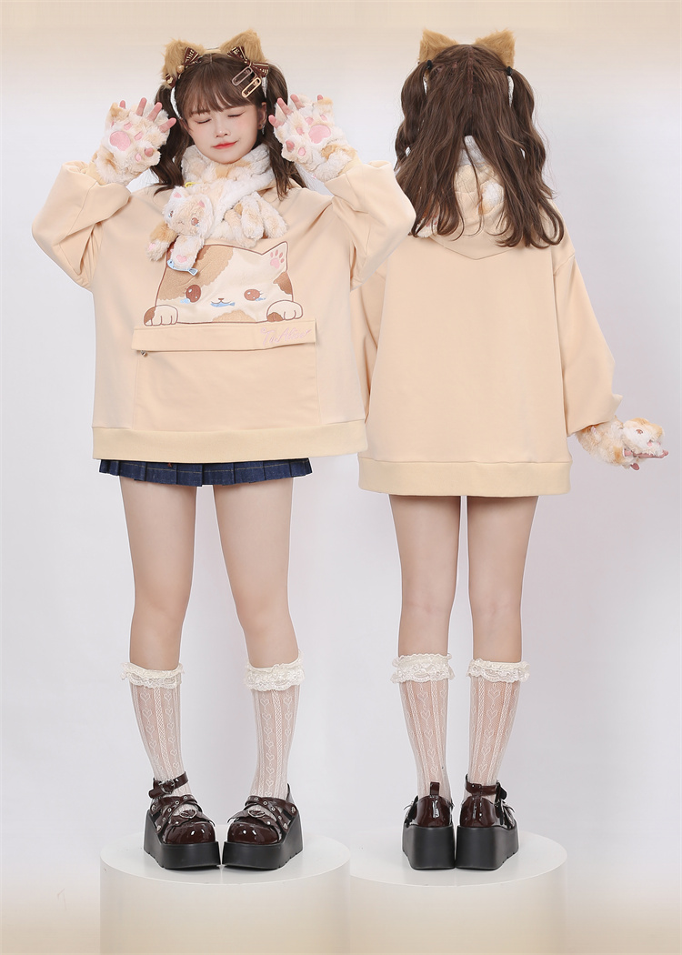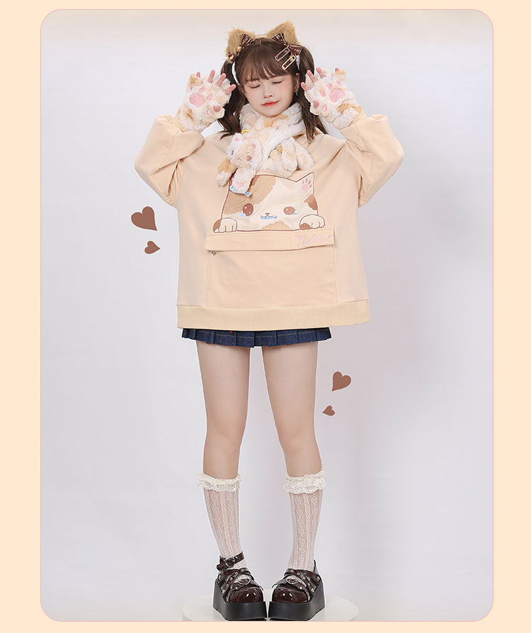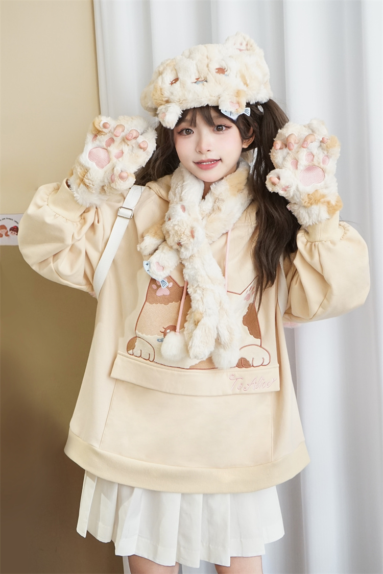 Three-Flower Cat Gift Bag Hoodie with Large Pocket