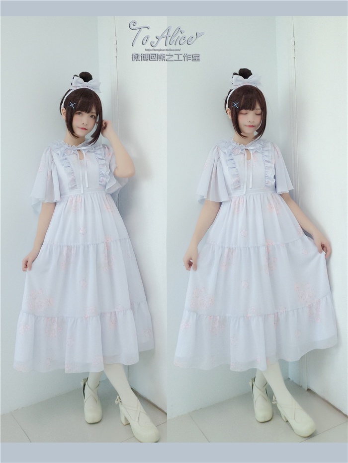 C394417 Cape Sleeve Floral Fairy Chiffon Maxi Dress