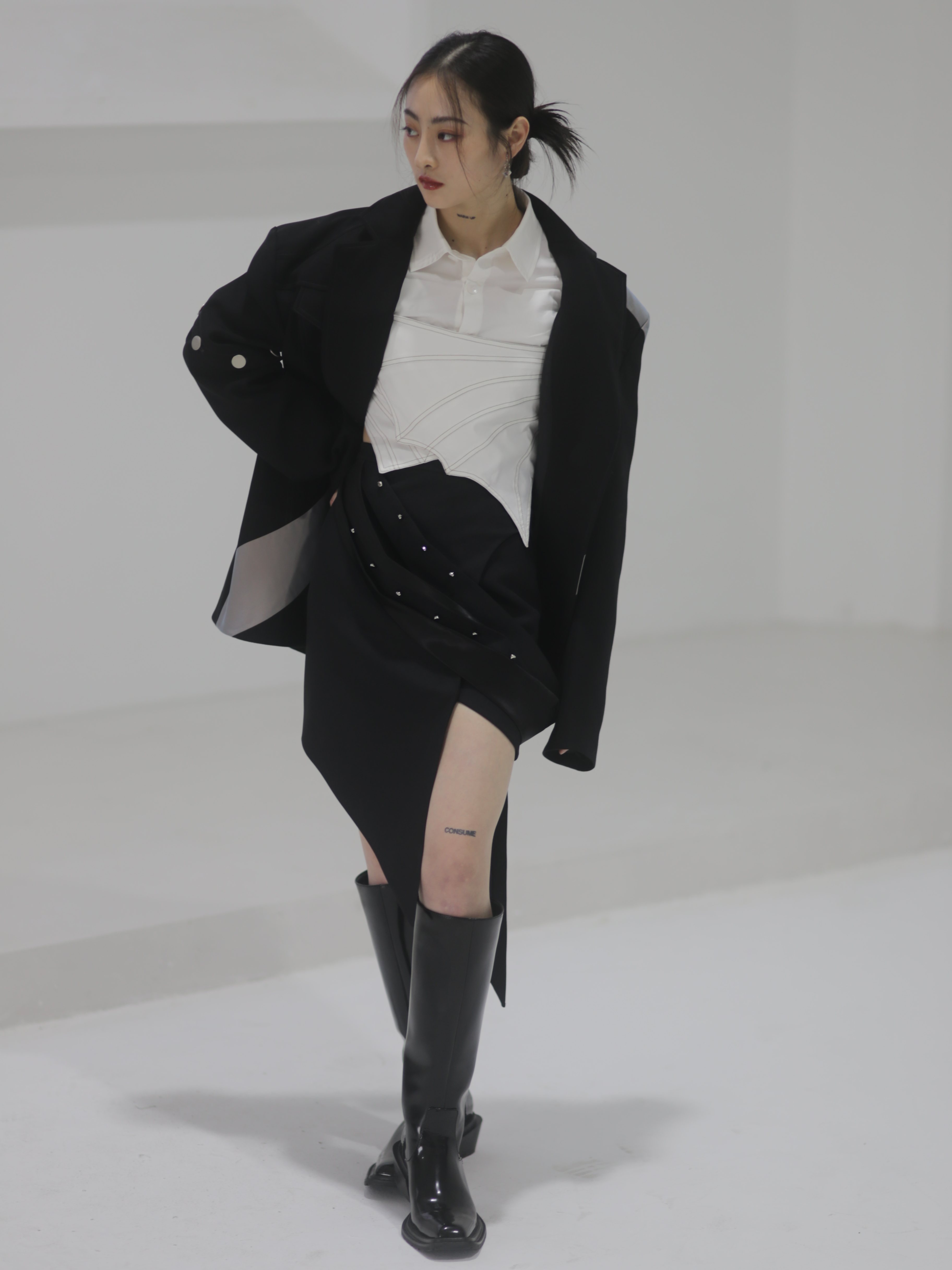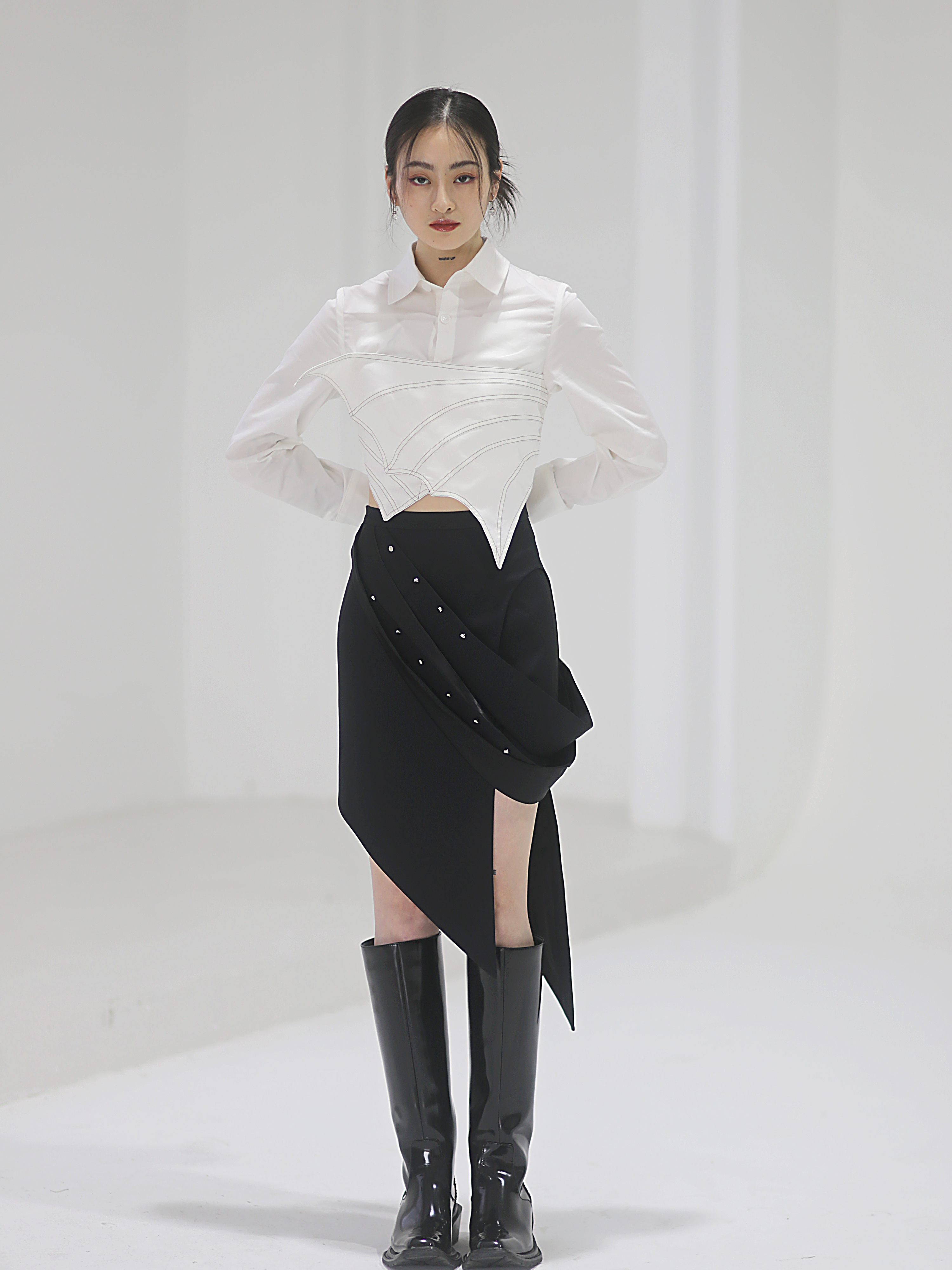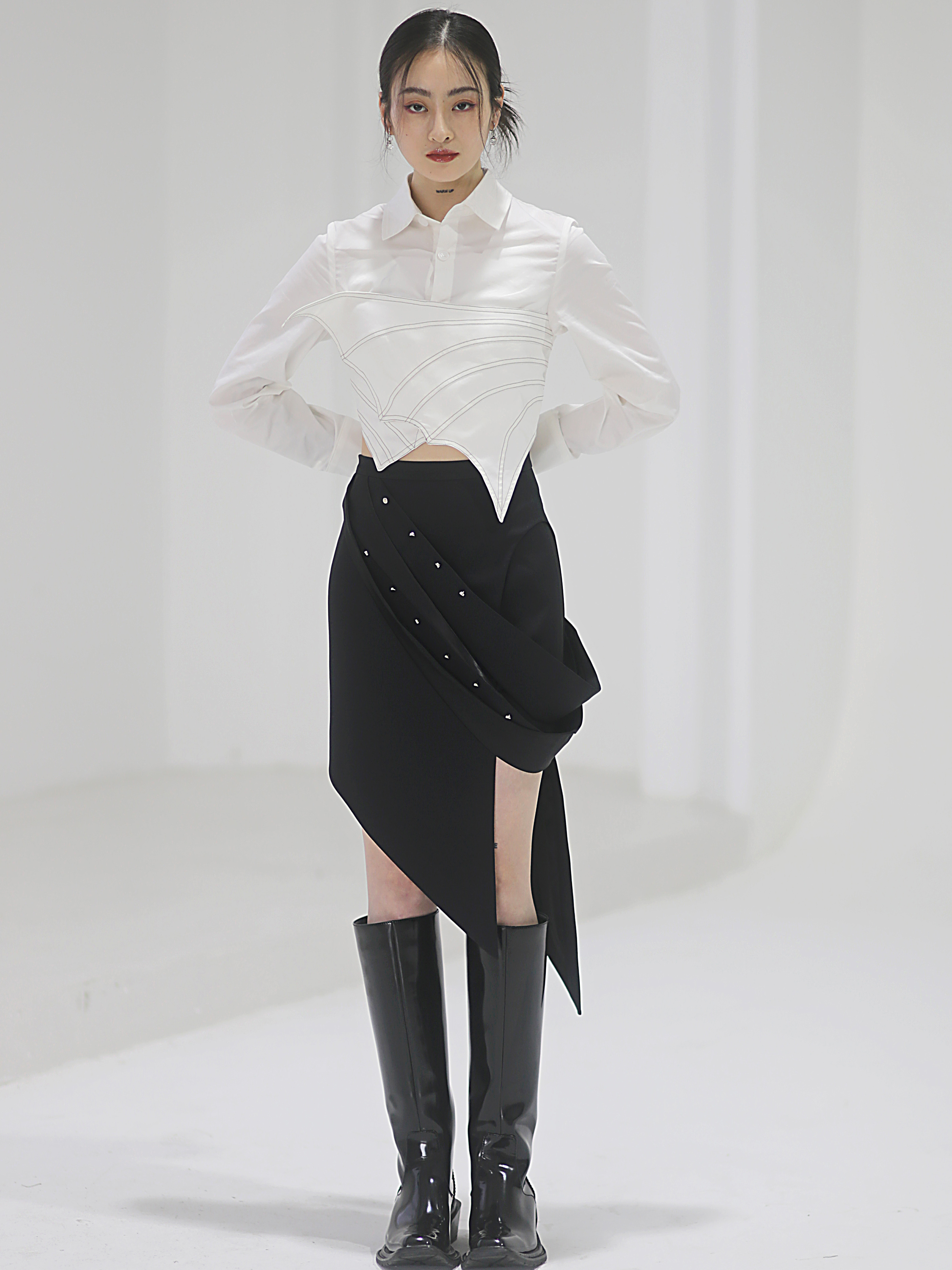 Falda de traje futurista con cuentas de metal de origami