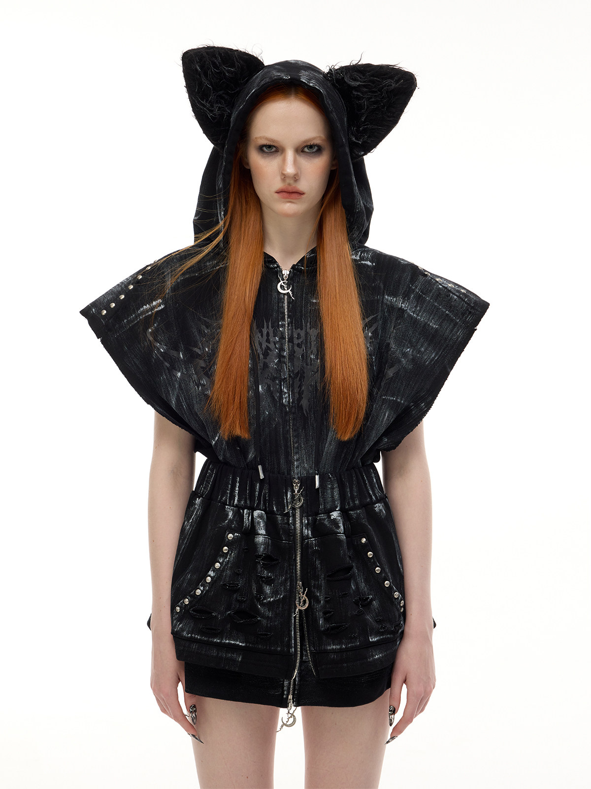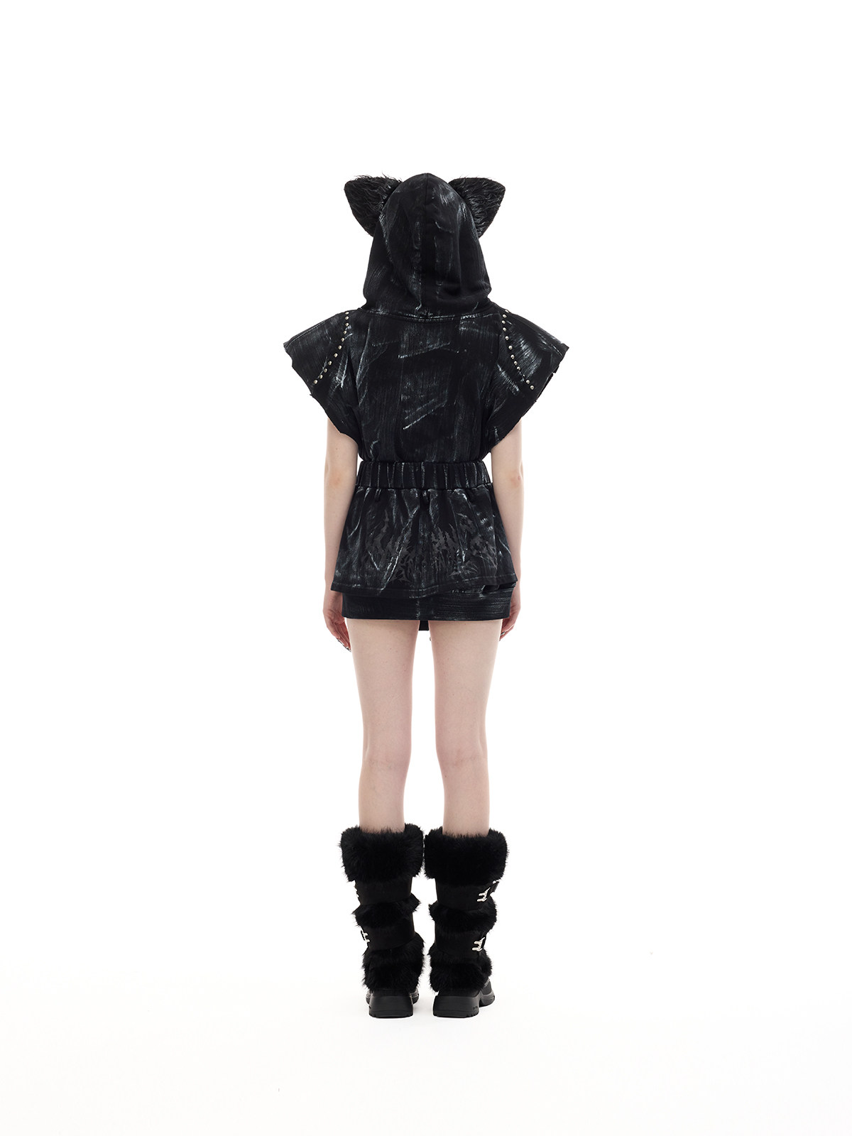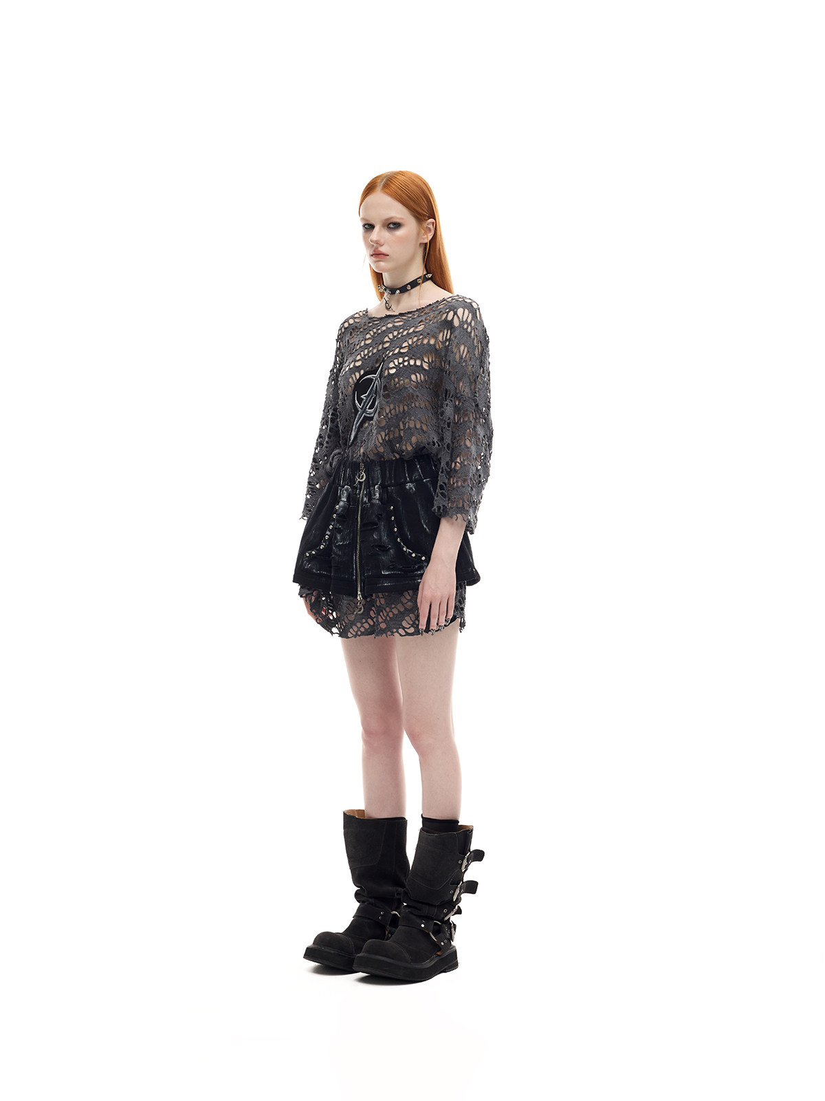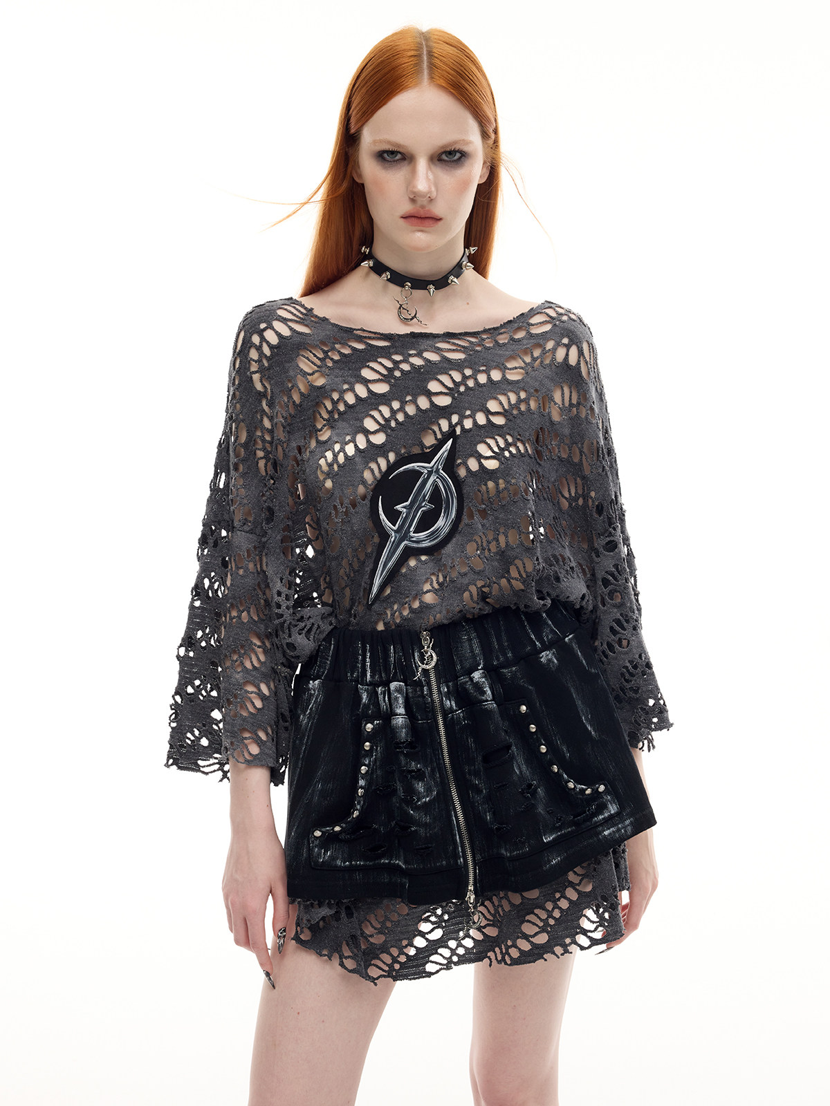 Electric Moon Hand-Painted Zippered Punk Y2K Mini Skirt