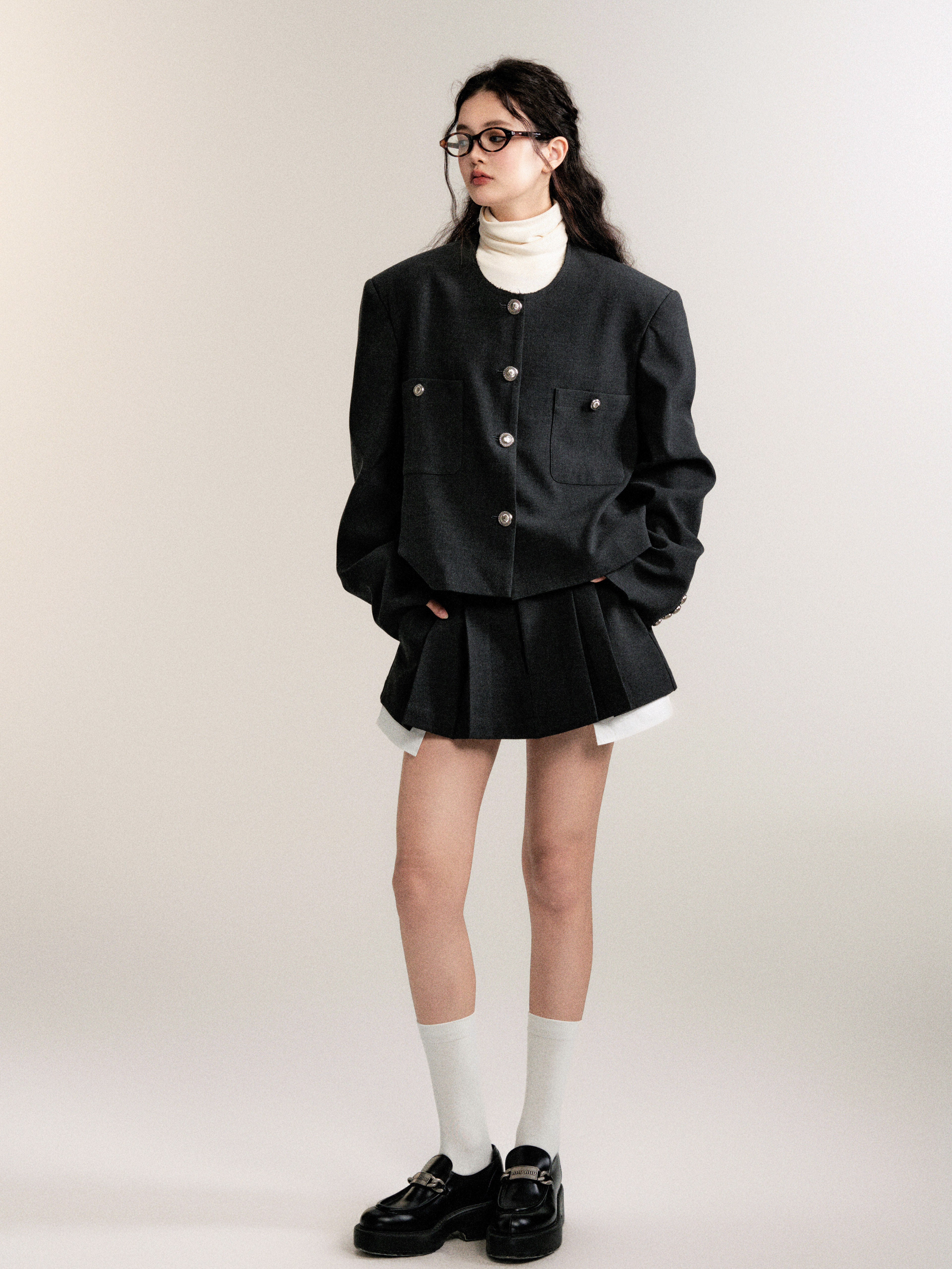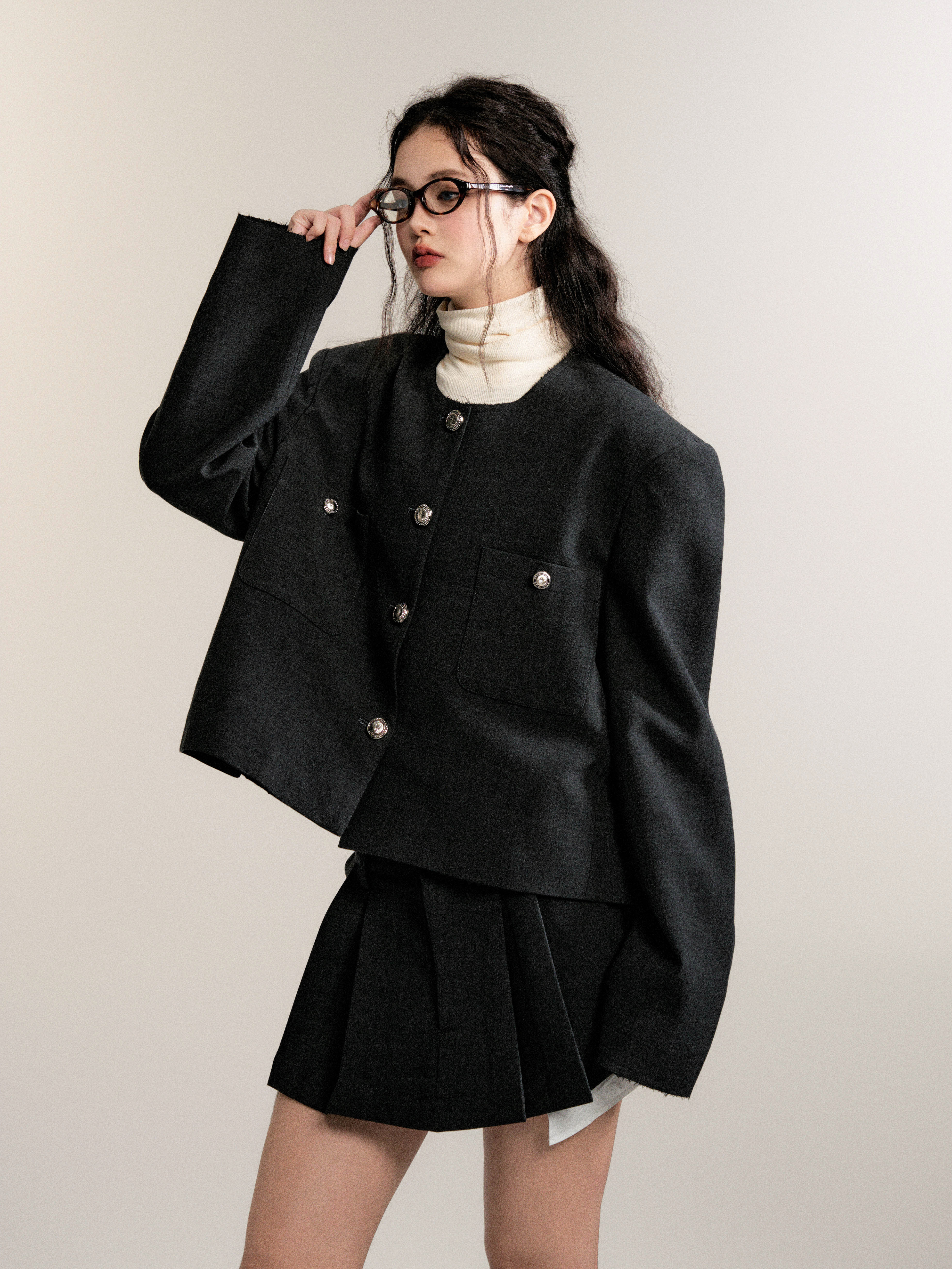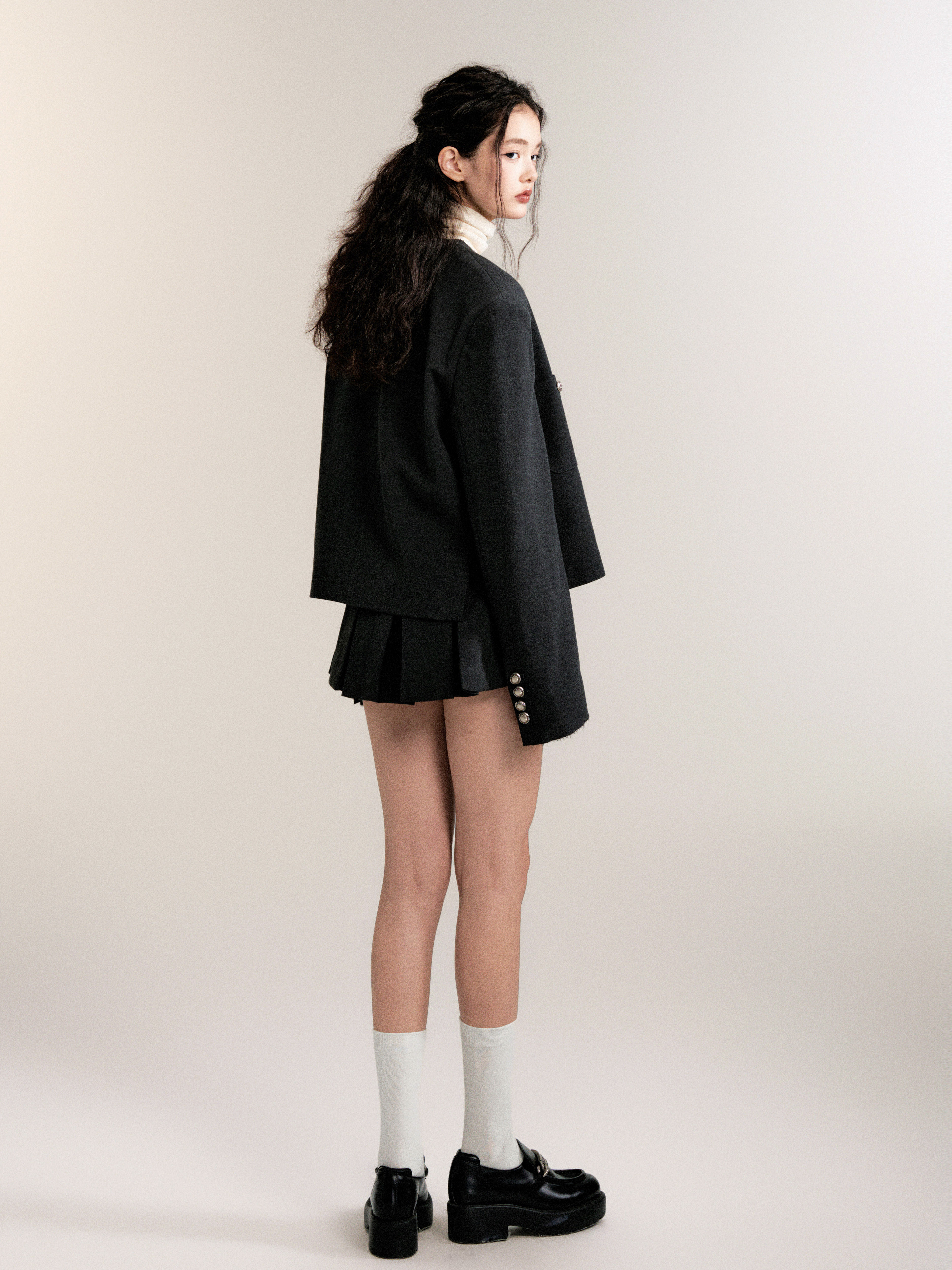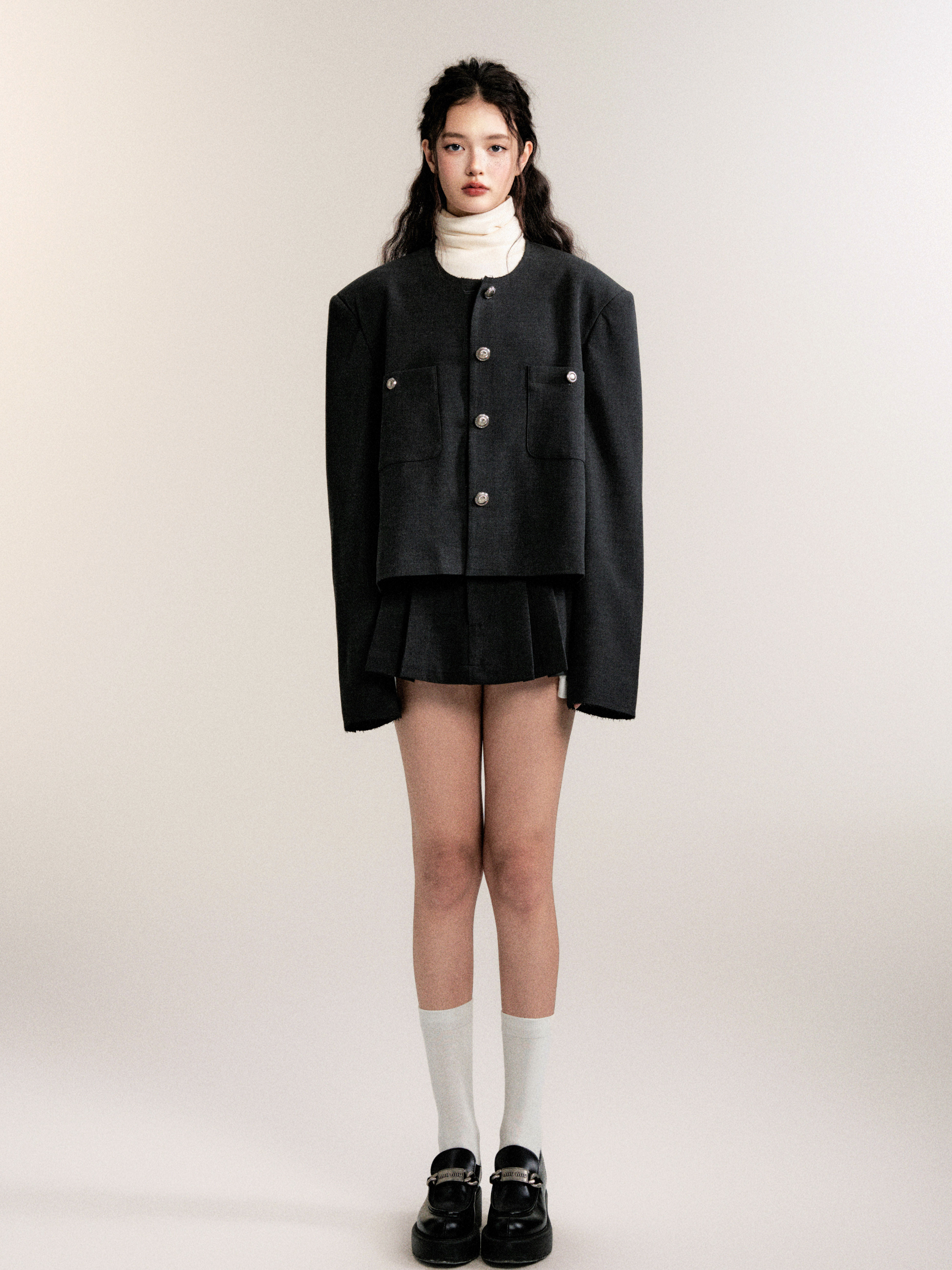 Raw Edge Premium Suit & Skirt Set for Women (Grey Edition)
