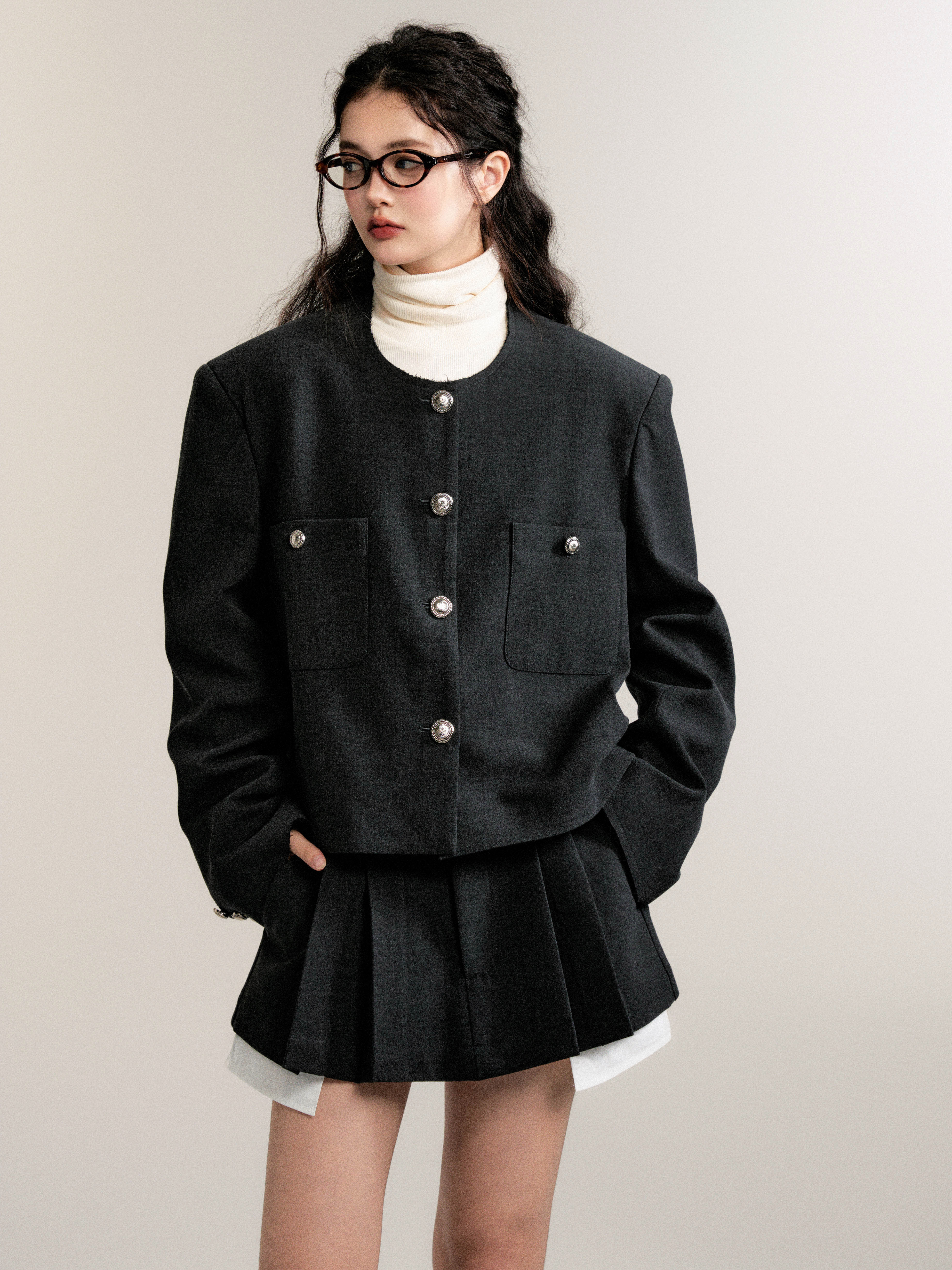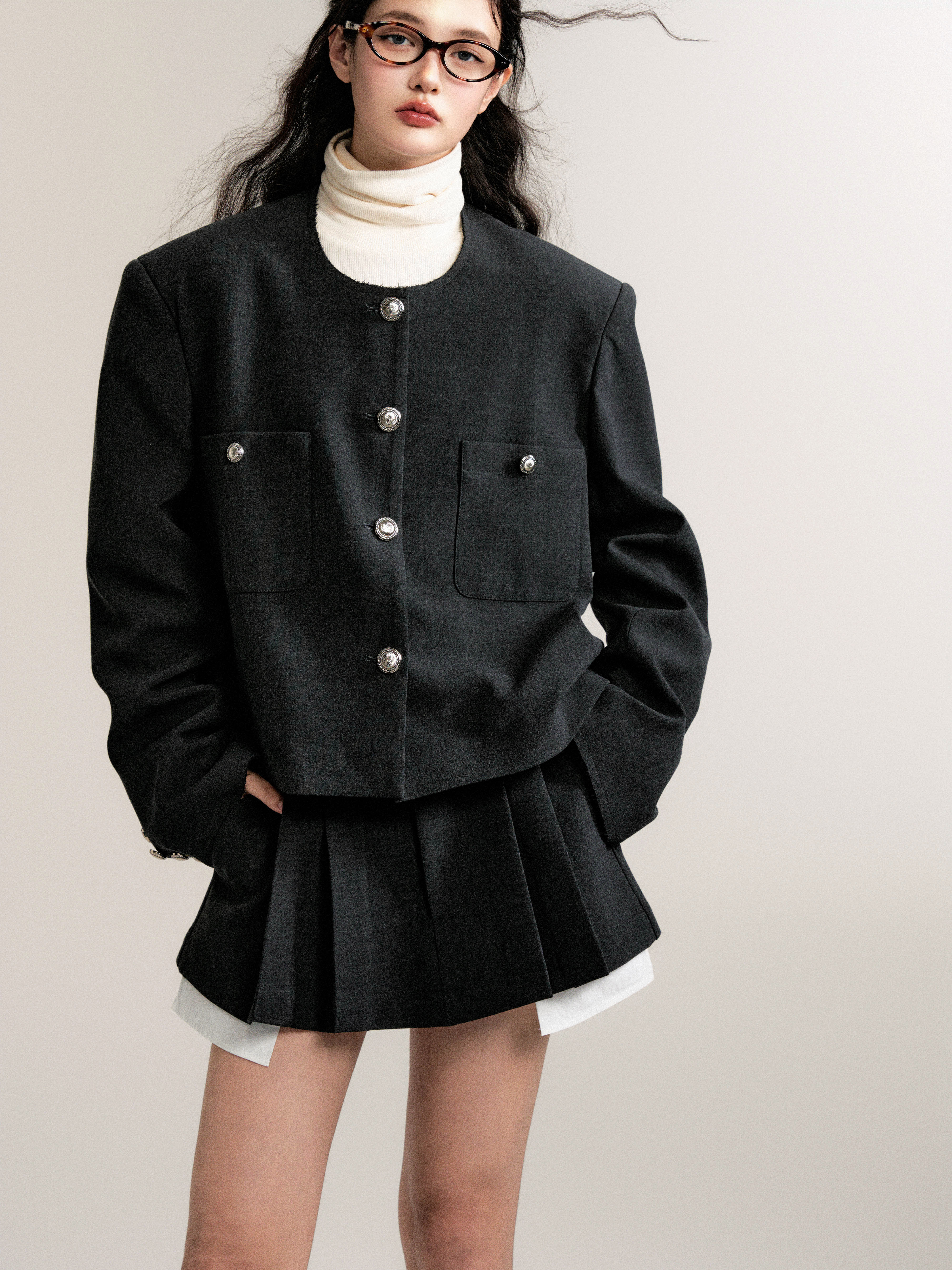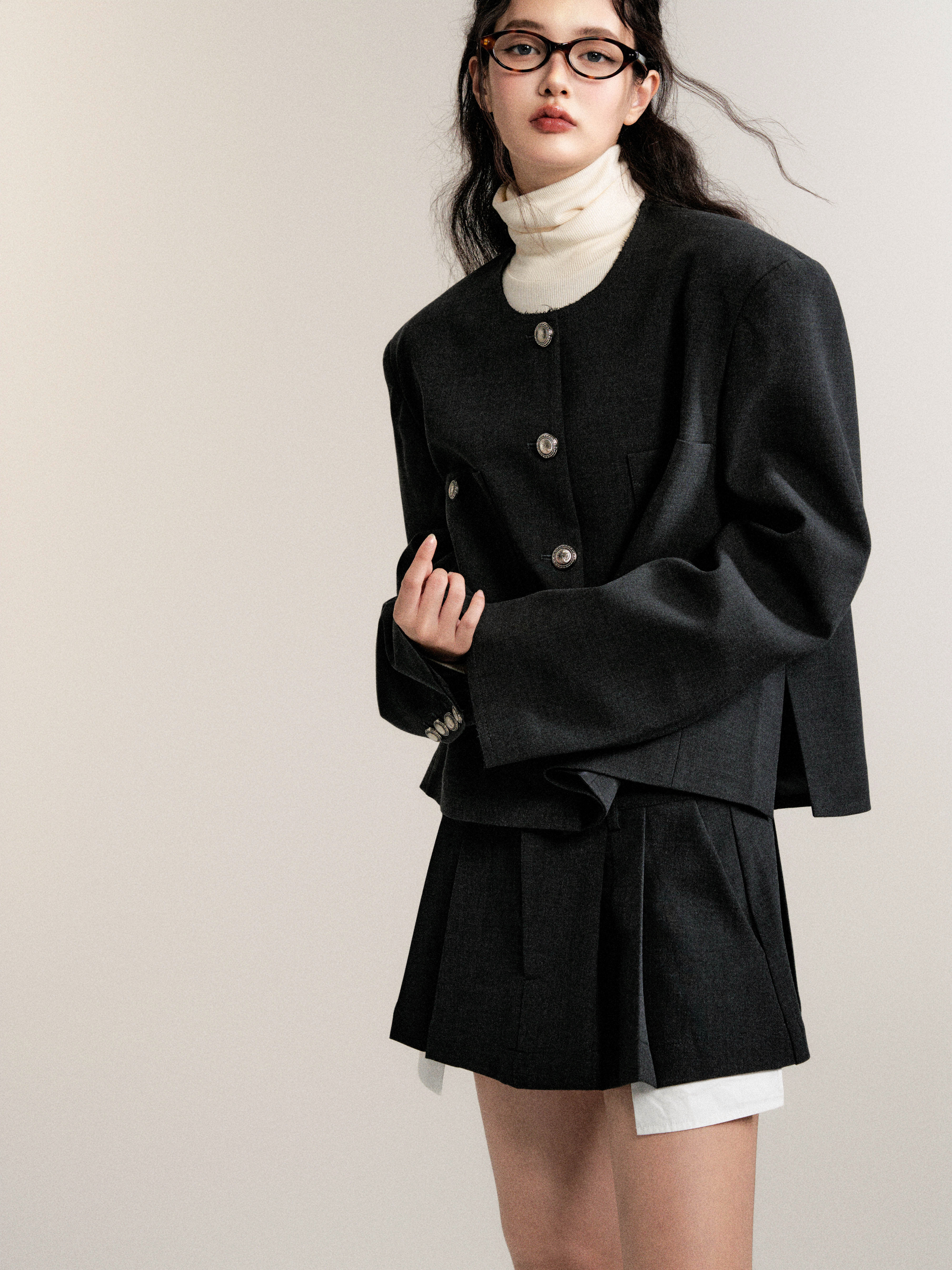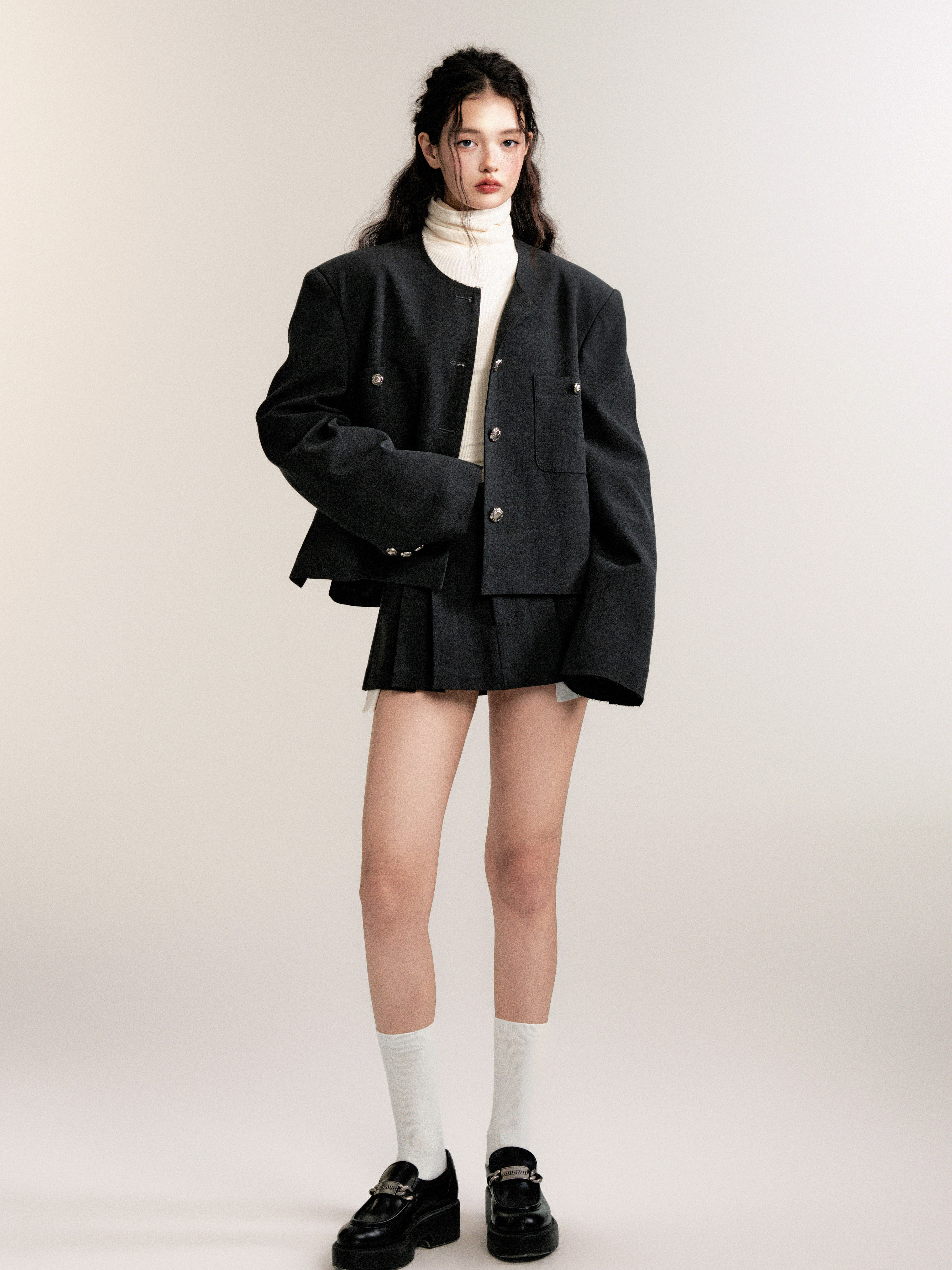 Raw Edge Premium Suit & Skirt Set for Women (Grey Edition)
