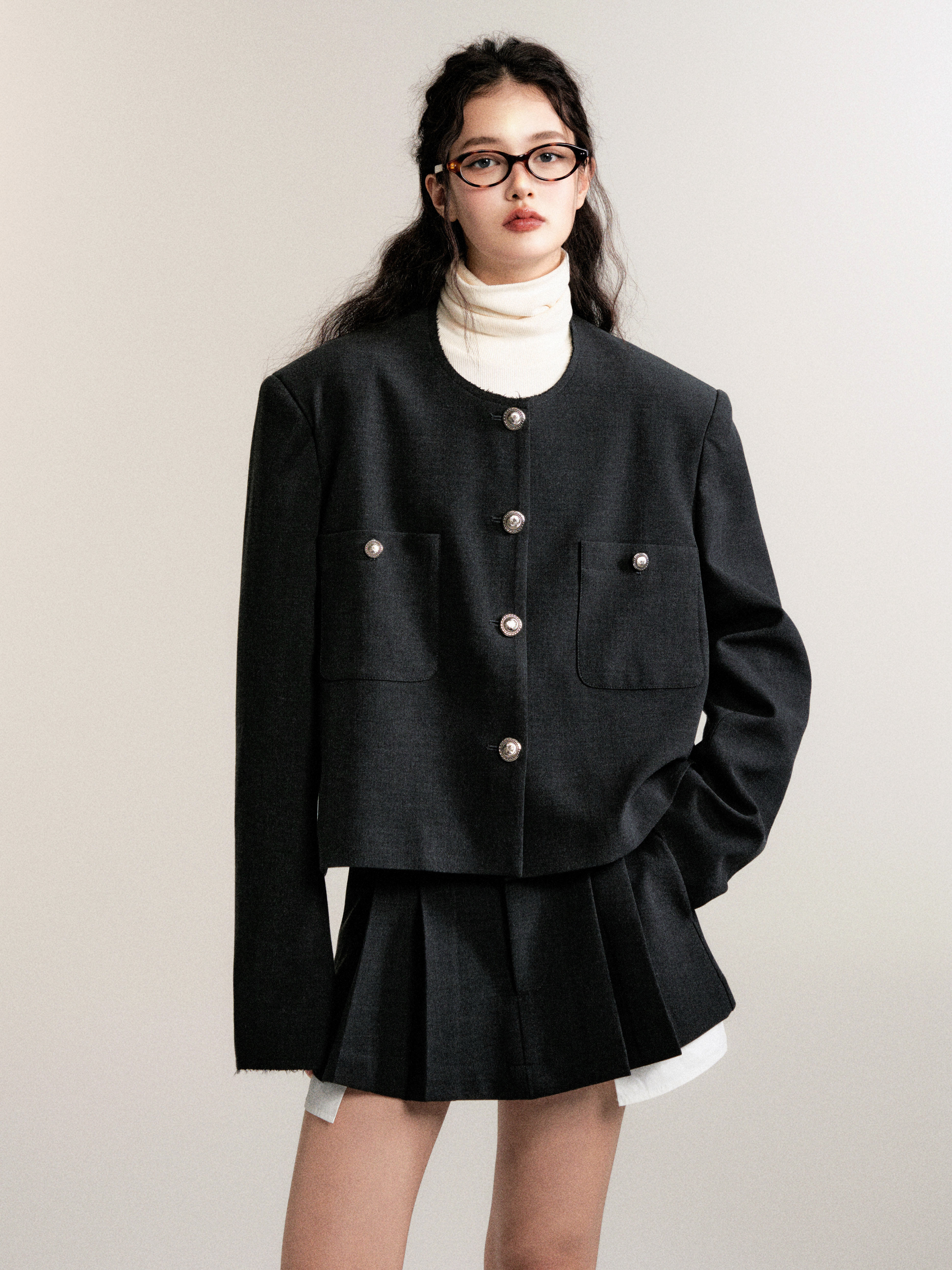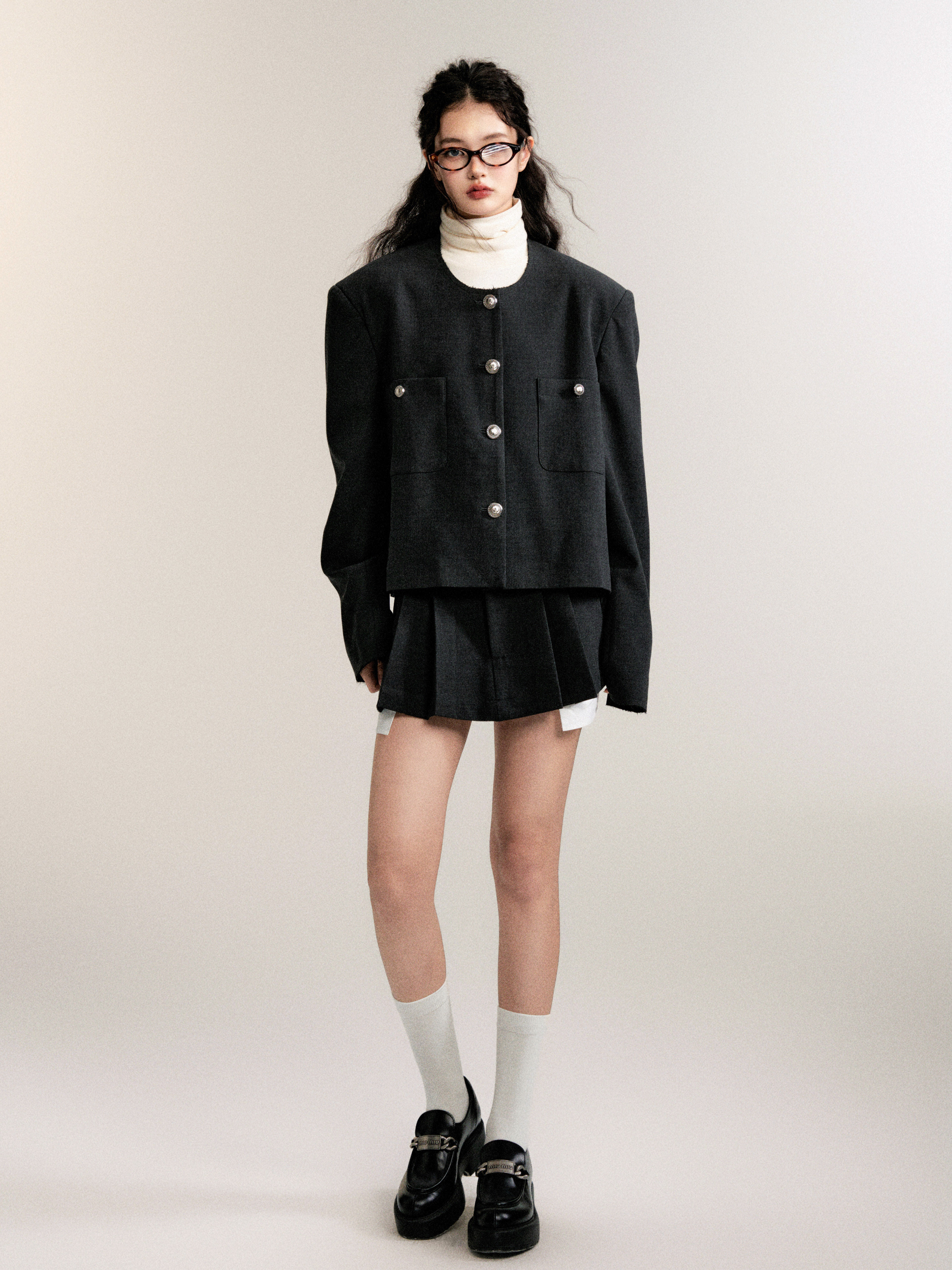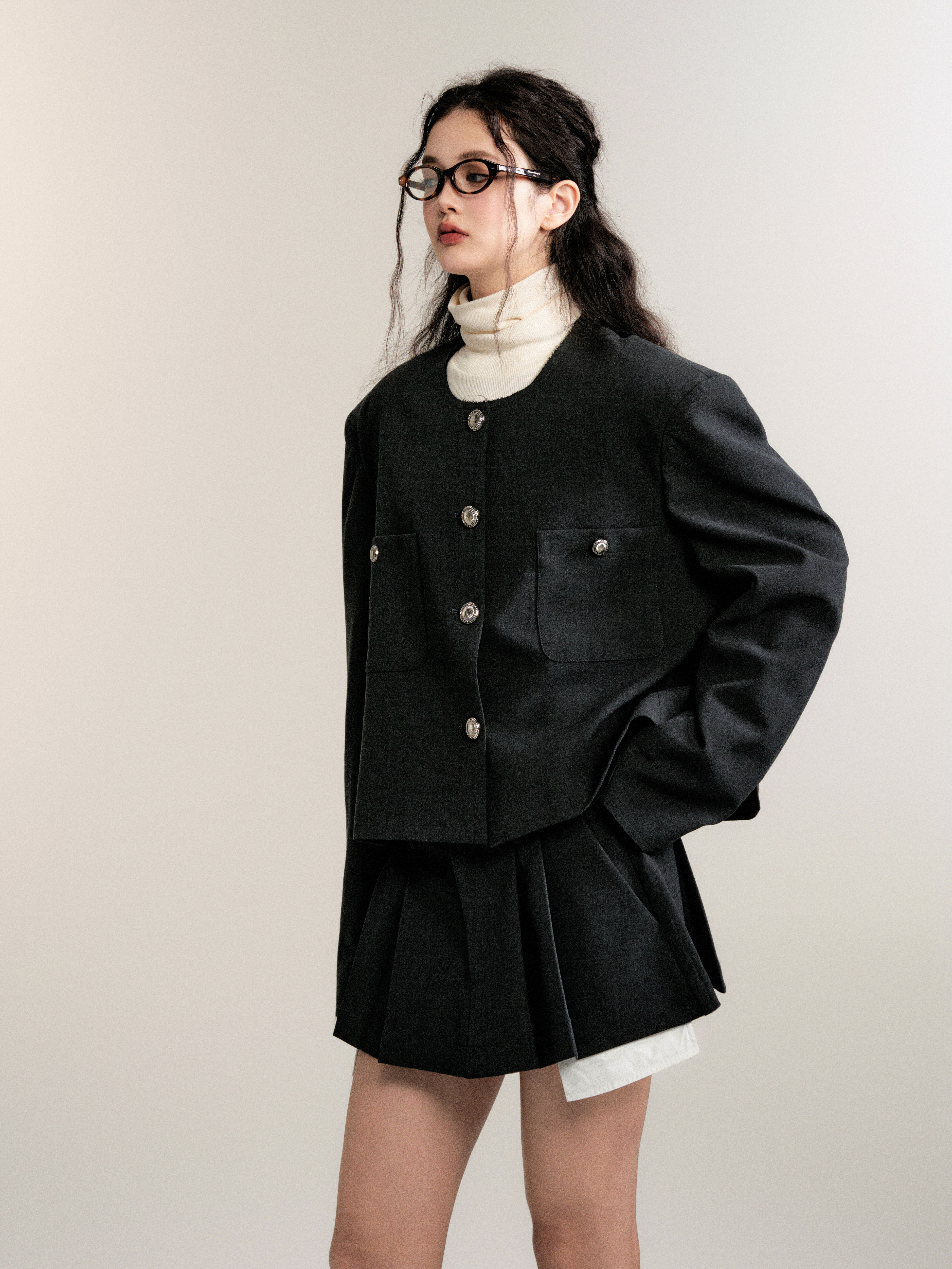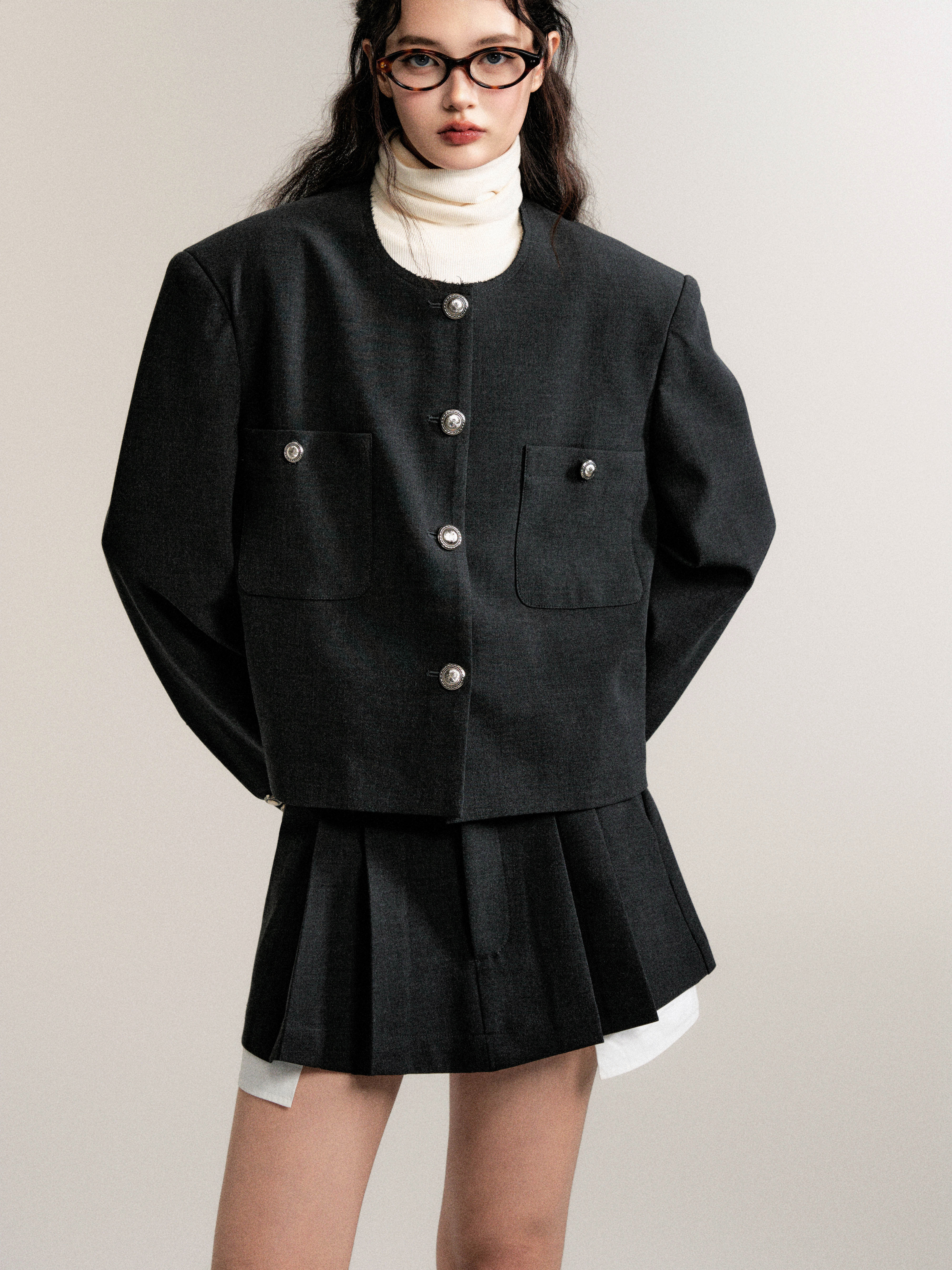 Raw Edge Premium Suit & Skirt Set for Women (Grey Edition)
