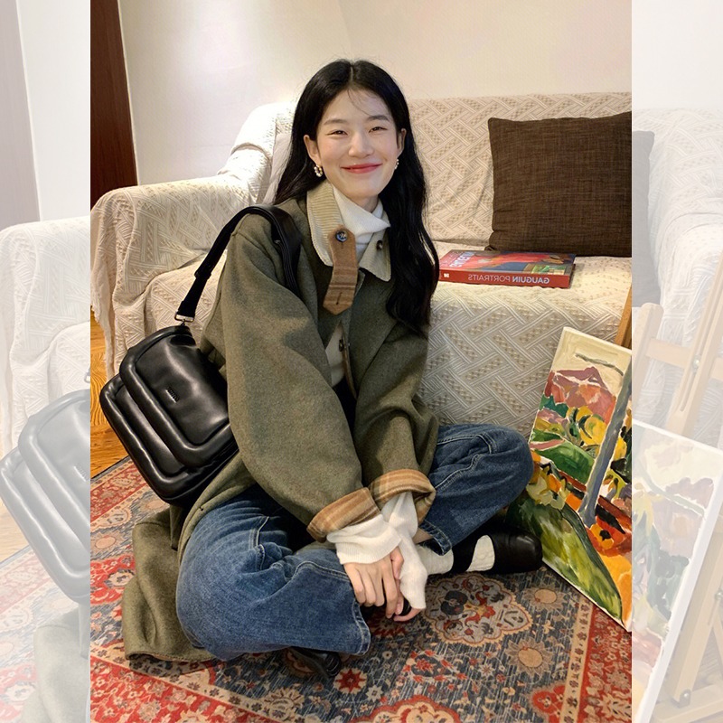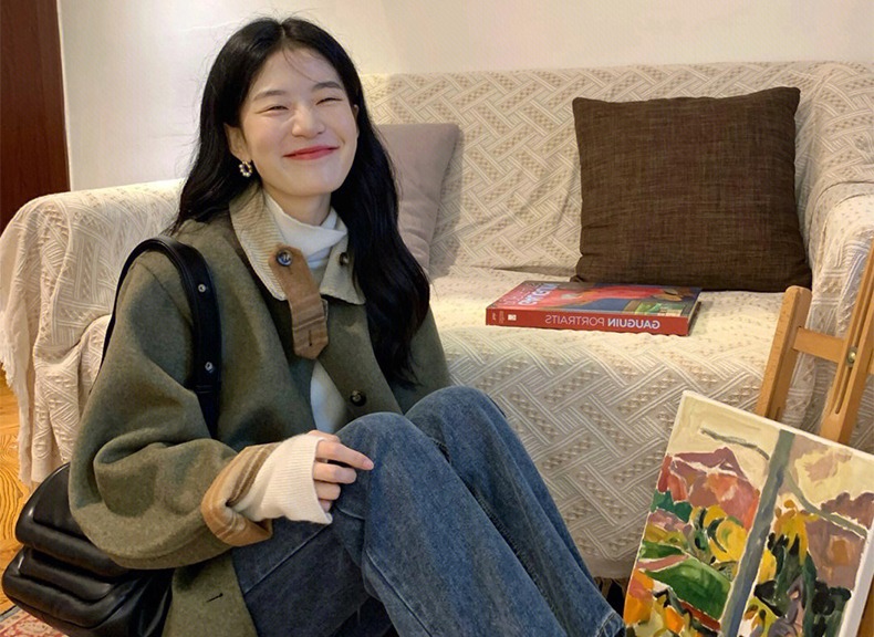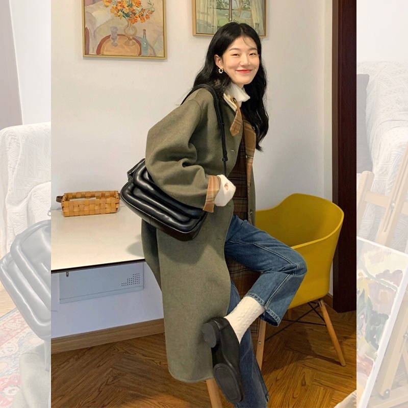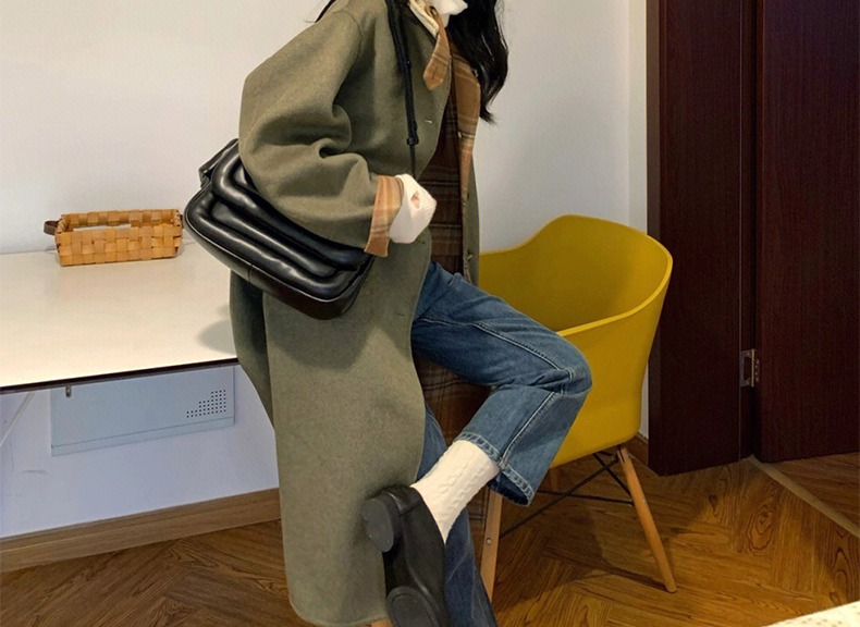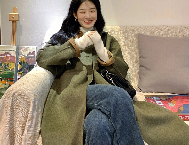 Green Double-Faced Cashmere Coat – British-Inspired Mid-Length Wool Jacket