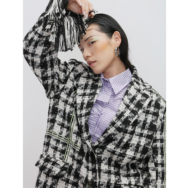 Abrigo fragante Xiao con borlas de seda brillante D414